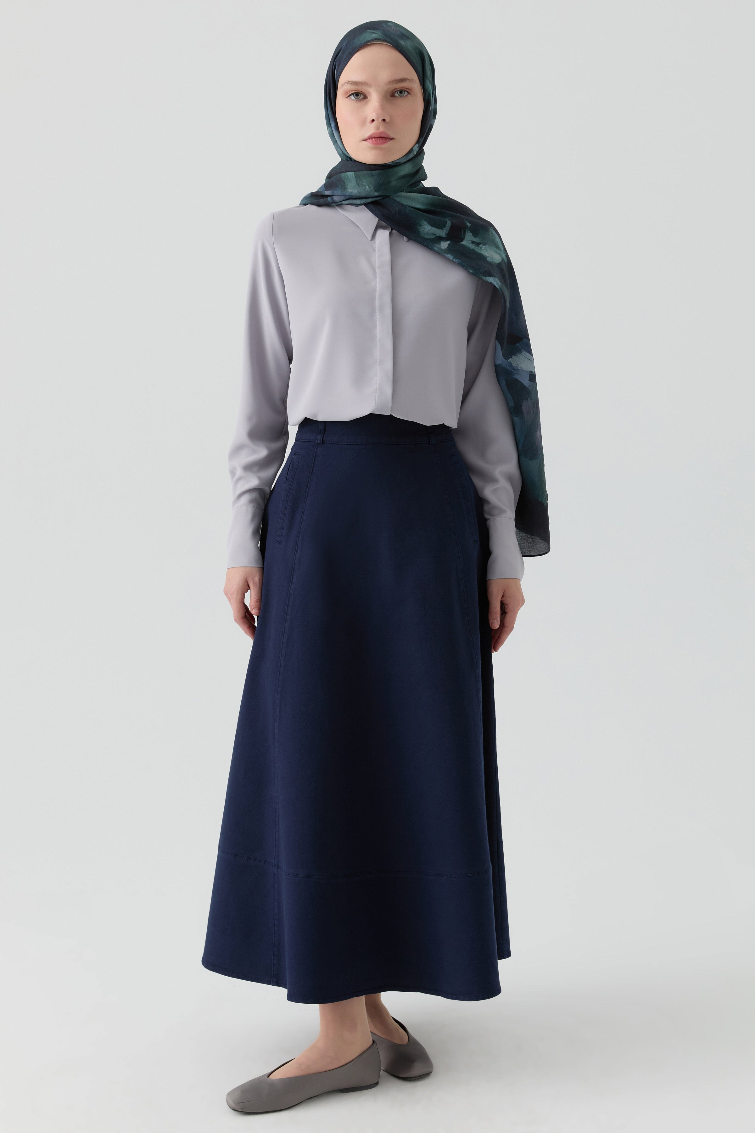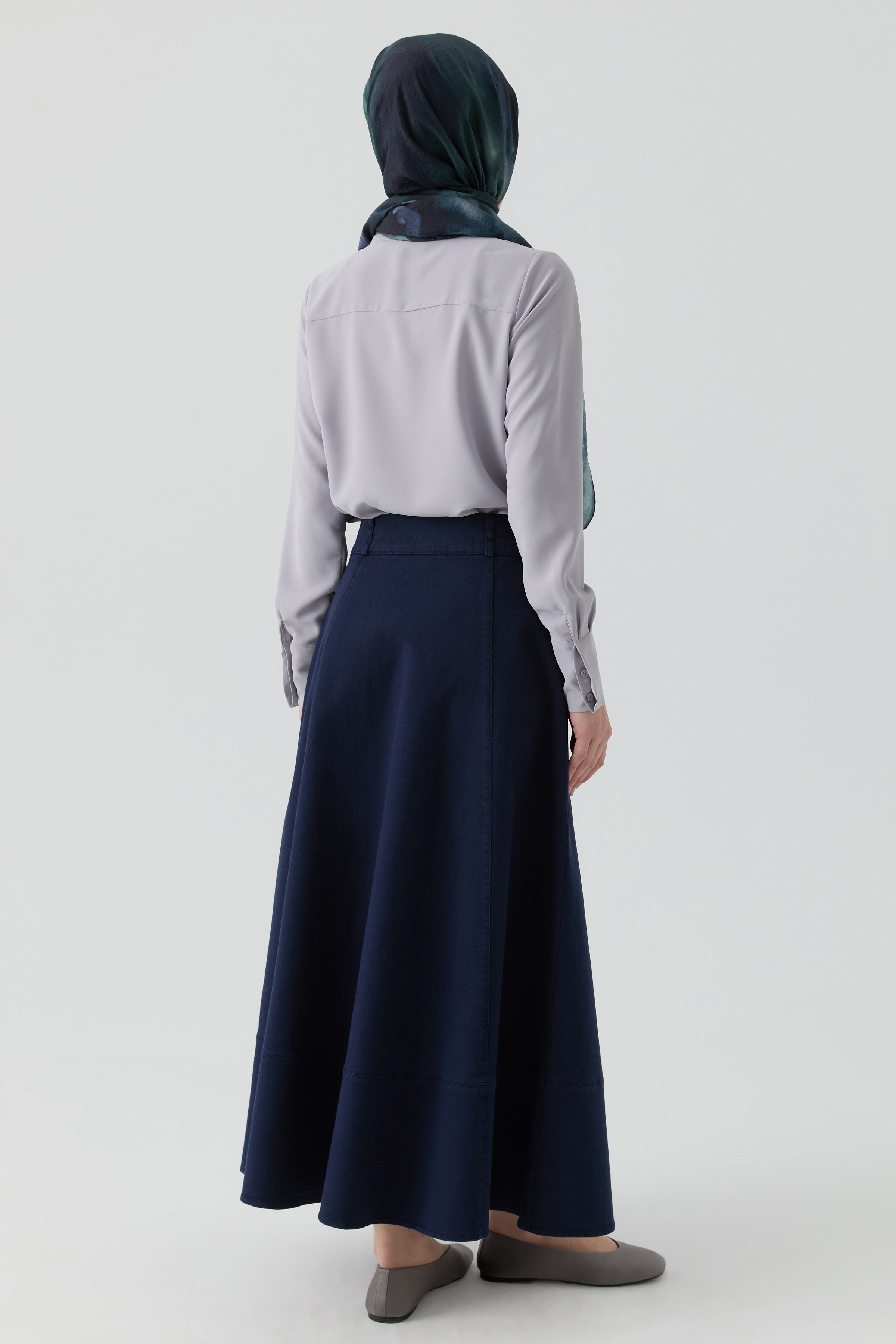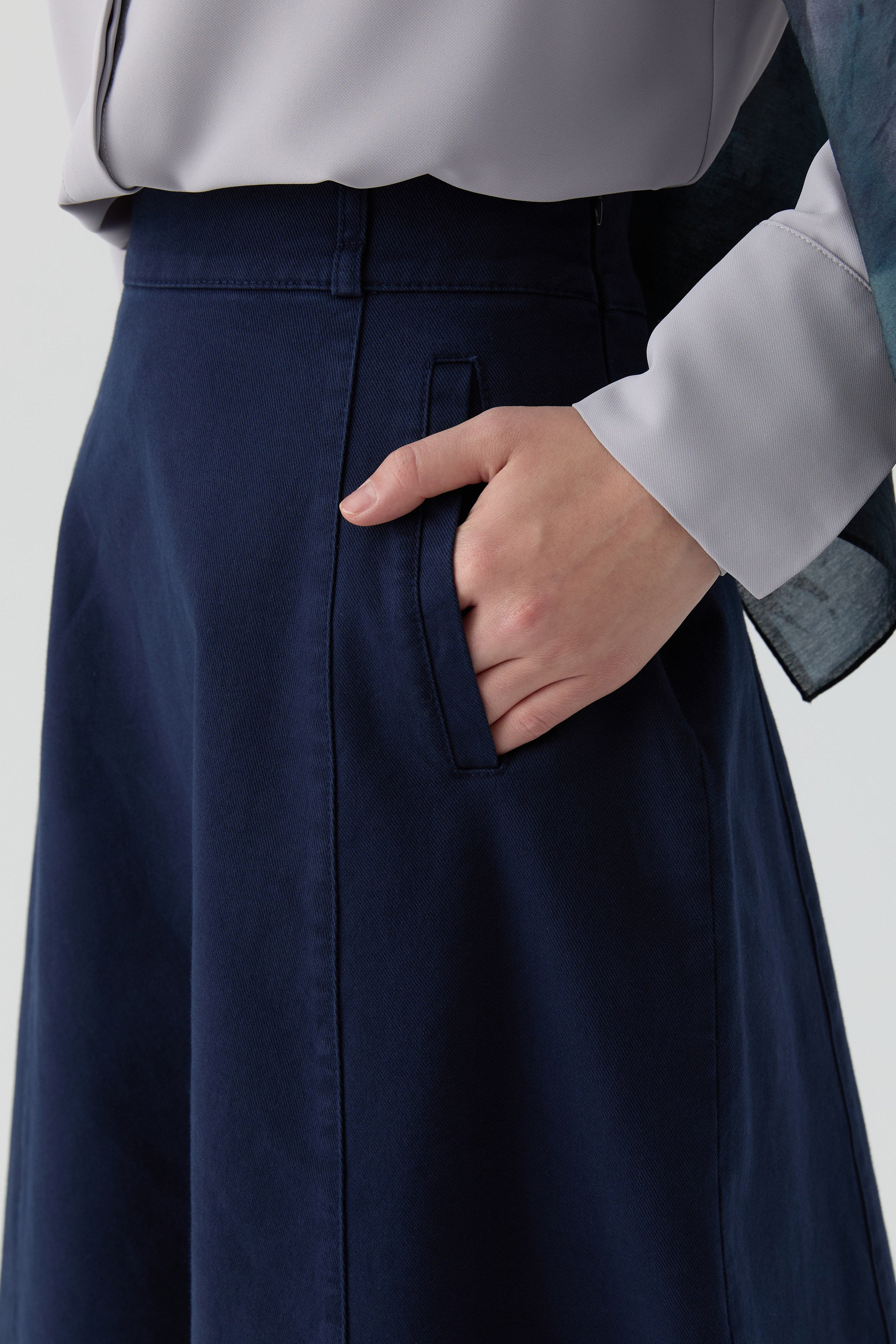 Confeccionada en lona resistente, esta falda ofrece comodidad para el día a día y realza la elegancia con su corte moderno. Su diseño sencillo permite combinarla fácilmente con diferentes blusas, convirtiéndola en una prenda imprescindible en tu armario.