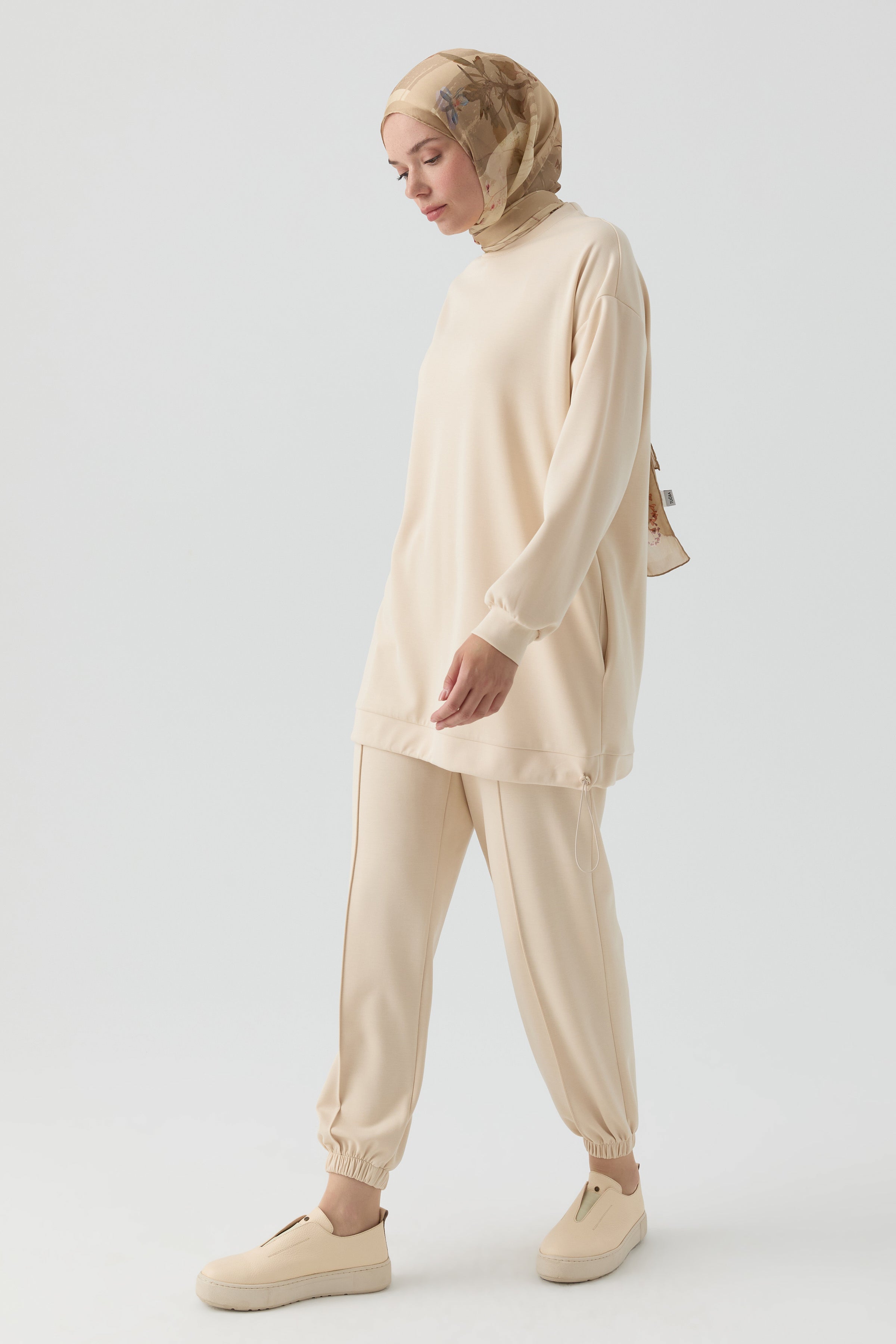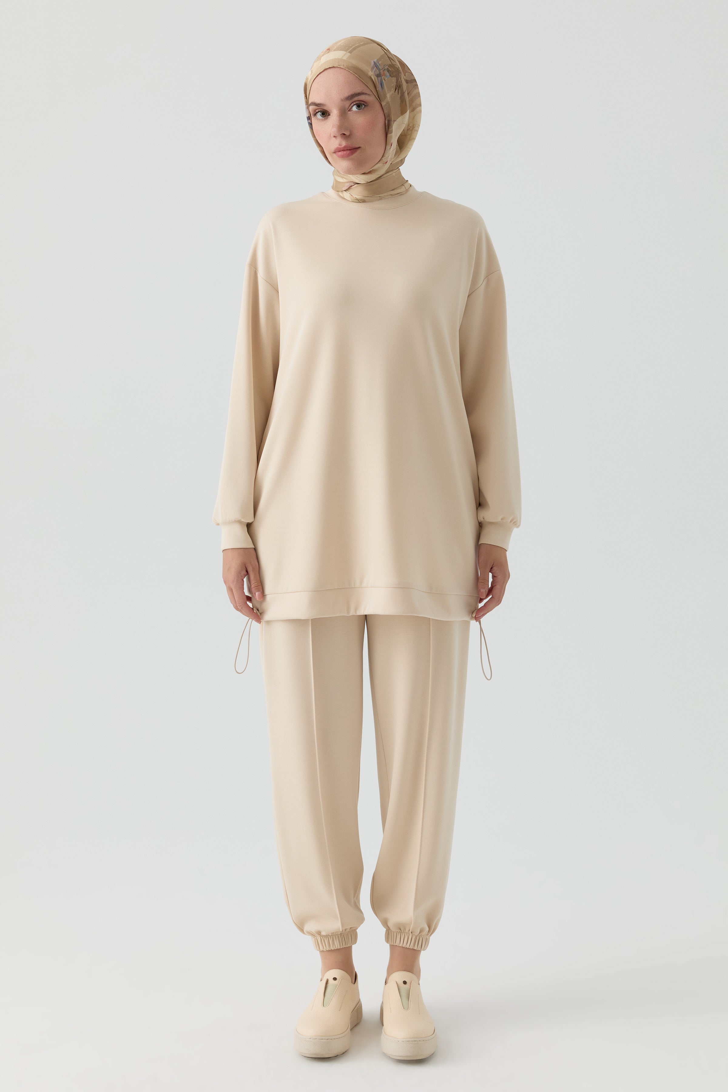 Conjunto de pantalón y túnica de punto - Beige