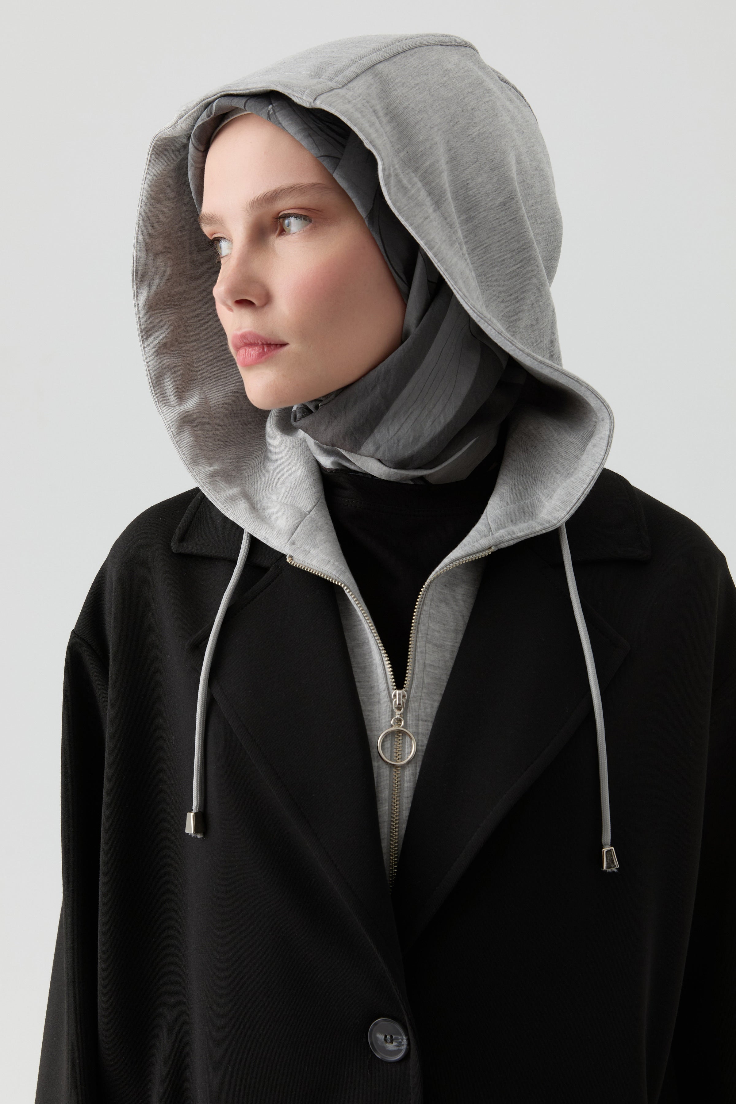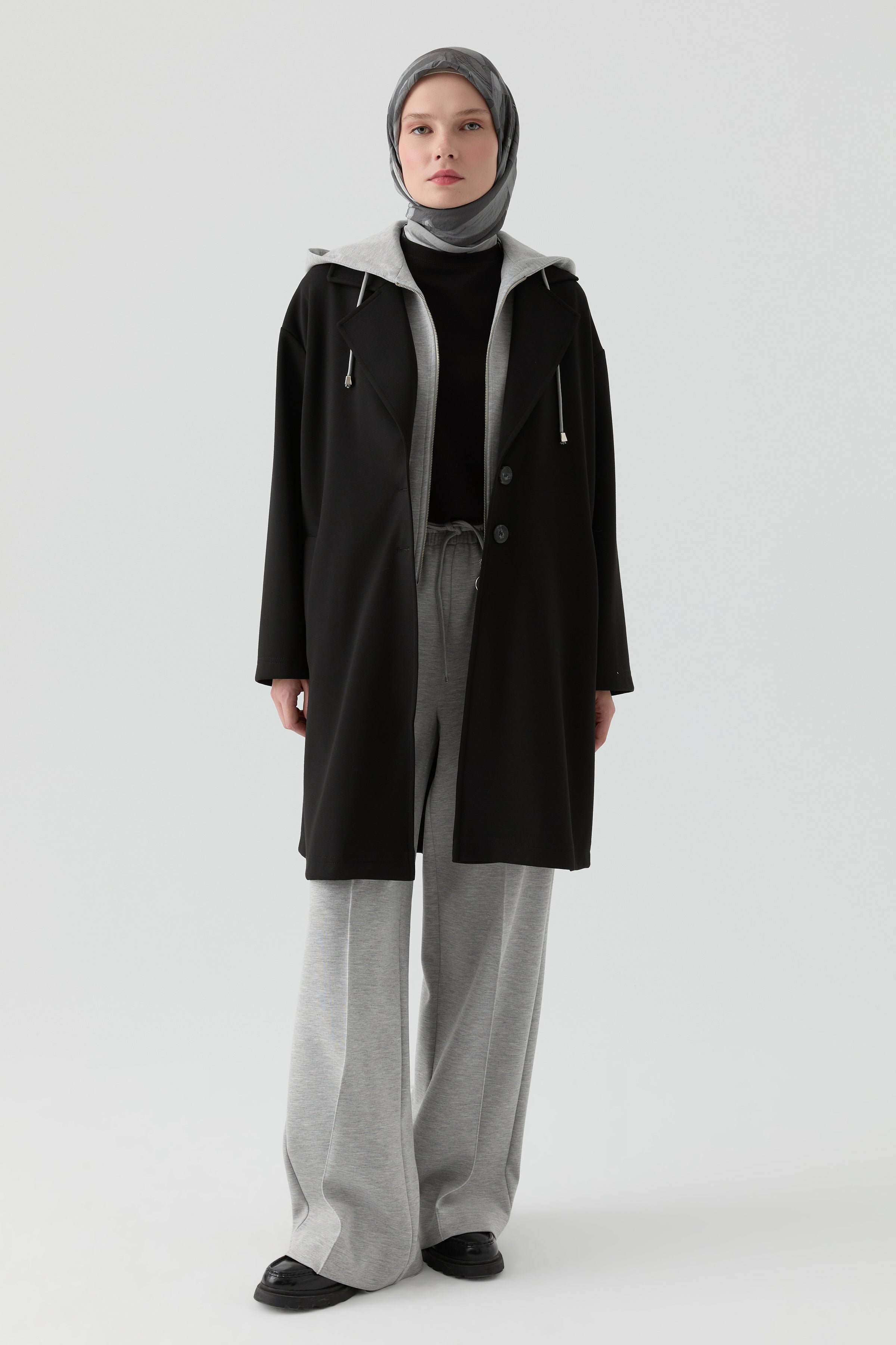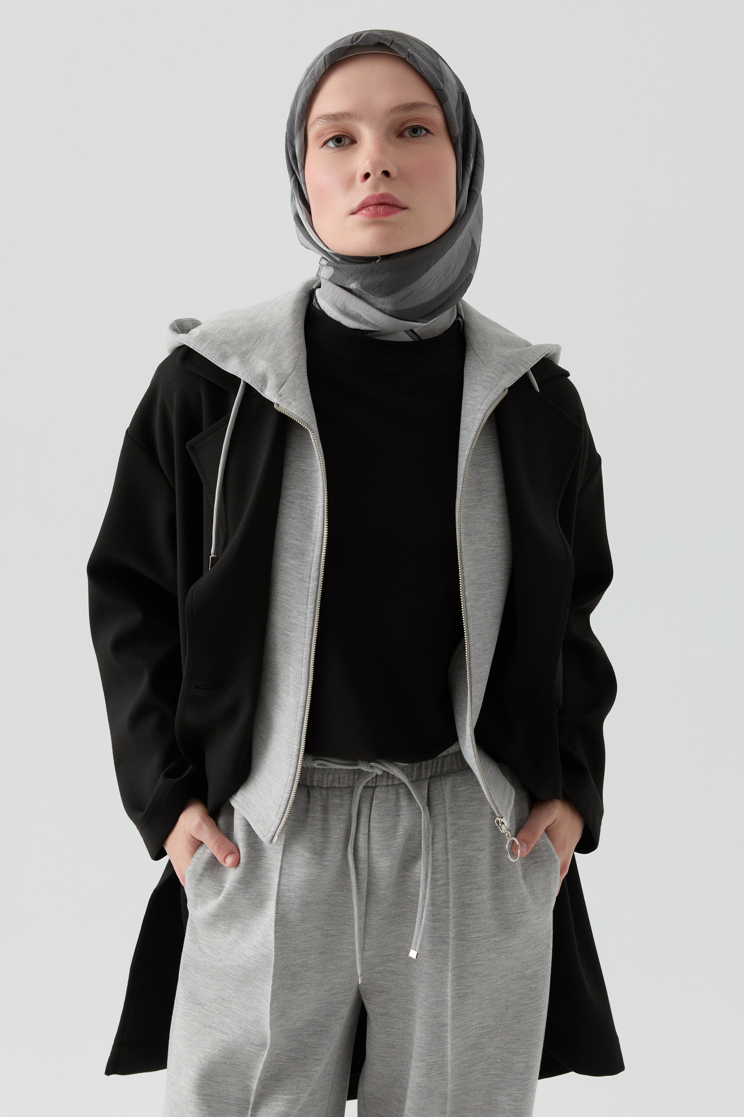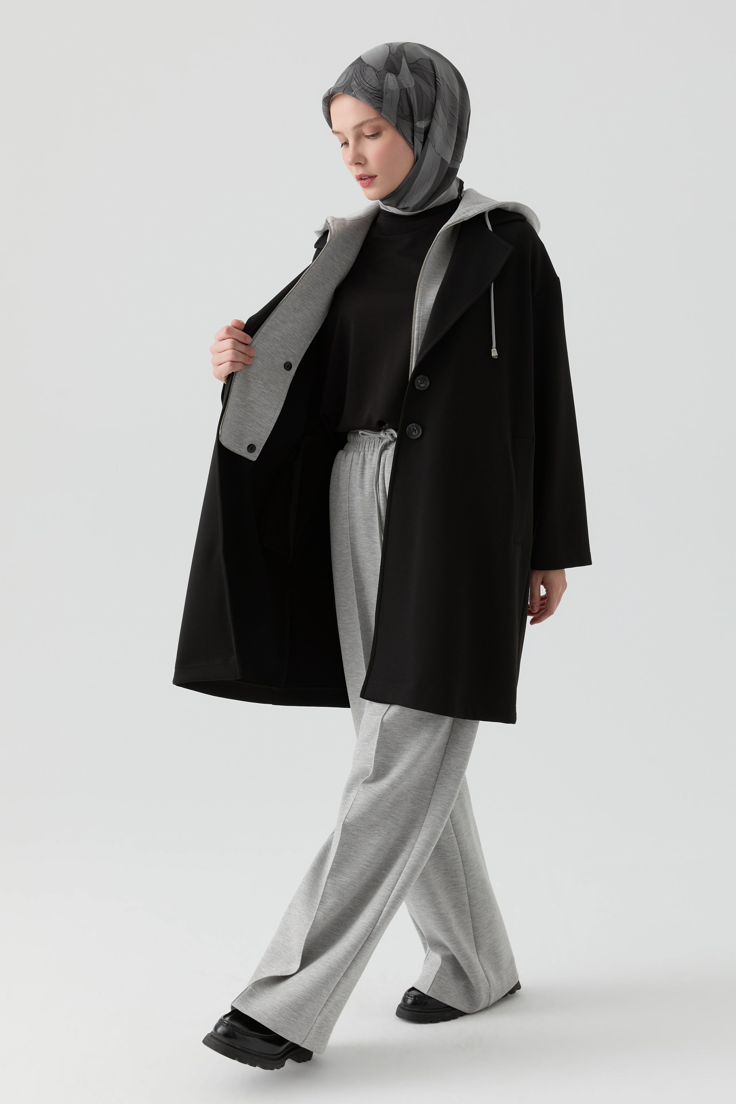 La capa de punto con capucha desmontable ofrece una opción funcional y elegante gracias a sus piezas desmontables y su detalle de capucha.