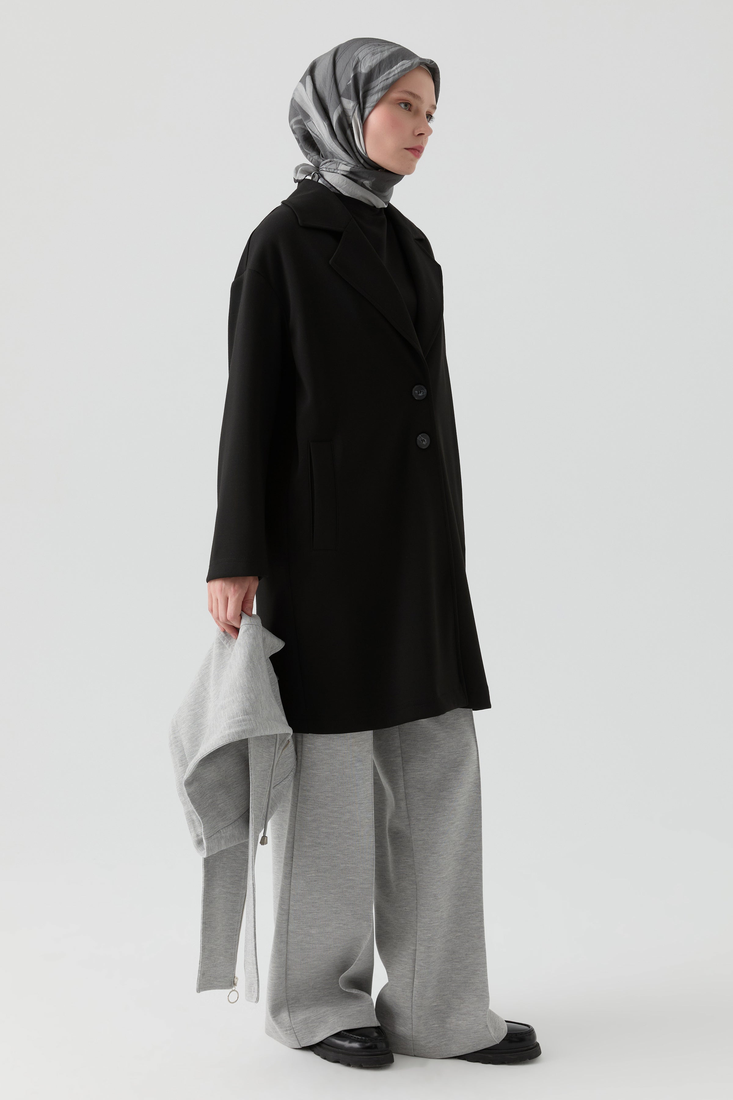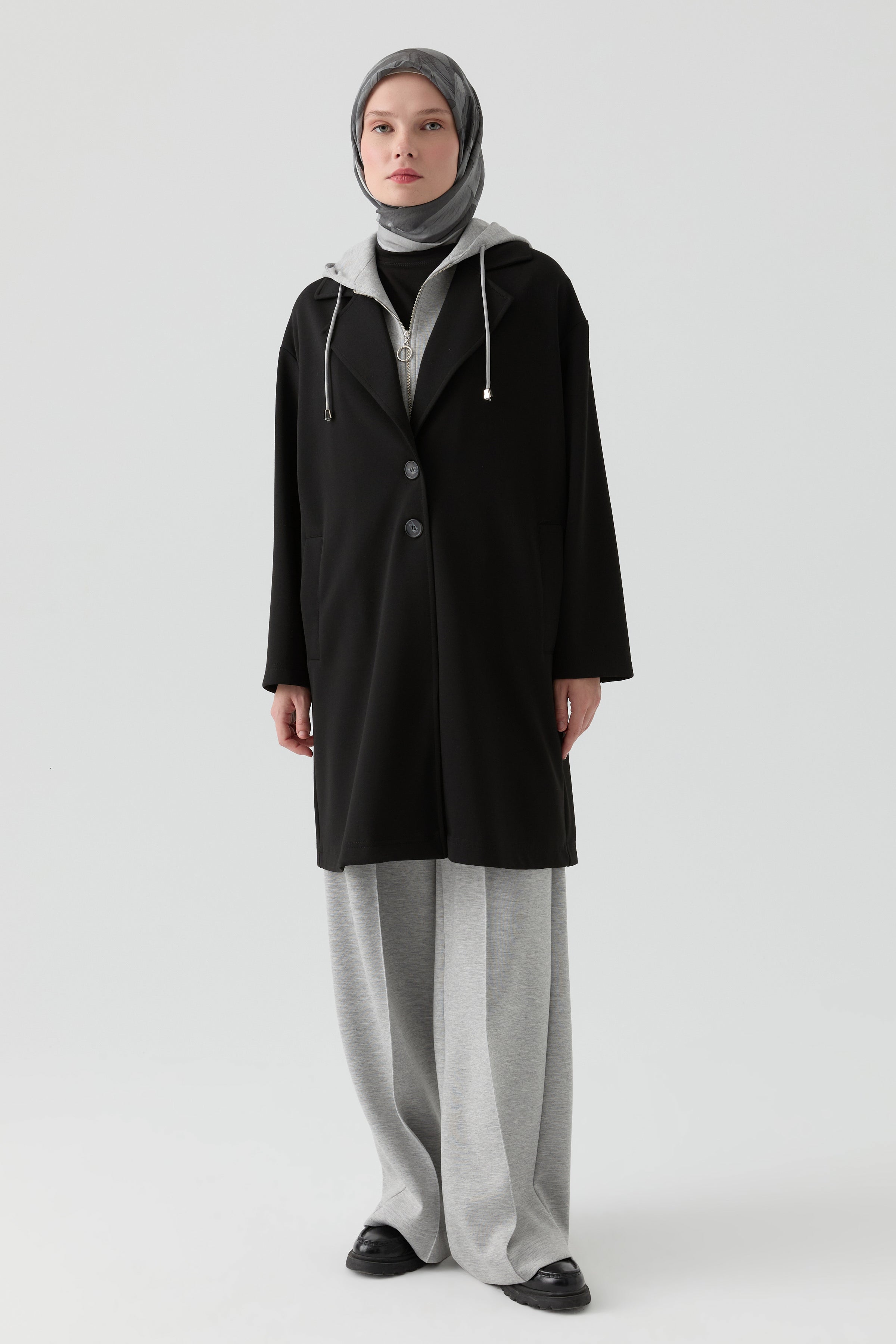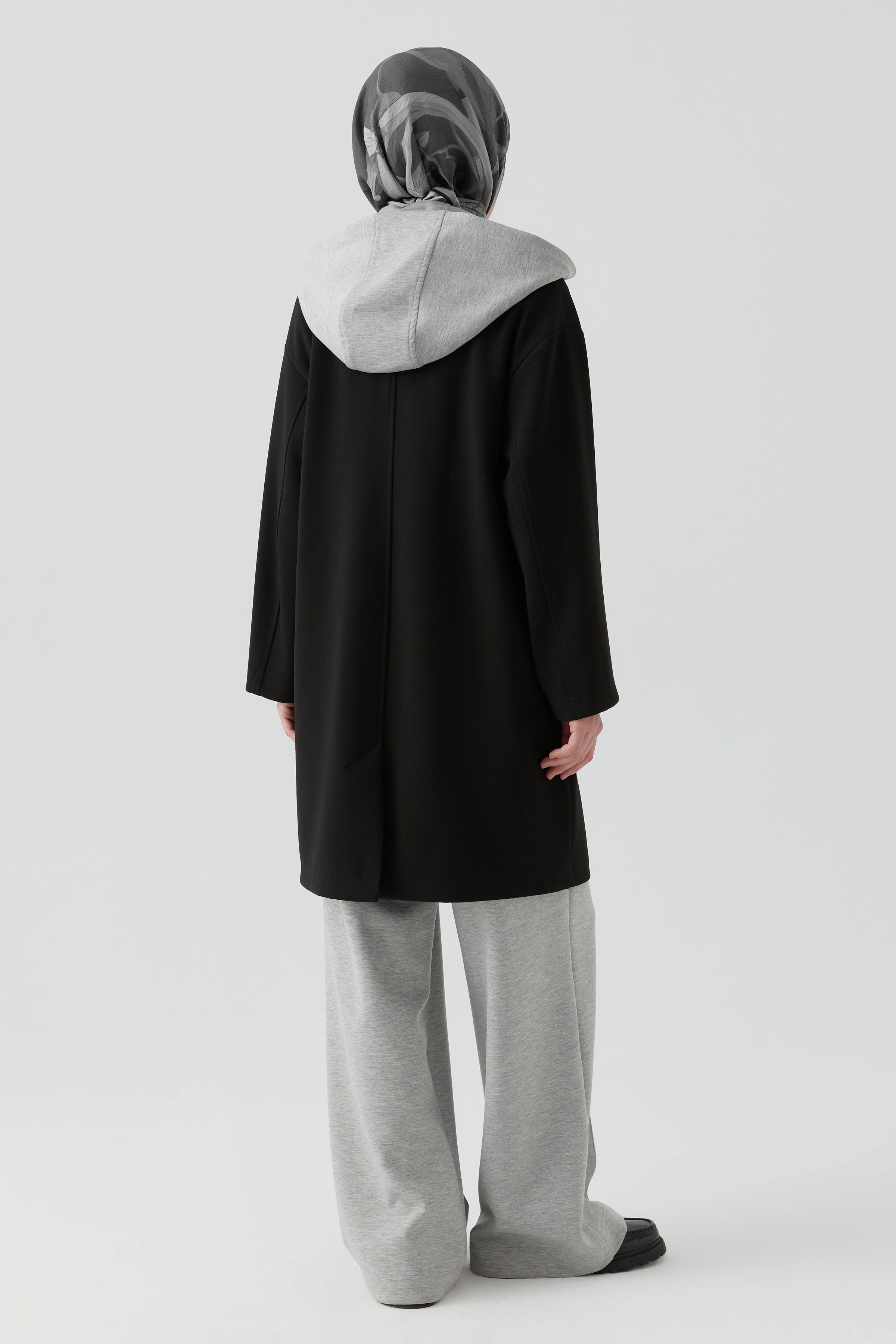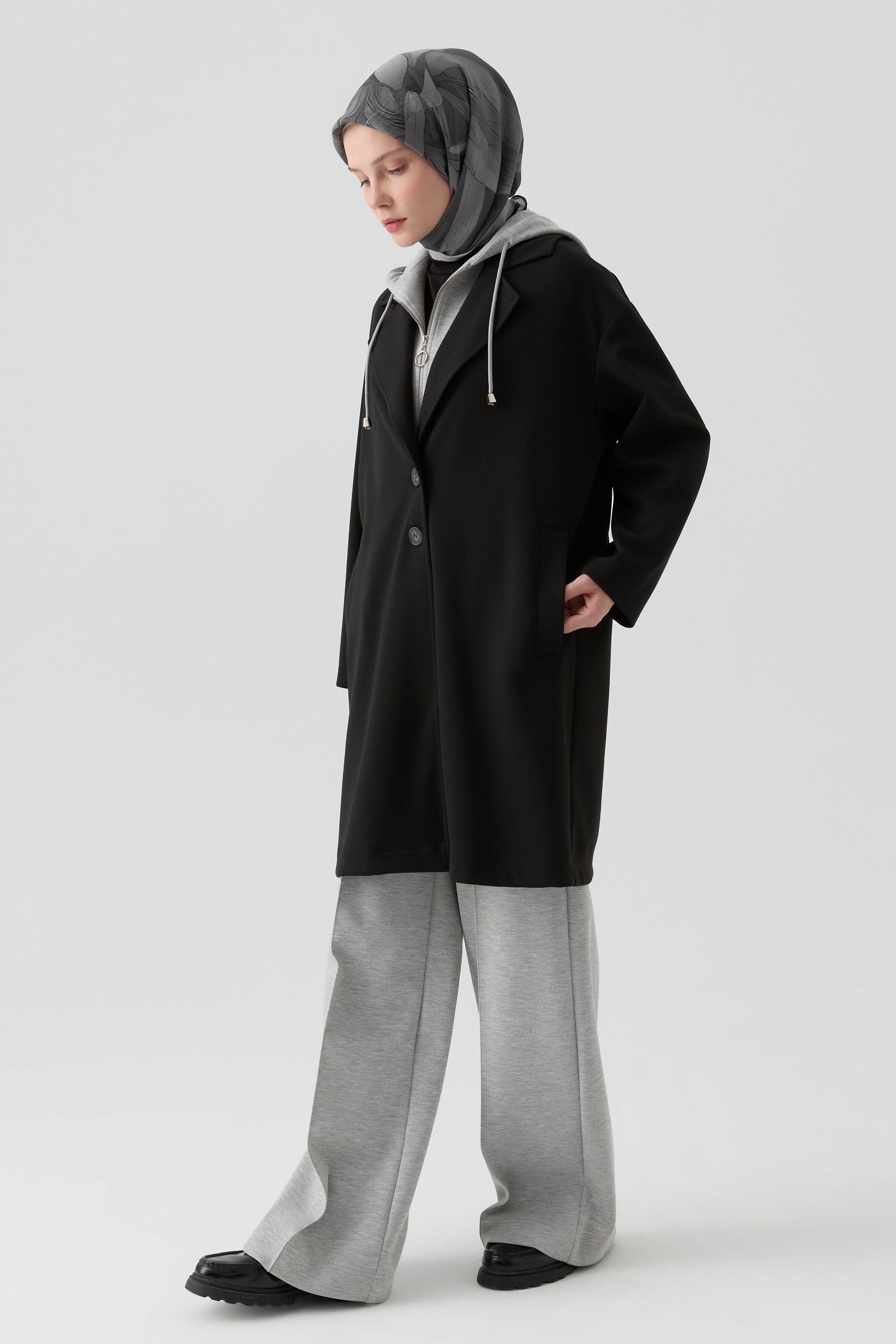 La capa de punto con capucha desmontable ofrece una opción funcional y elegante gracias a sus piezas desmontables y su detalle de capucha.