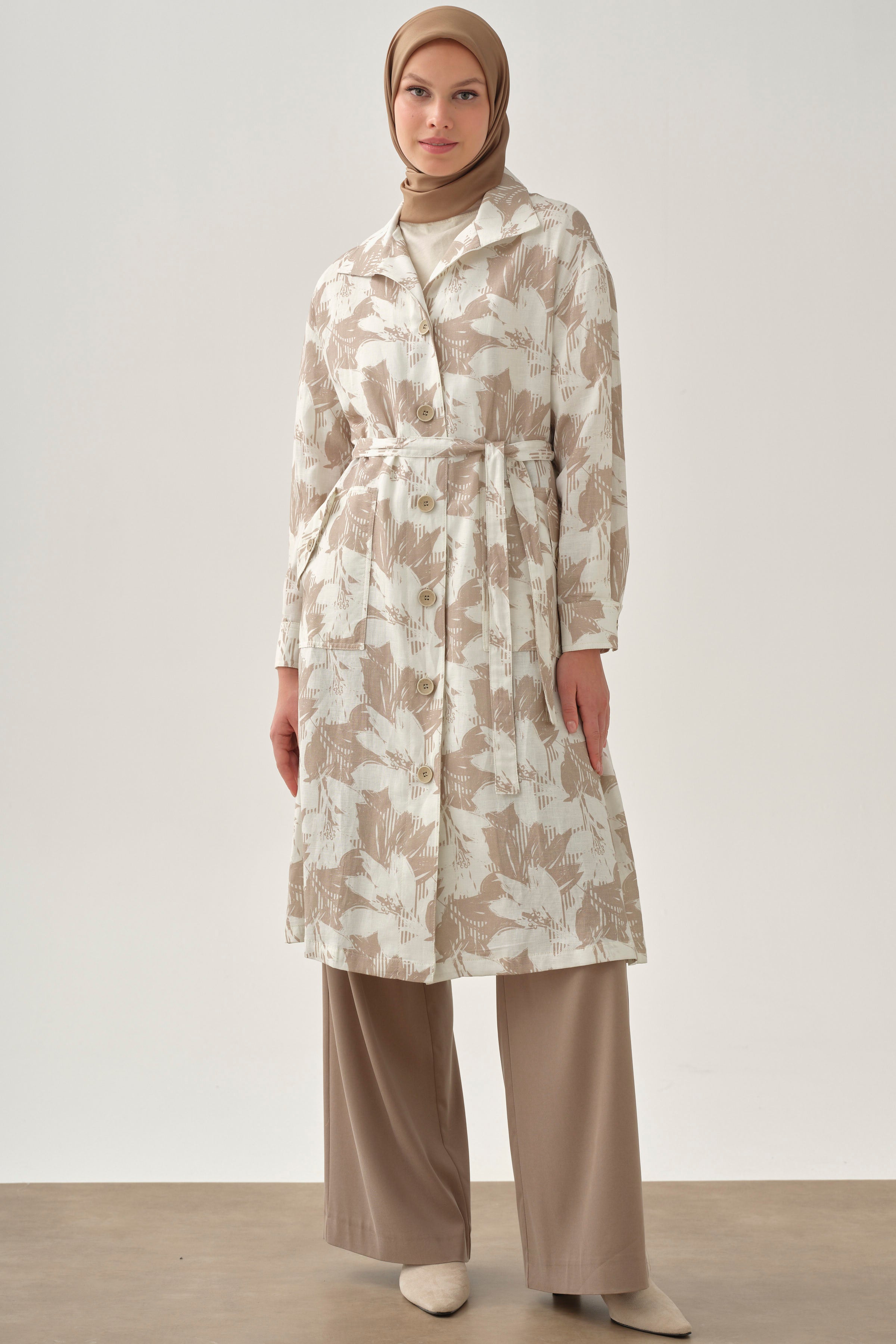 Texturas naturales y estampados modernos se unen: el abrigo de lino estampado, con su textura transpirable y ligera, está destinado a convertirse en un accesorio imprescindible para el verano. Las propiedades refrescantes del lino, combinadas con su diseño estampado, crean un look fresco y elegante.