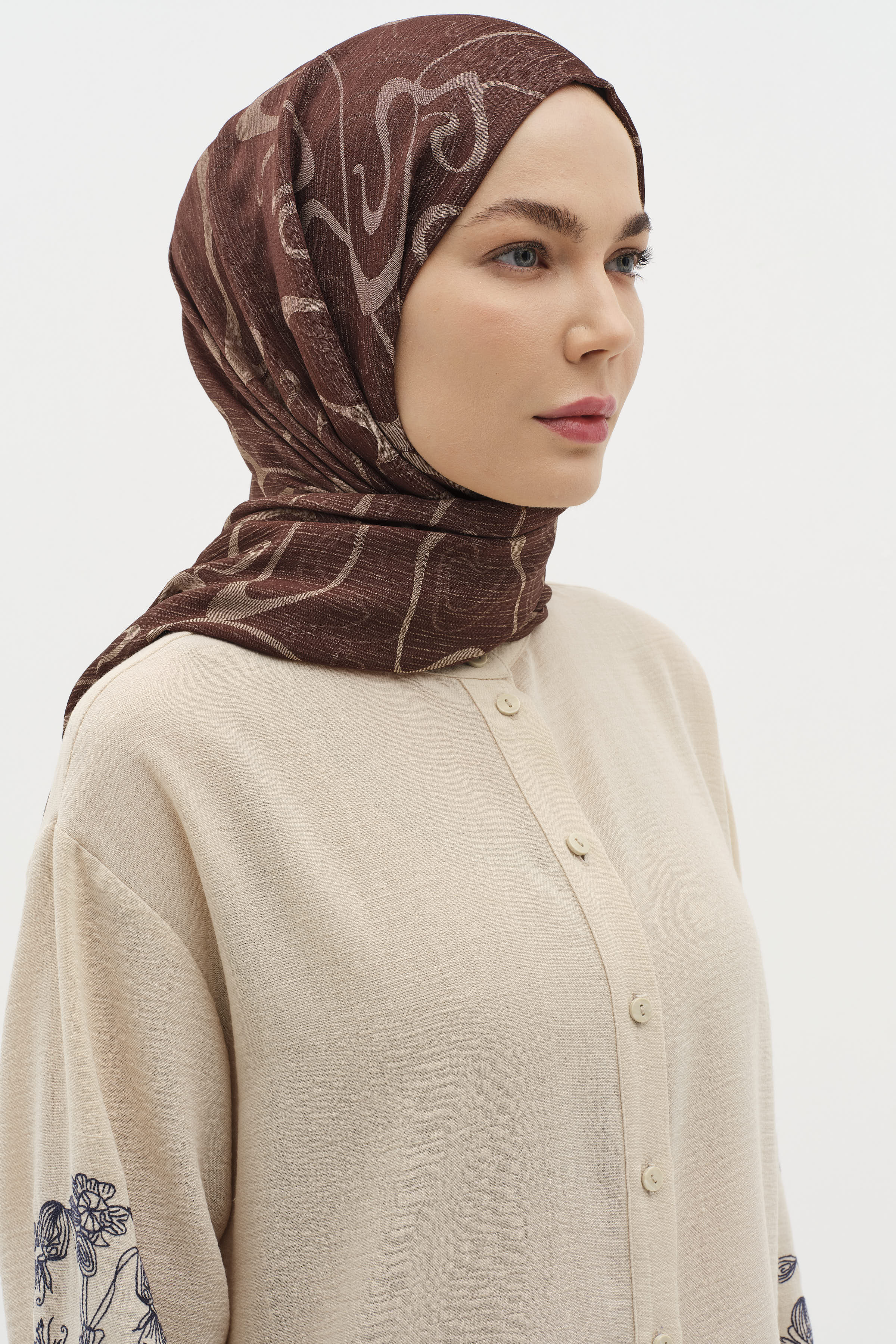 El chal de hilo dental con estampado de ondas, que combina elegancia y gracia, proporciona comodidad durante todo el día gracias a su textura ligera y suave.