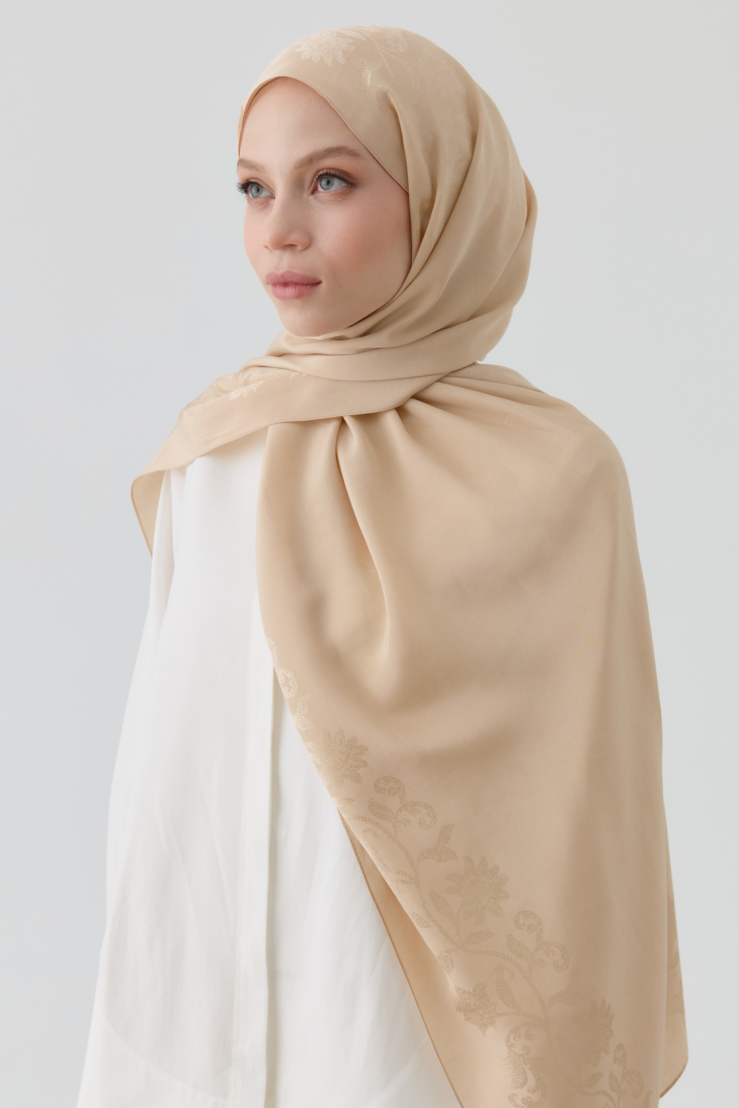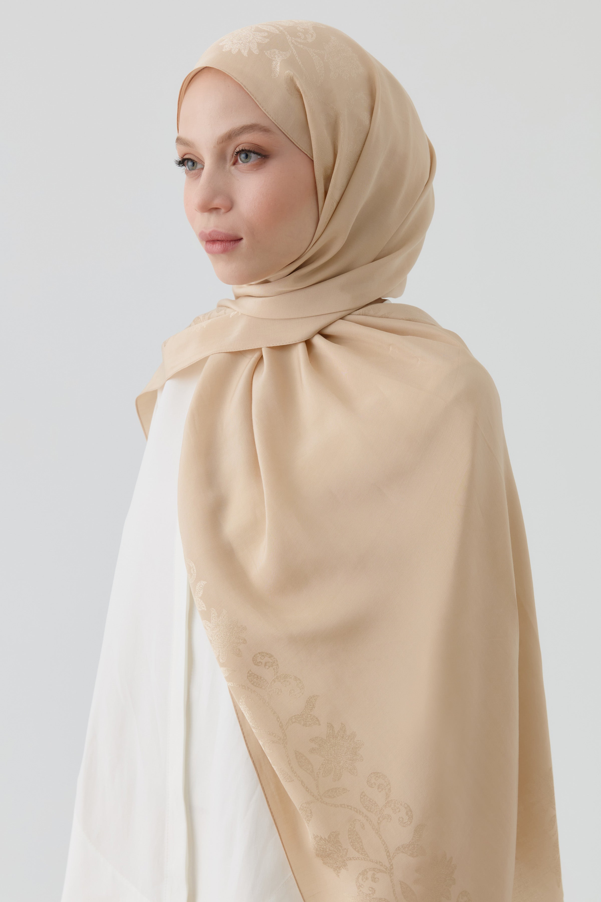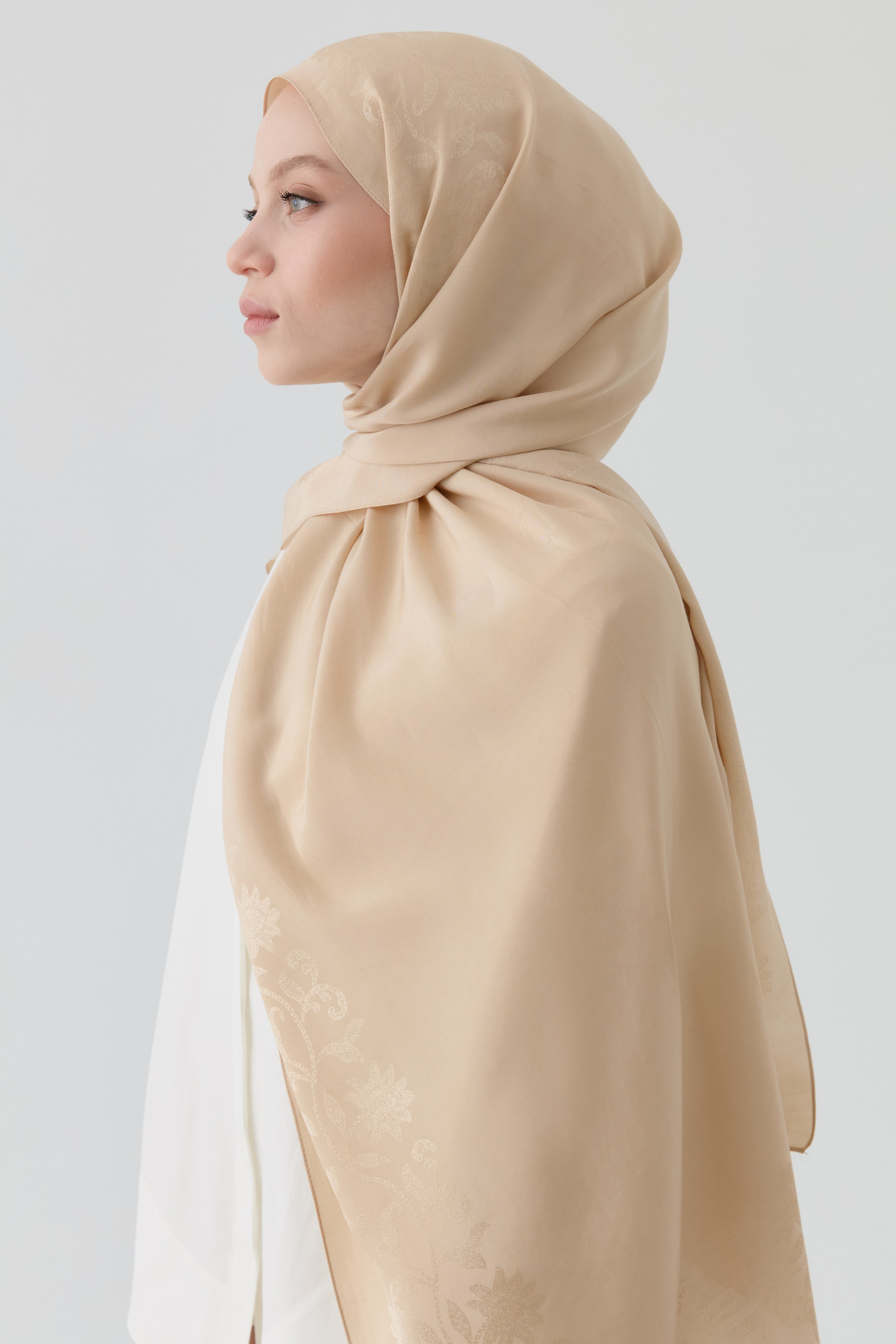 El chal natural Nevgül, con sus delicados detalles en los bordes, ofrece comodidad durante todo el día gracias a su textura ligera. Es la opción ideal para quienes buscan naturalidad y elegancia.
