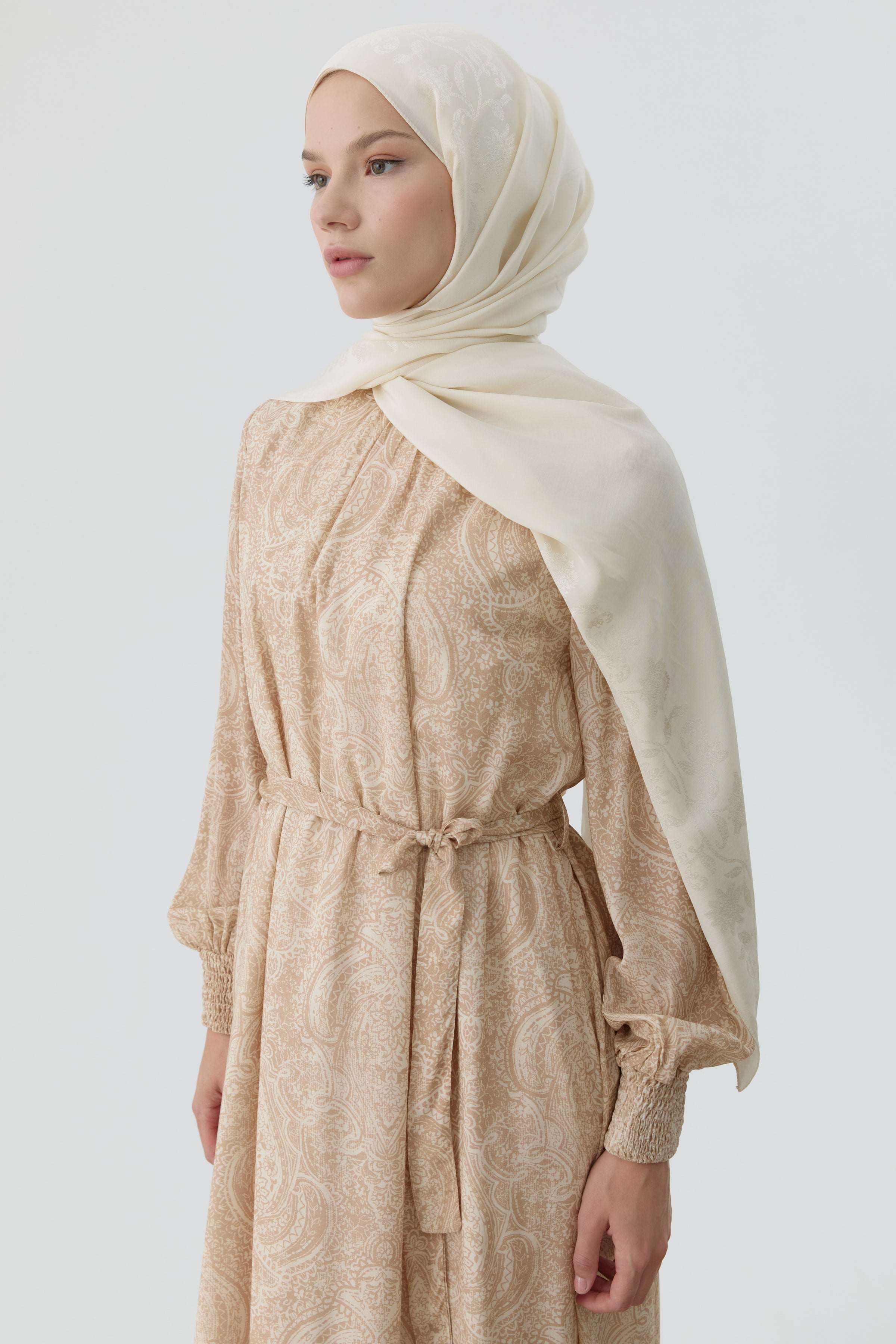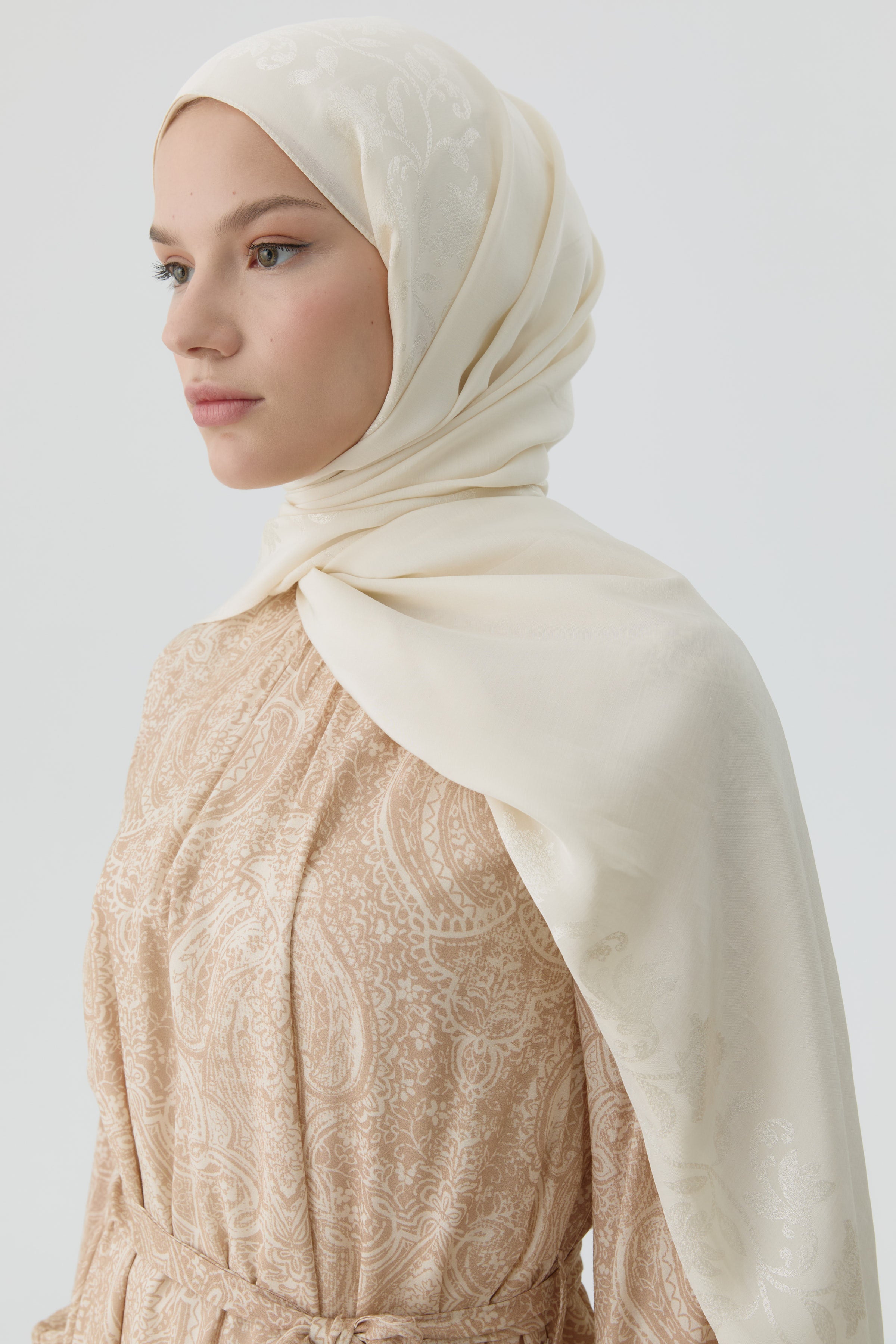 El chal natural Nevgül, con sus delicados detalles en los bordes, ofrece comodidad durante todo el día gracias a su textura ligera. Es la opción ideal para quienes buscan naturalidad y elegancia.
