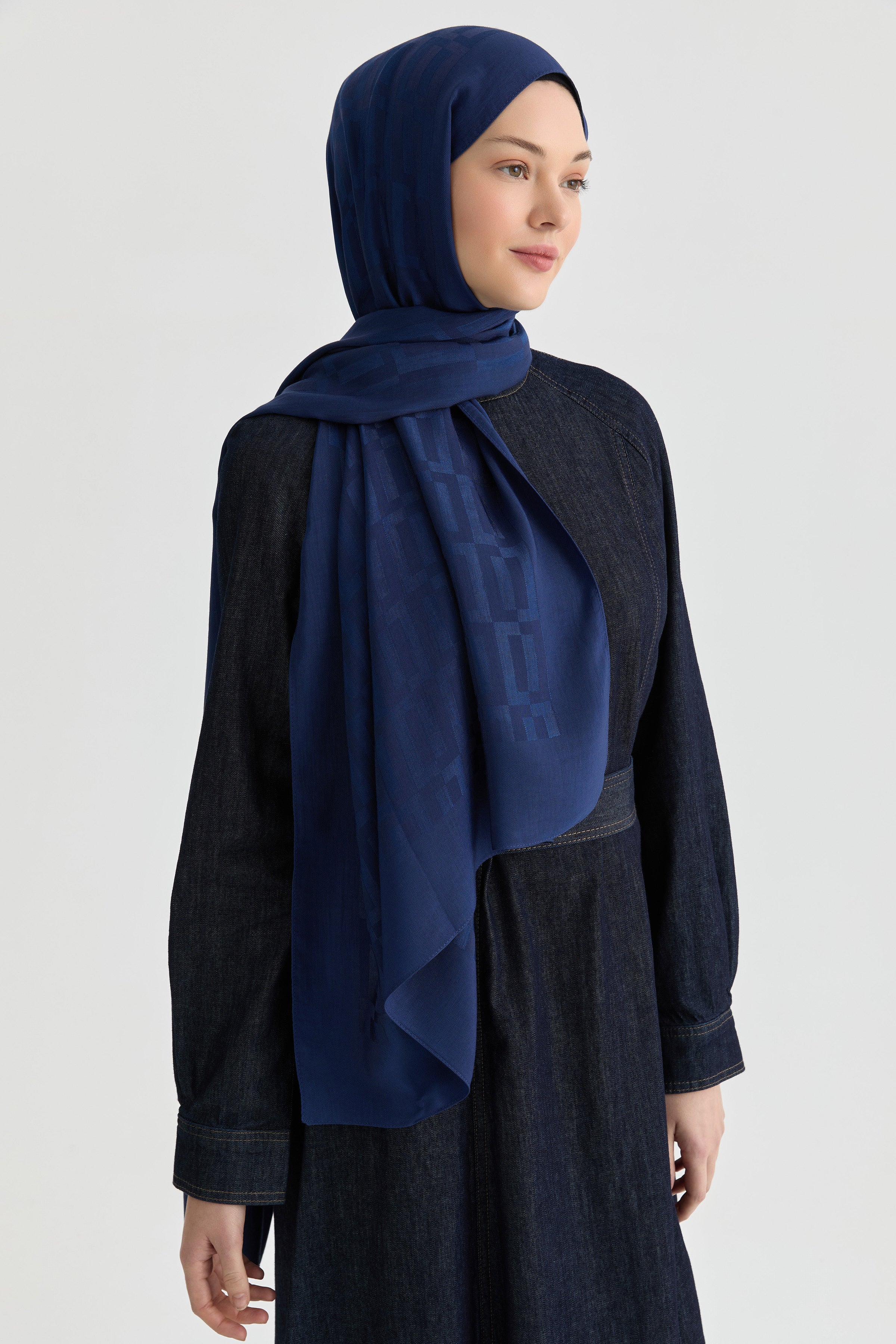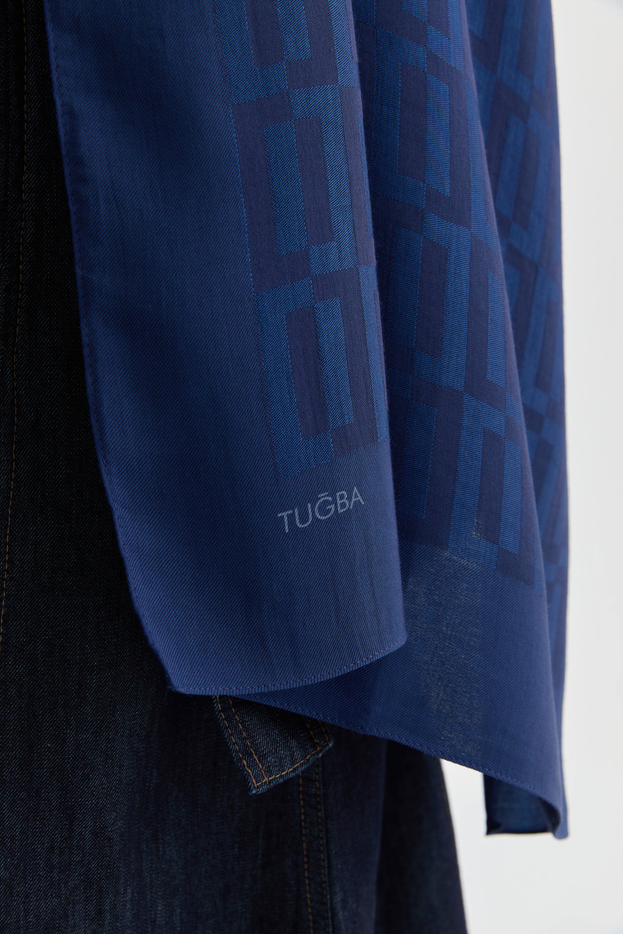 Etnik Motifli Naia Naturel Şal - Lacivert