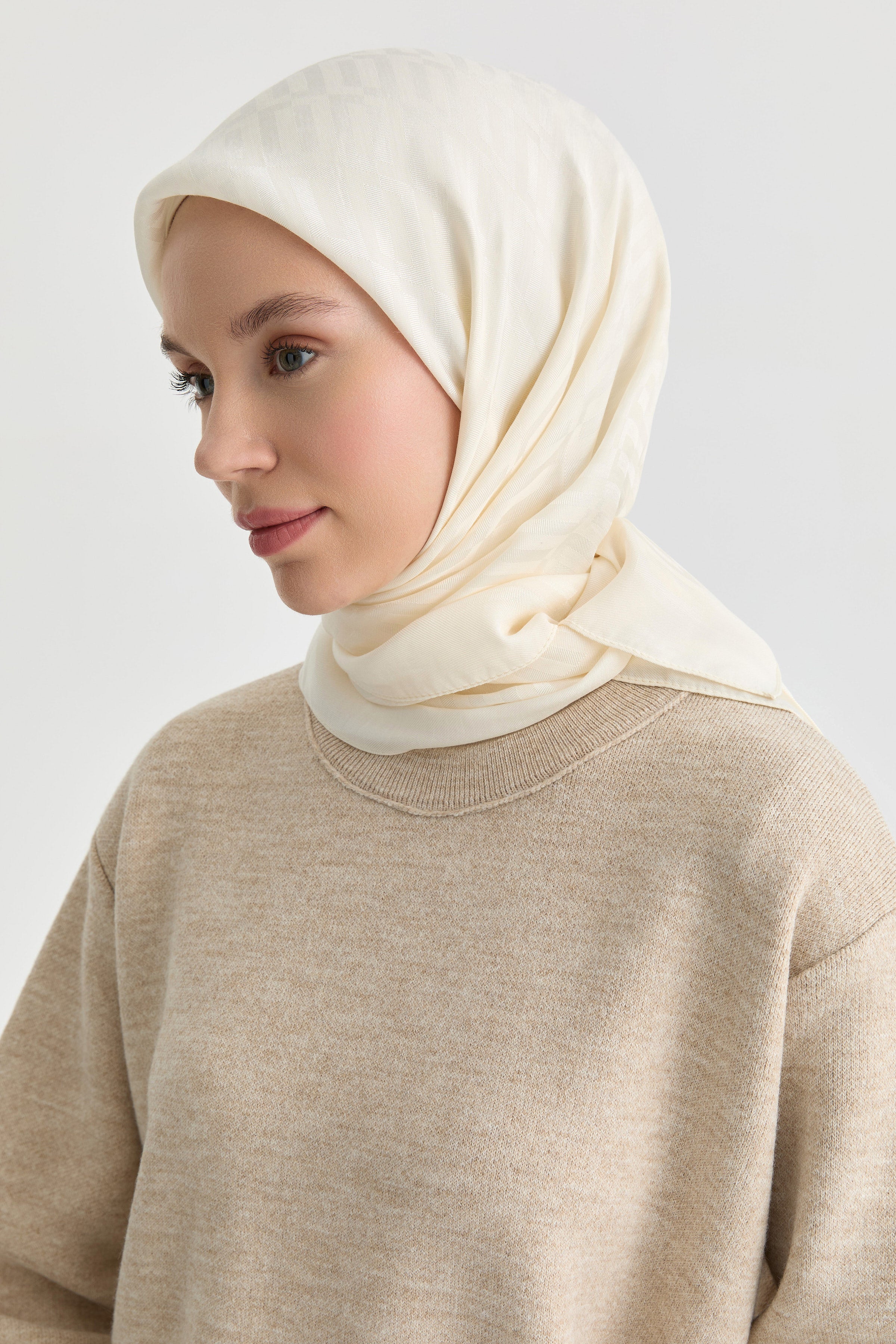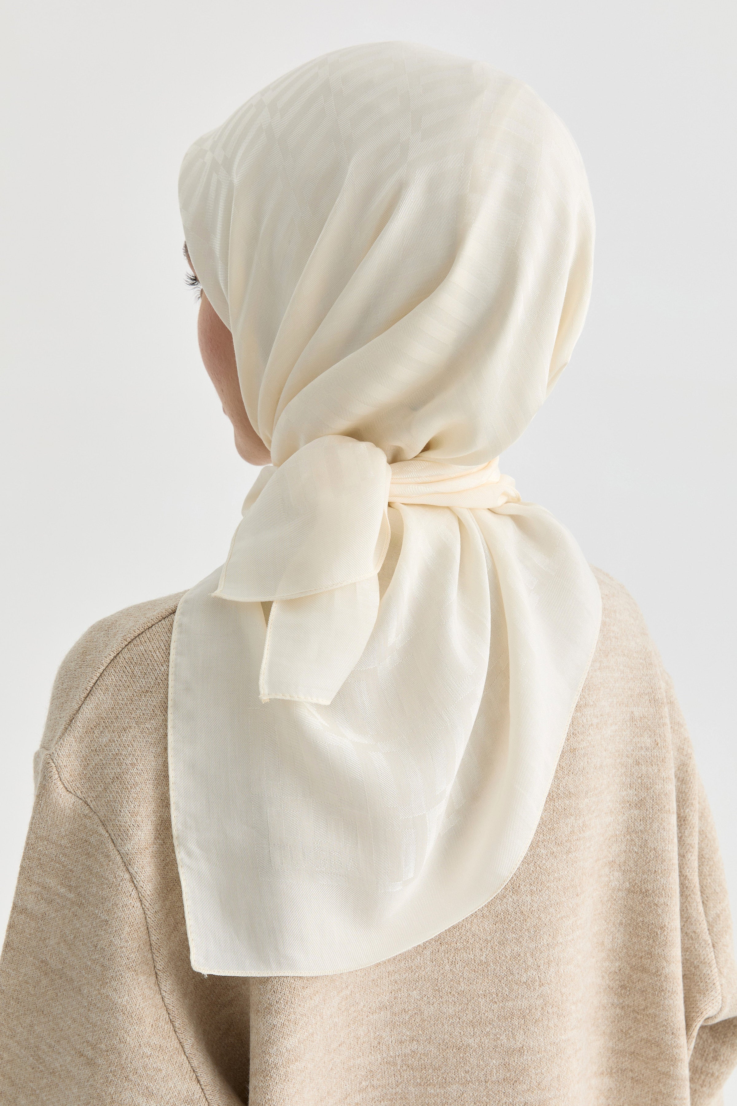 Zarif jakar dokusunda yer alan geometrik desenleriyle modern bir duruş sergileyen Naia naturel eşarp, doğal yapısıyla hafif ve nefes alan bir kullanım sunar. Sade şıklığı güçlü bir tasarımla tamamlayan zamansız bir parçadır.
