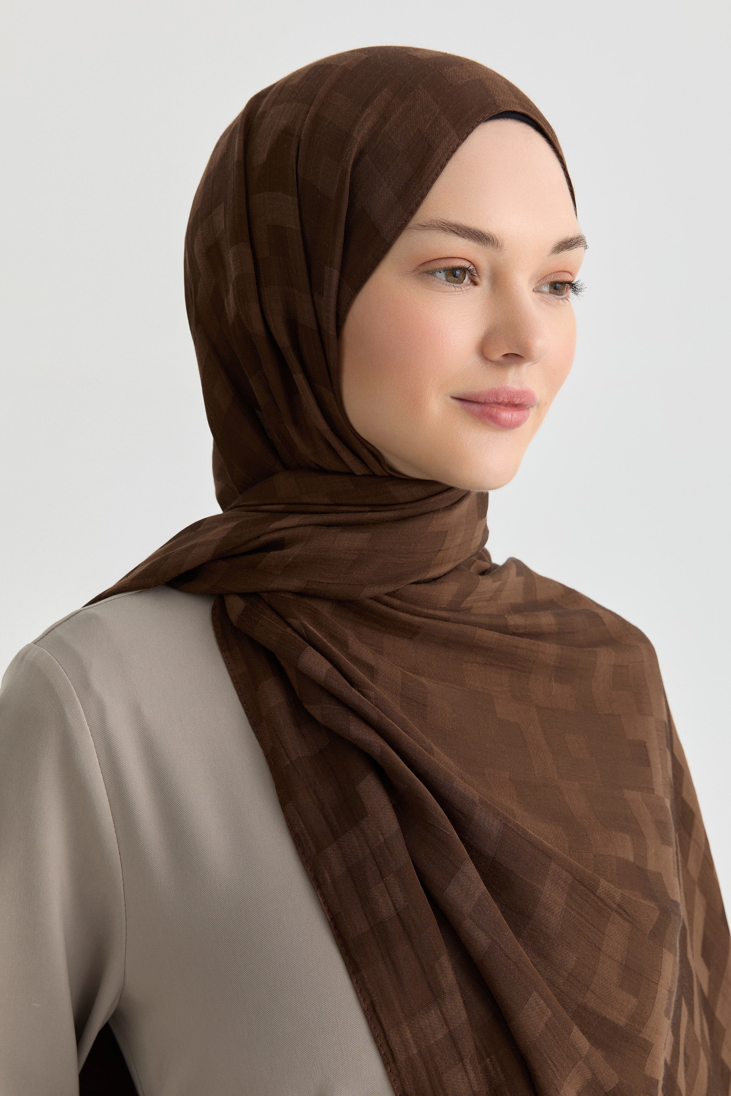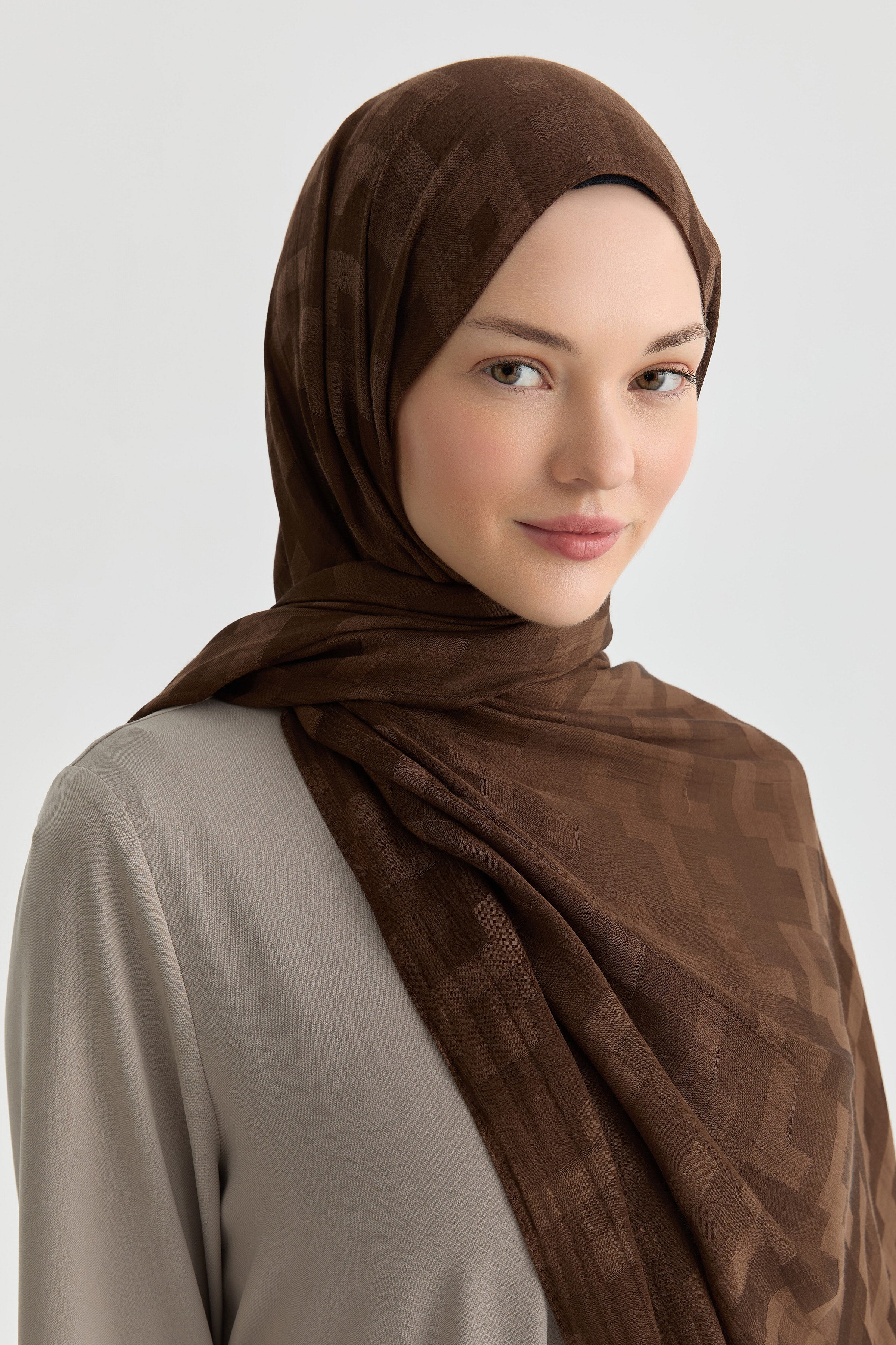 İnce jakar dokusu ve doğal liflerin yumuşak hissiyle öne çıkan Serra şal, sade kombinlere dahi sofistike bir hava katar. Hafif yapısı gün boyu konfor sağlarken, jakarın dokusal derinliği şala modern ve seçkin bir görünüm kazandırır.