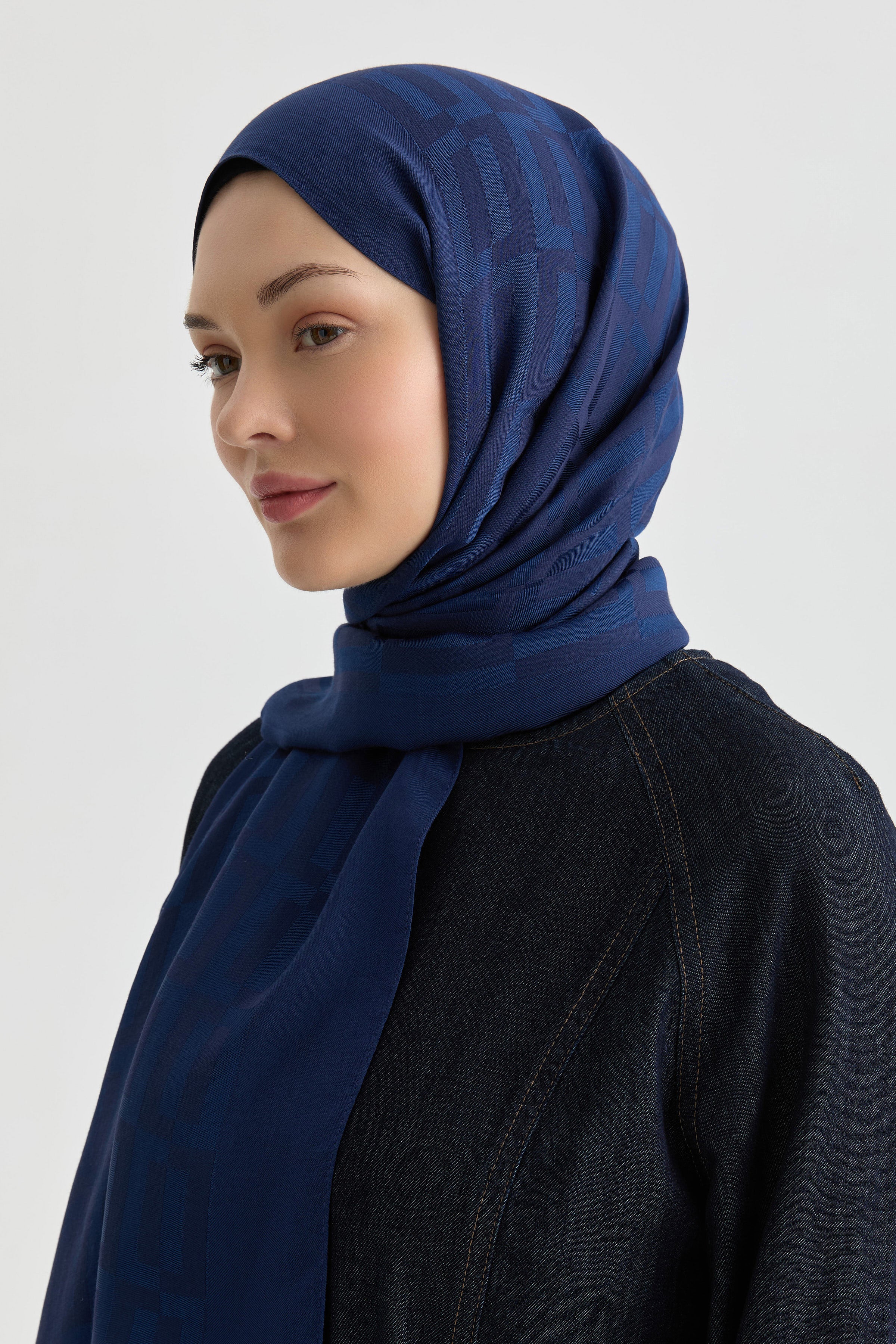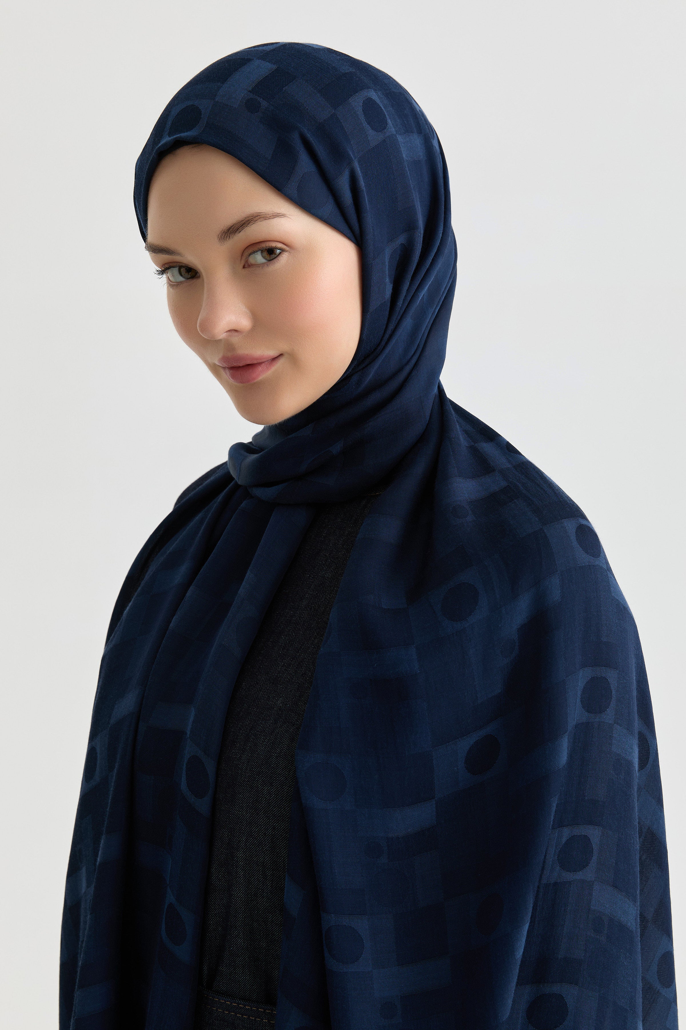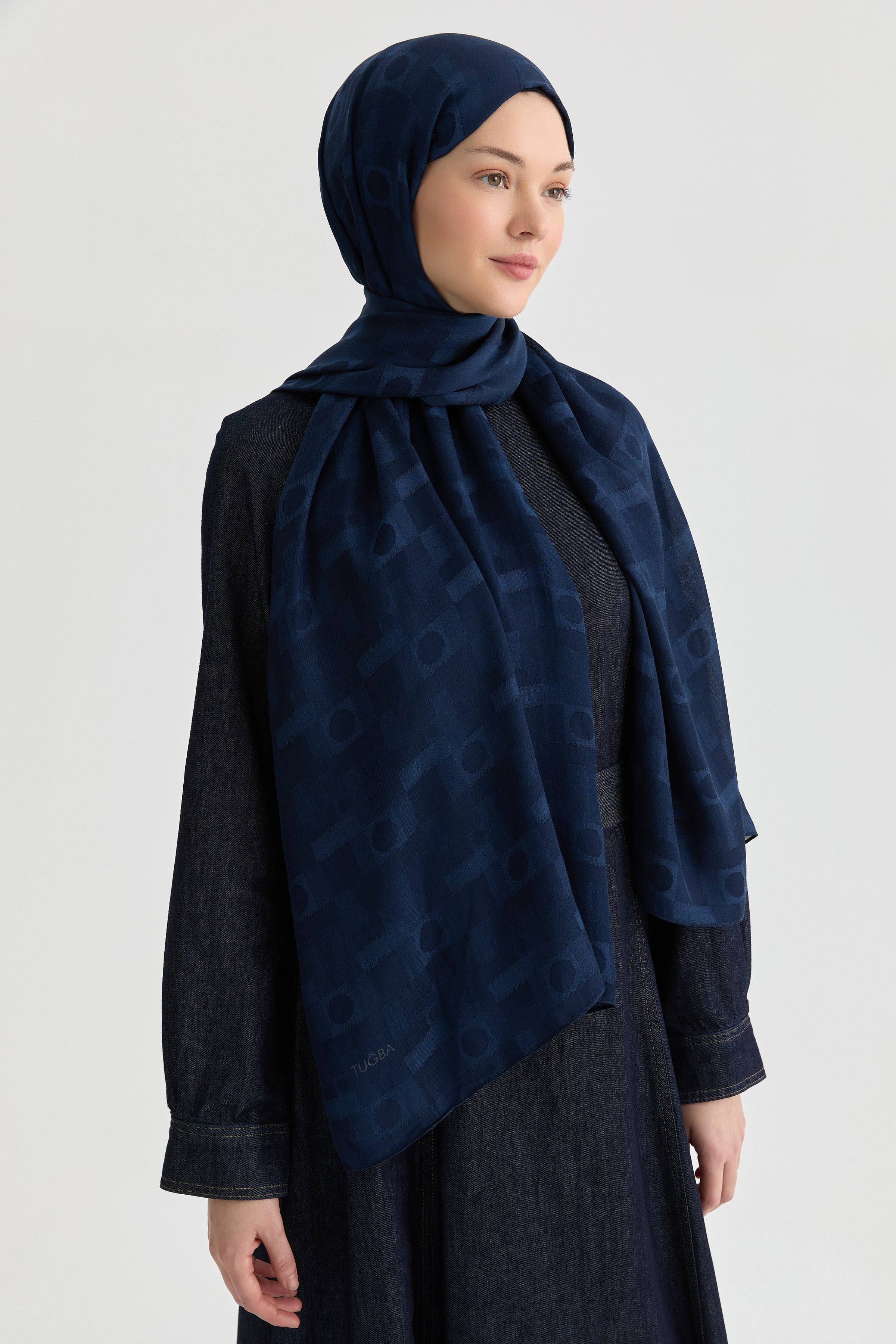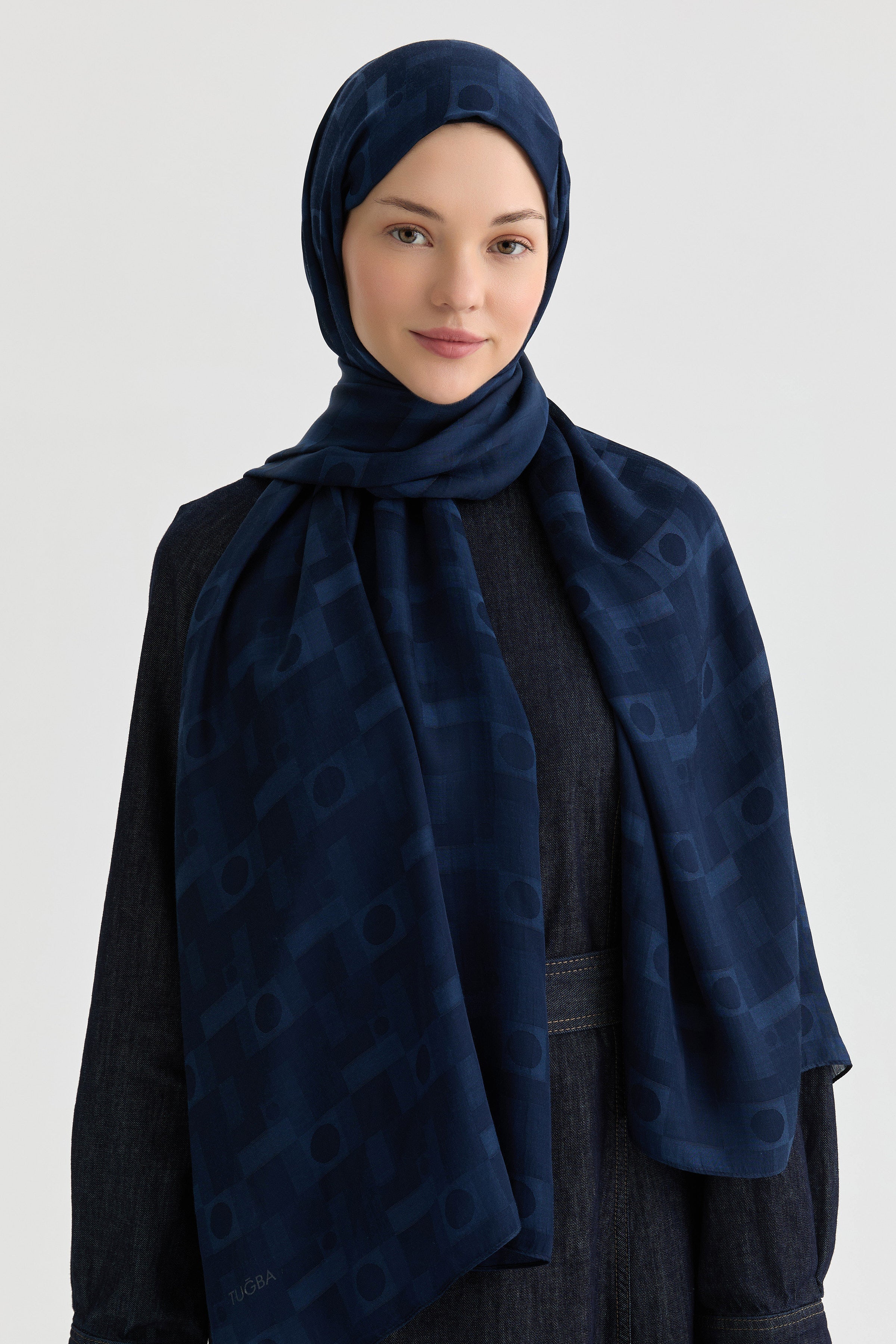 Etnik Motifli Naia Naturel Şal - Lacivert