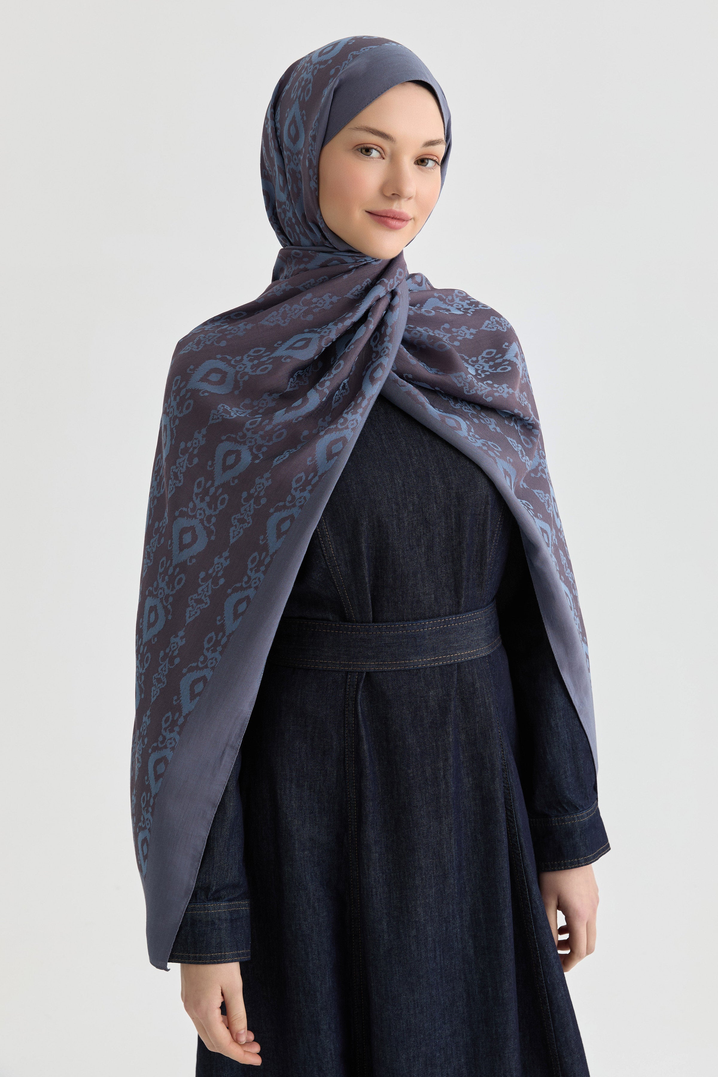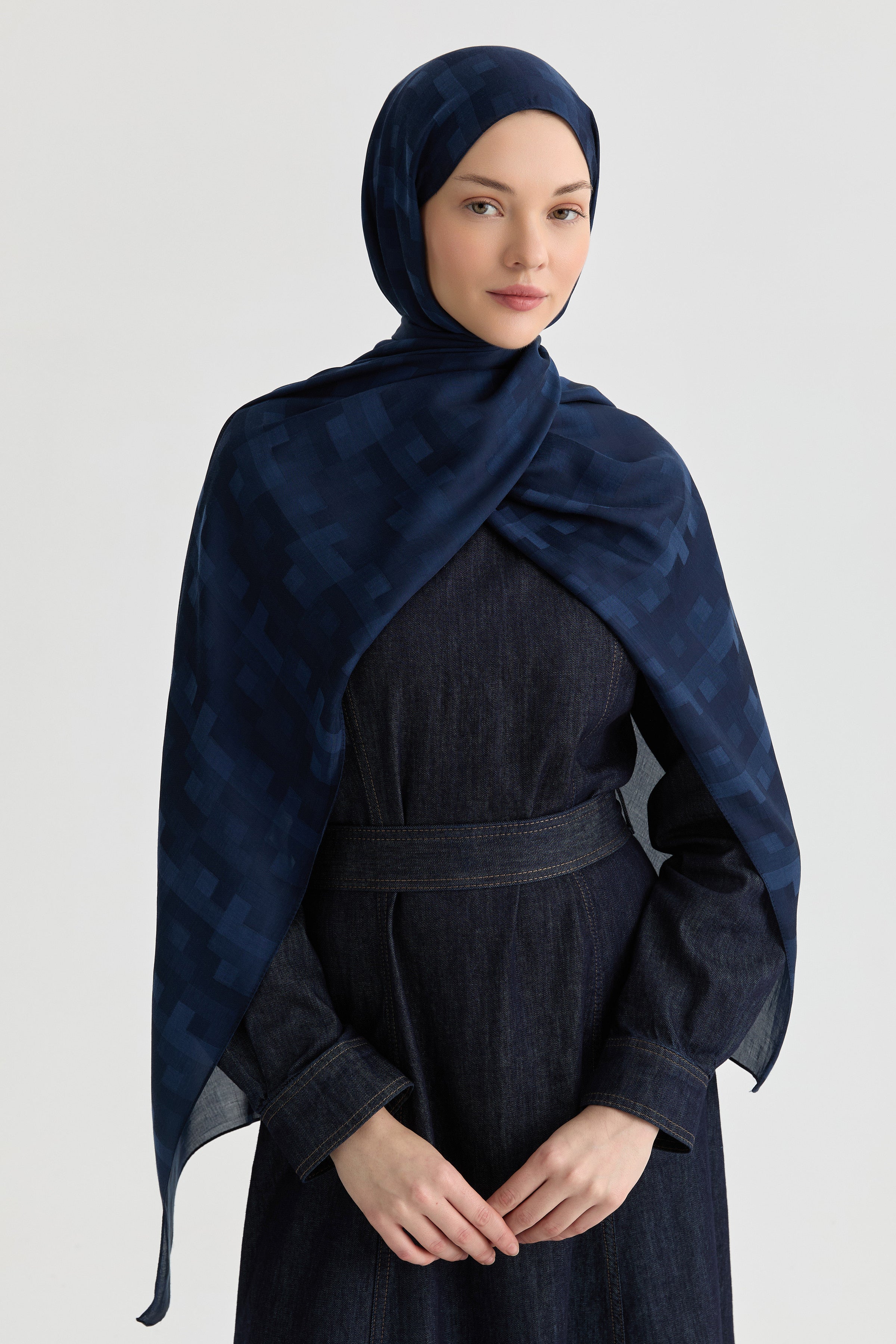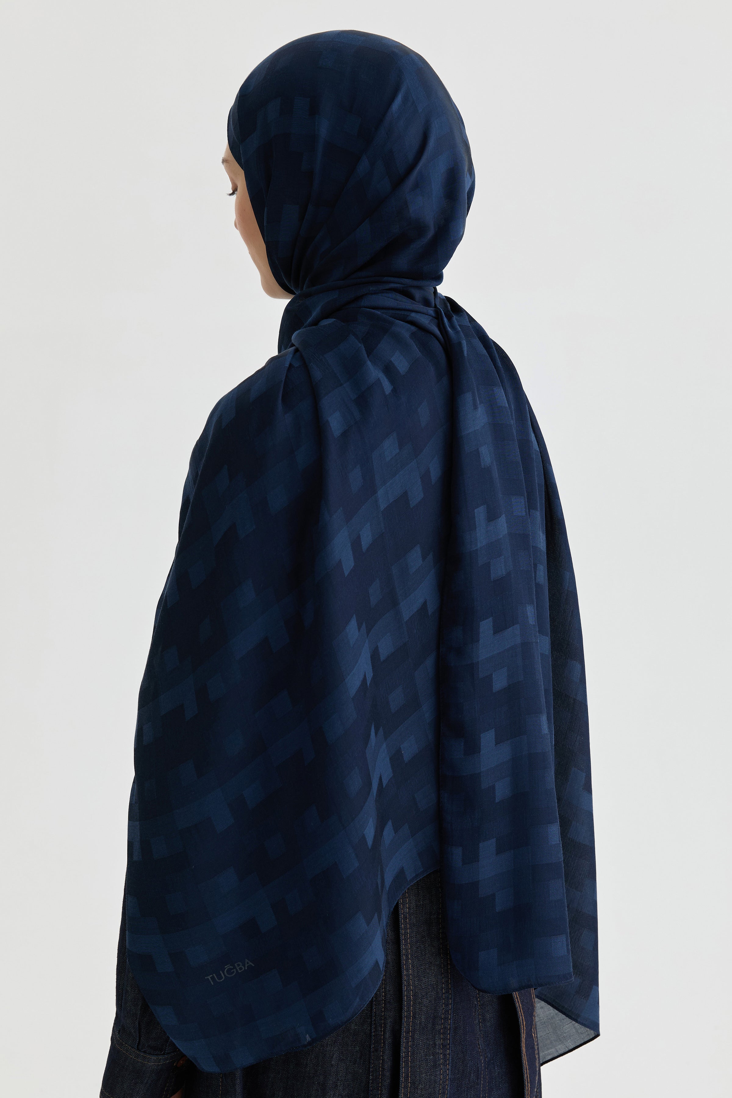Etnik Motifli Naia Naturel Şal - Lacivert