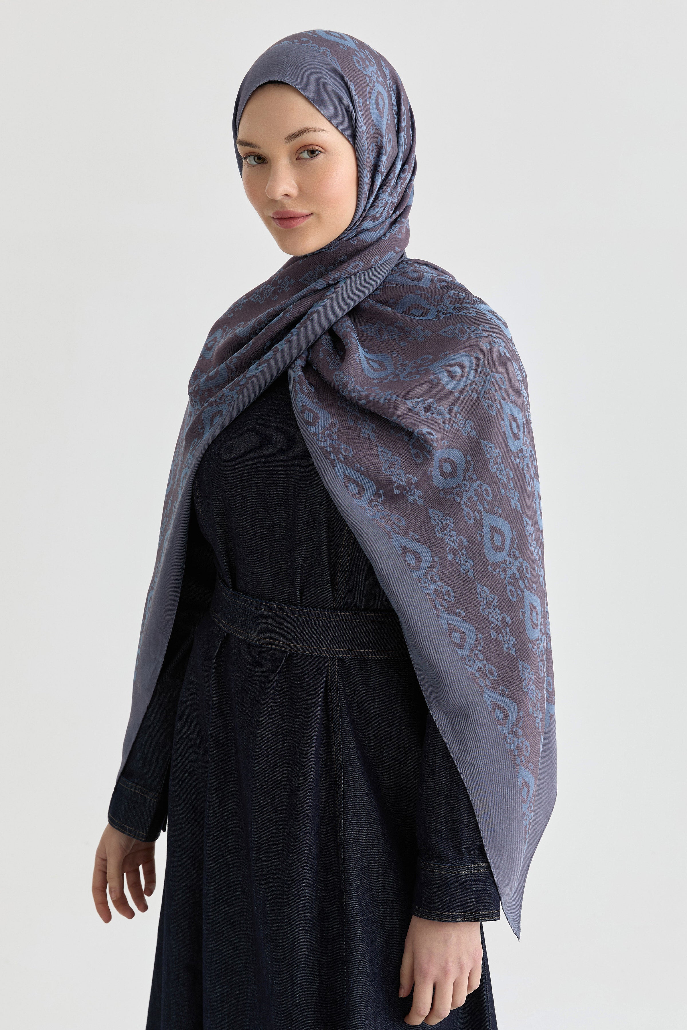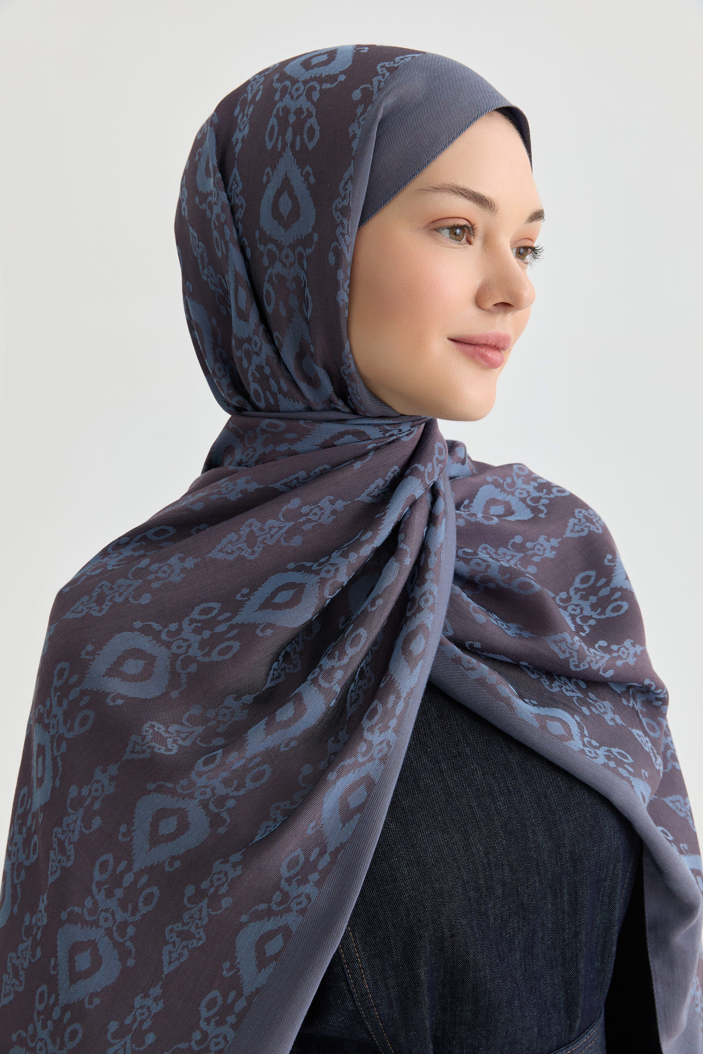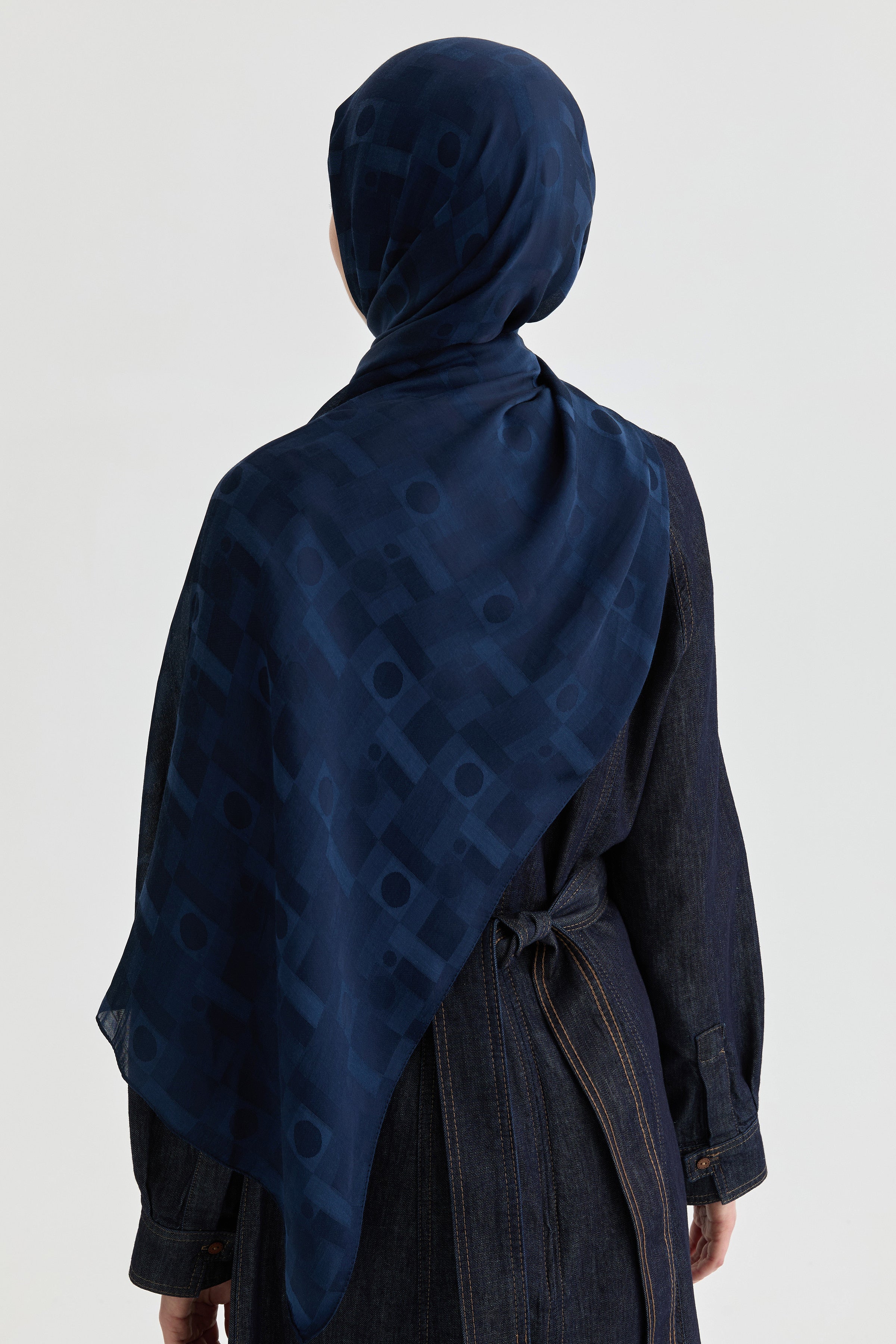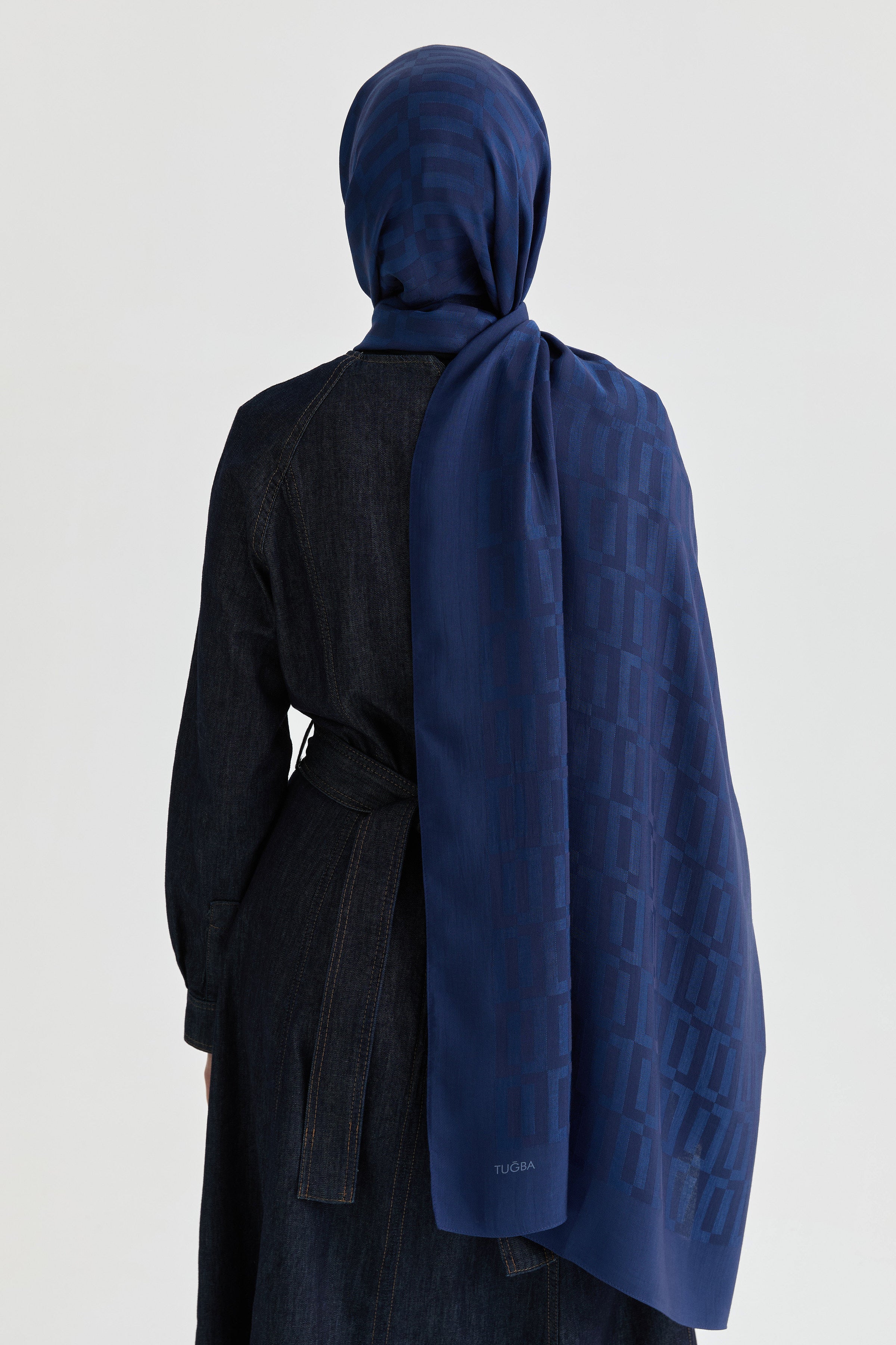 Etnik Motifli Naia Naturel Şal - Lacivert