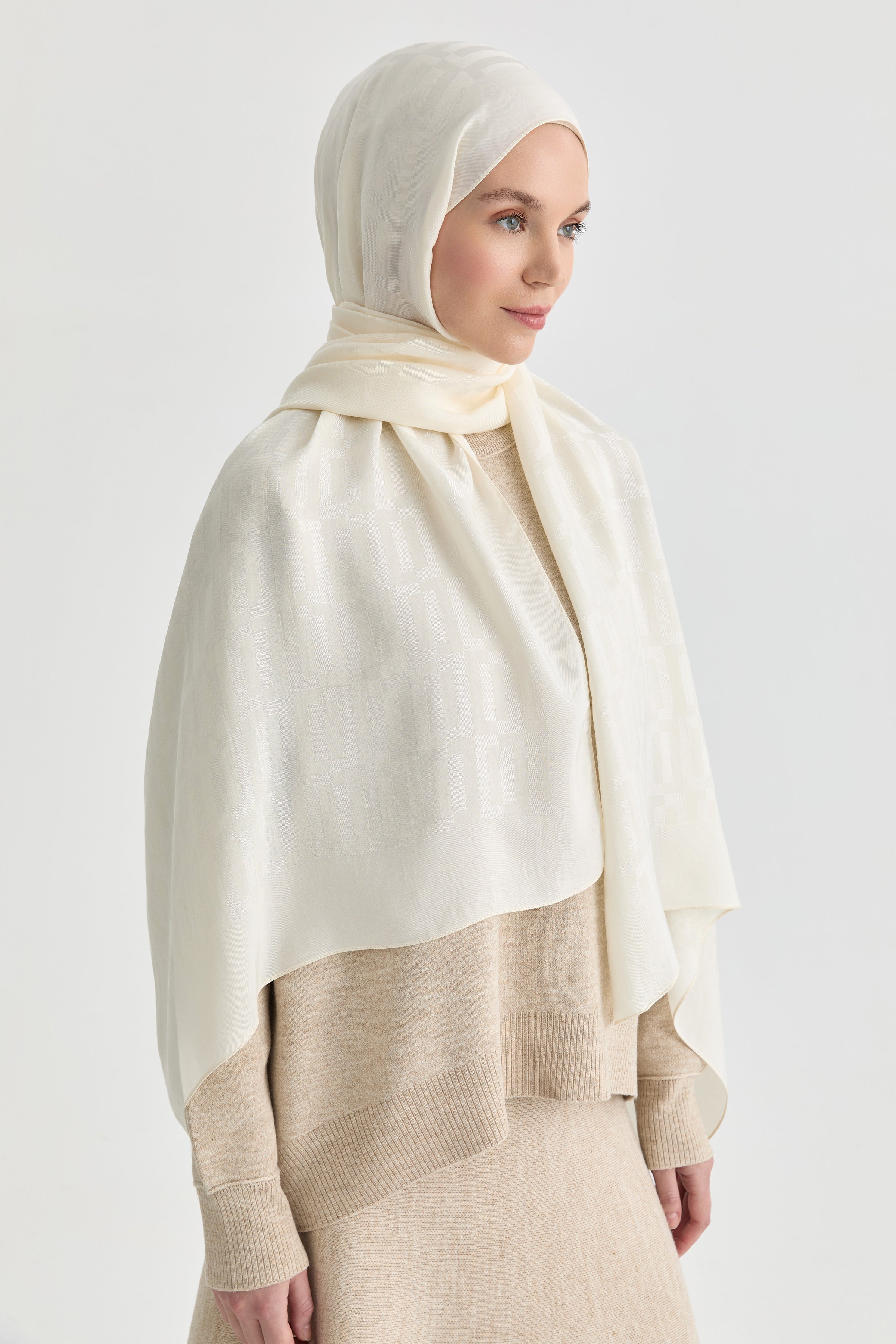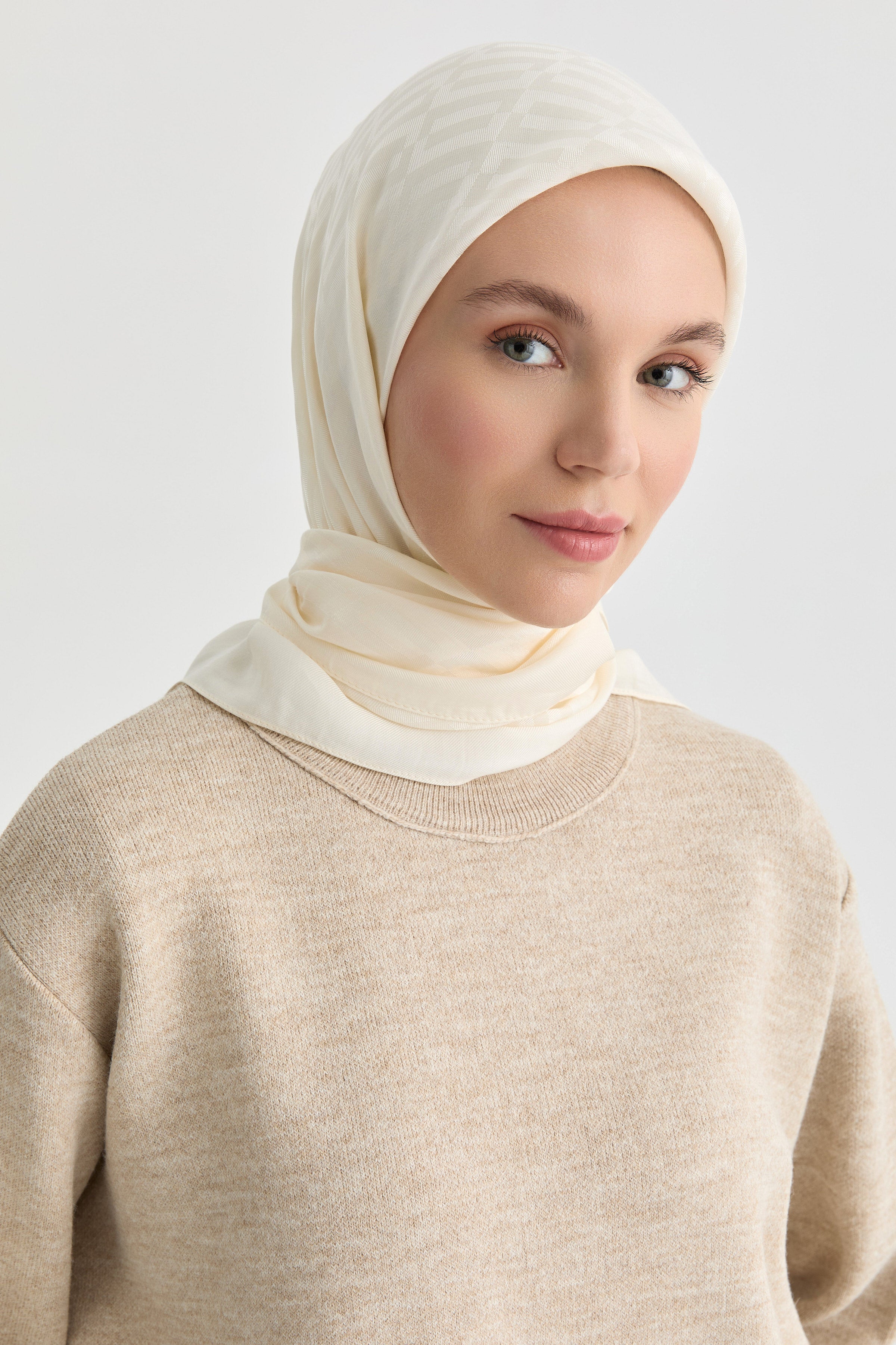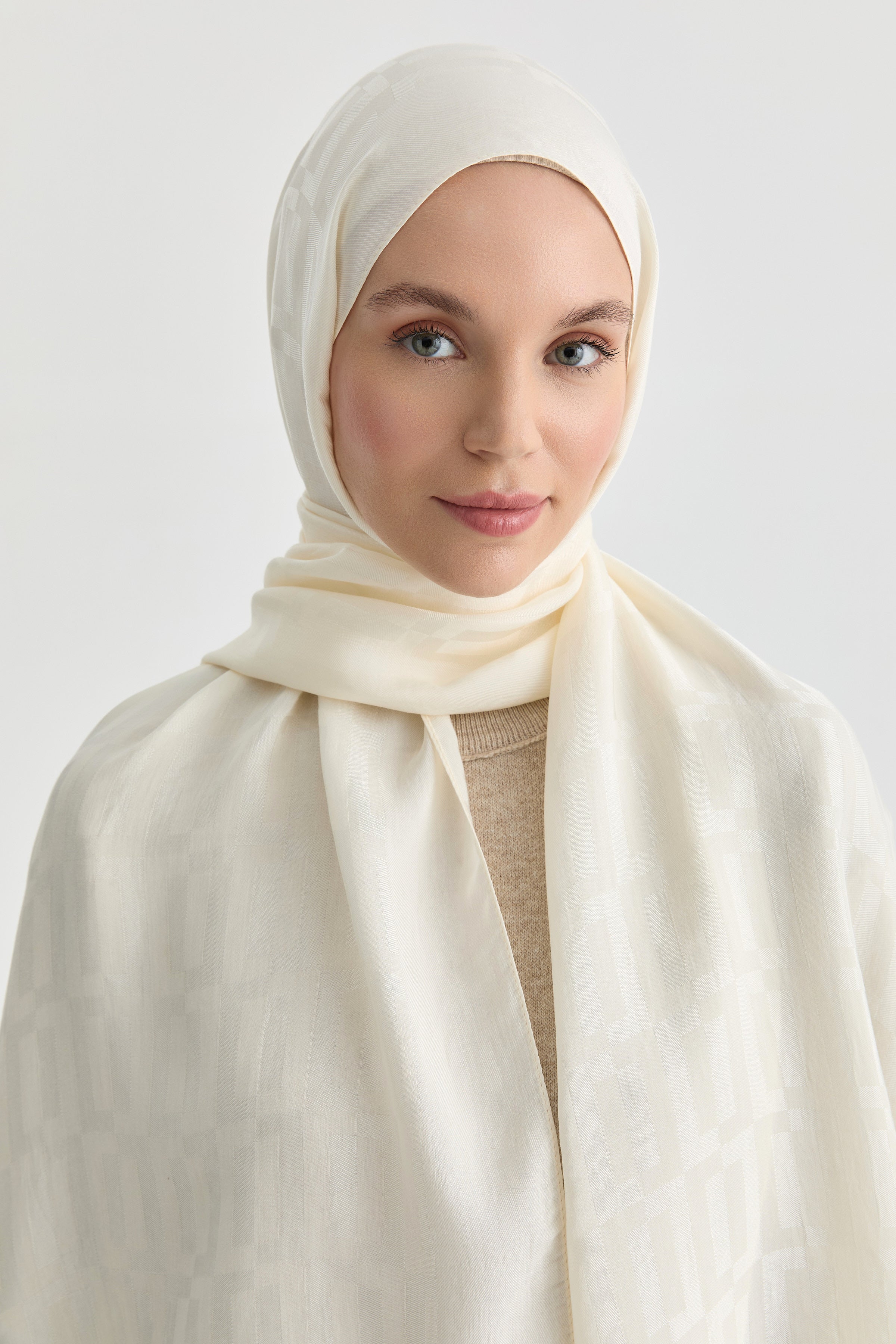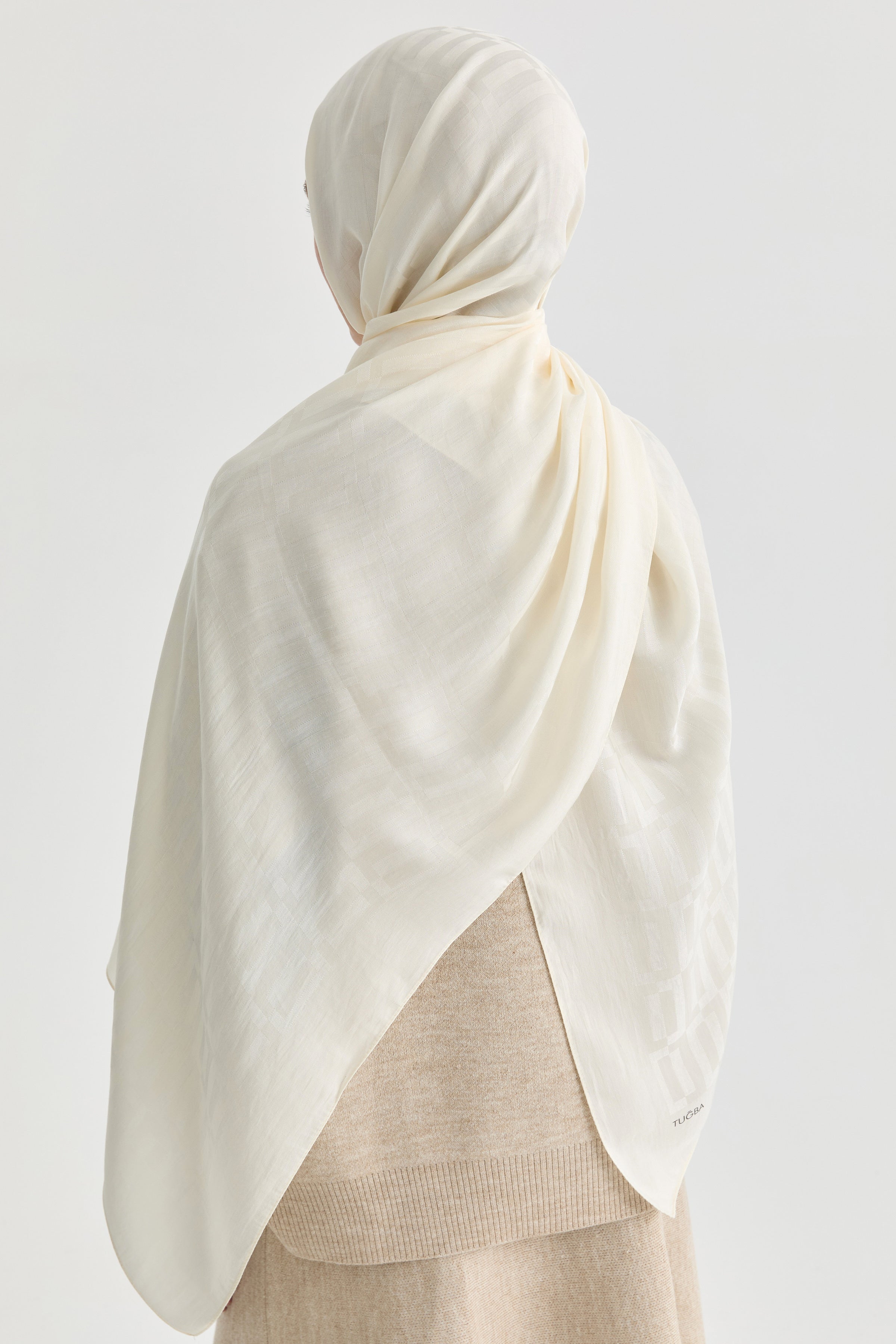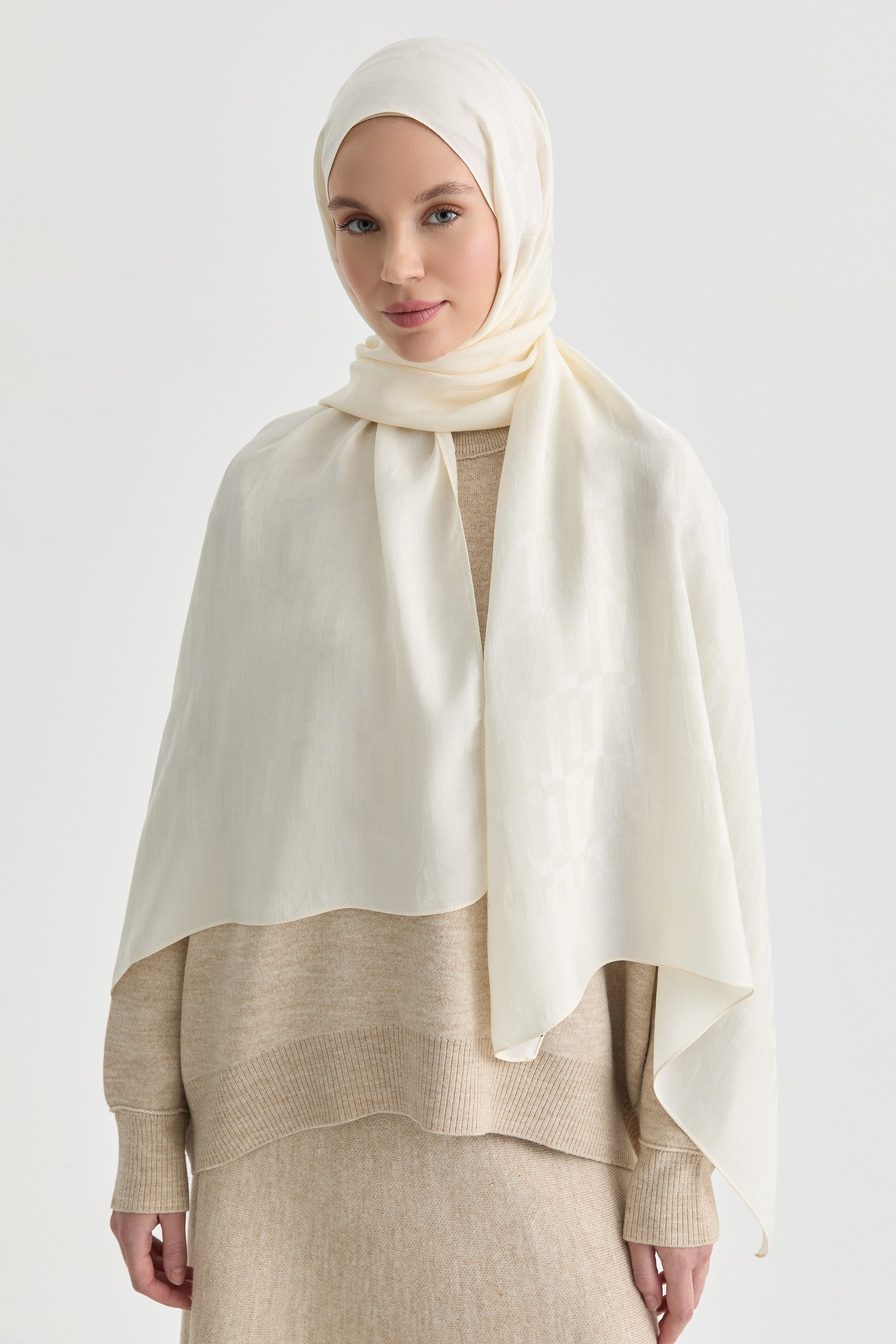 Pañuelo Naia Natural con Jacquard Geométrico - Blanco
