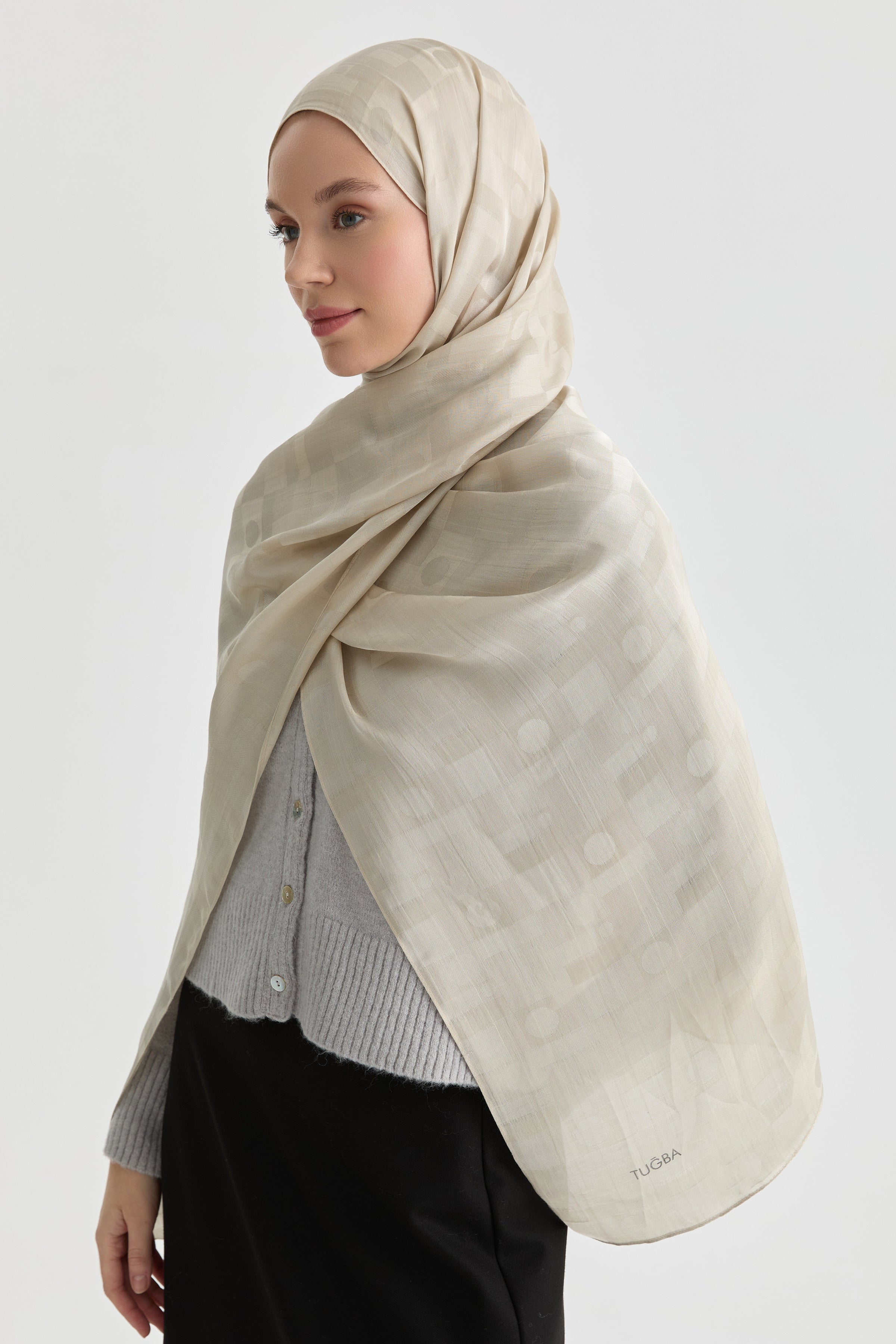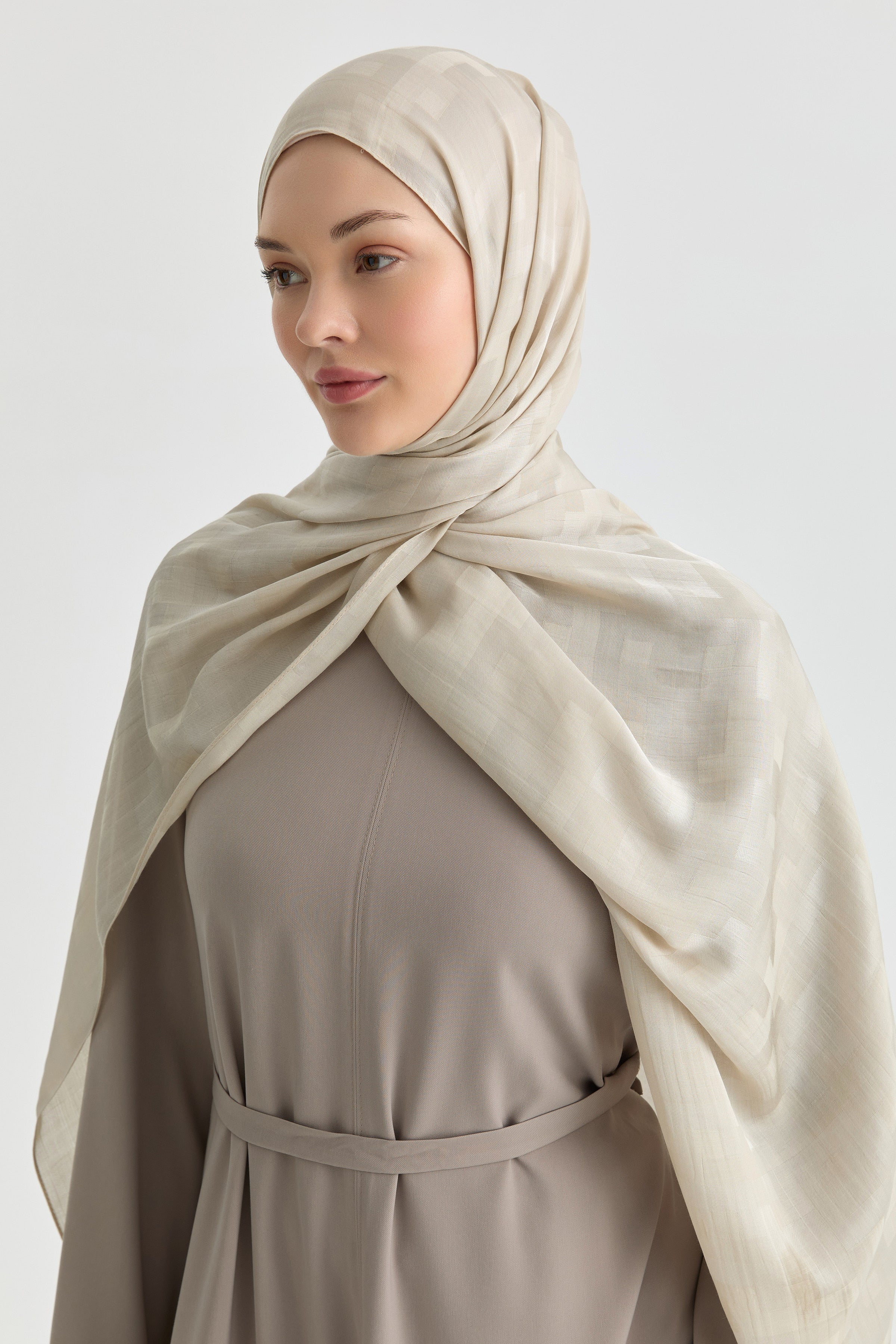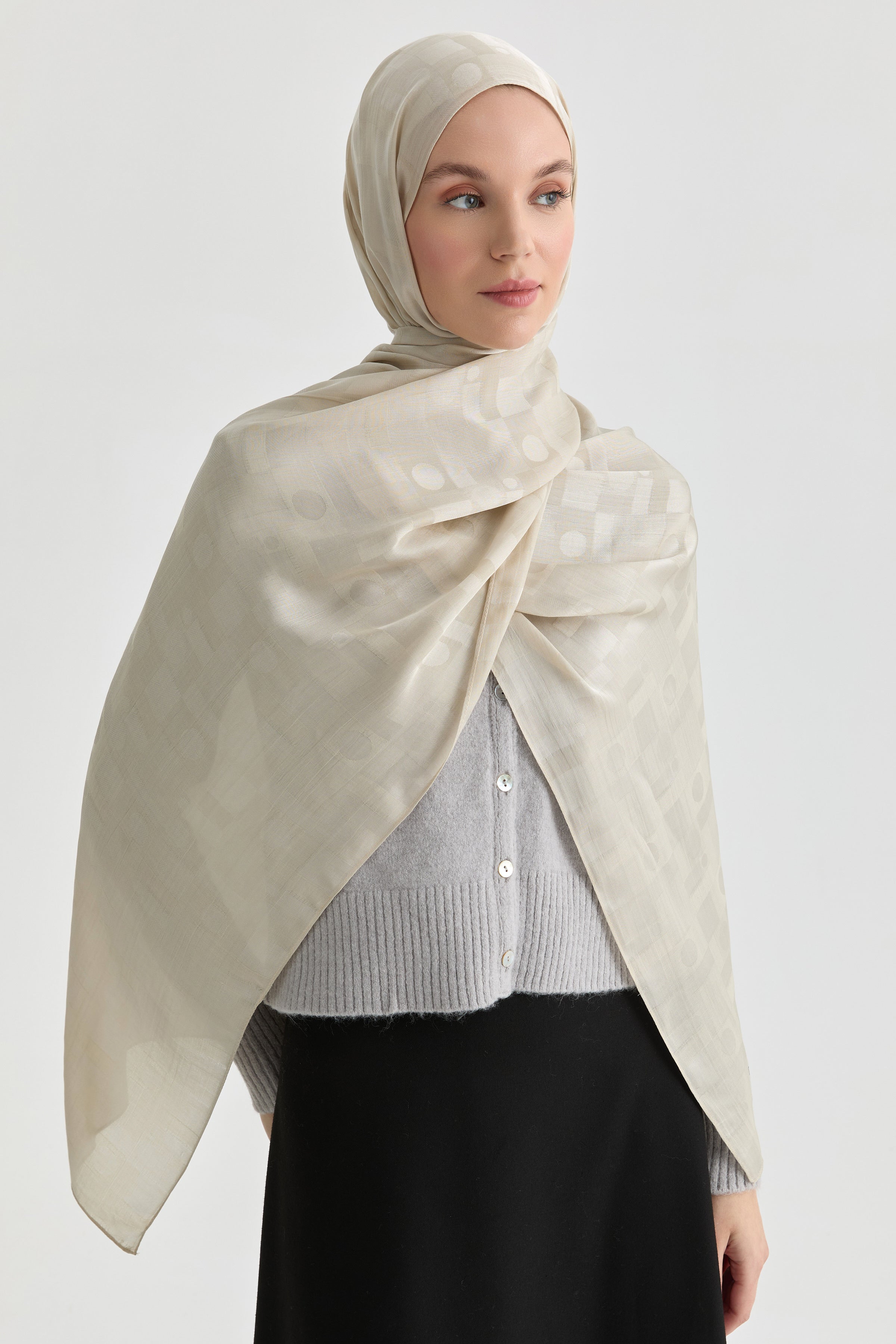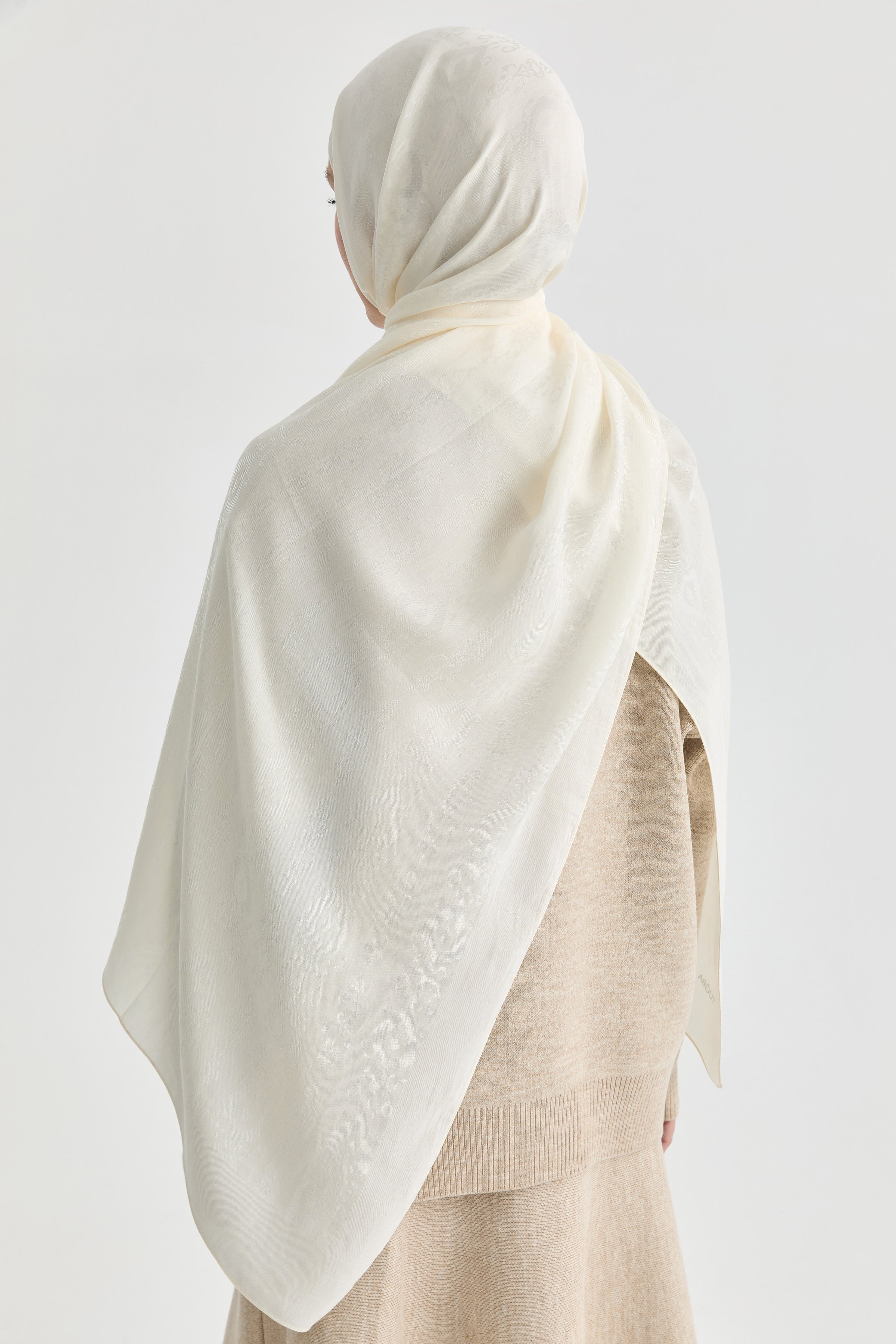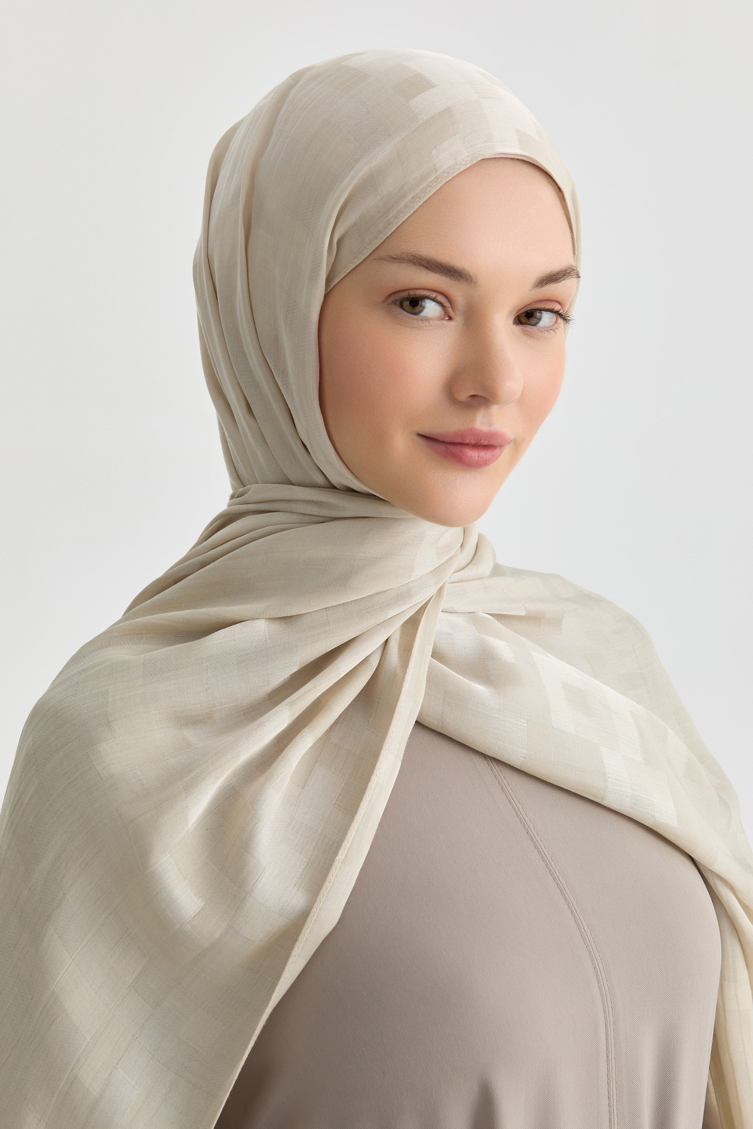 Pañuelo Naia Natural con Jacquard Geométrico - Blanco