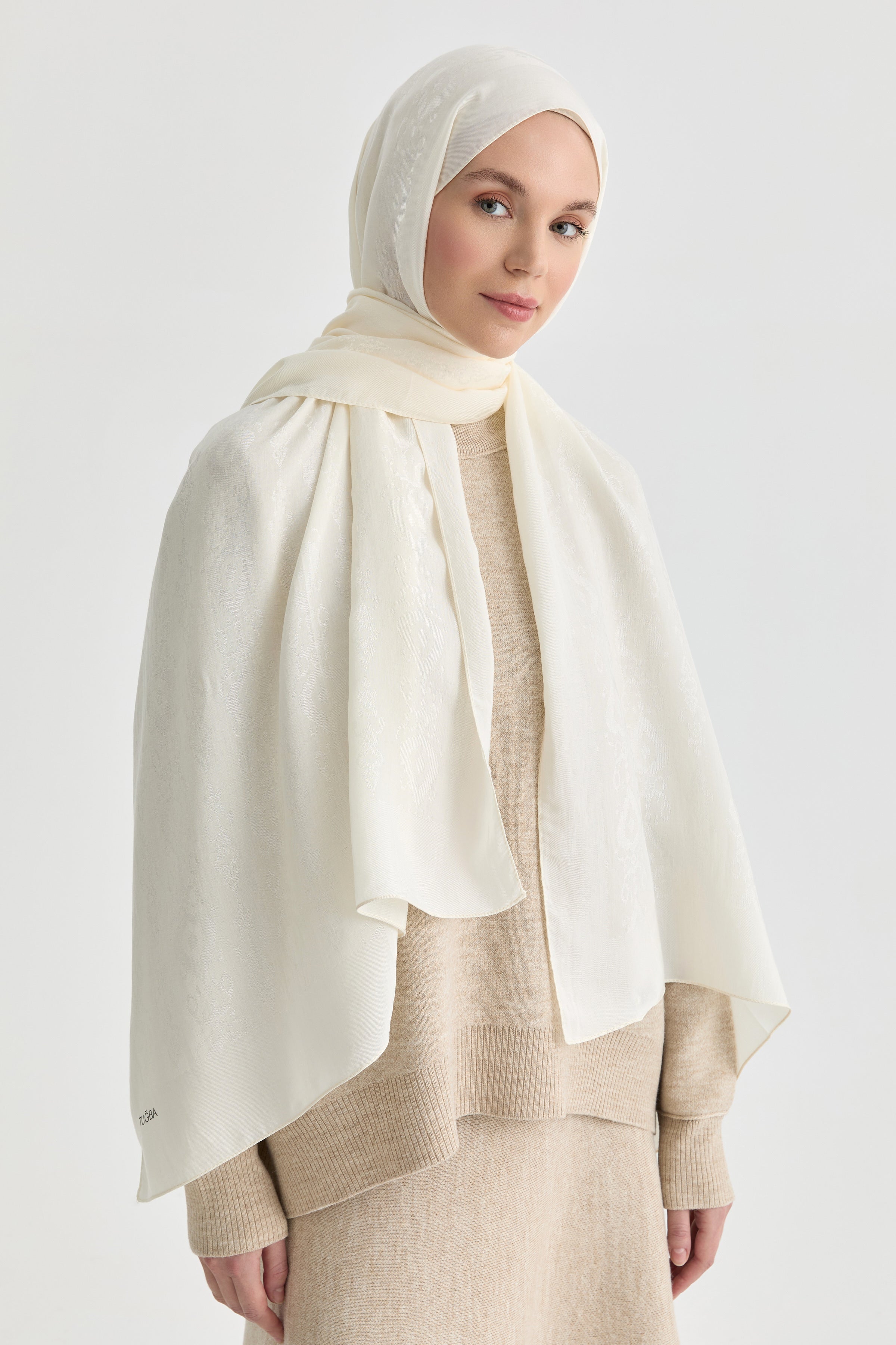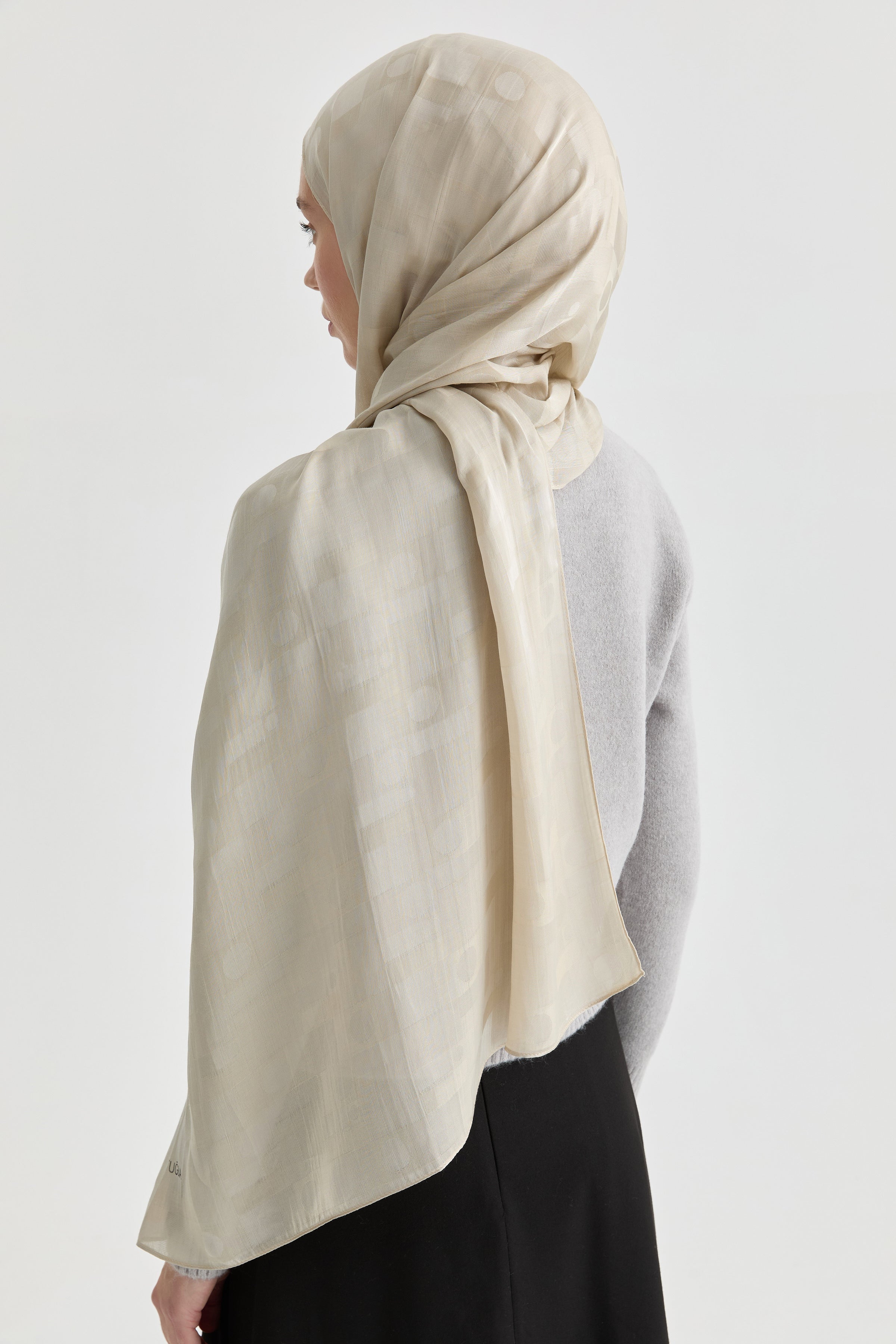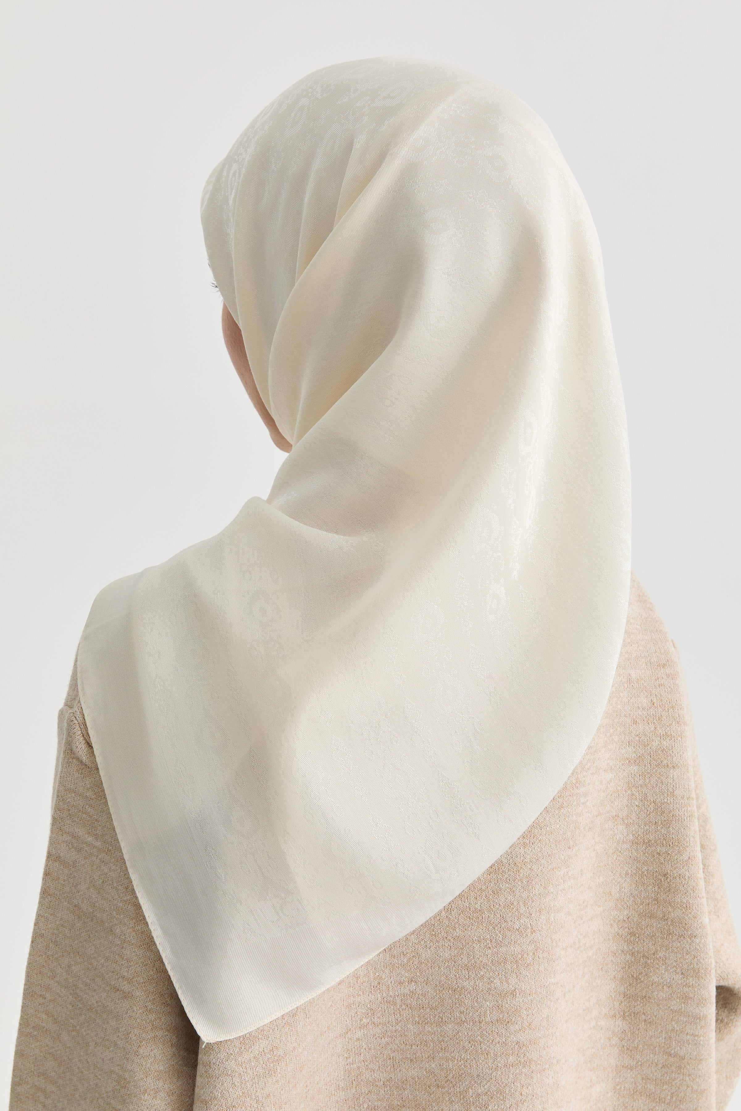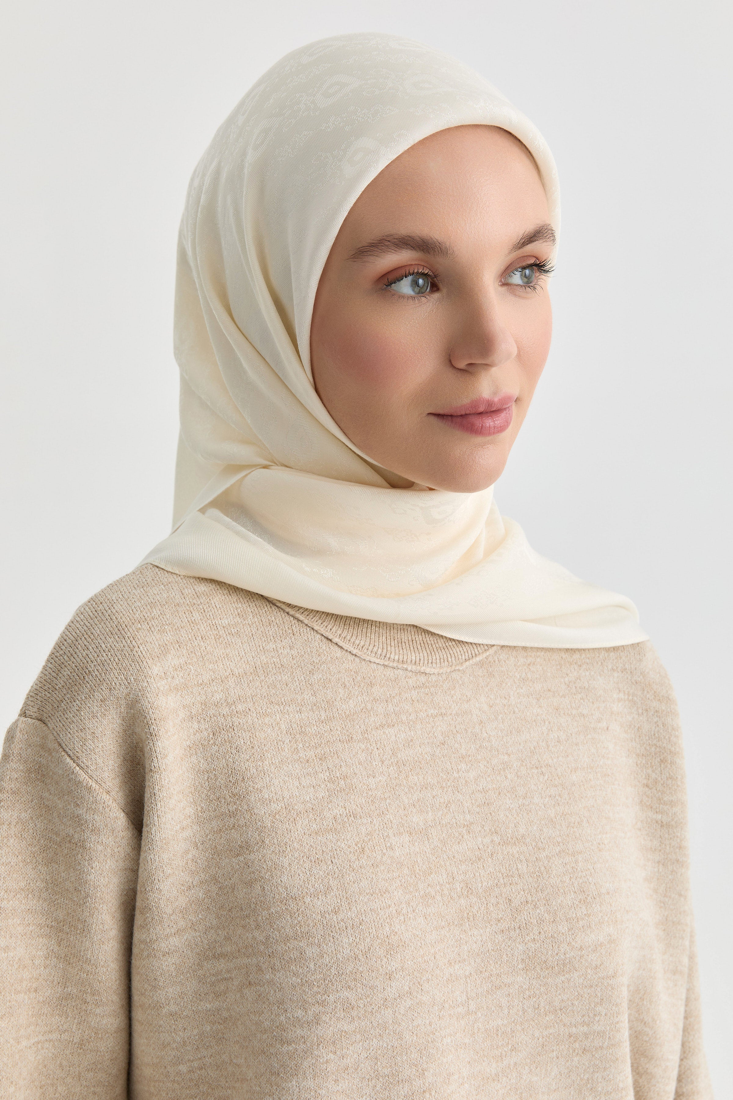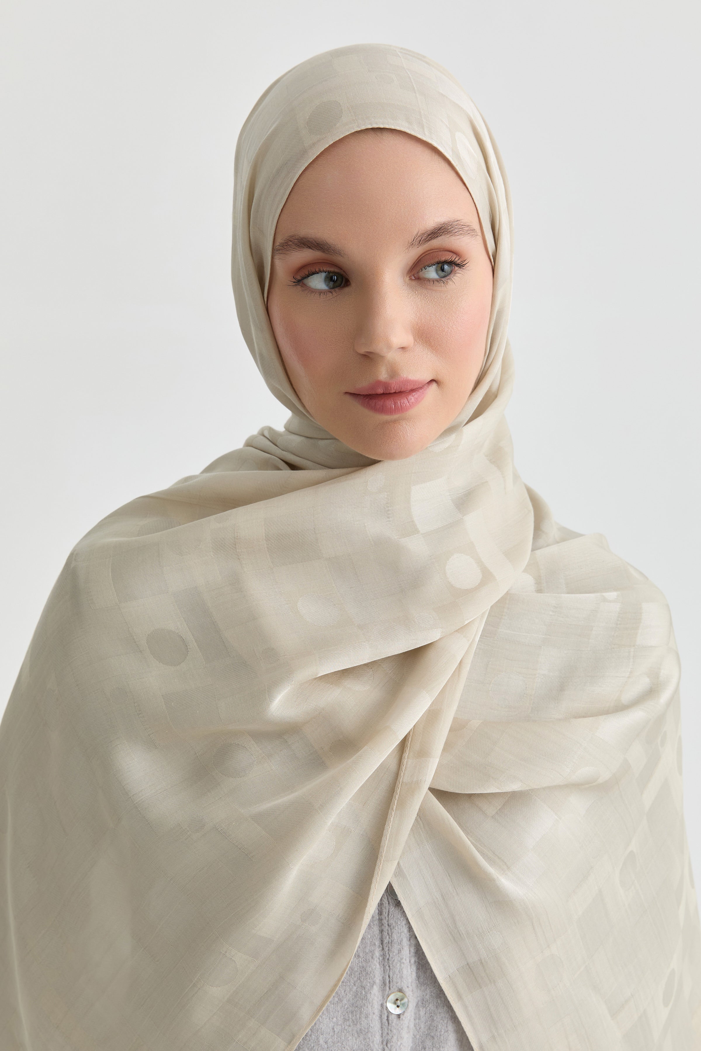 Pañuelo Naia Natural con Jacquard Geométrico - Blanco