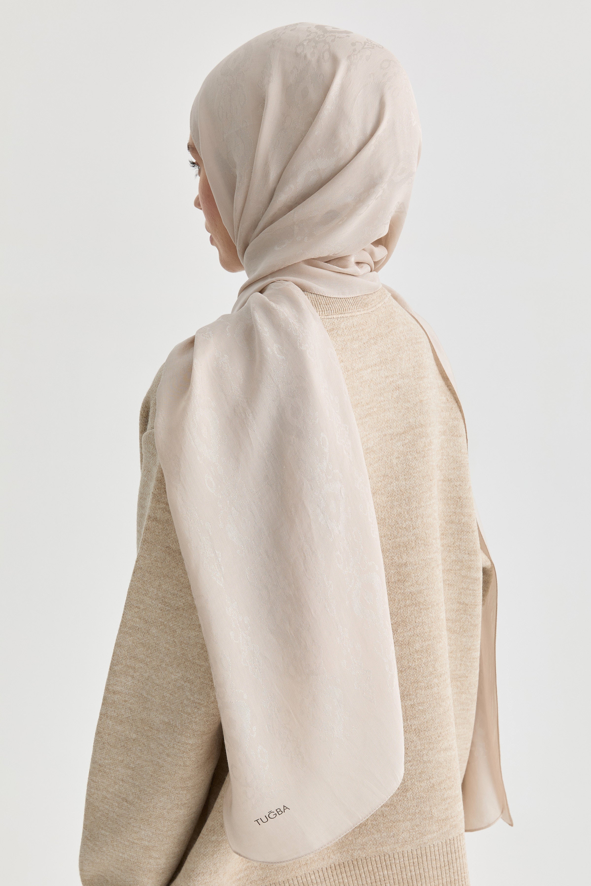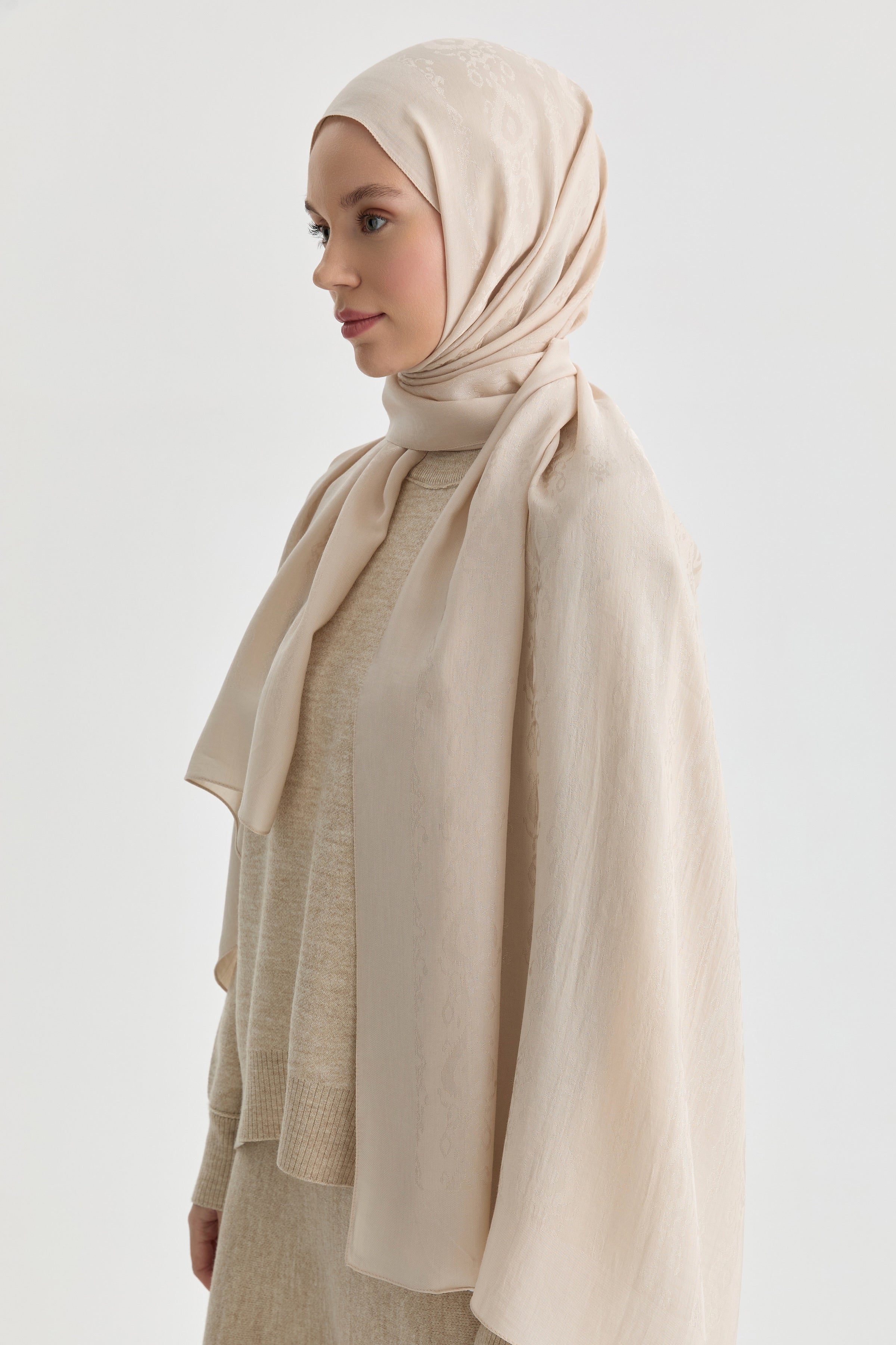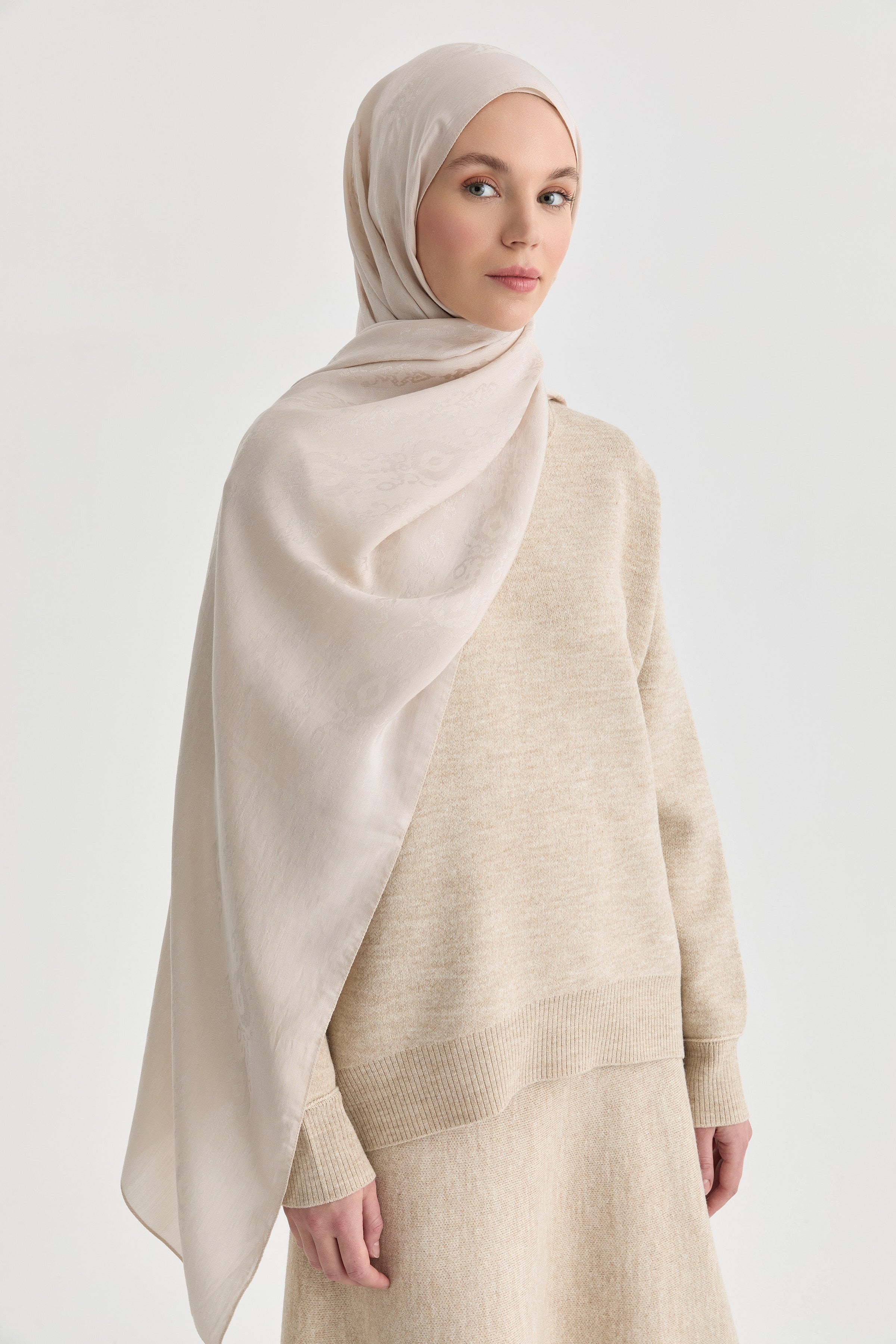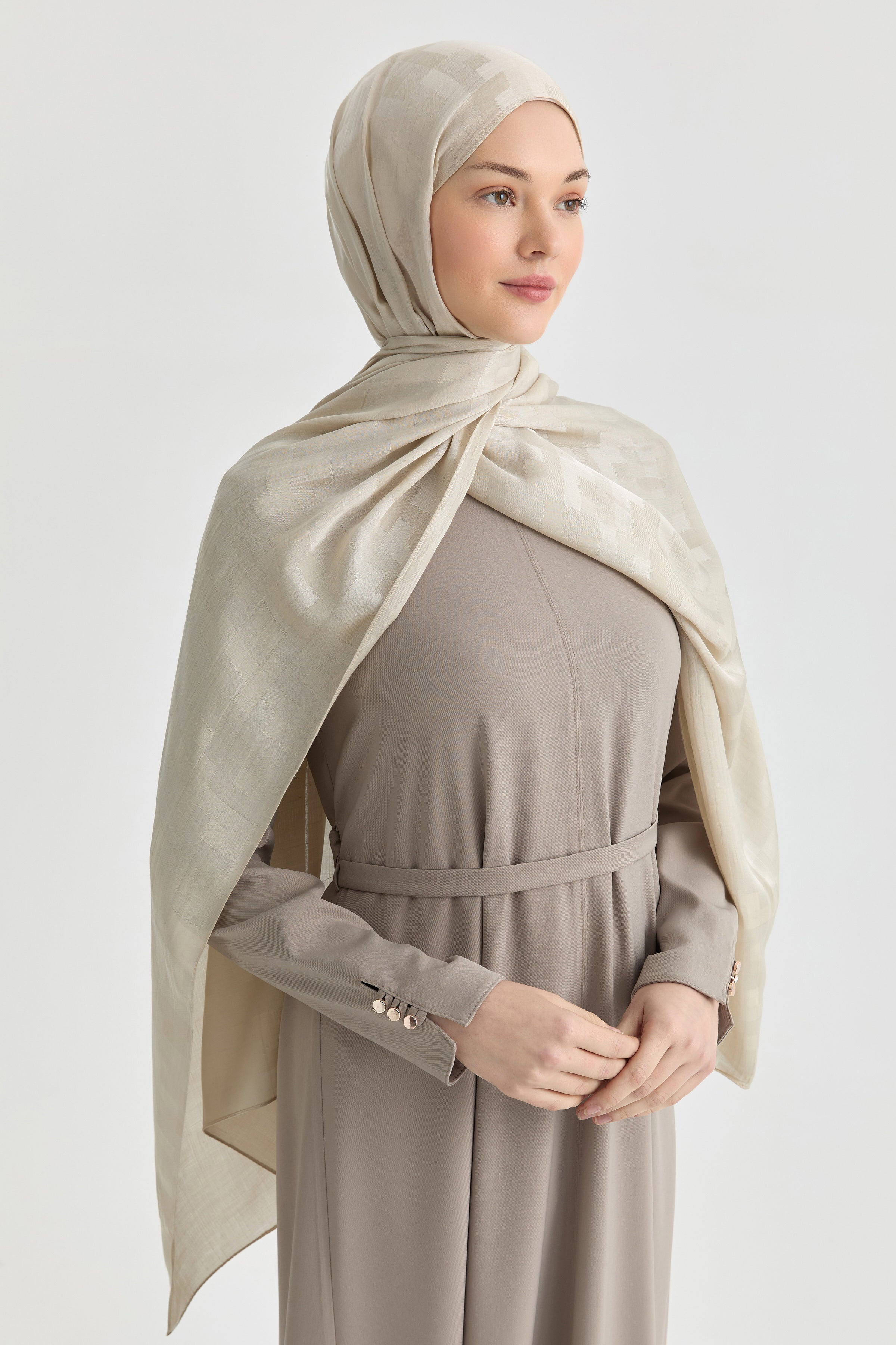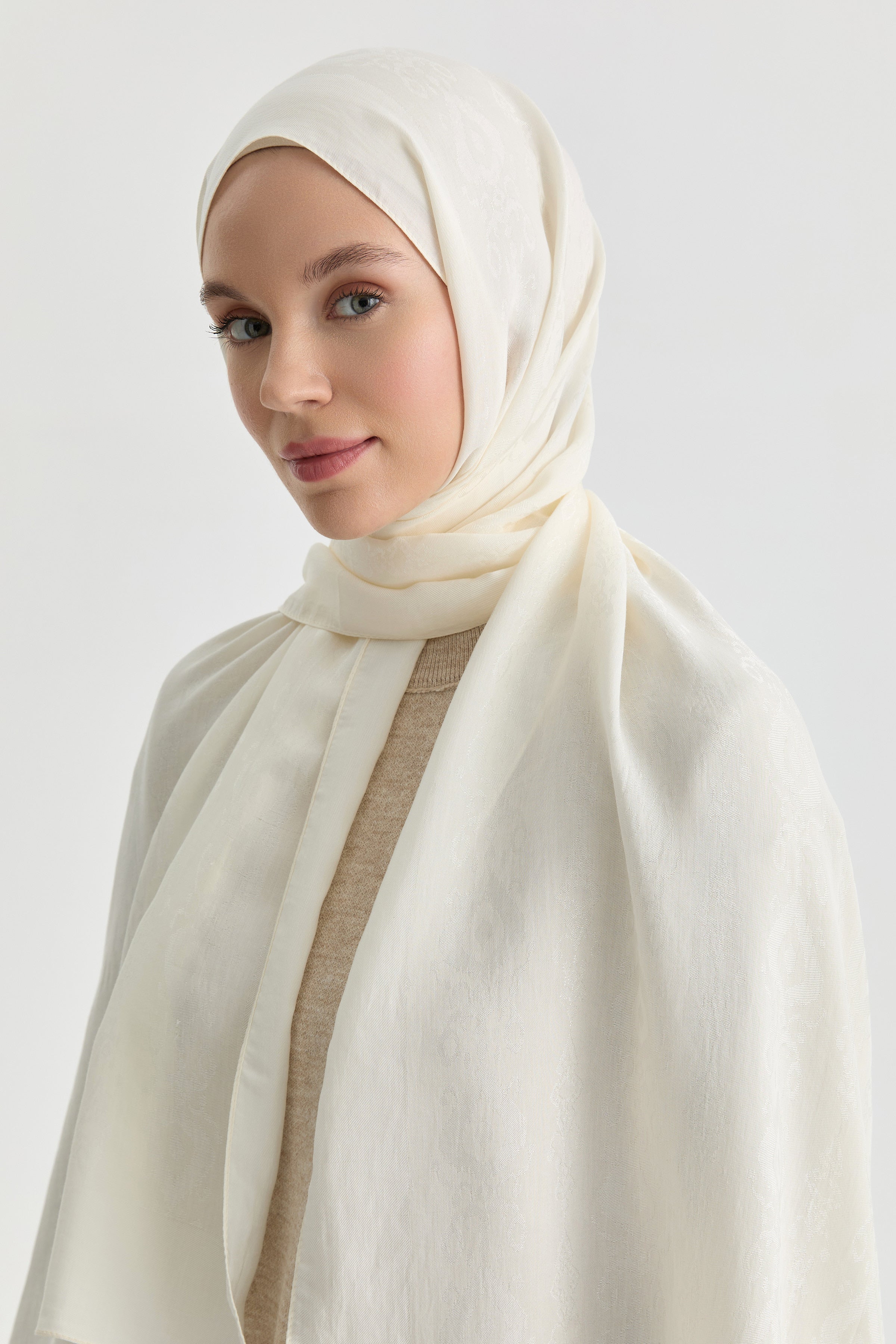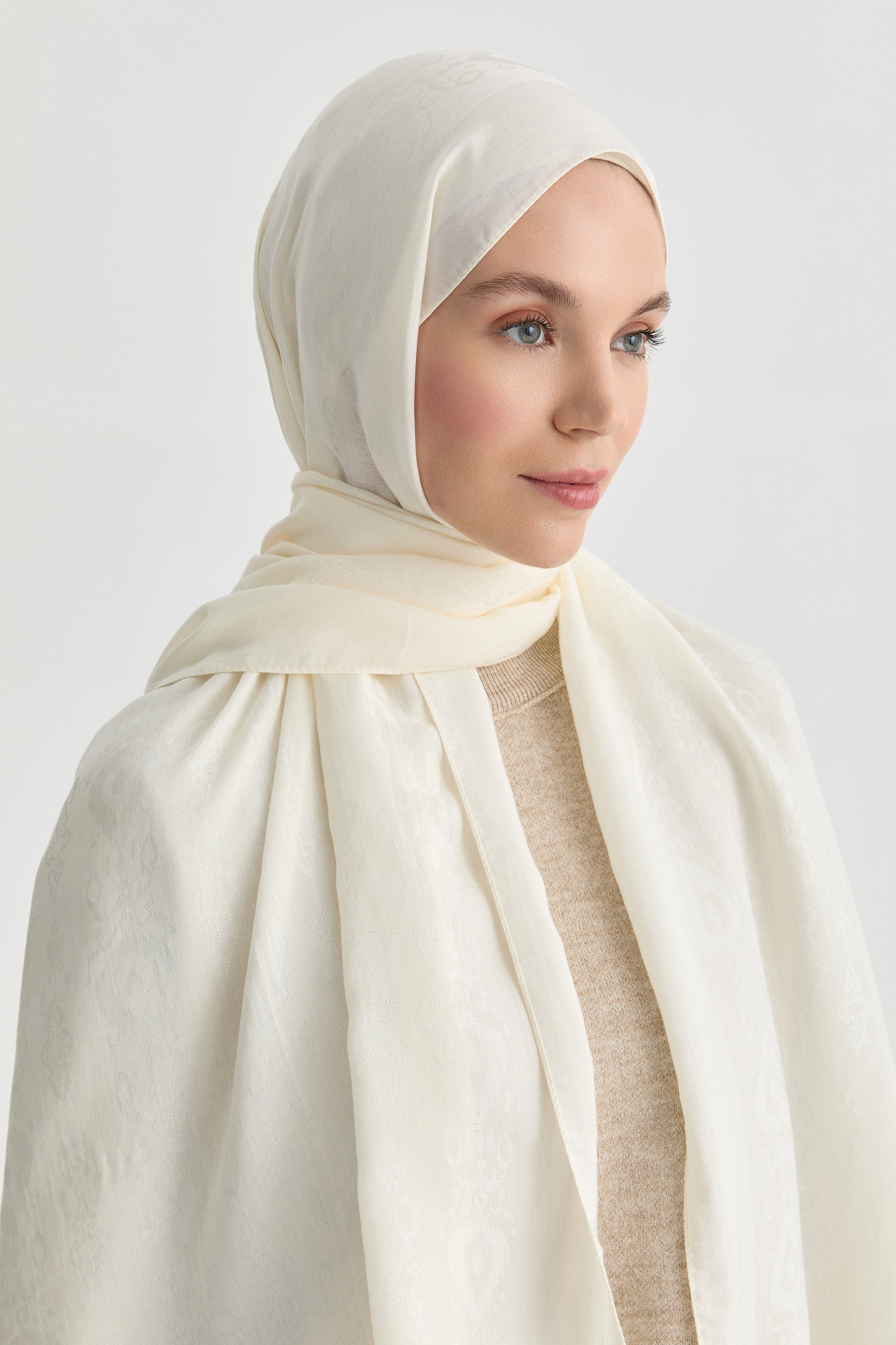 Pañuelo Naia Natural con Jacquard Geométrico - Blanco