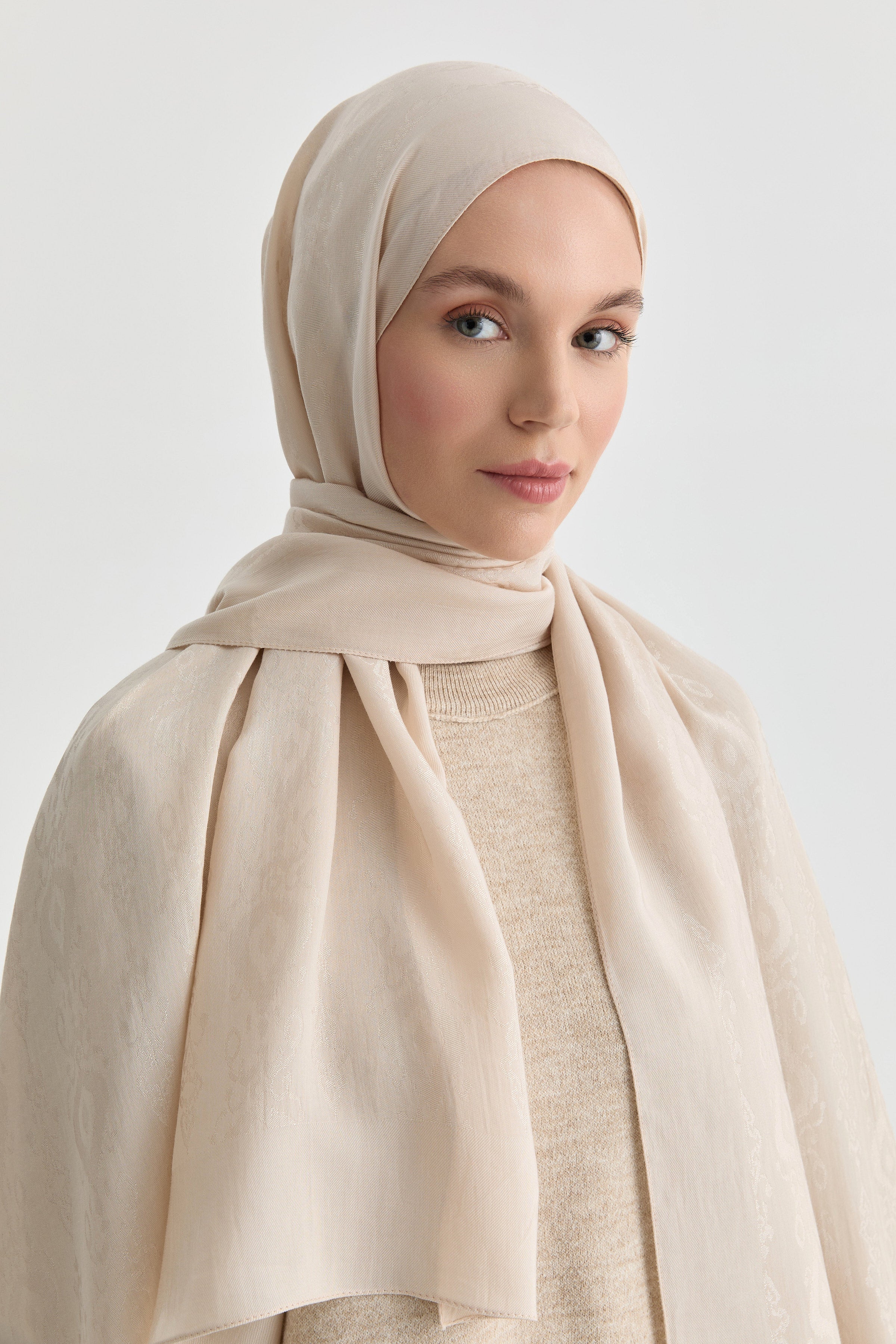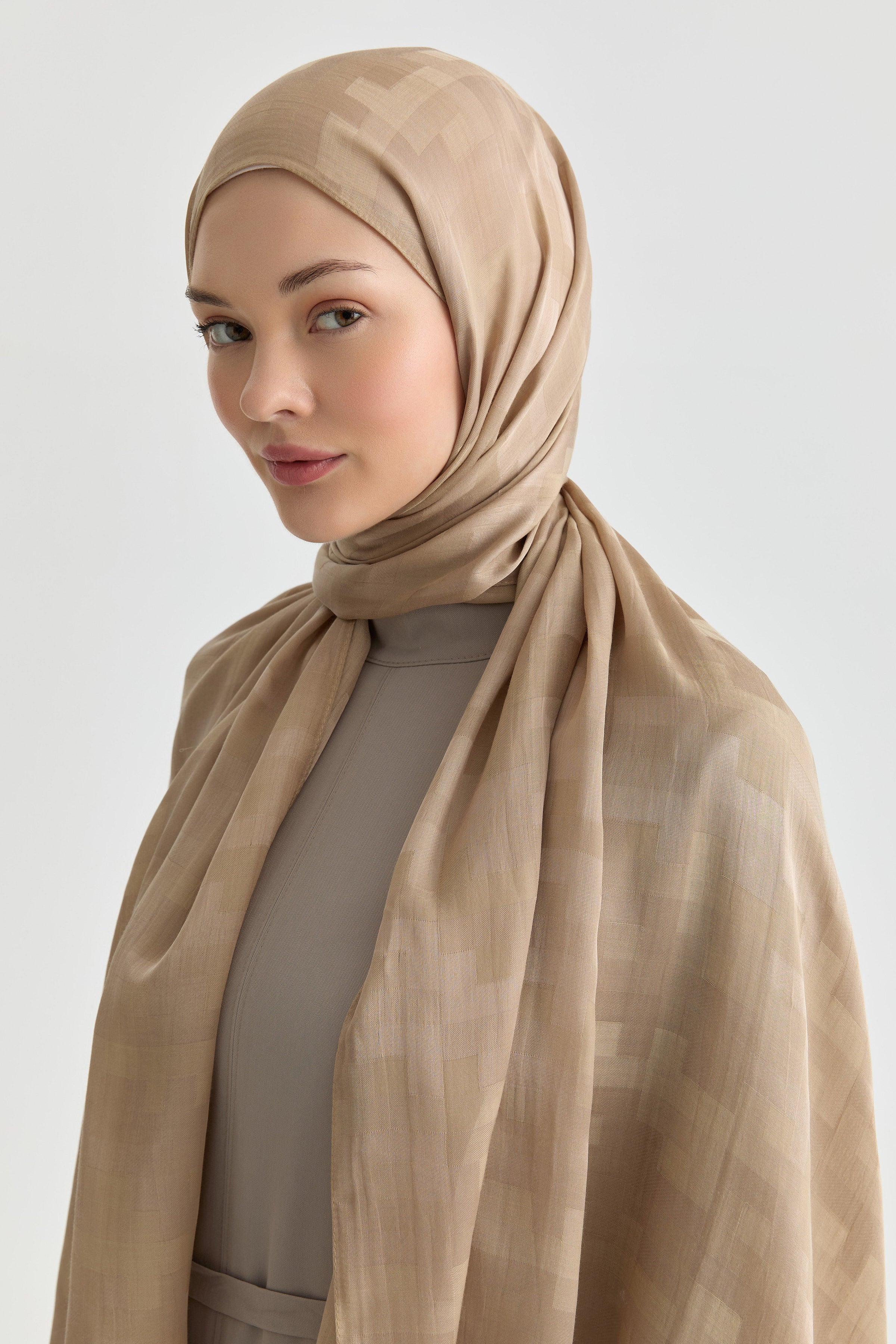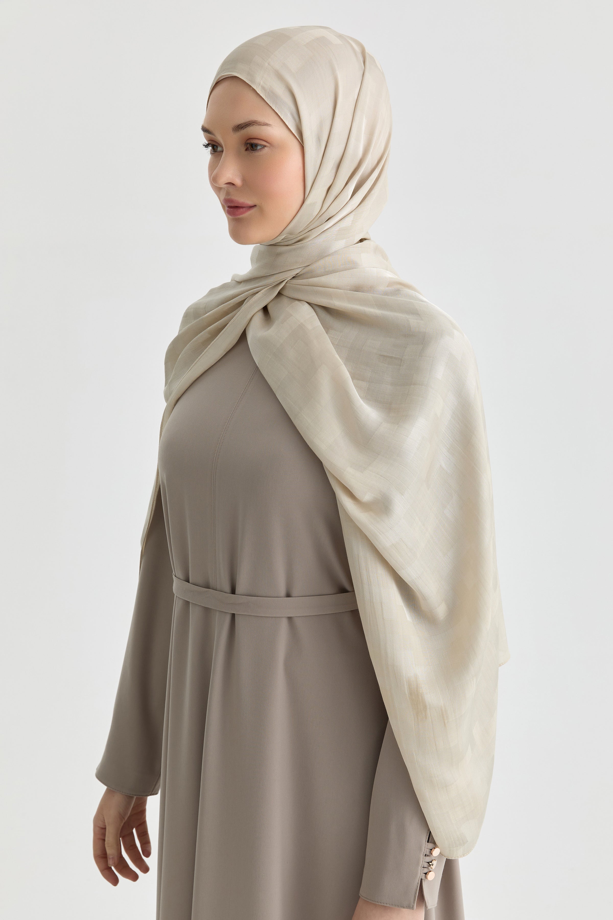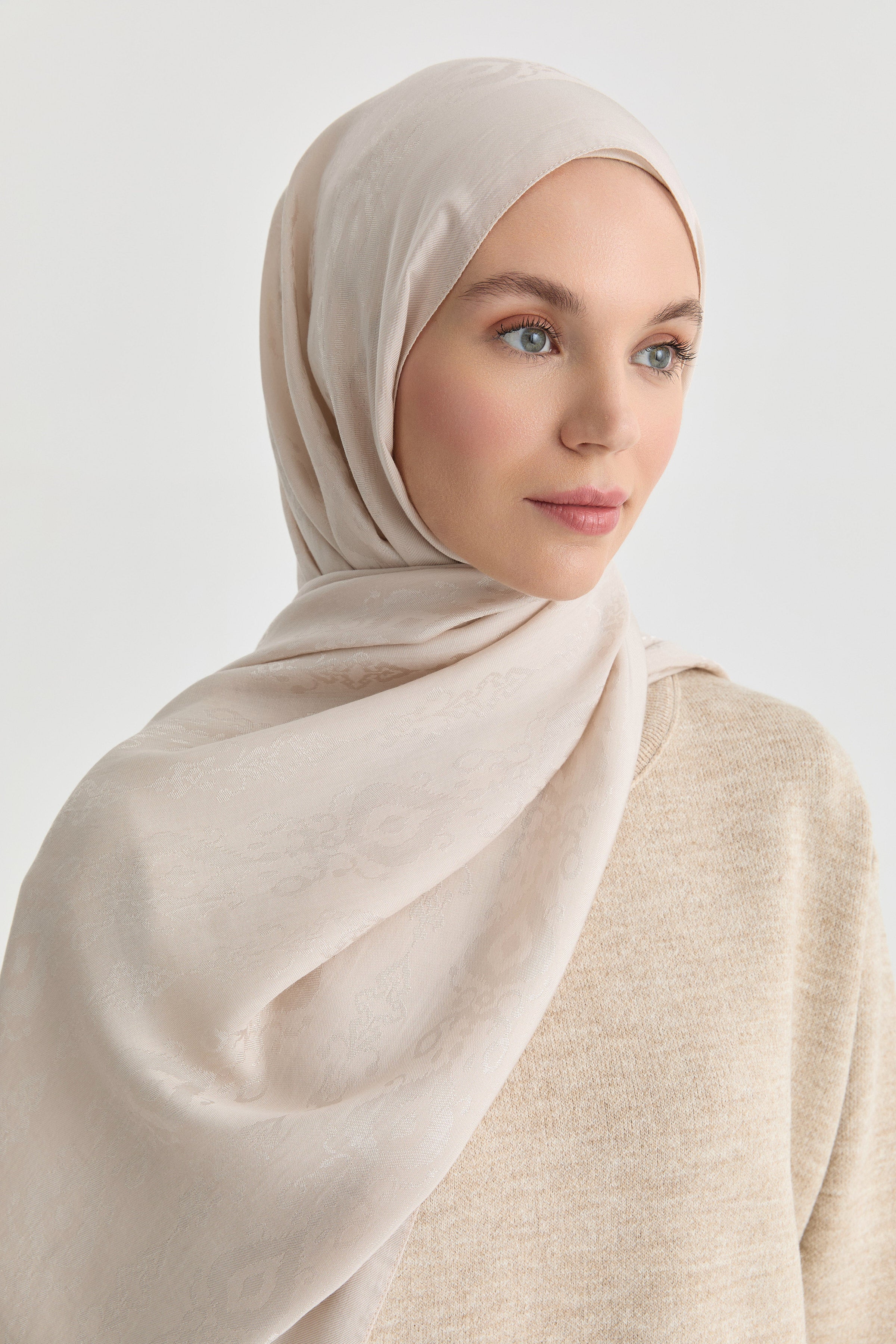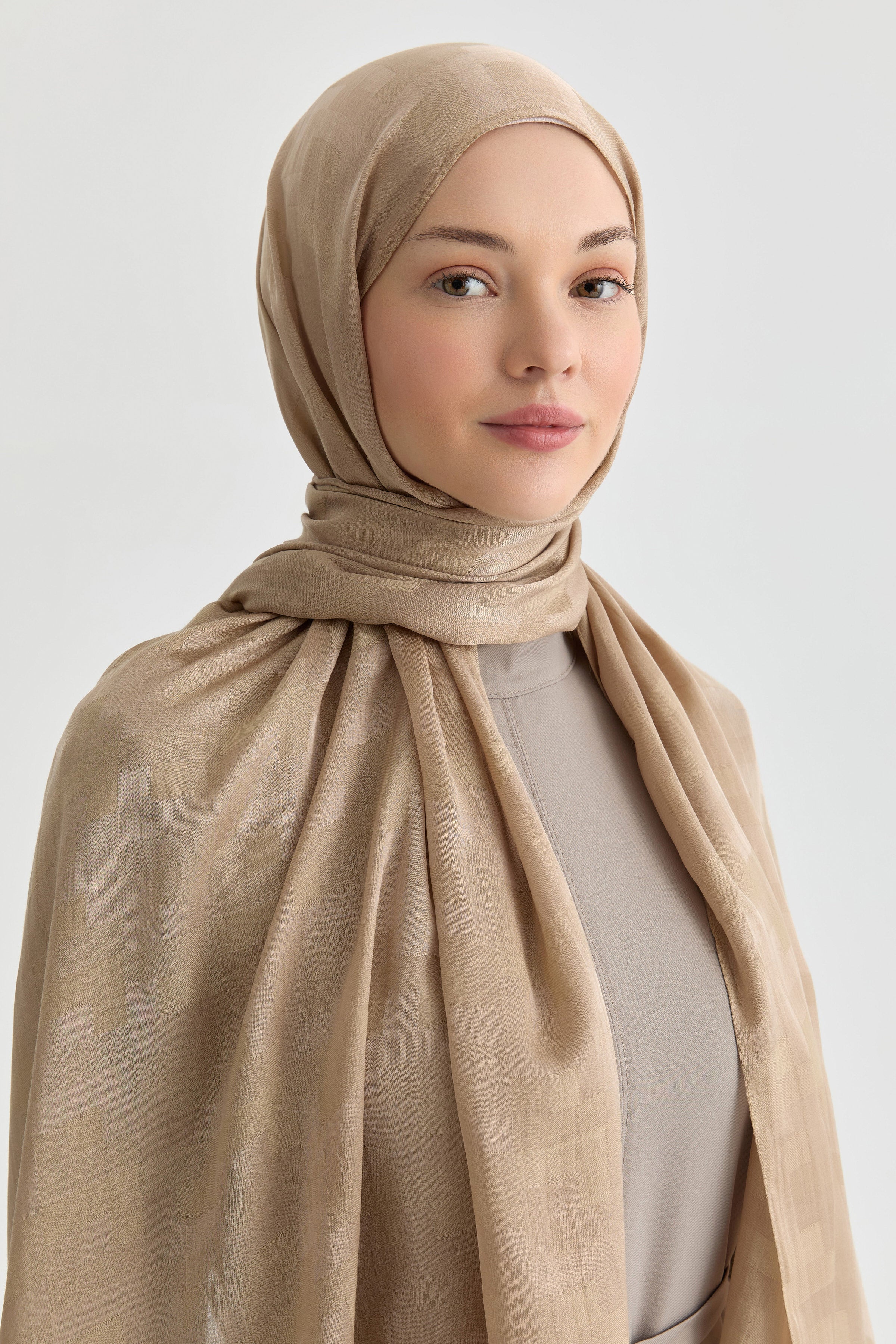 Pañuelo Naia Natural con Jacquard Geométrico - Blanco