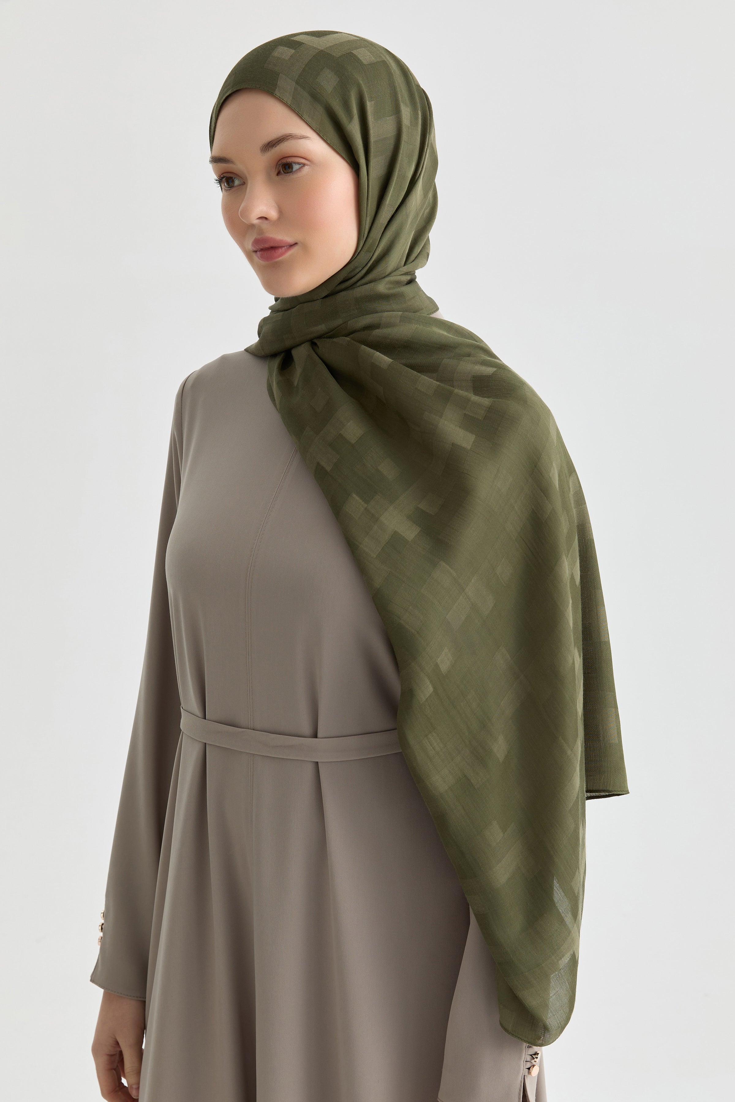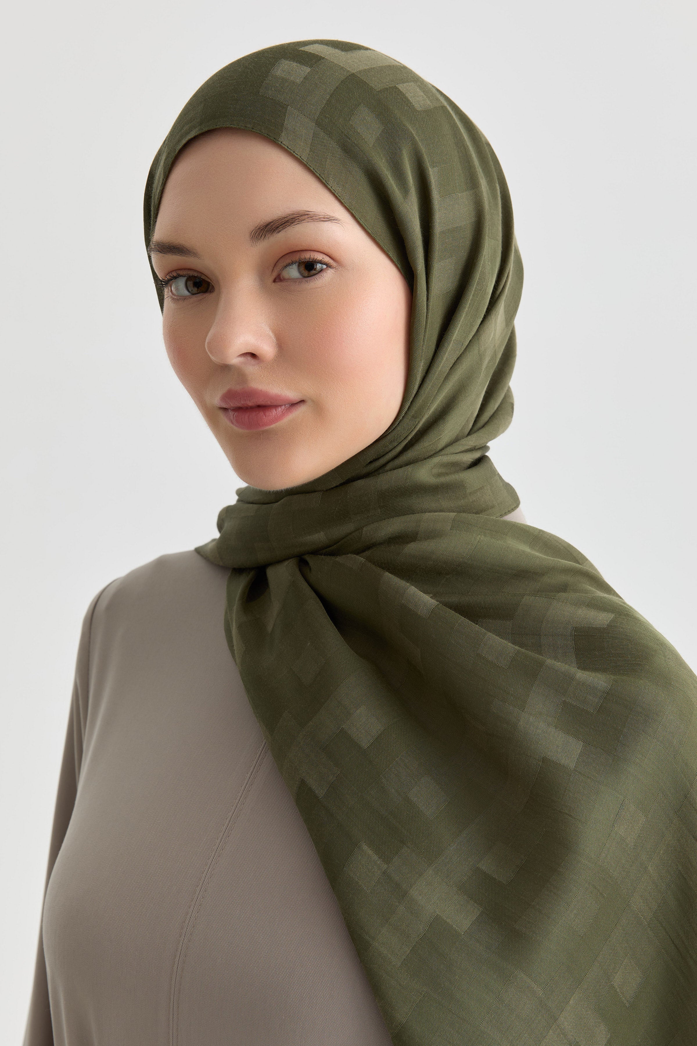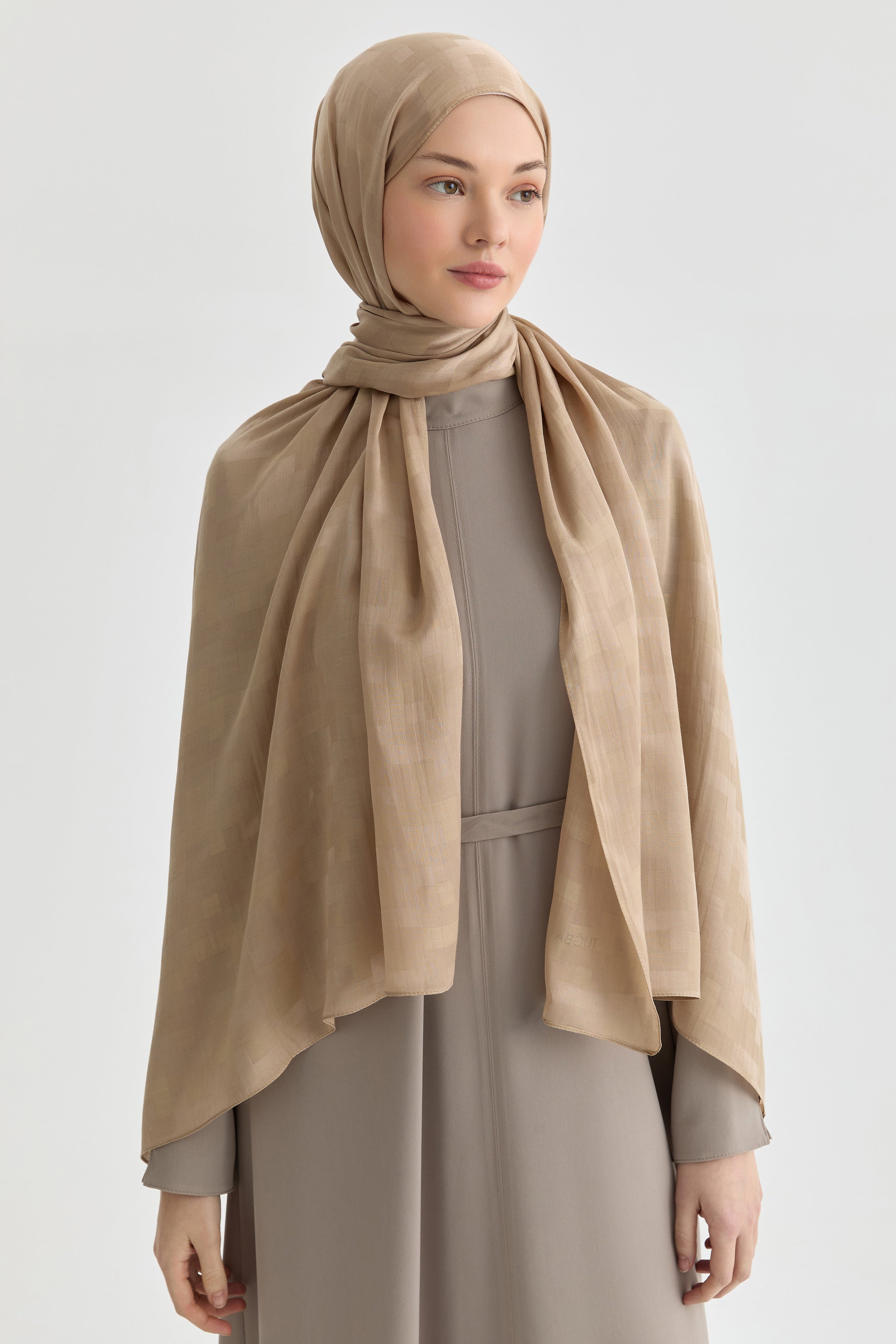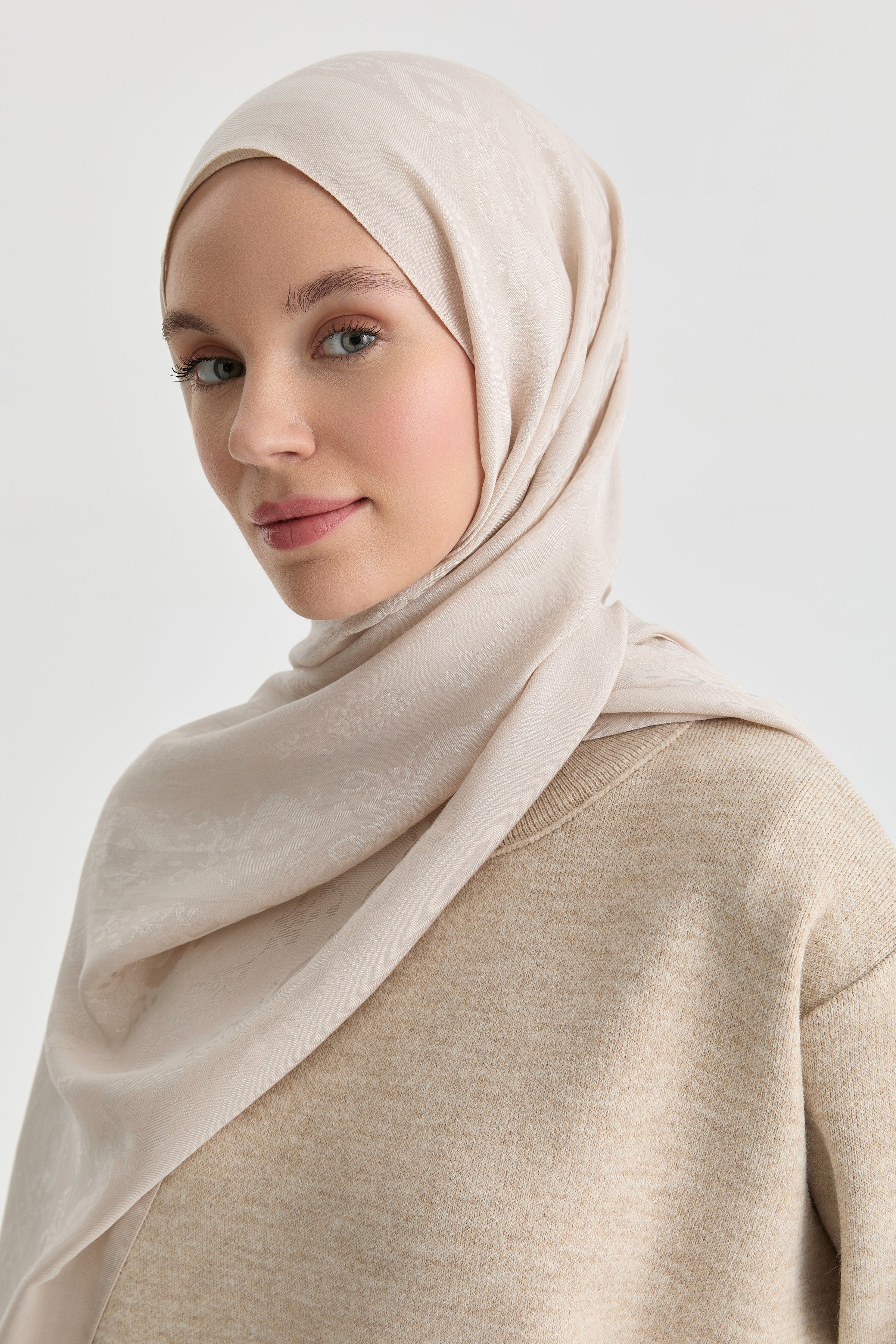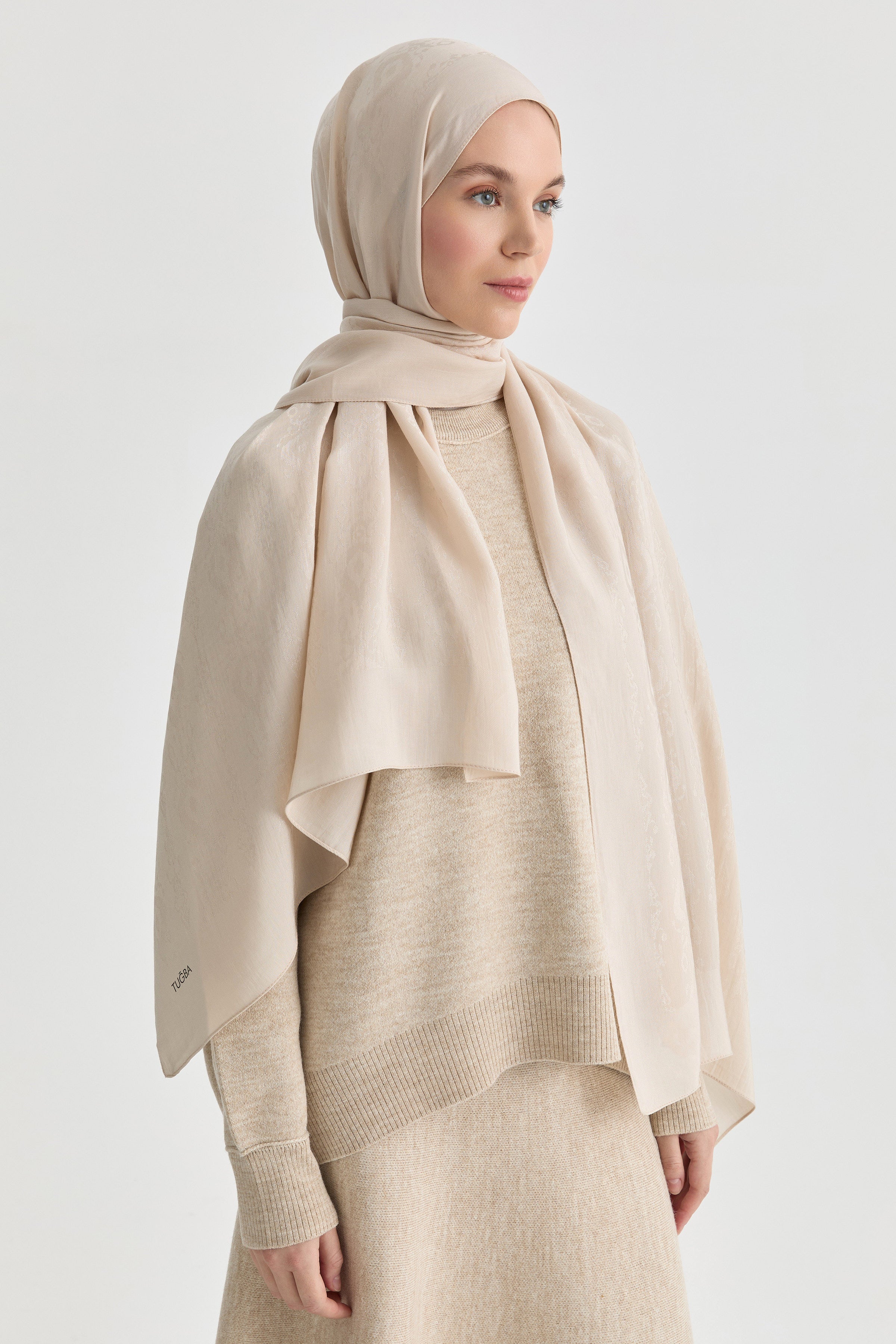 Pañuelo Naia Natural con Jacquard Geométrico - Blanco