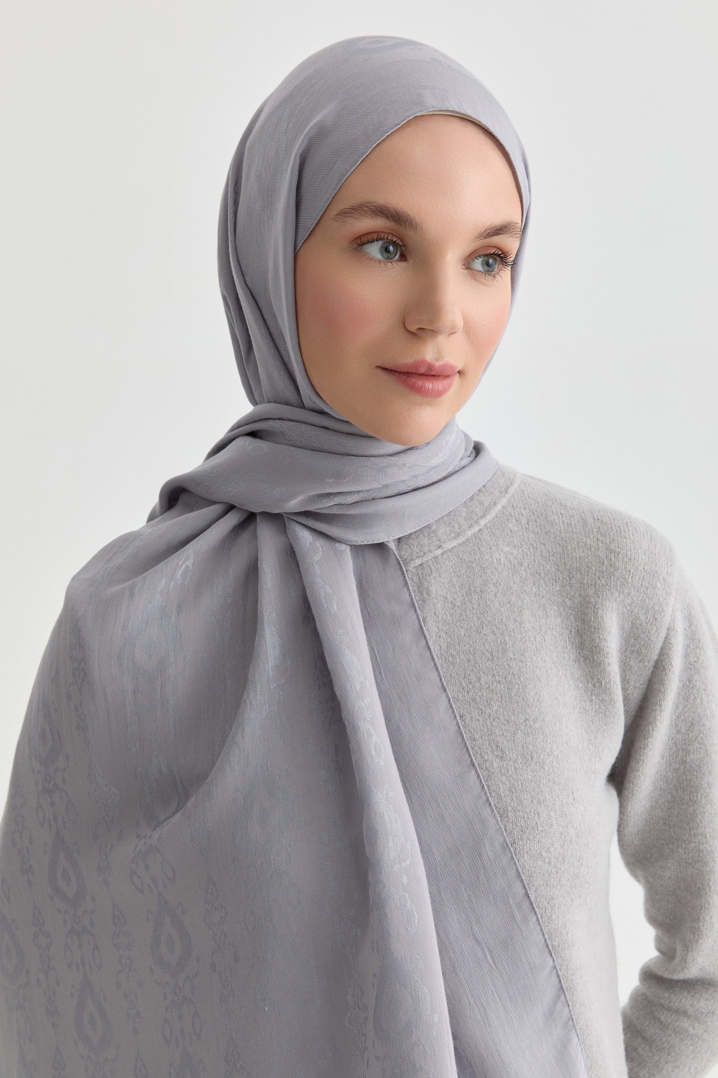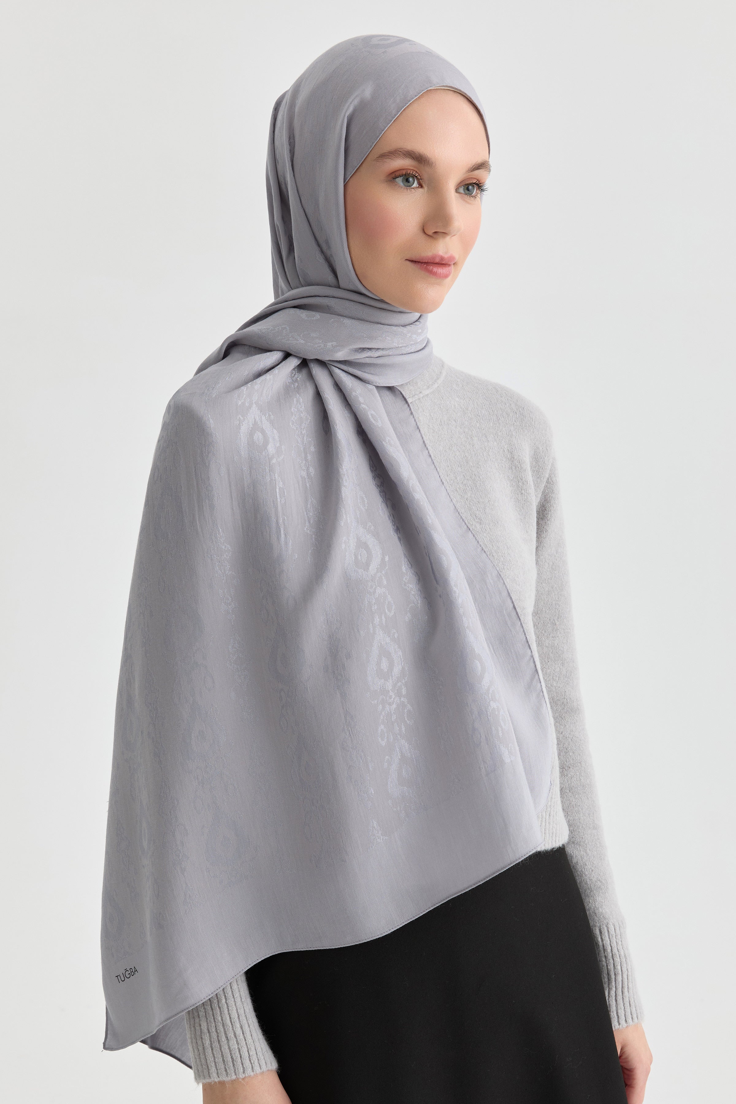 Etnik Motifli Naia Naturel Şal - Gümüş
