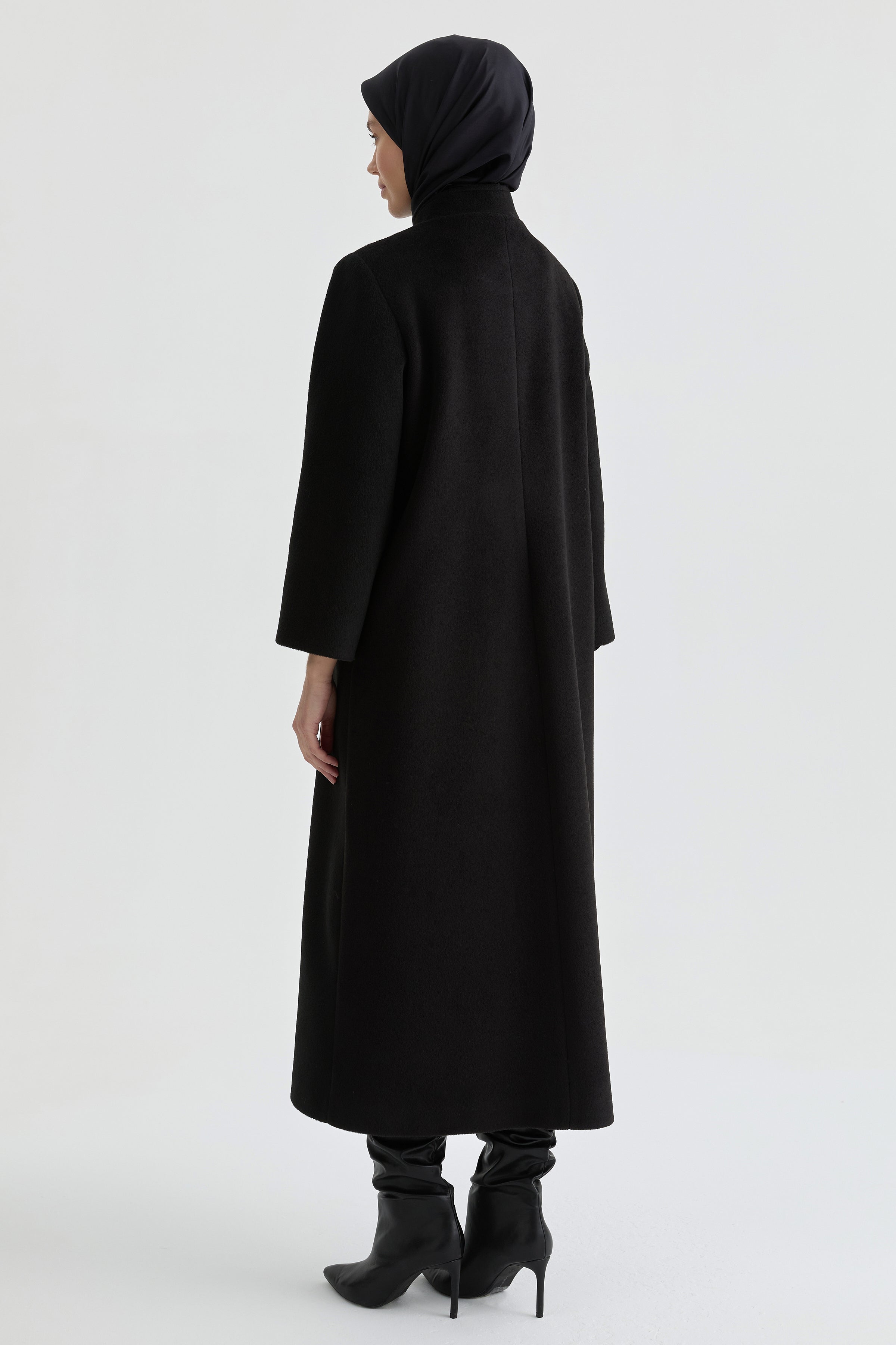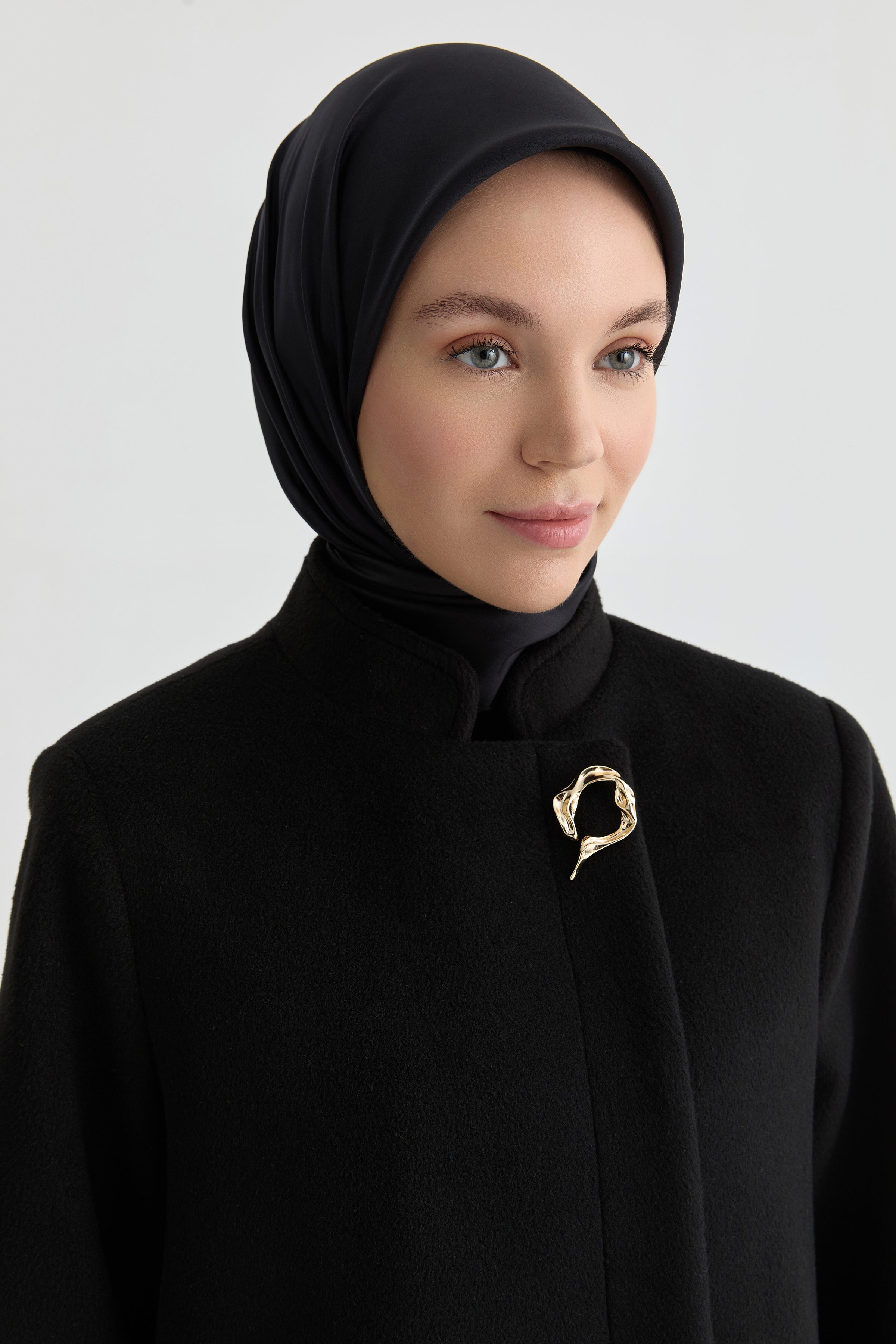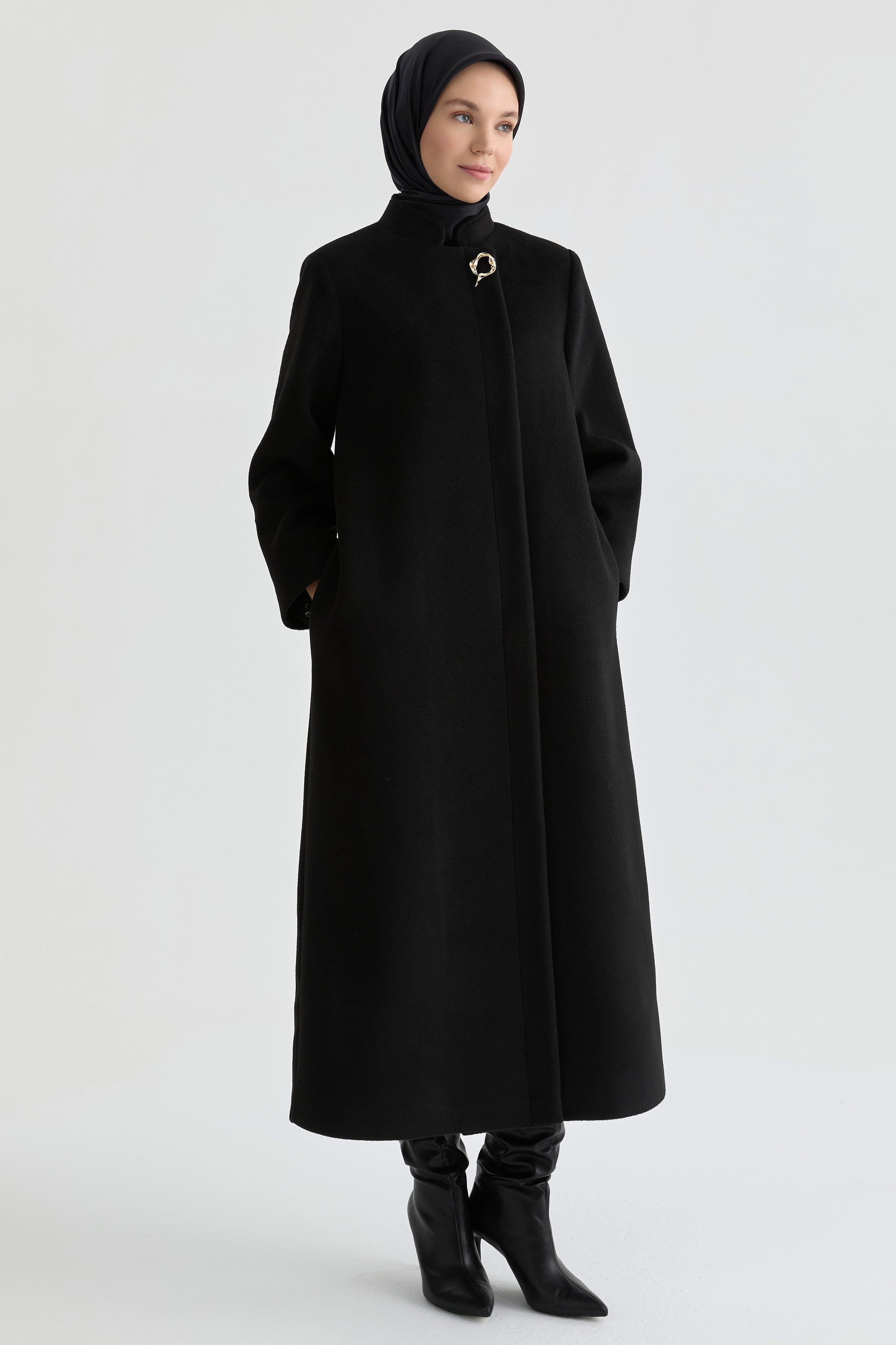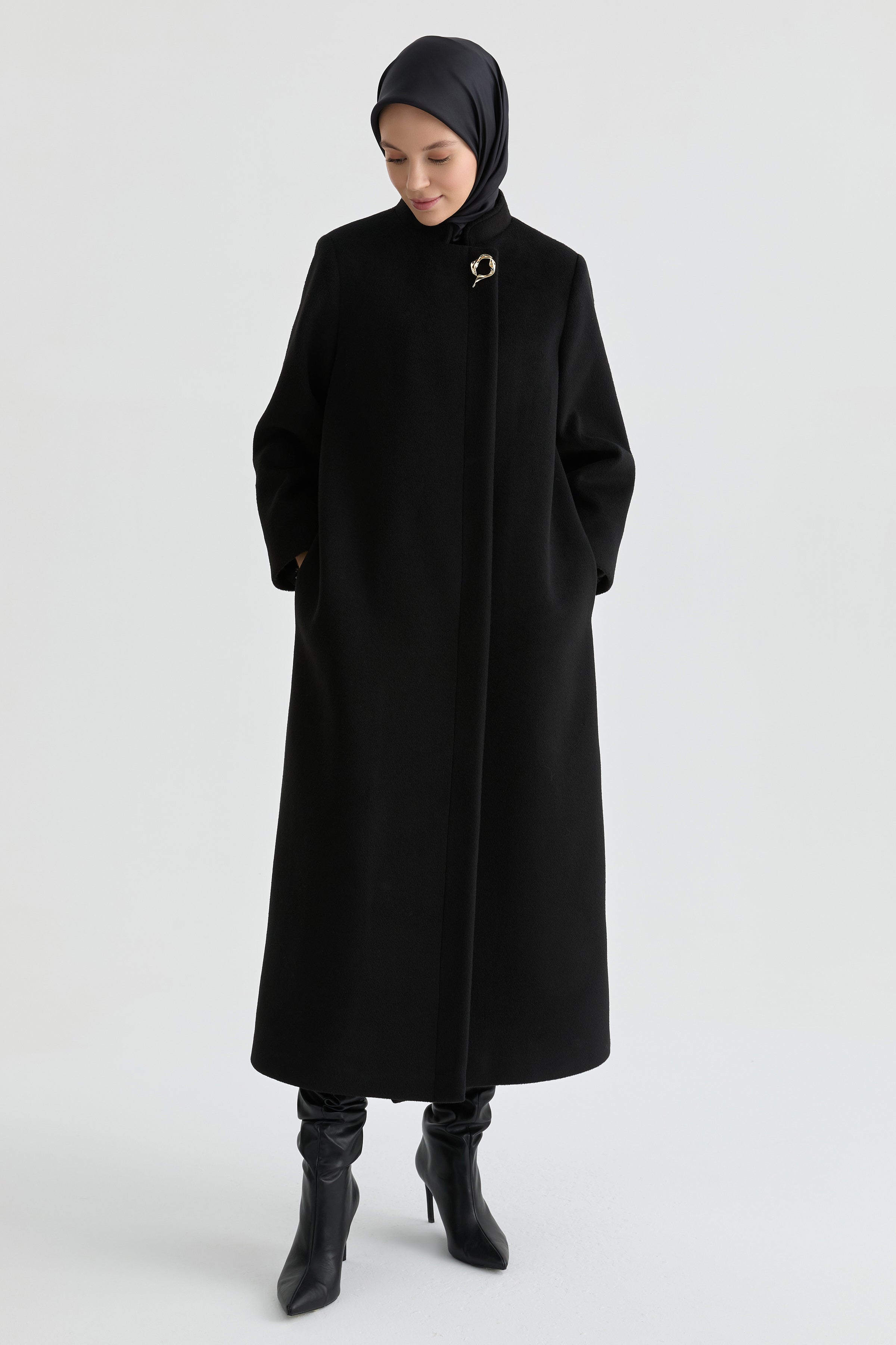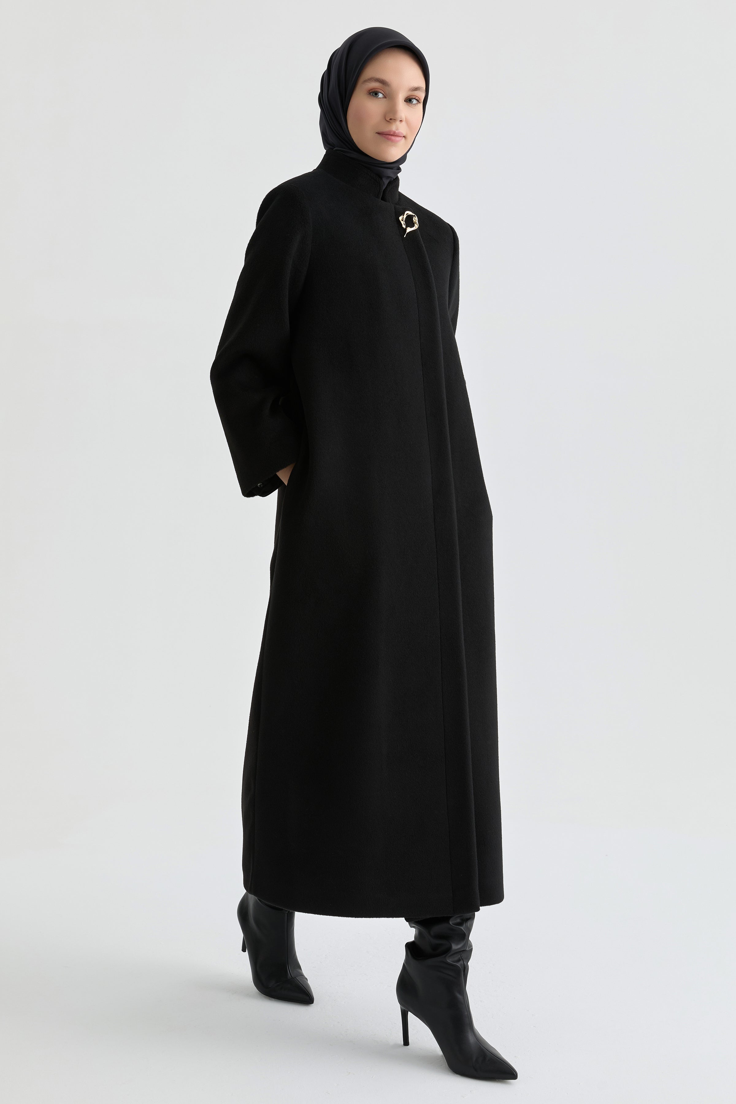 Gizli Patlı Broş Detaylı Kaban - Siyah