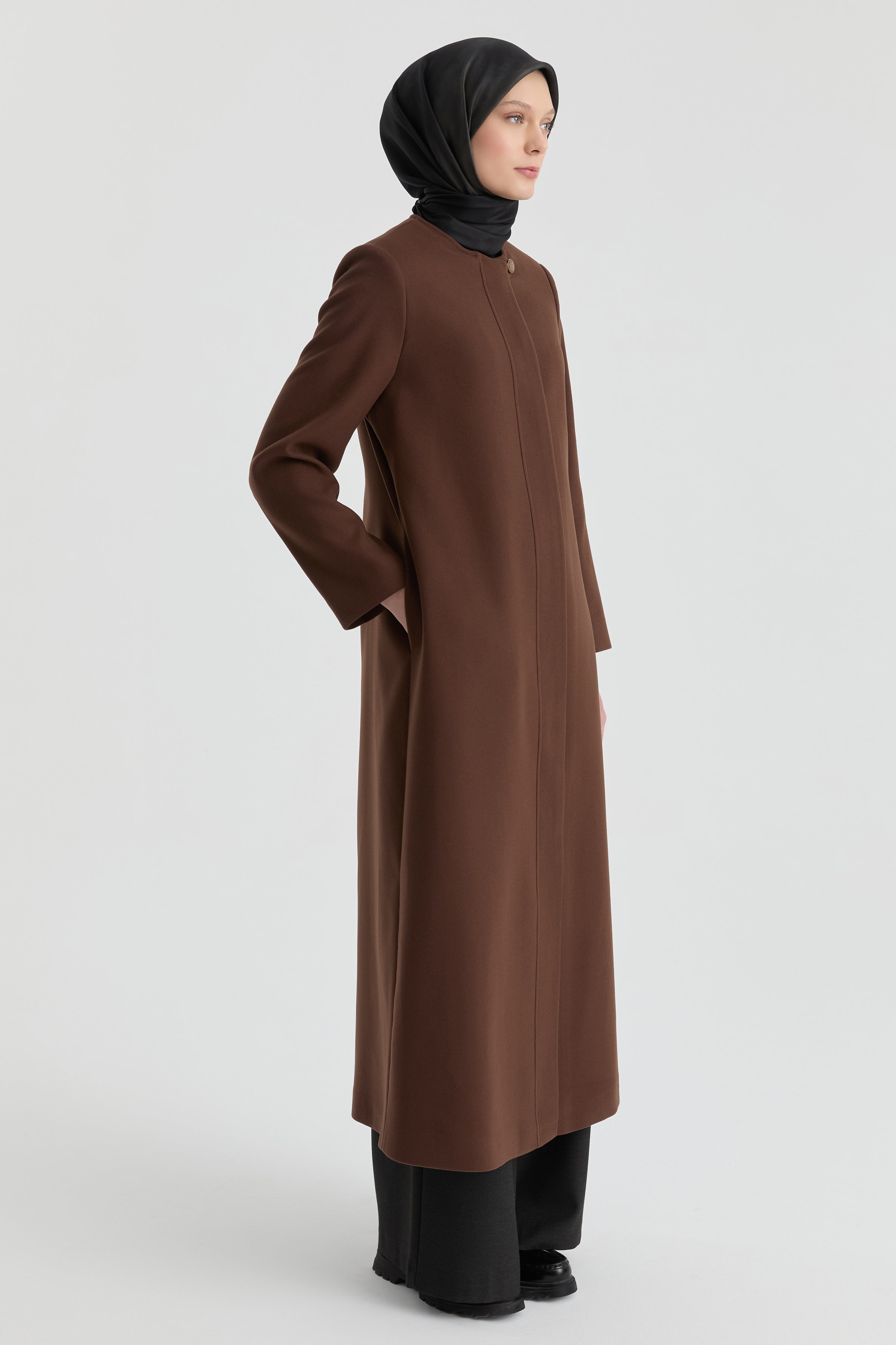 Con un detalle de botones ocultos, este abrigo básico ofrece un look sencillo y limpio, con líneas minimalistas que le confieren un encanto atemporal. El cierre frontal oculto le da un aspecto cohesivo y ordenado.