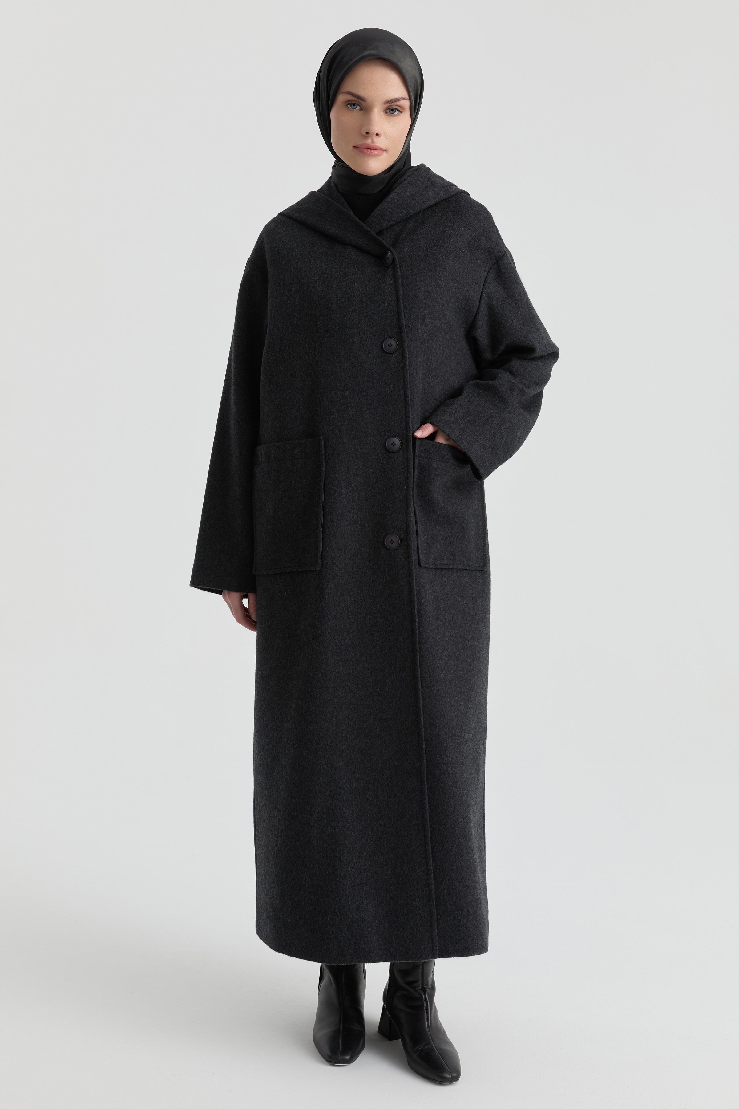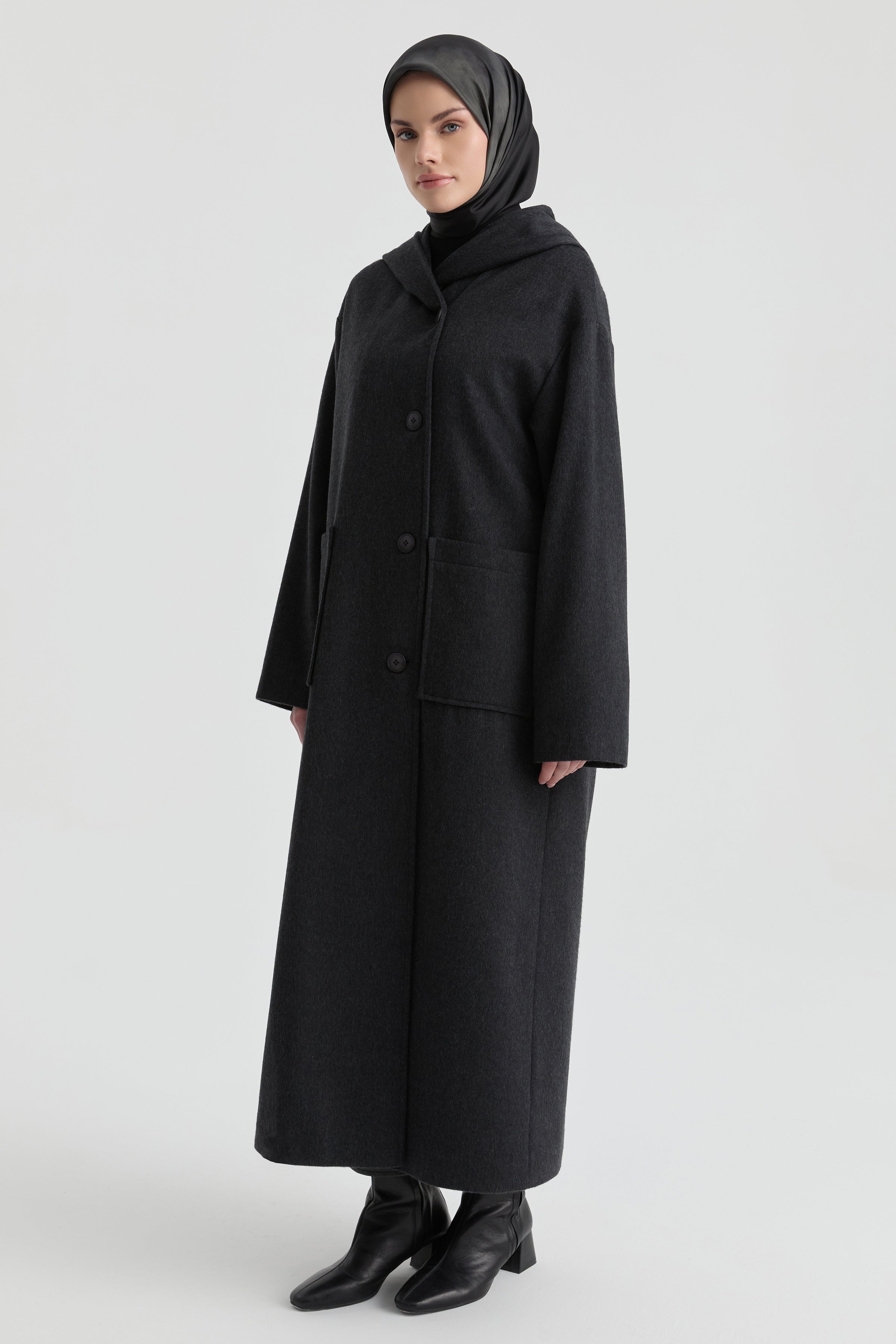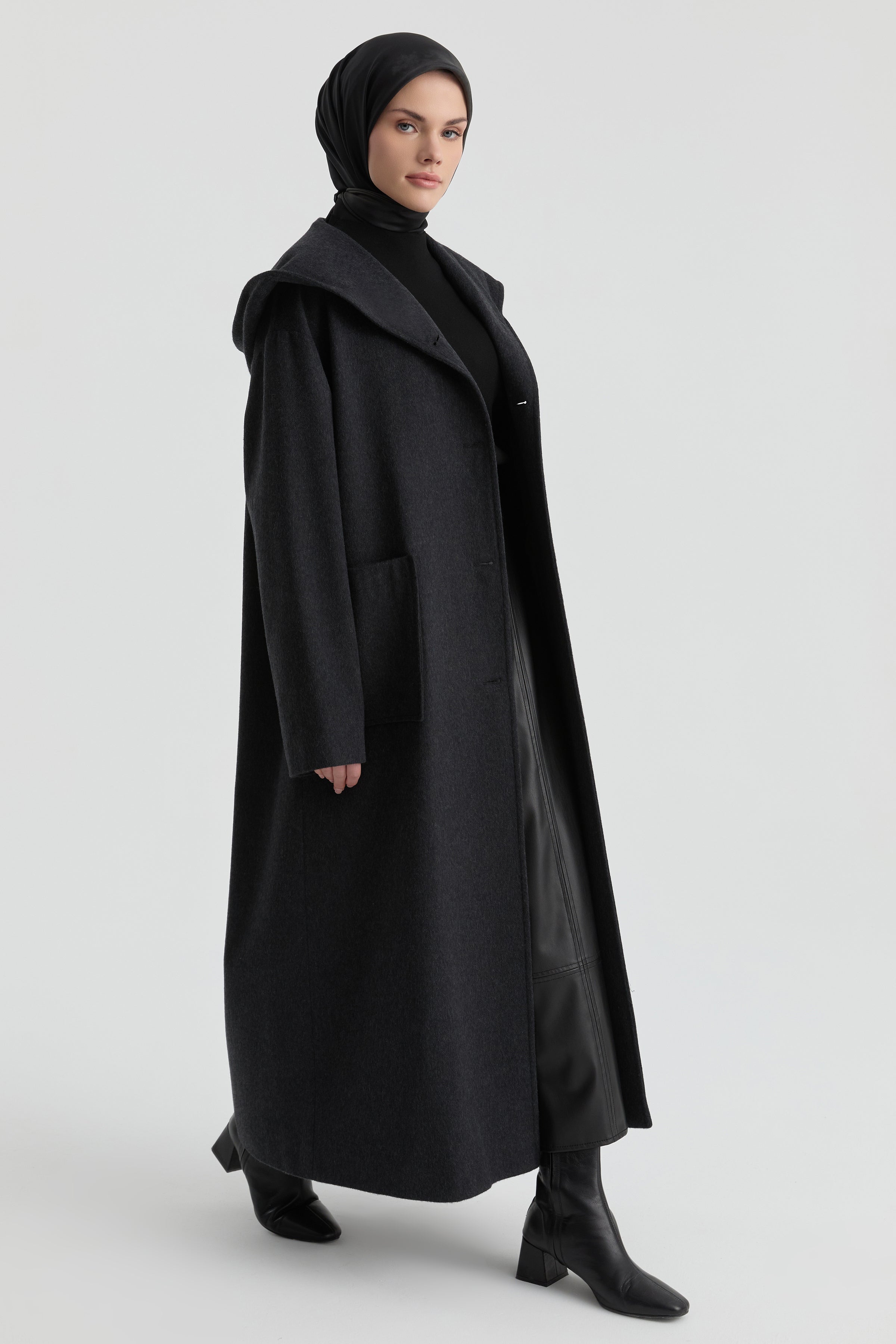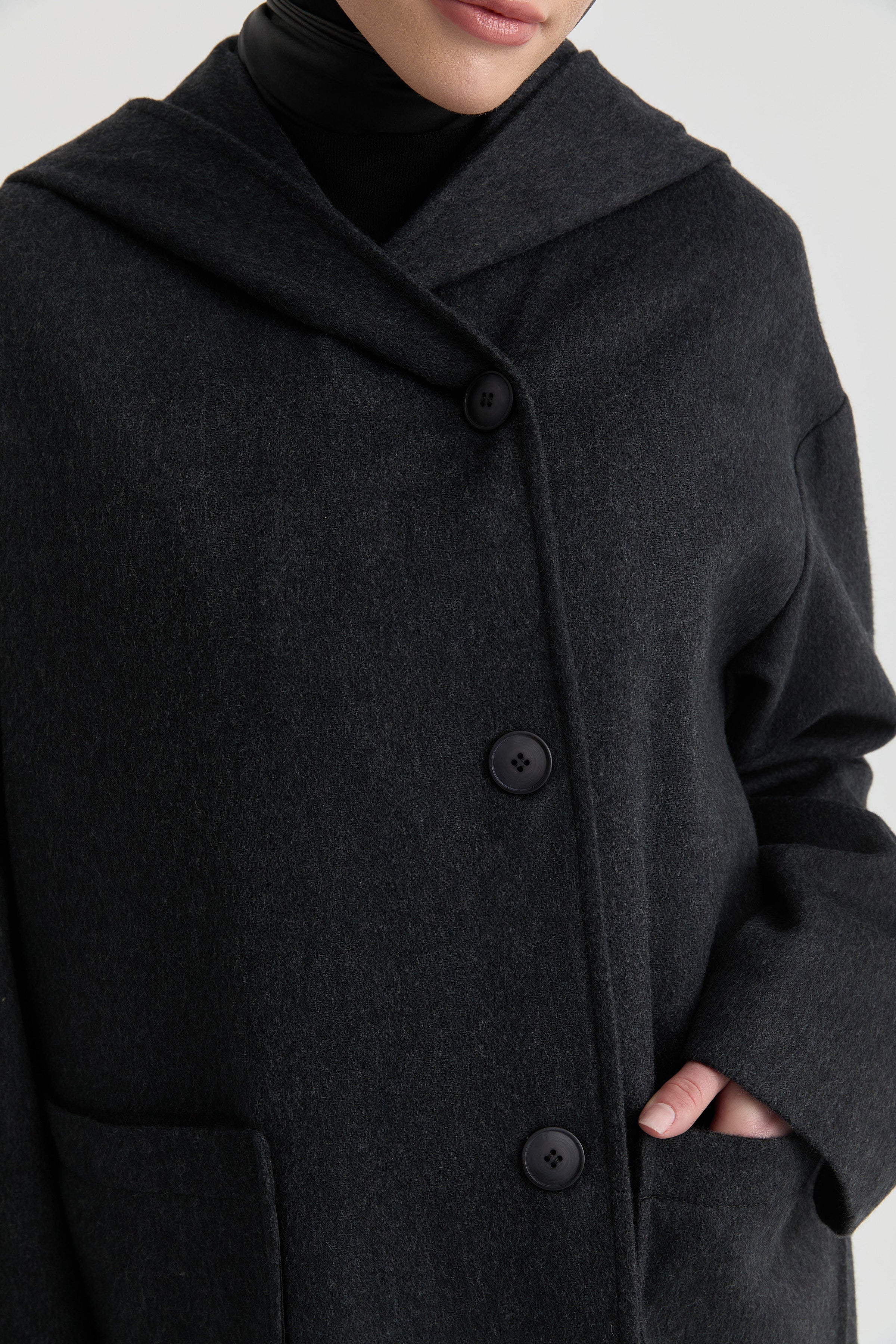 Ofreciendo calidez gracias a su suave textura de cachemira, este abrigo agrega un carácter funcional y moderno al diseño con su detalle de capucha.