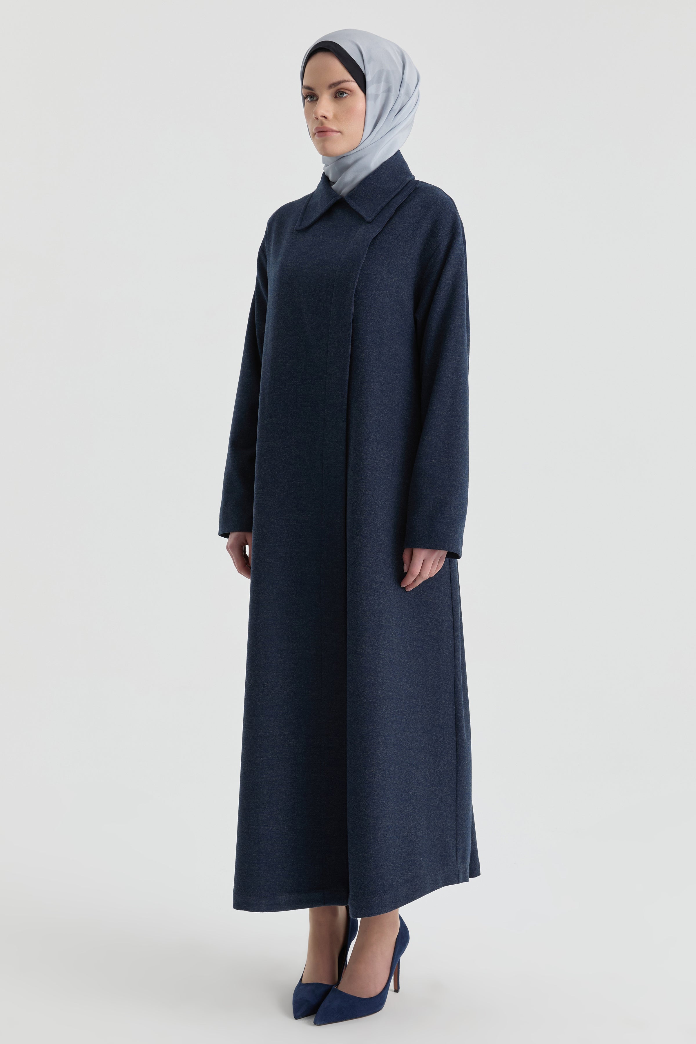 Con un cinturón con botones en la cintura que acentúa la figura de manera equilibrada, este abrigo ofrece elegancia moderna con sus líneas simples.