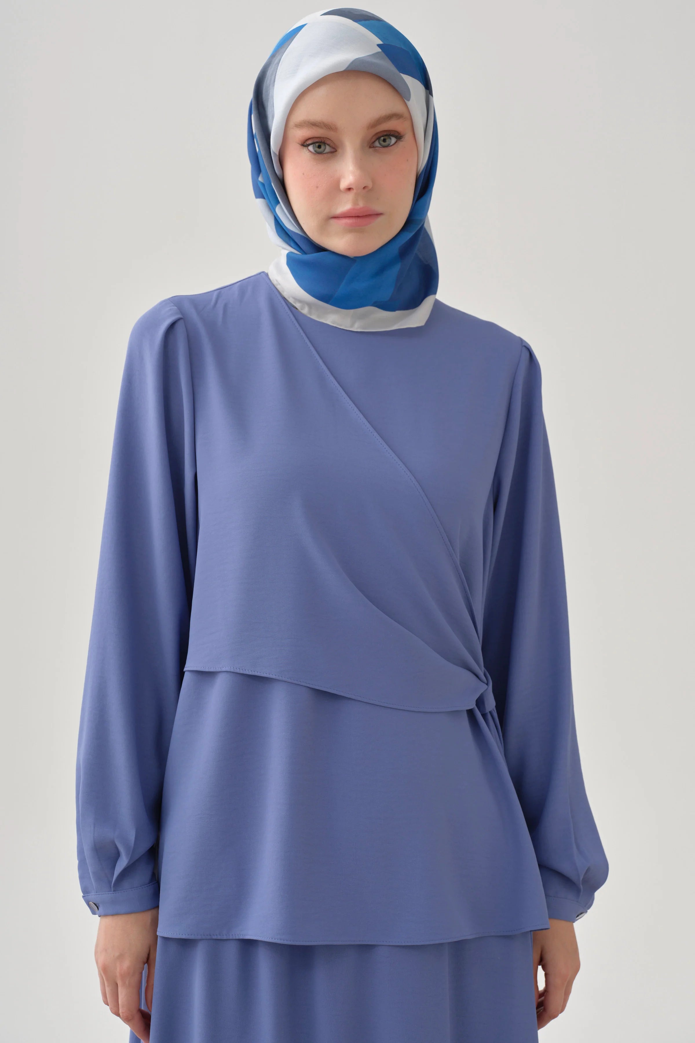 Una interpretación moderna de la elegancia atemporal: La blusa cruzada realza la sofisticación con su corte ceñido y cierre cruzado. Gracias a su diseño cruzado, realza la cintura, creando una silueta femenina y elegante.