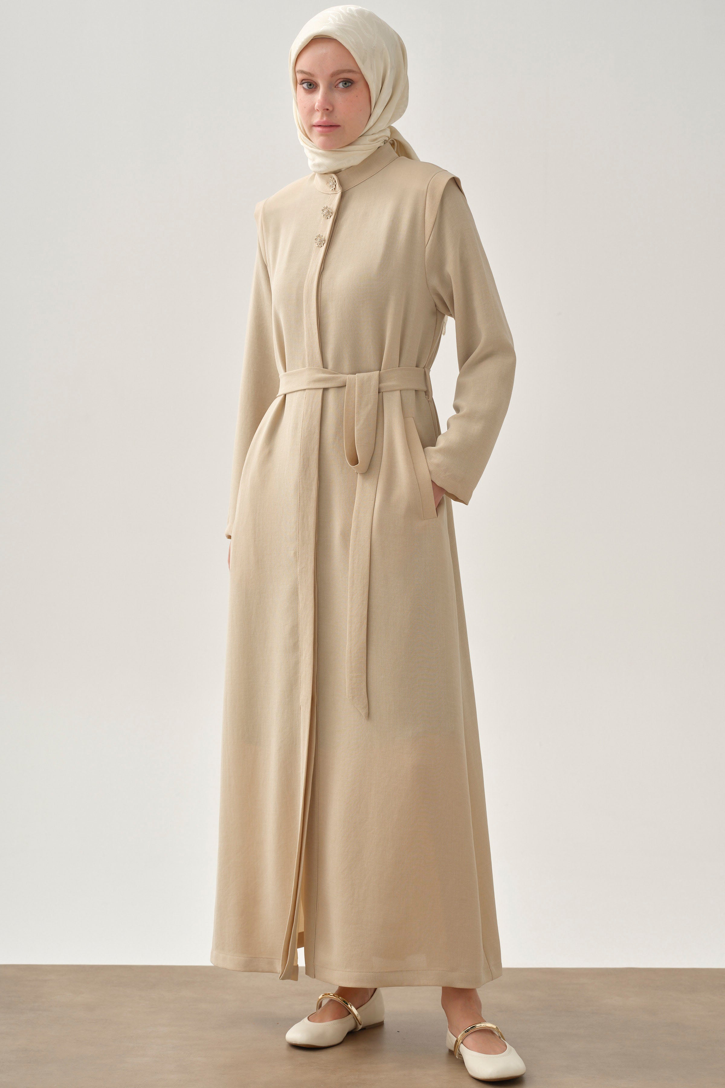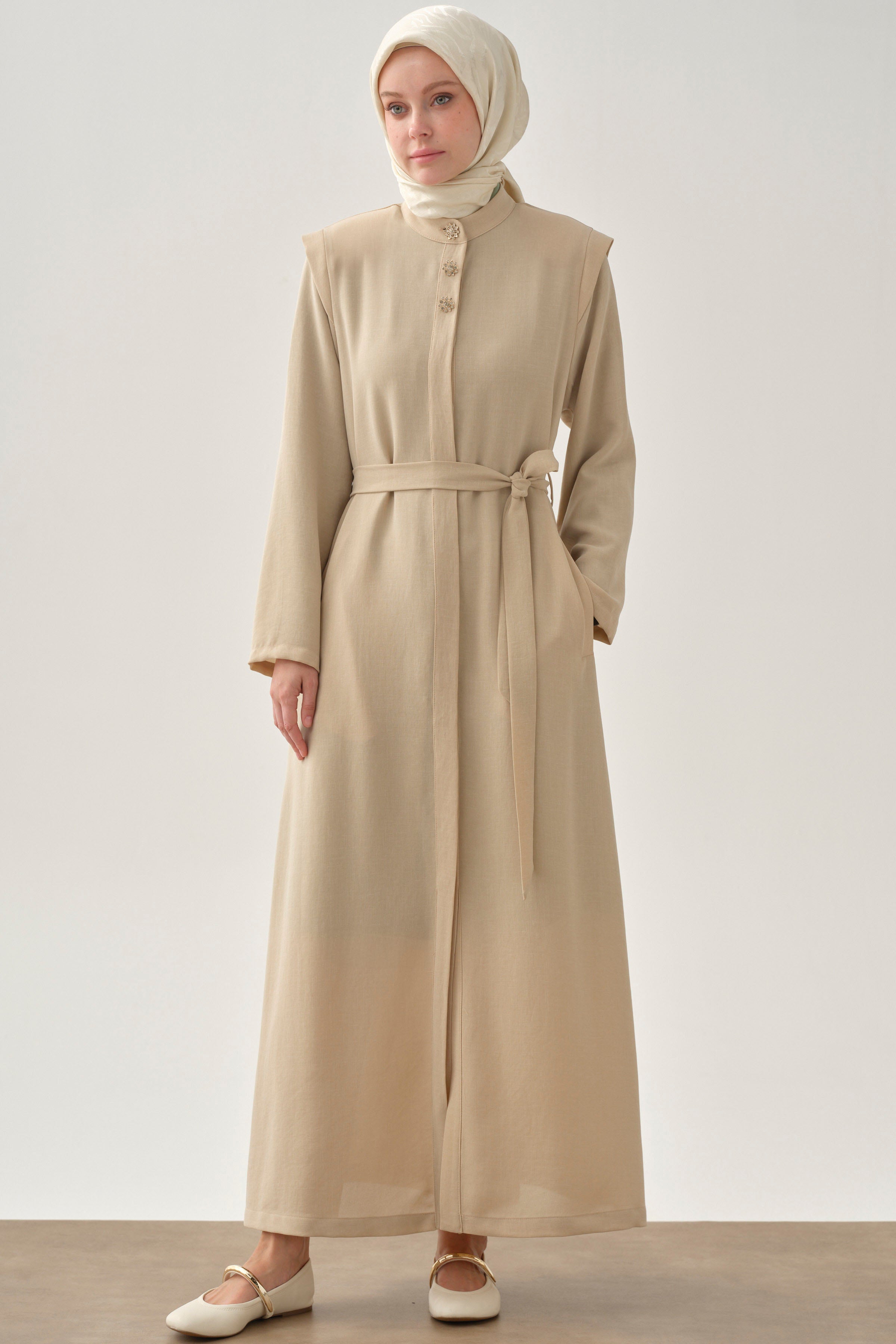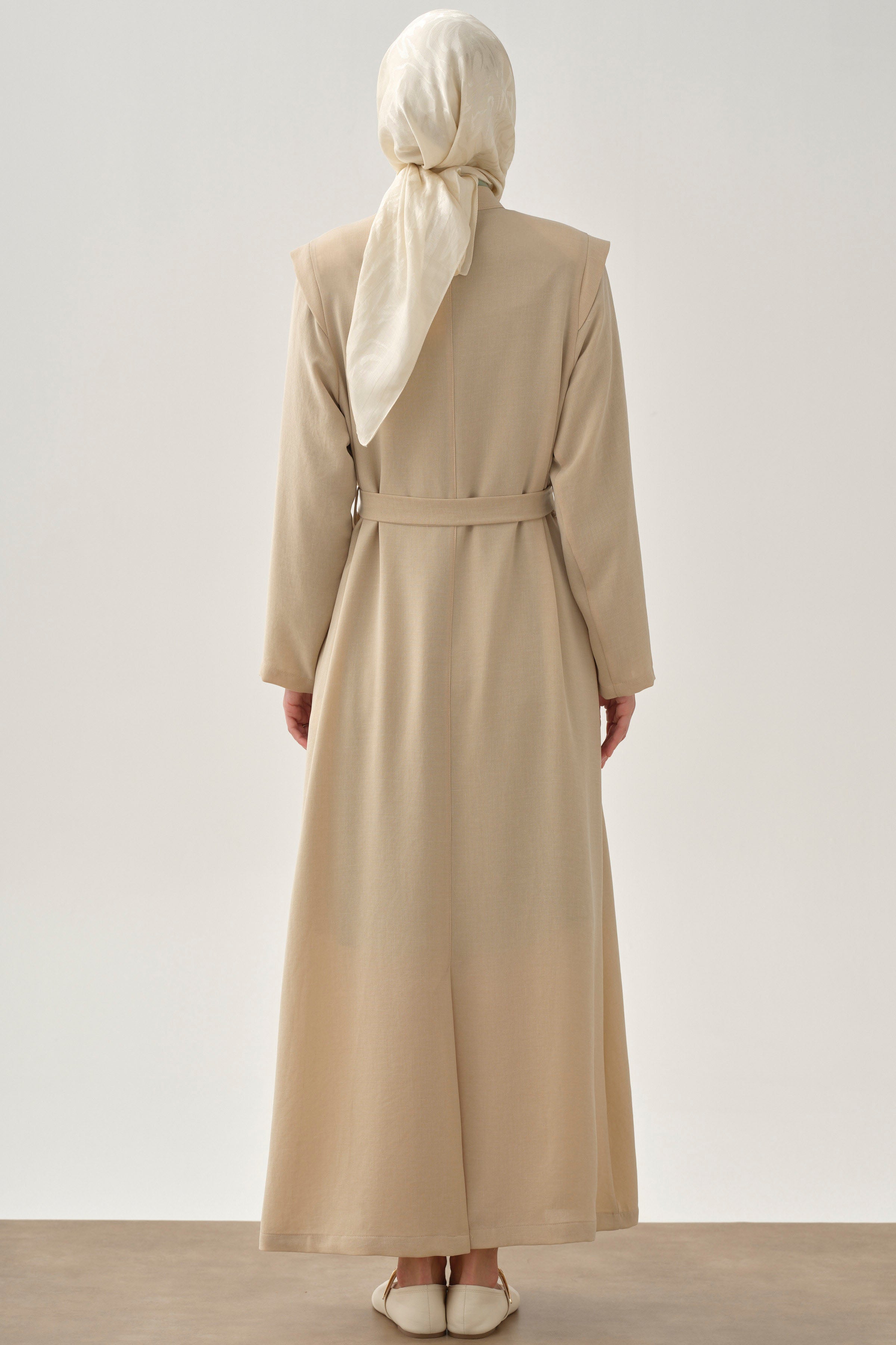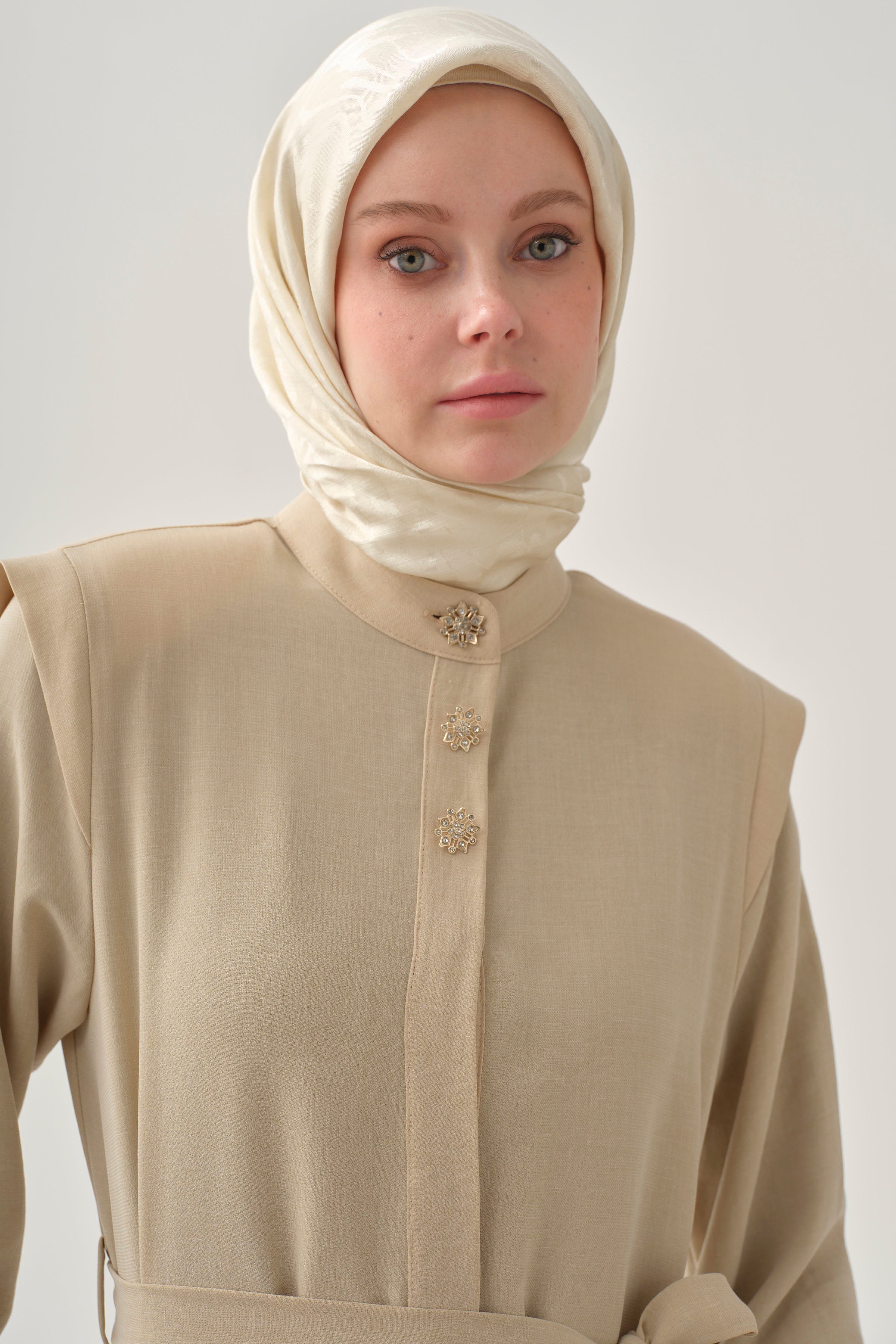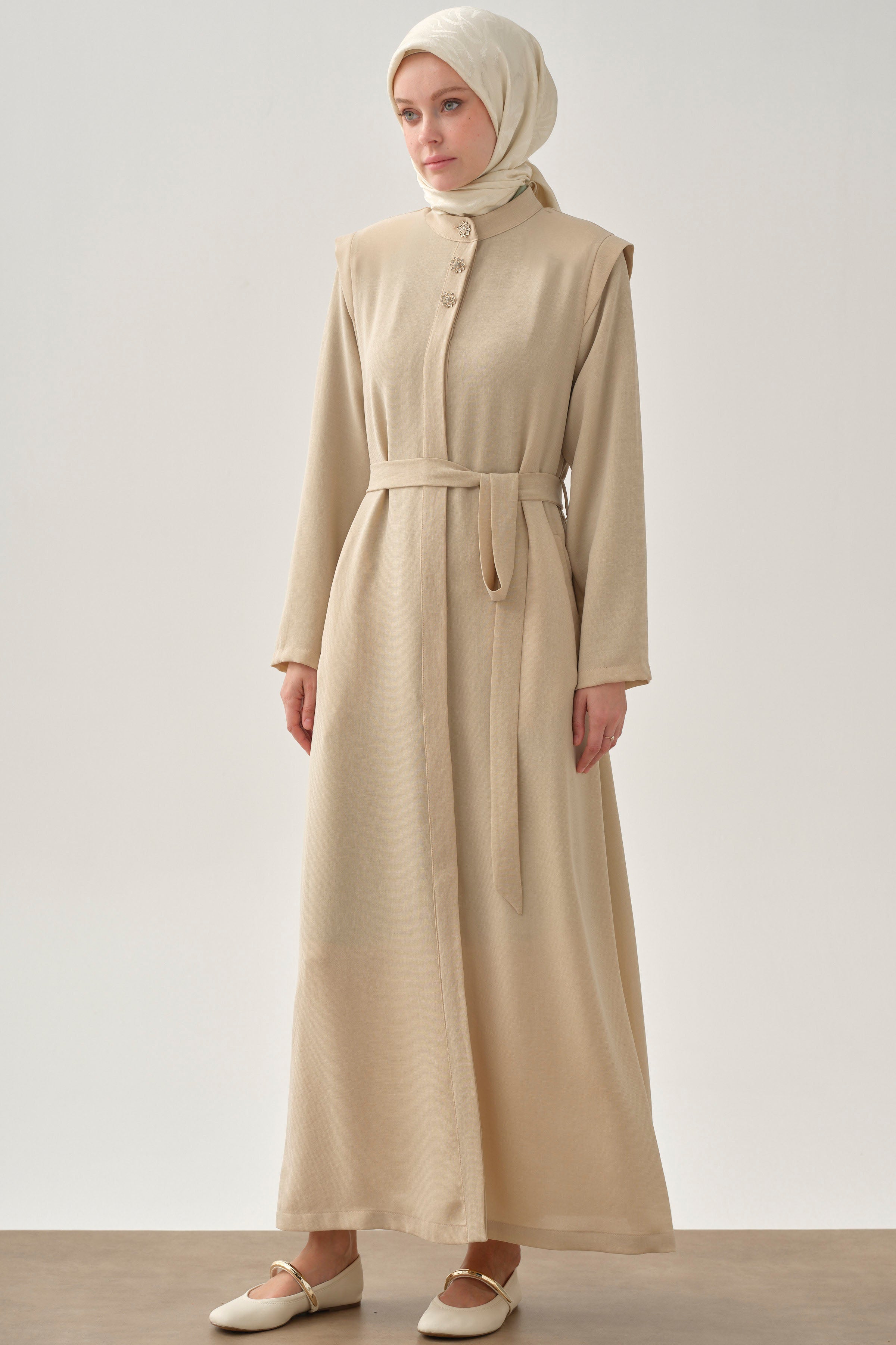 Esta bata, con sus elegantes detalles en los hombros, se adapta al cuerpo gracias a su diseño con cinturón. Su tejido fluido ofrece comodidad durante todo el día. Complementa tanto estilos clásicos como modernos.