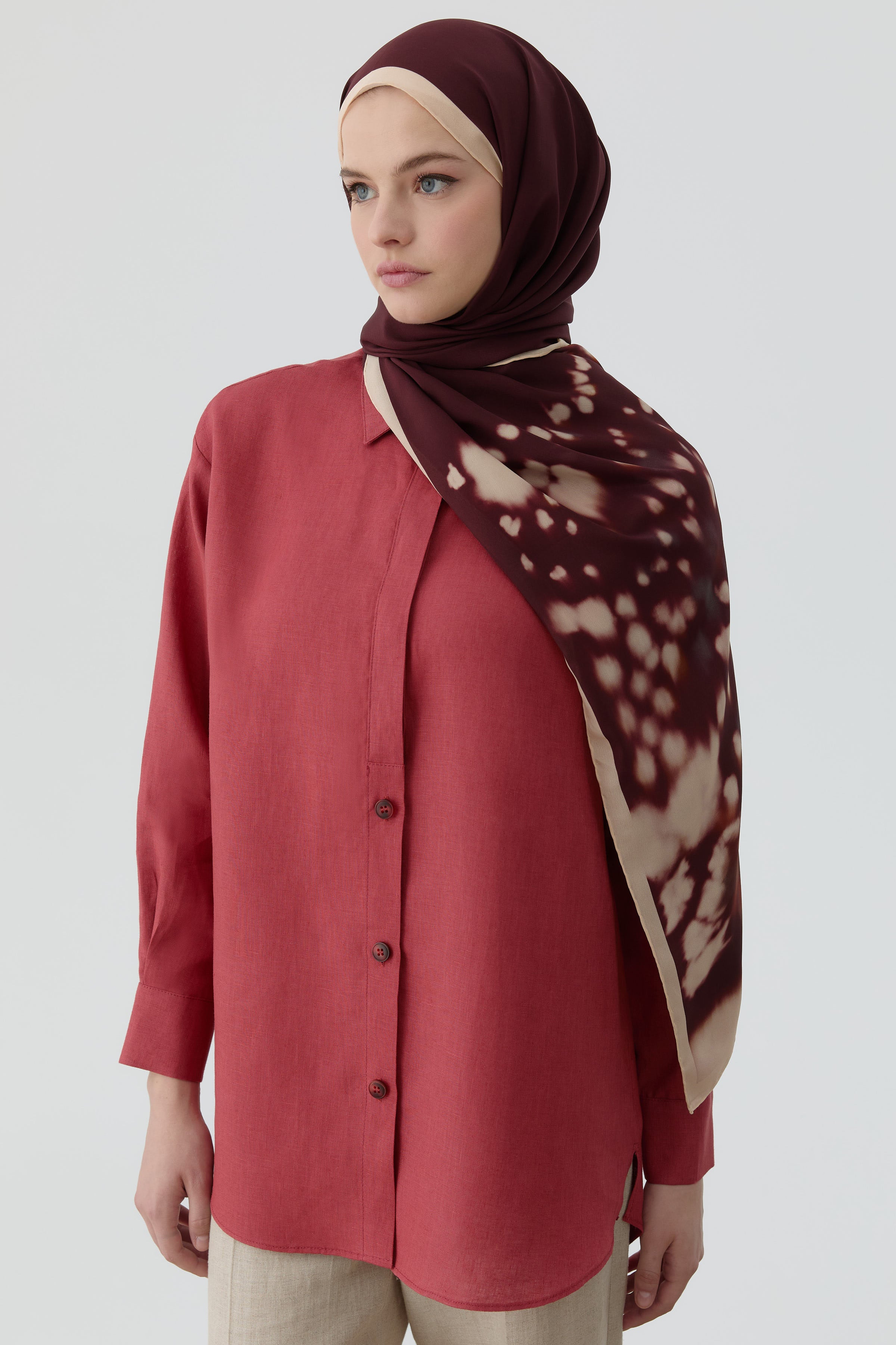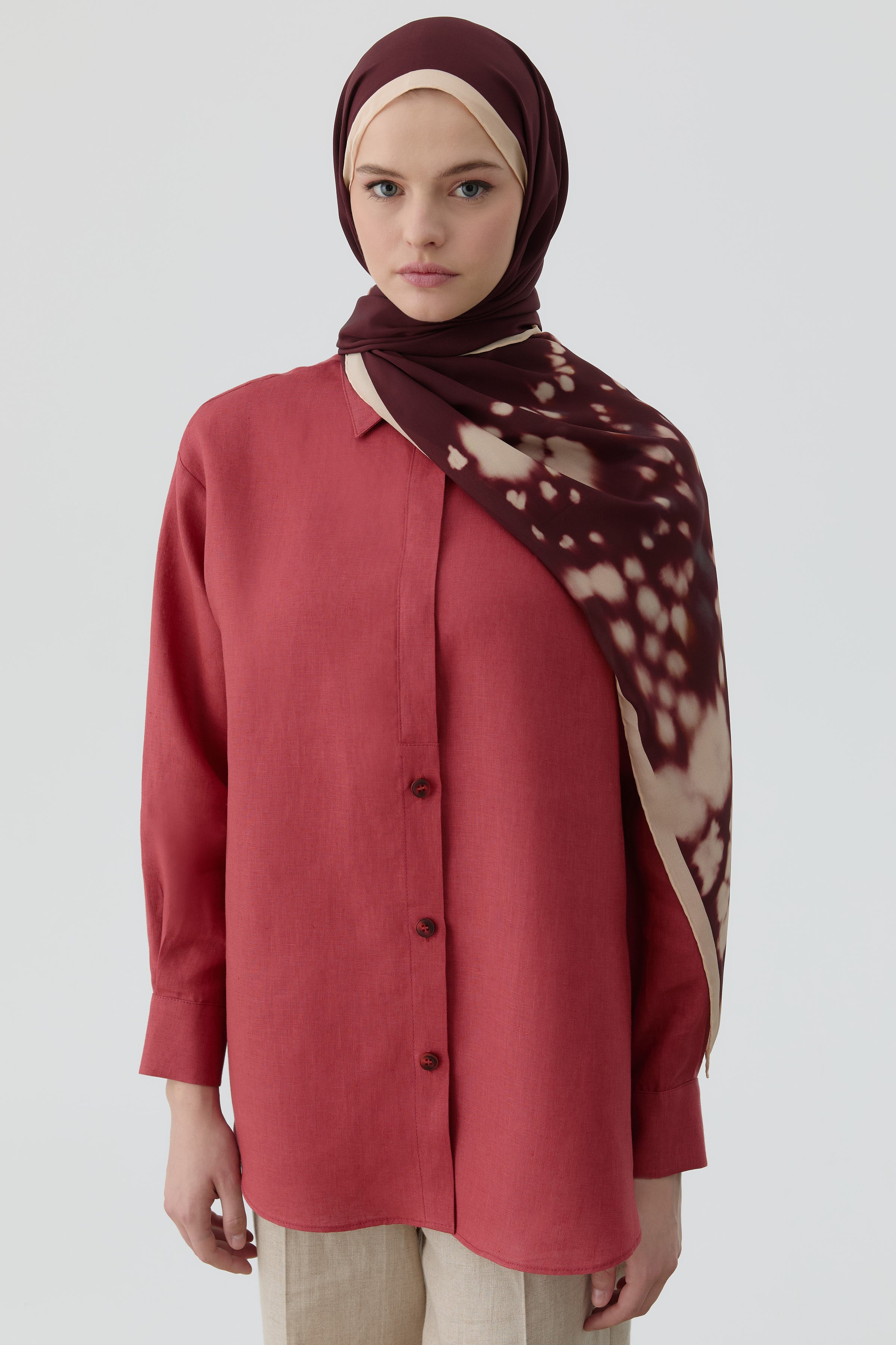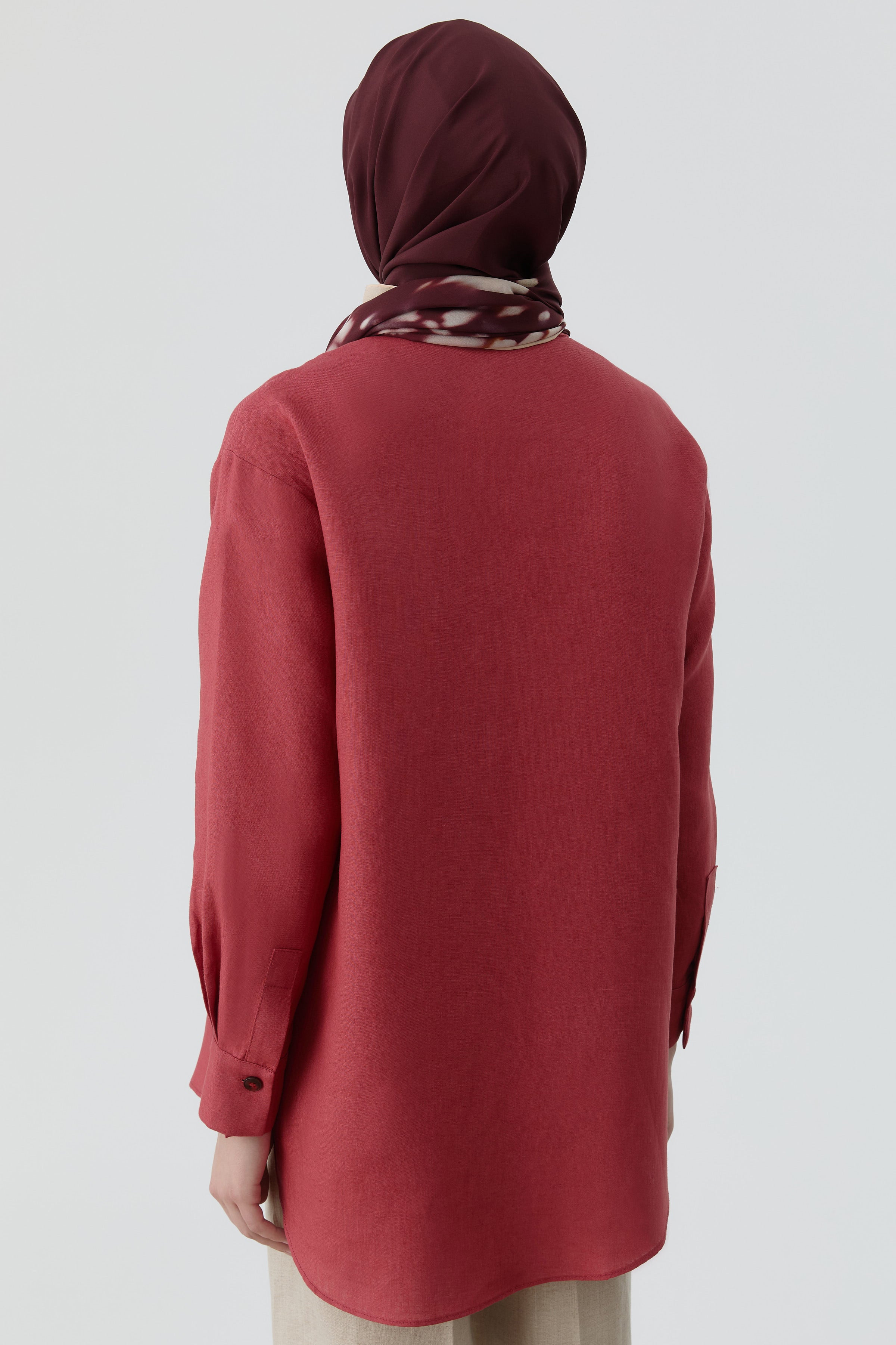 Esta camisa, que ofrece una comodidad ideal en climas cálidos gracias a su tejido de lino transpirable, adquiere un aspecto moderno con su detalle de cierre invertido.