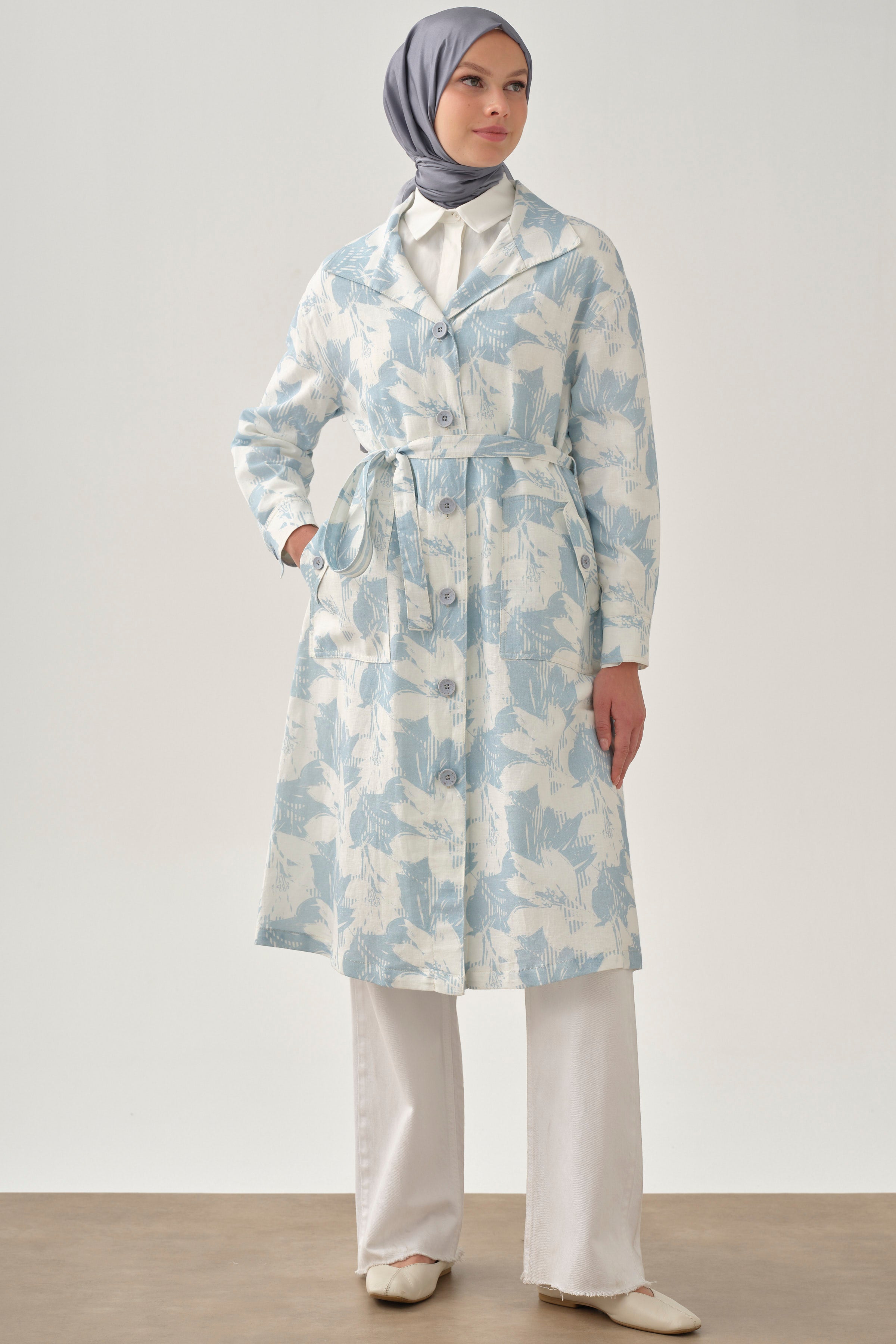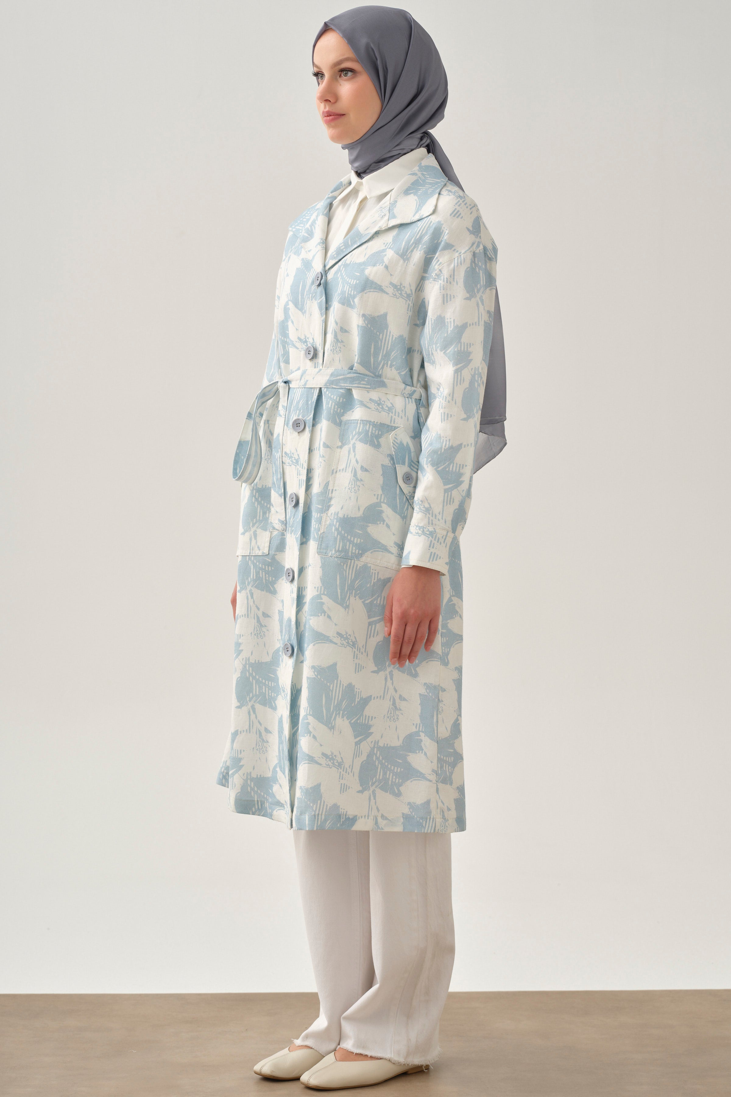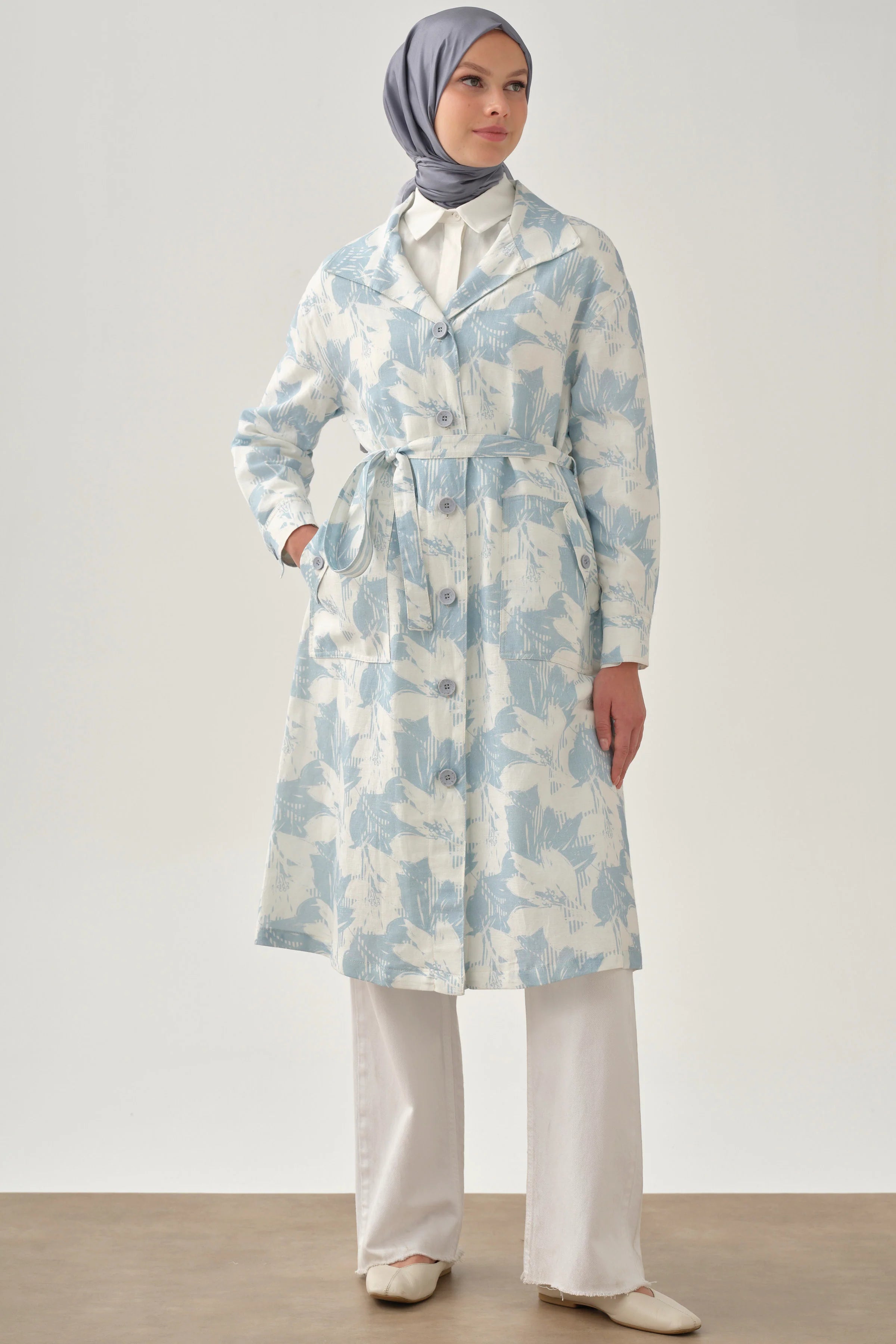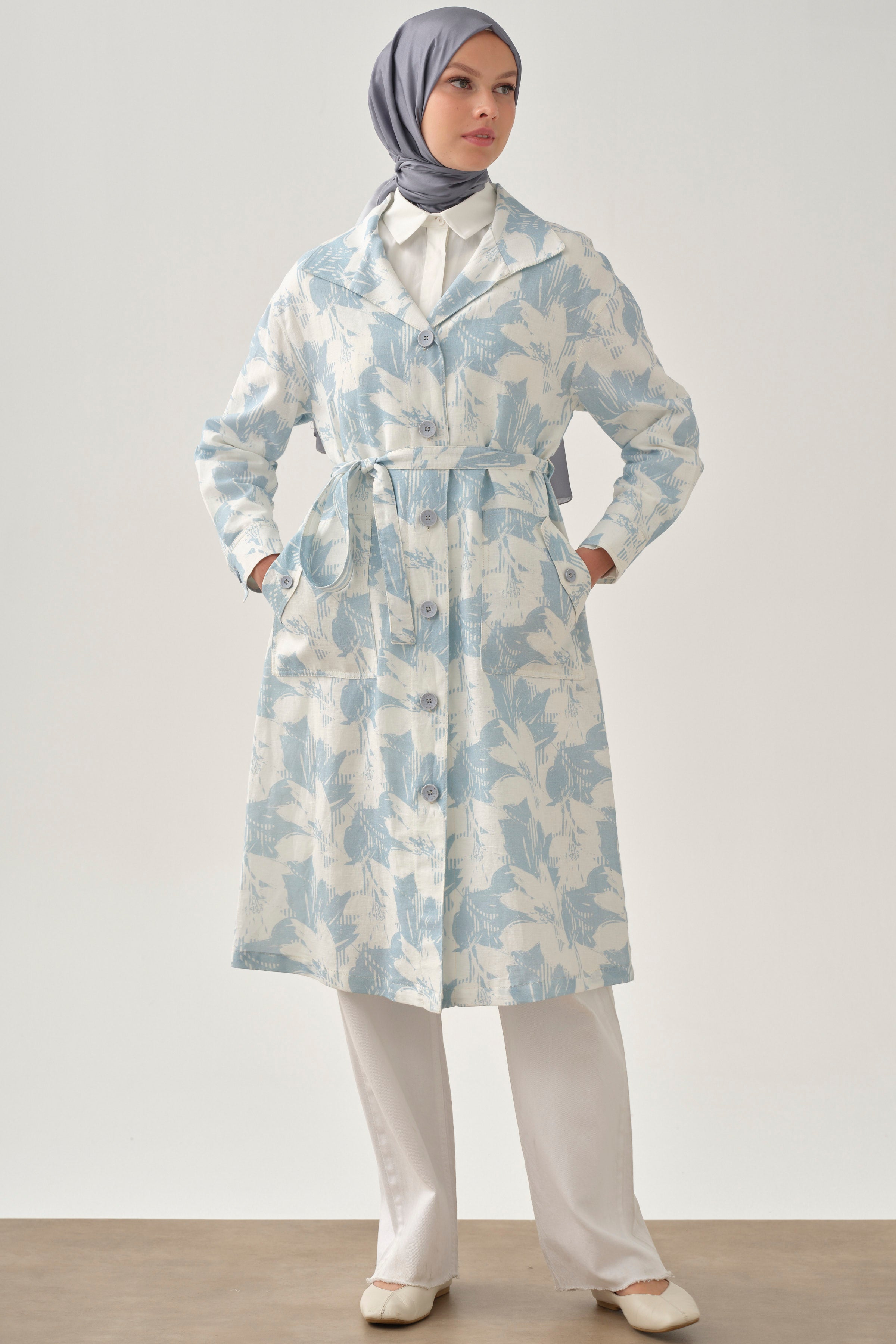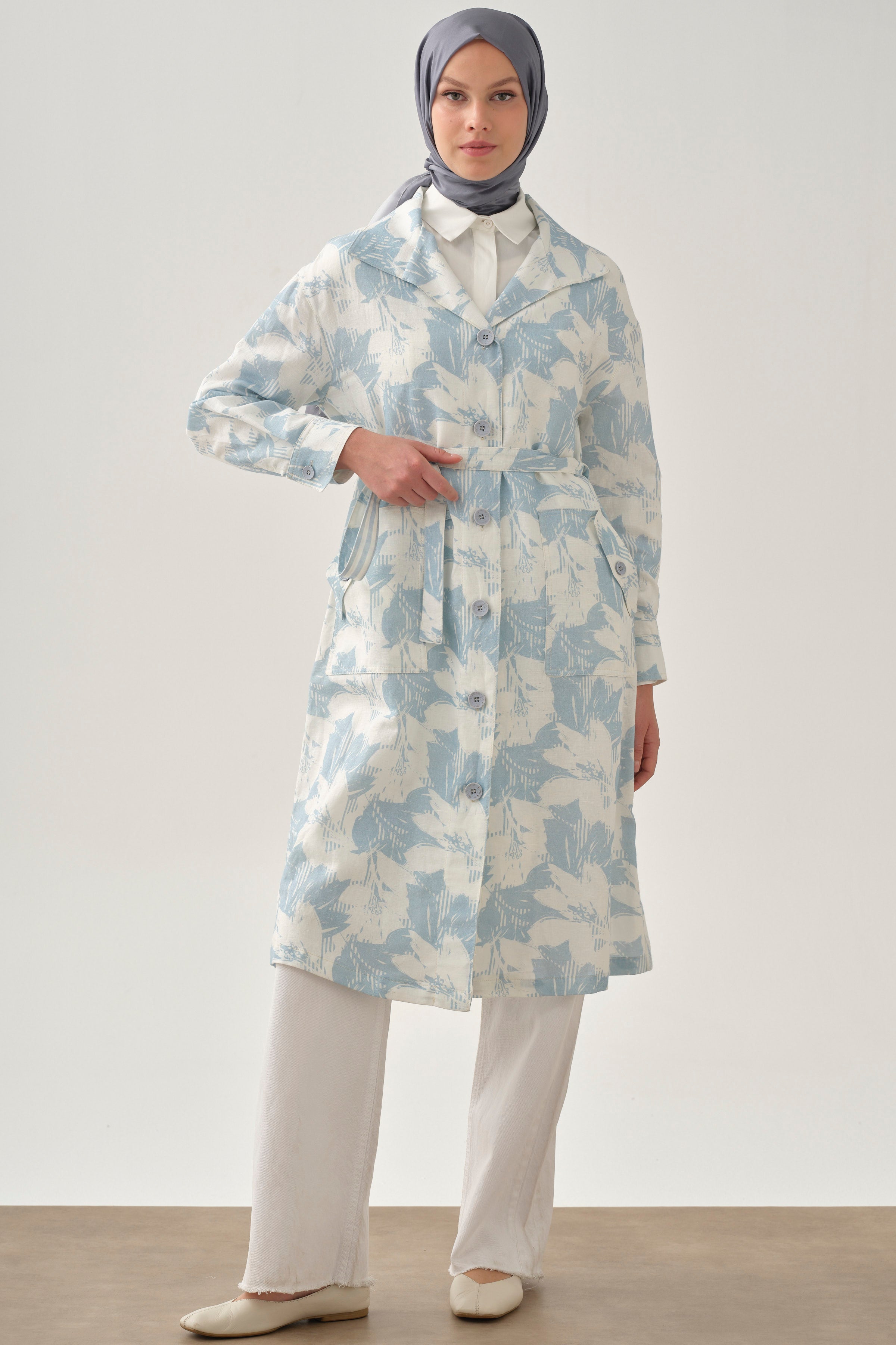 Texturas naturales y estampados modernos se unen: el abrigo de lino estampado, con su estructura transpirable y textura ligera, está destinado a convertirse en un accesorio imprescindible para el verano. Las propiedades refrescantes del lino, combinadas con su diseño estampado, crean un look fresco y elegante.