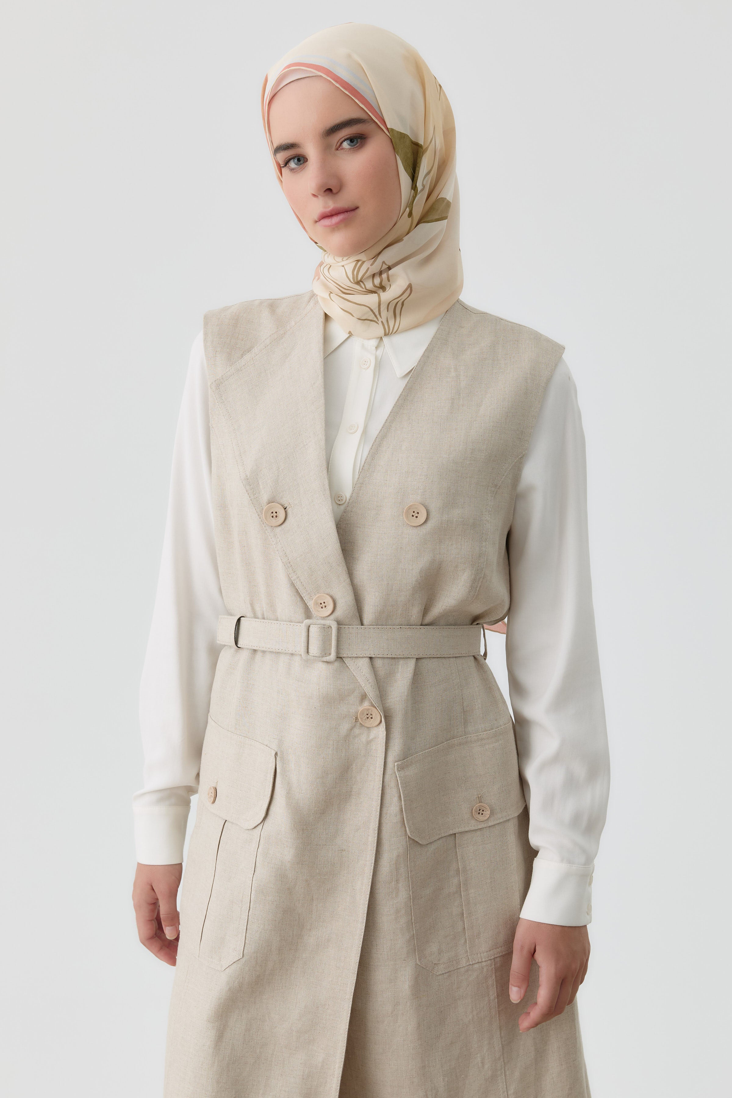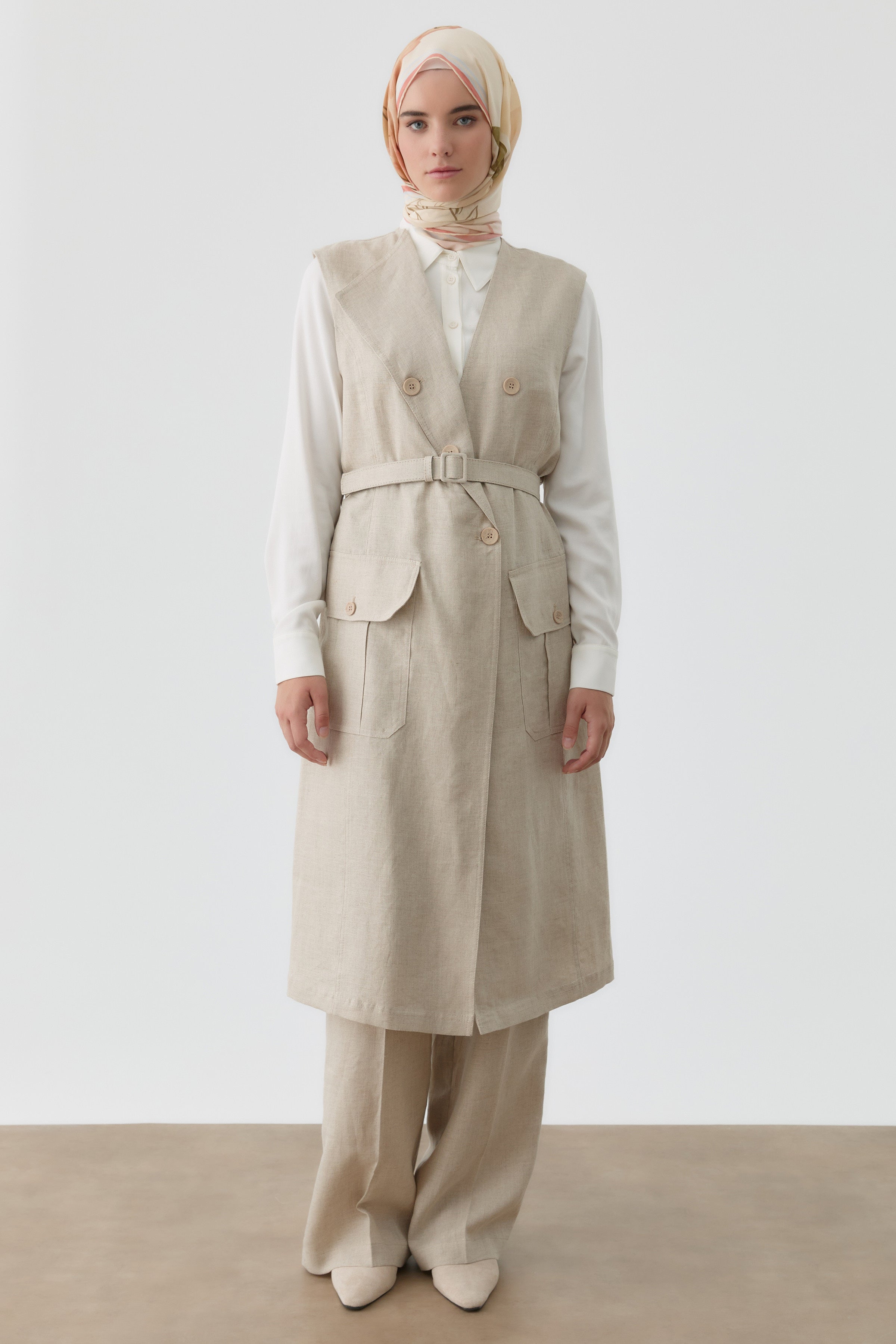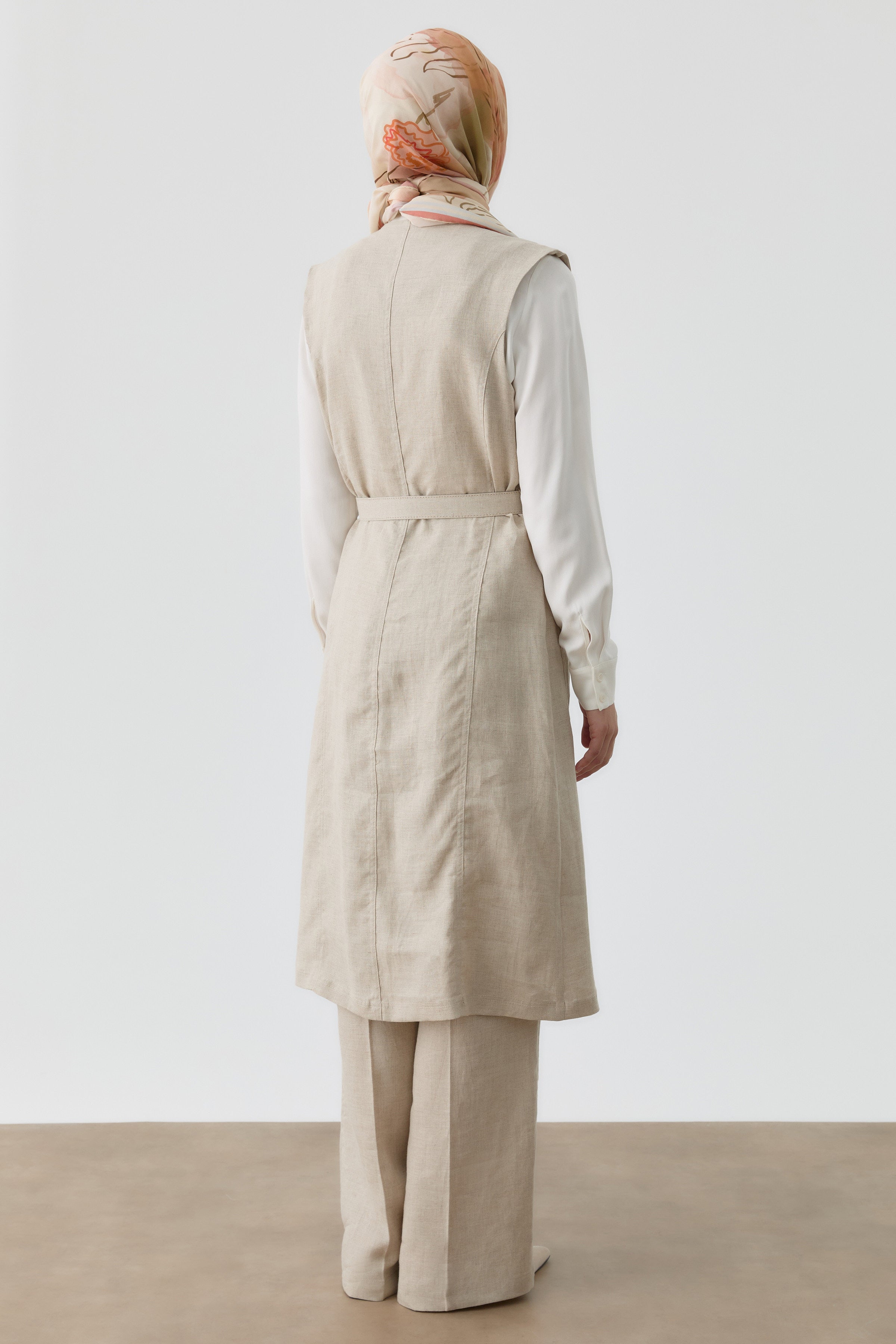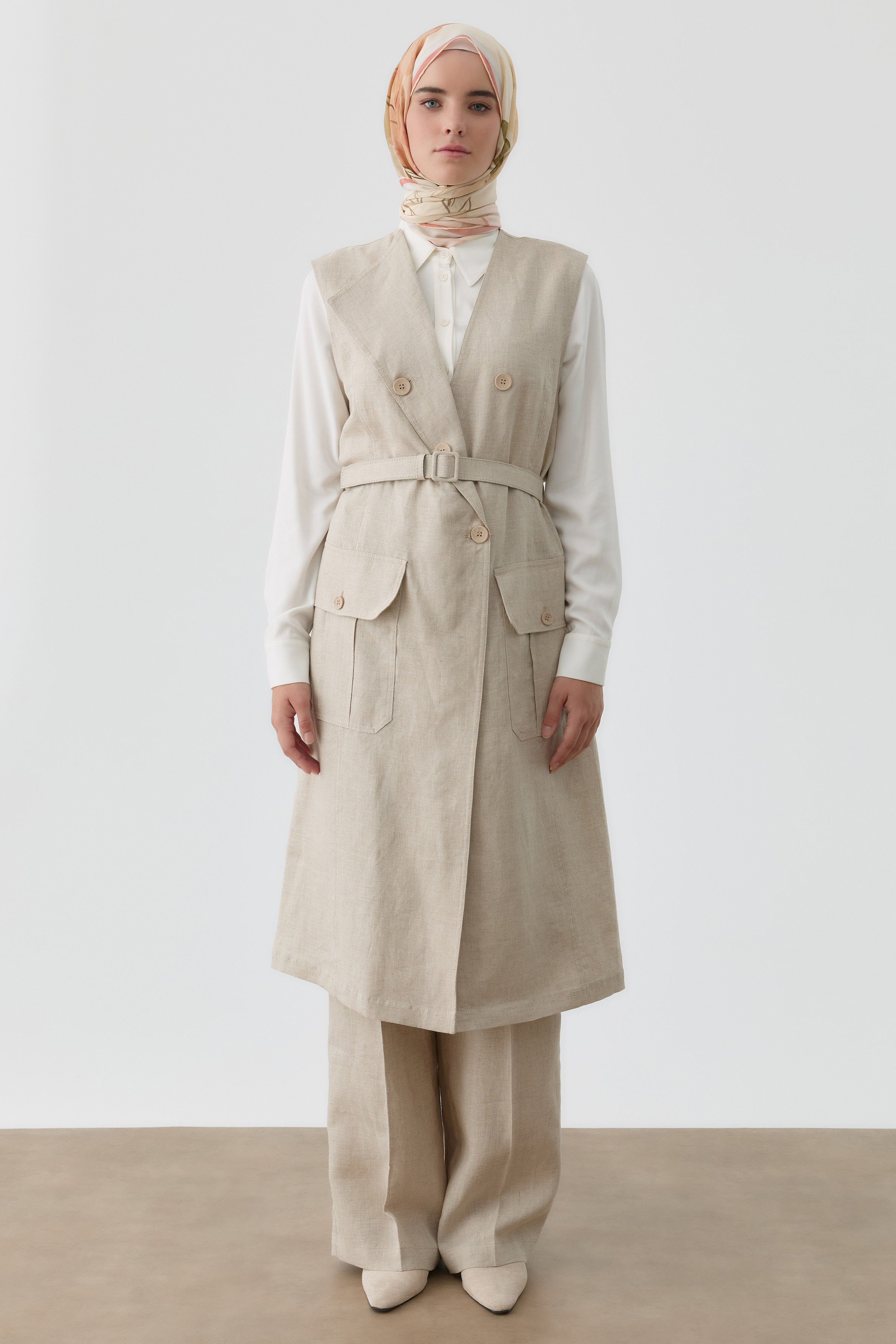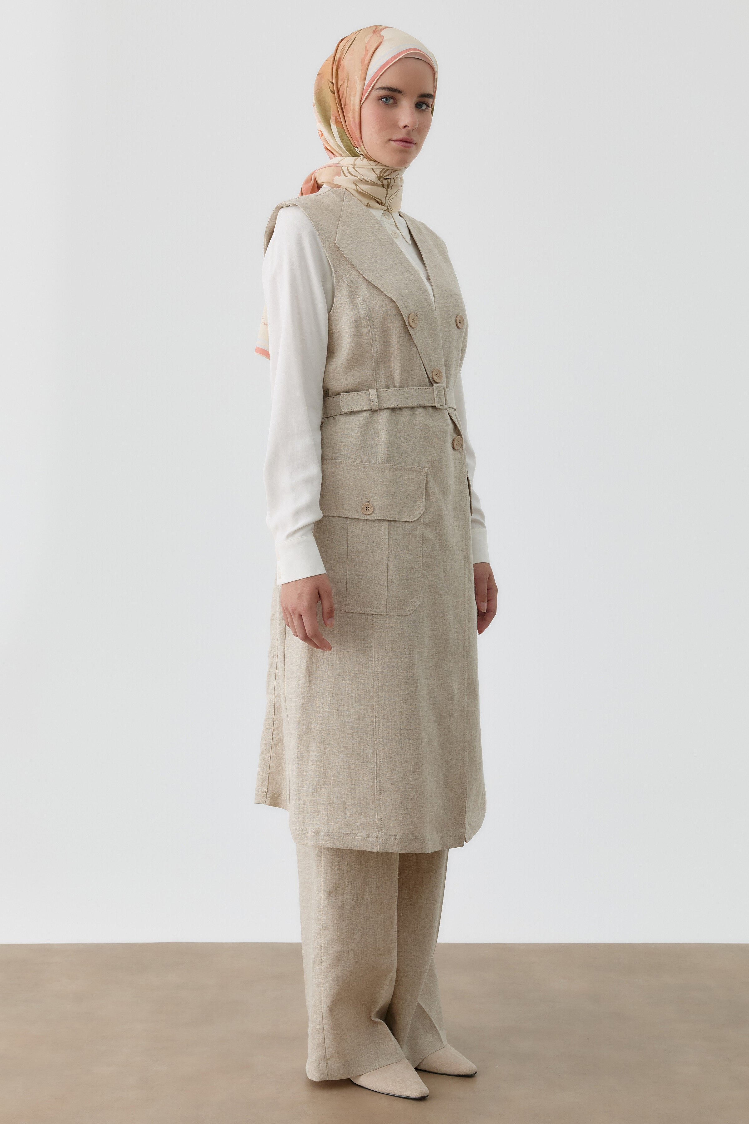 Chaleco con cinturón y hebilla metálica lateral - Beige