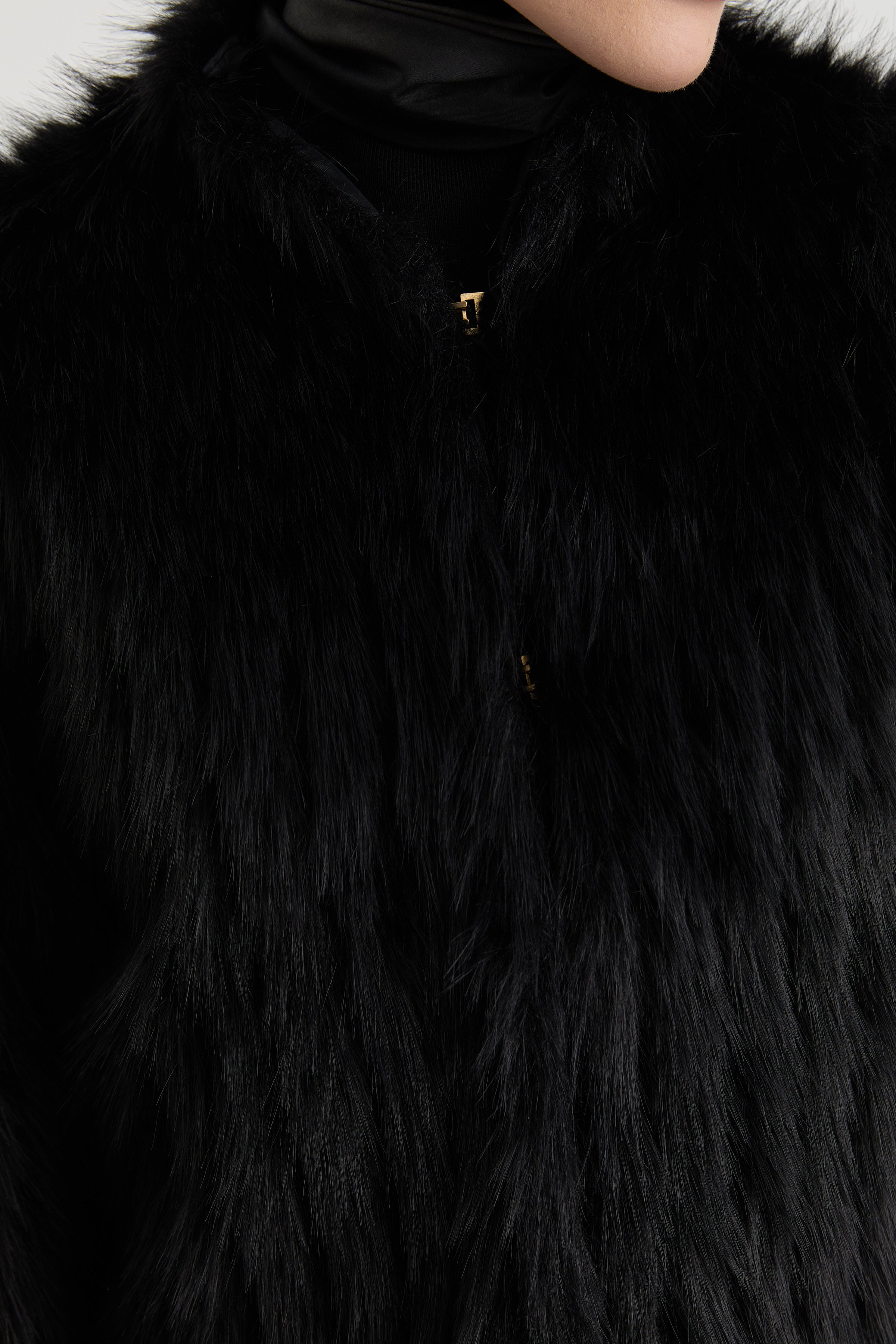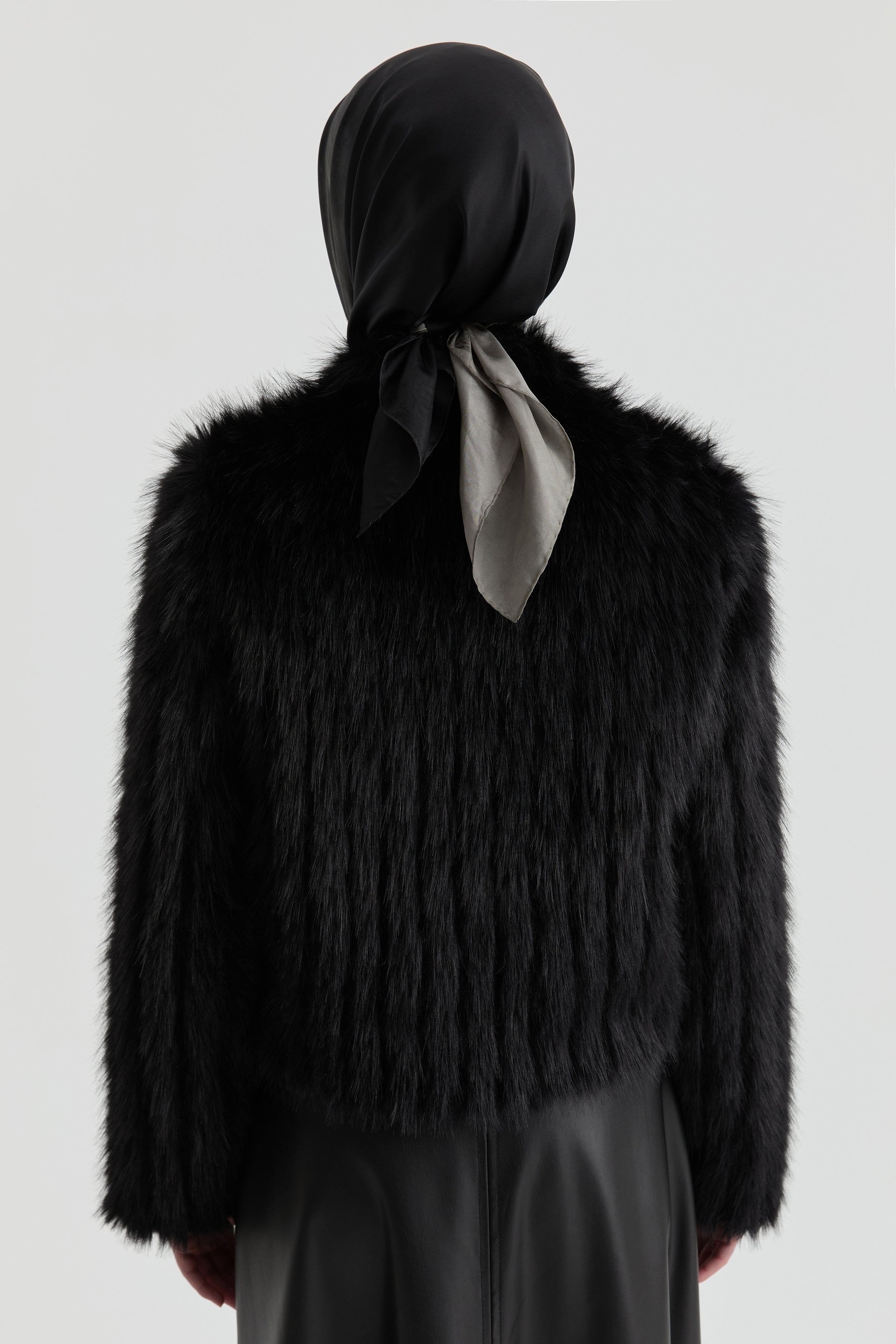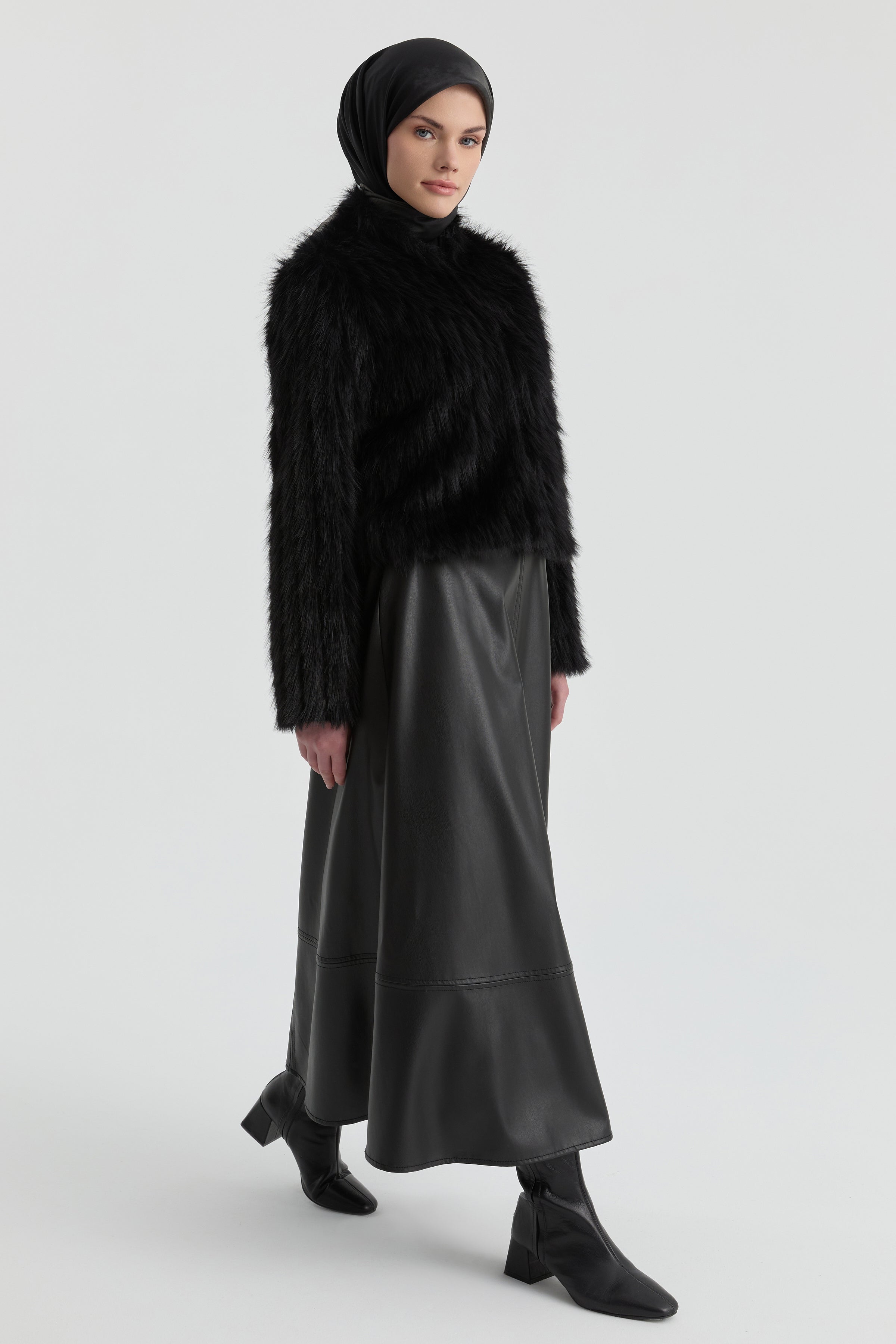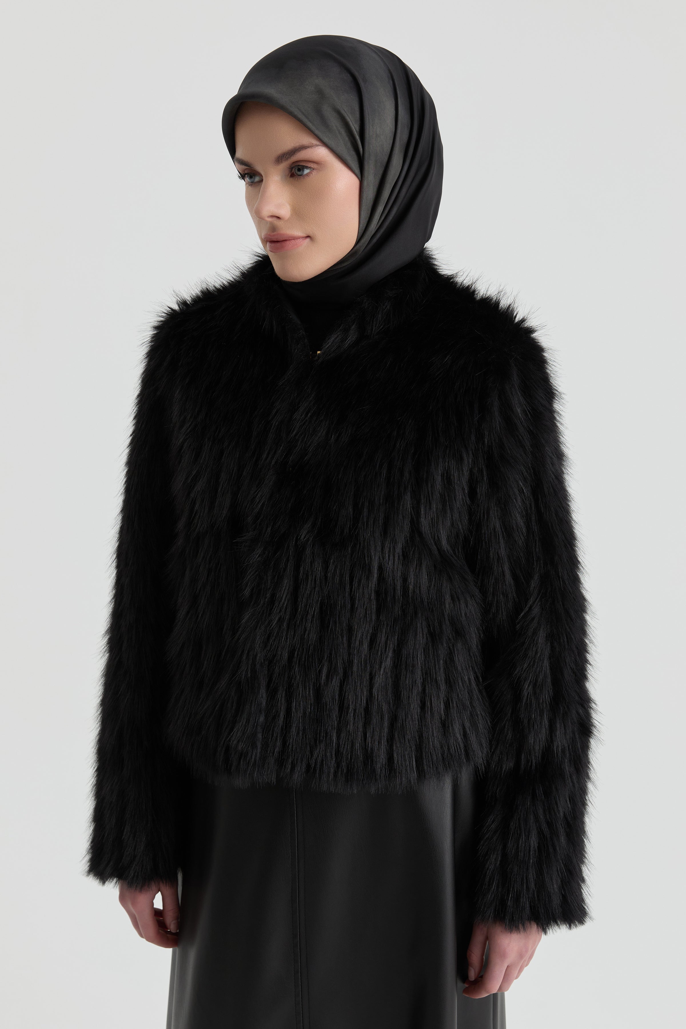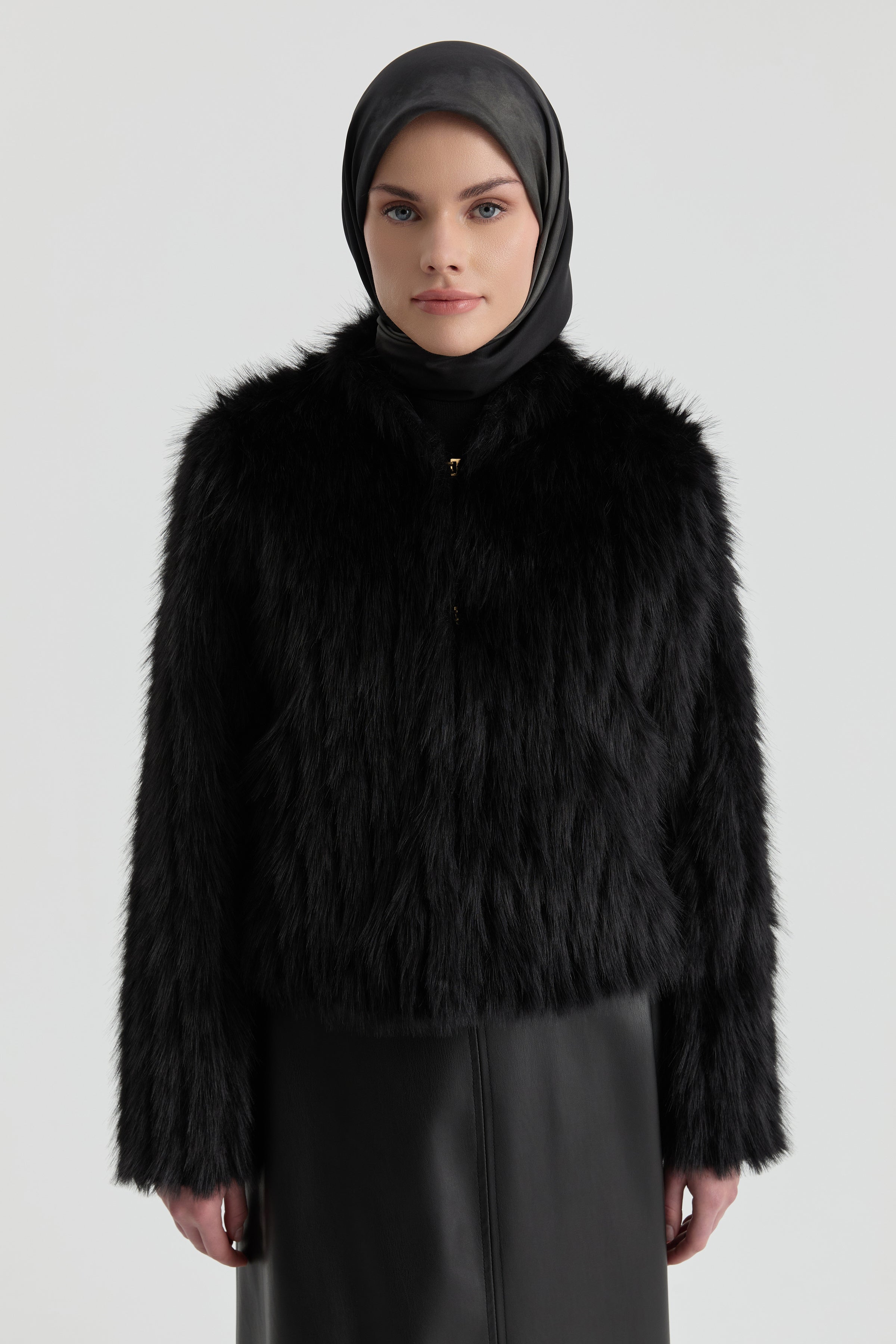 Abrigo de cuello redondo con tapeta oculta - Negro