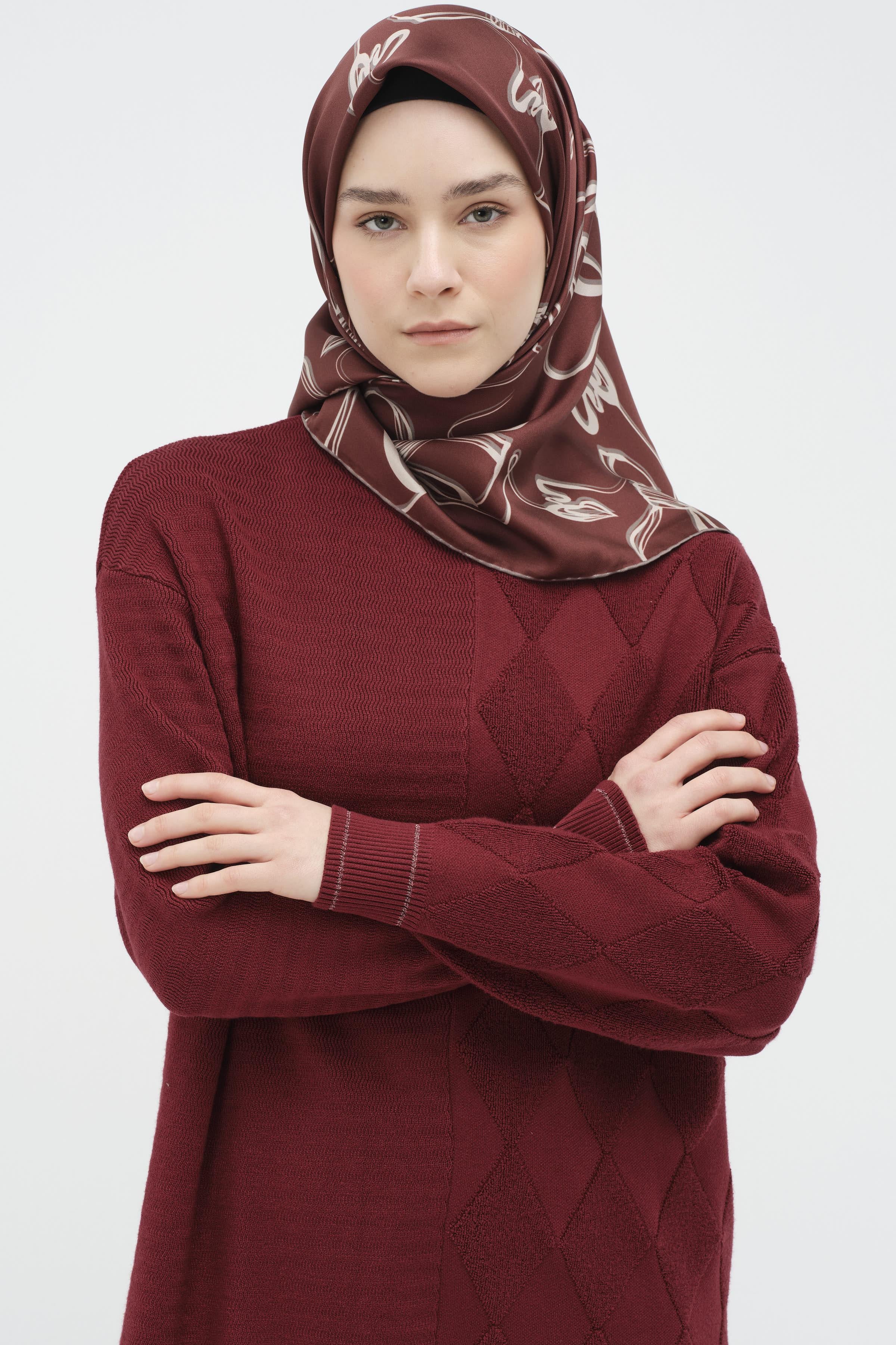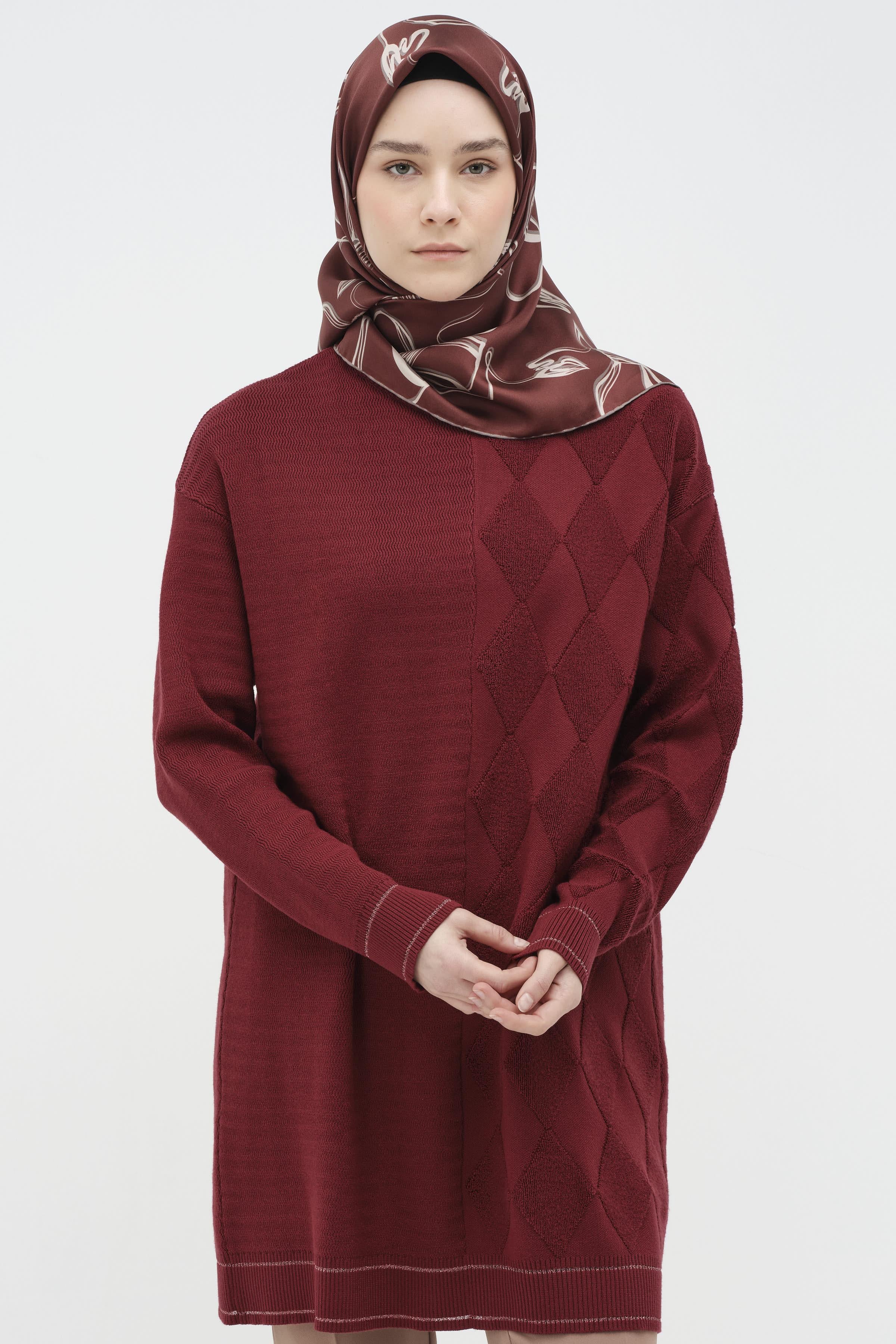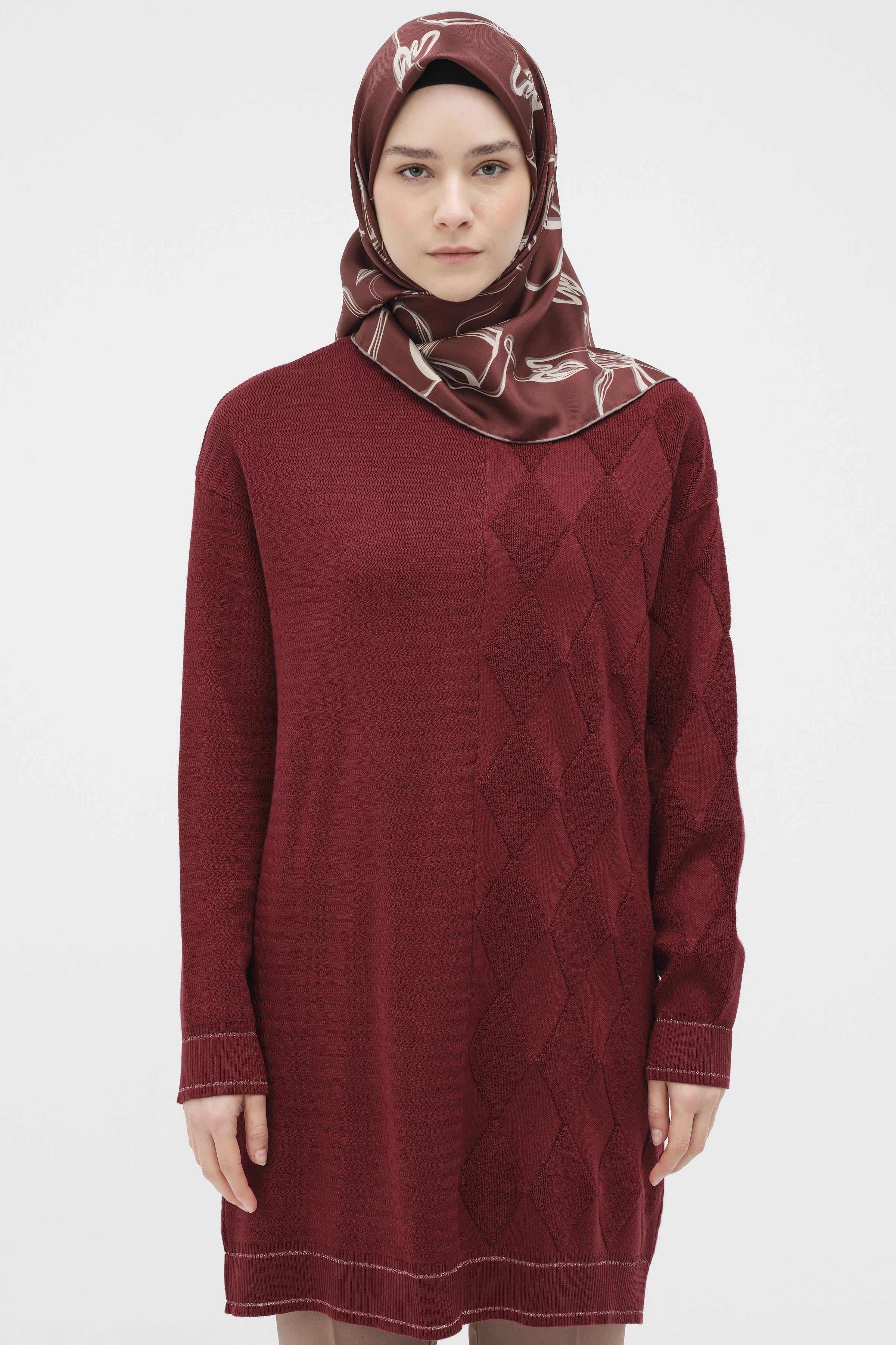 Túnica de punto con patrón de baklava - Rojo burdeos