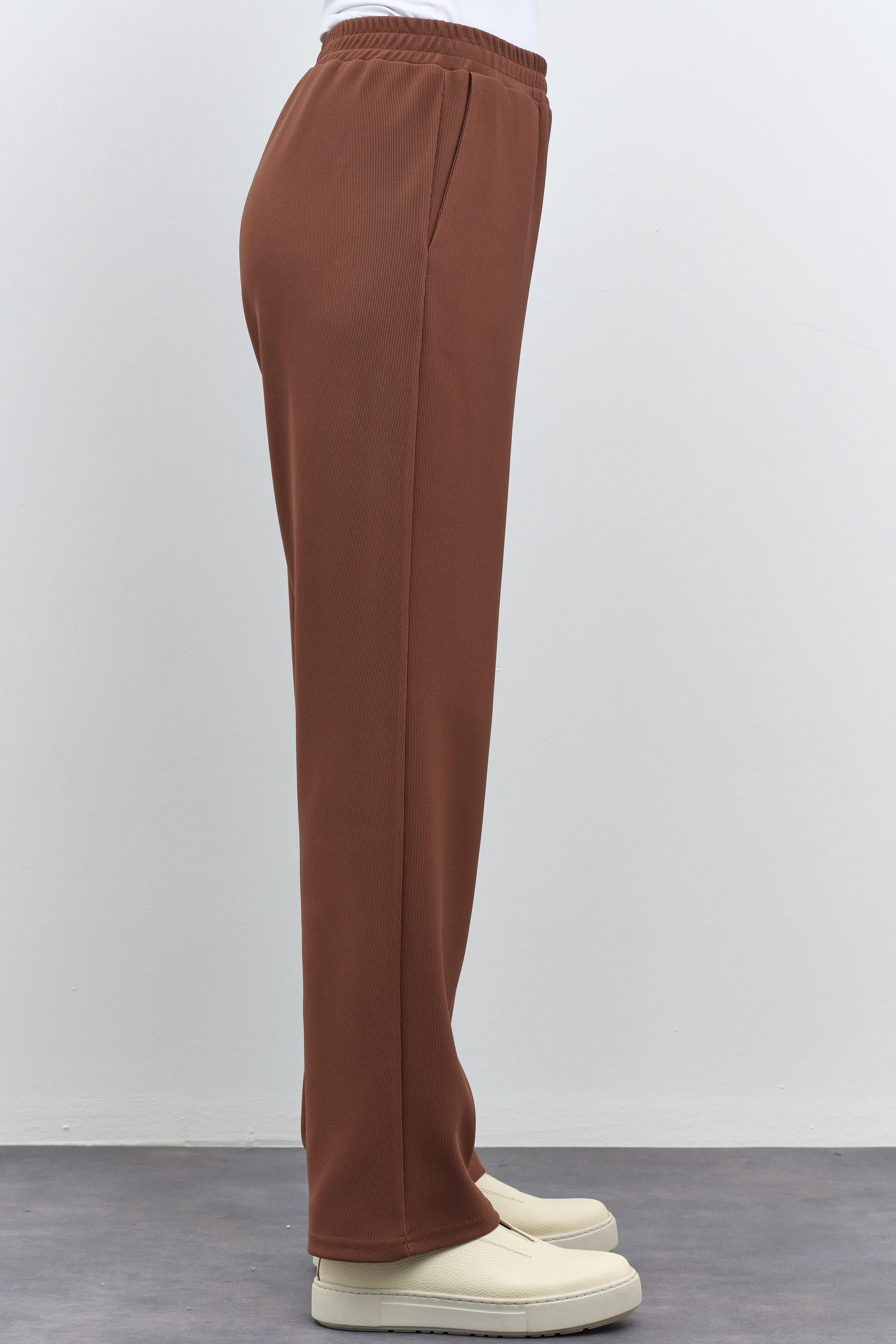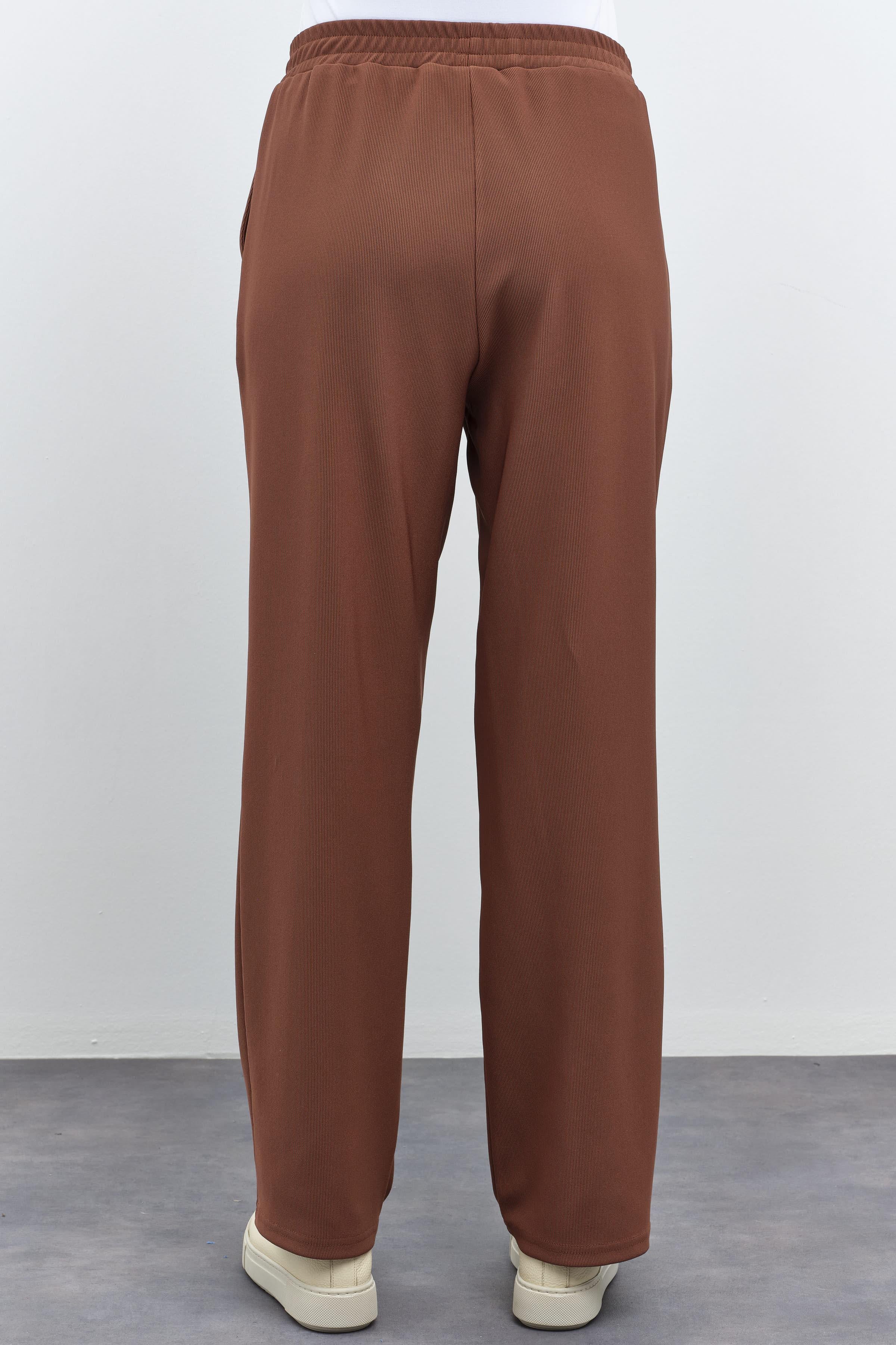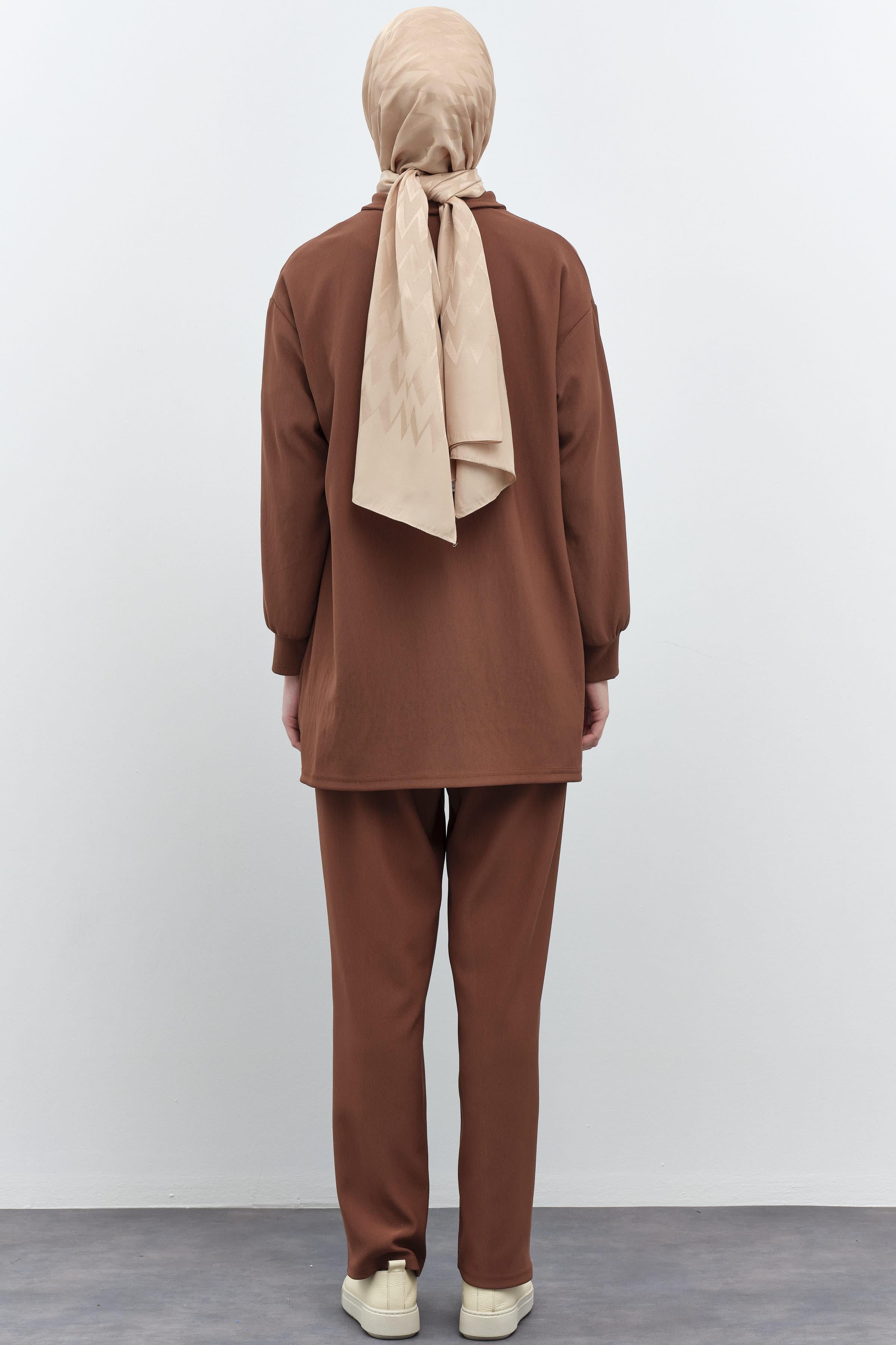 Conjunto de punto de túnica y pantalón de cuello alto - Marrón