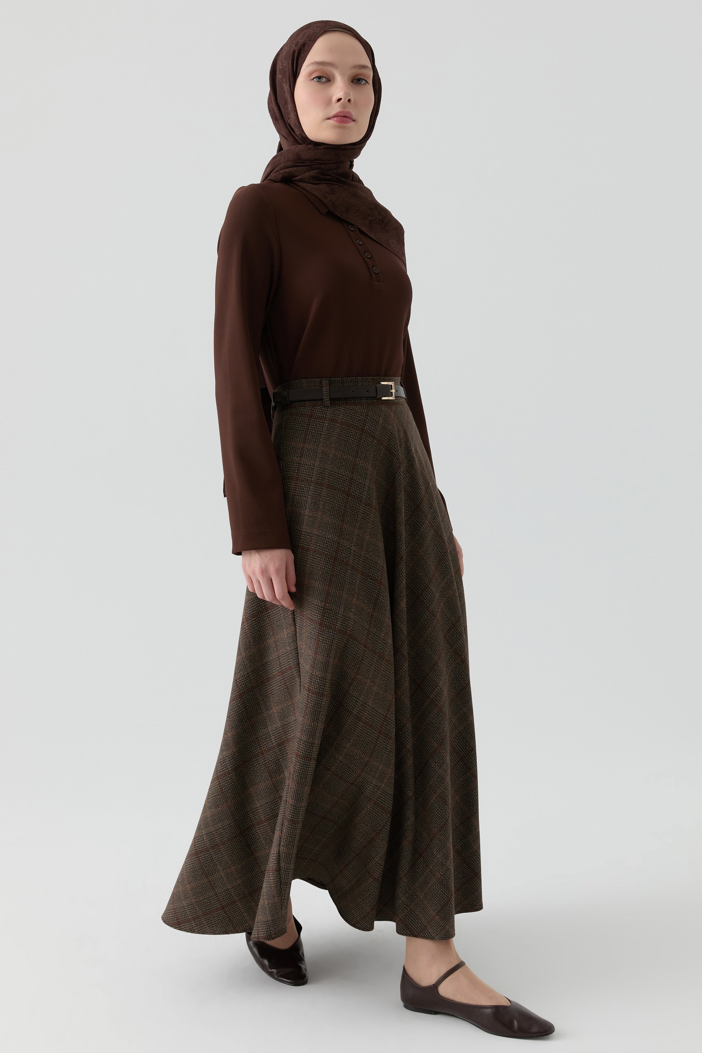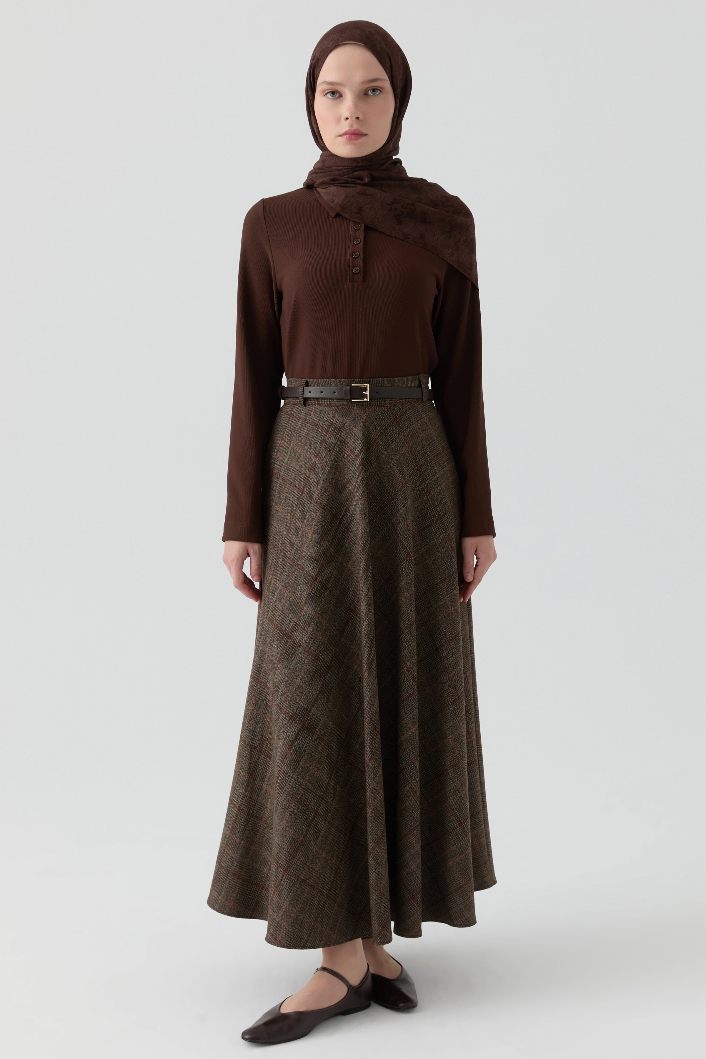 Con un estampado a cuadros atemporal, esta falda ofrece elegancia y comodidad gracias a su corte moderno y corte holgado. Su diseño minimalista la hace fácil de combinar con diferentes tops, convirtiéndola en una prenda versátil para tu armario.