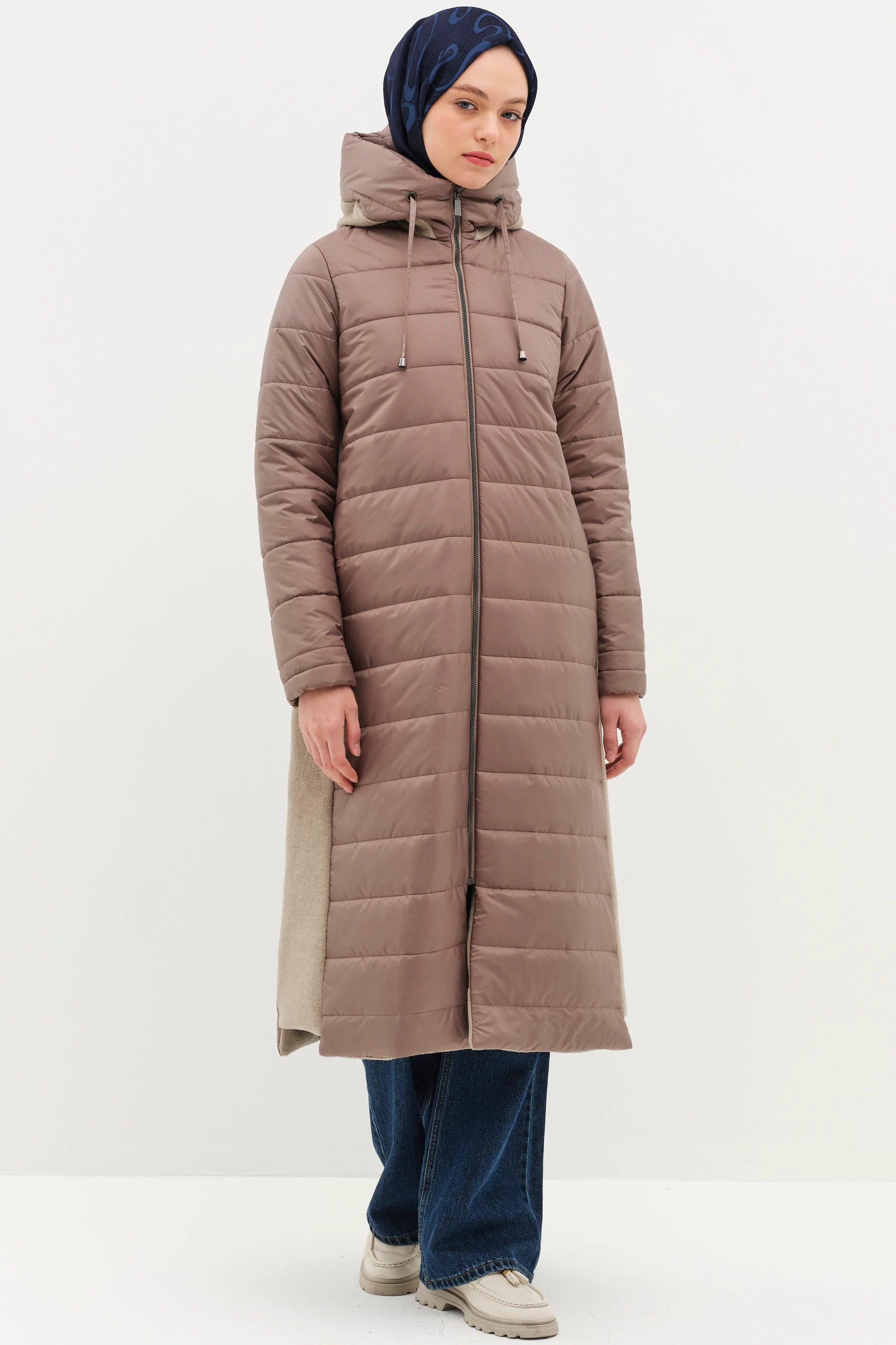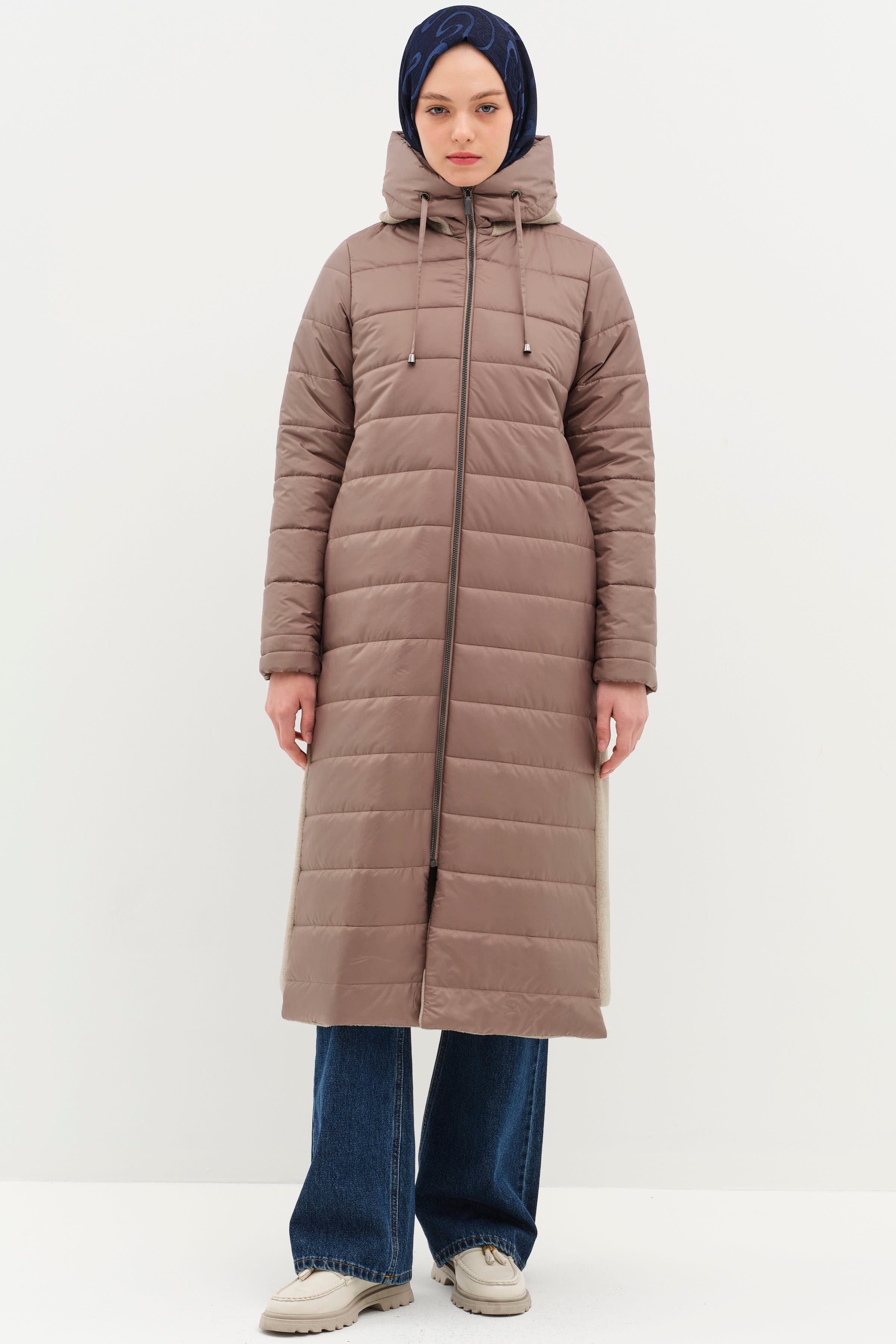Abrigo acolchado con capucha - Visón