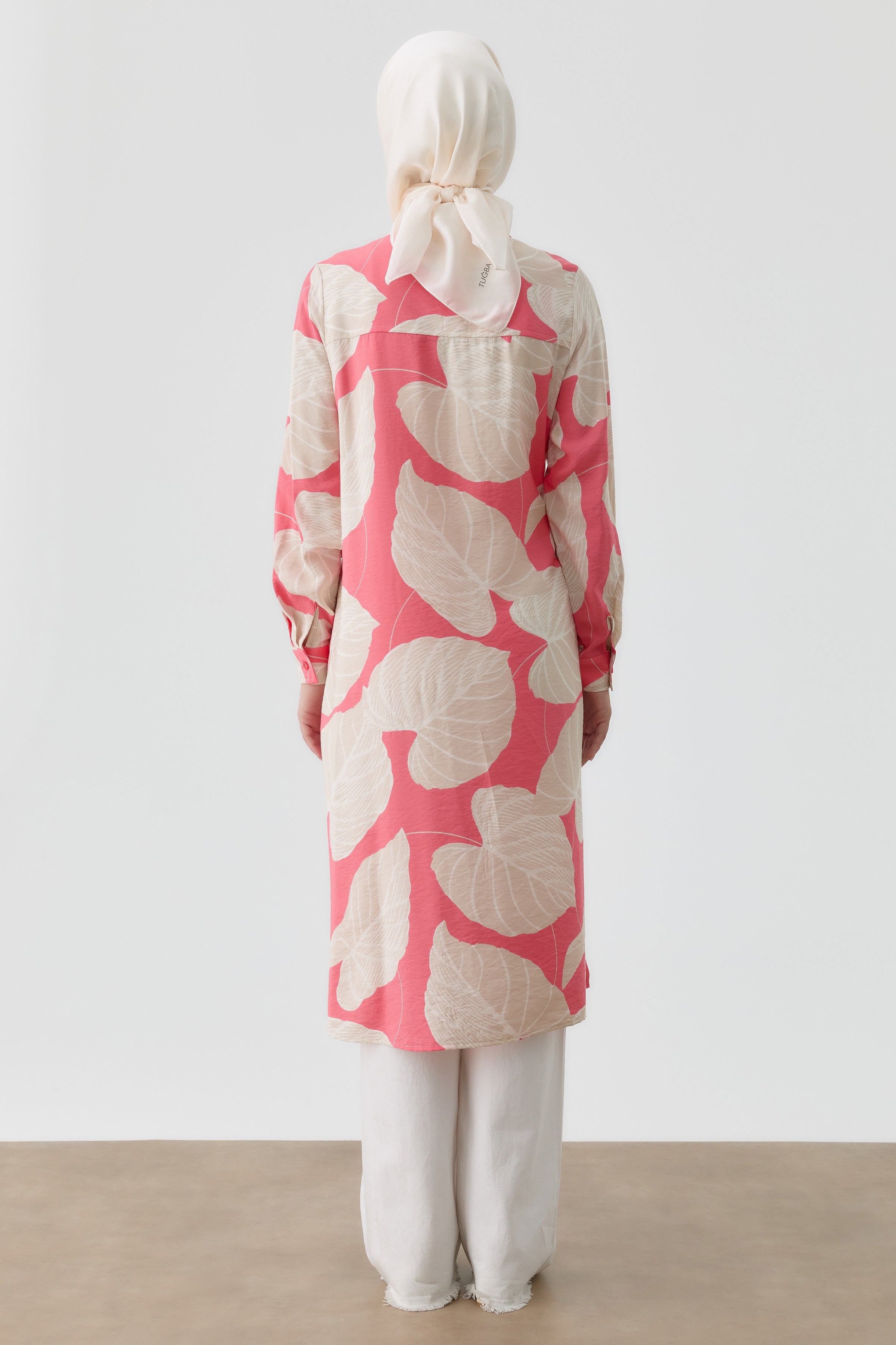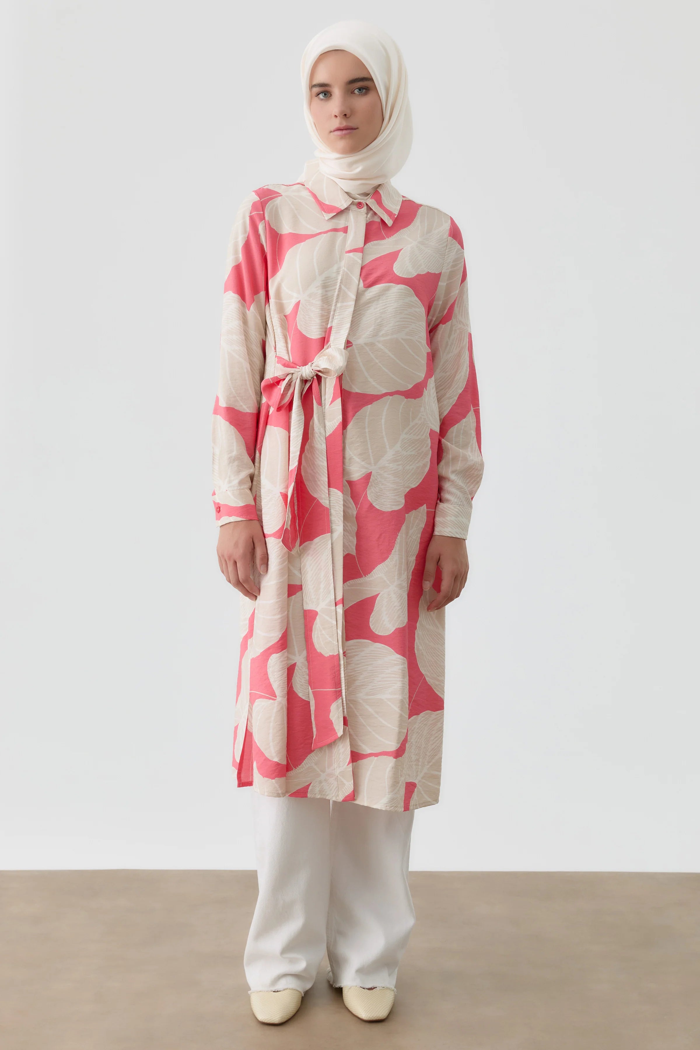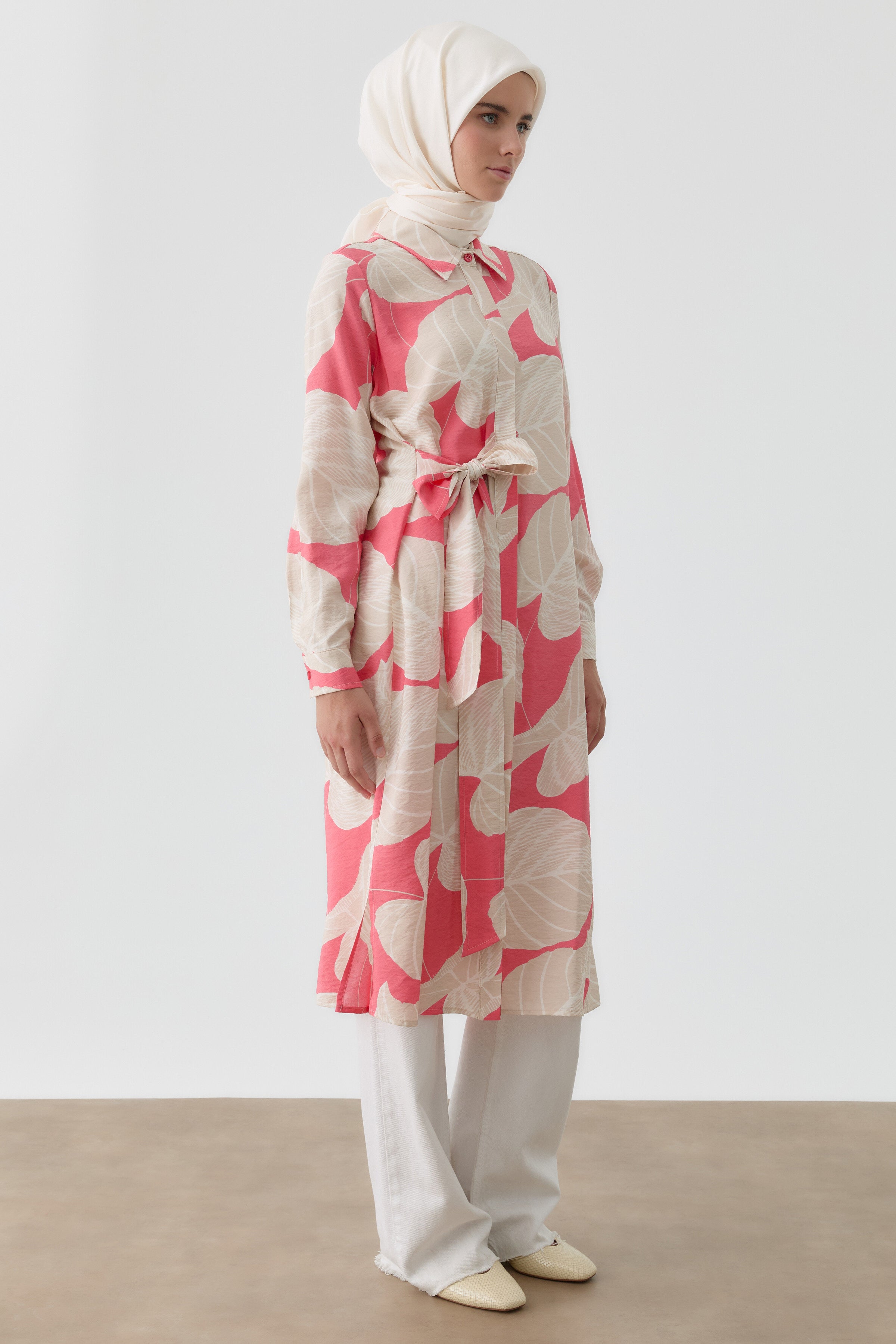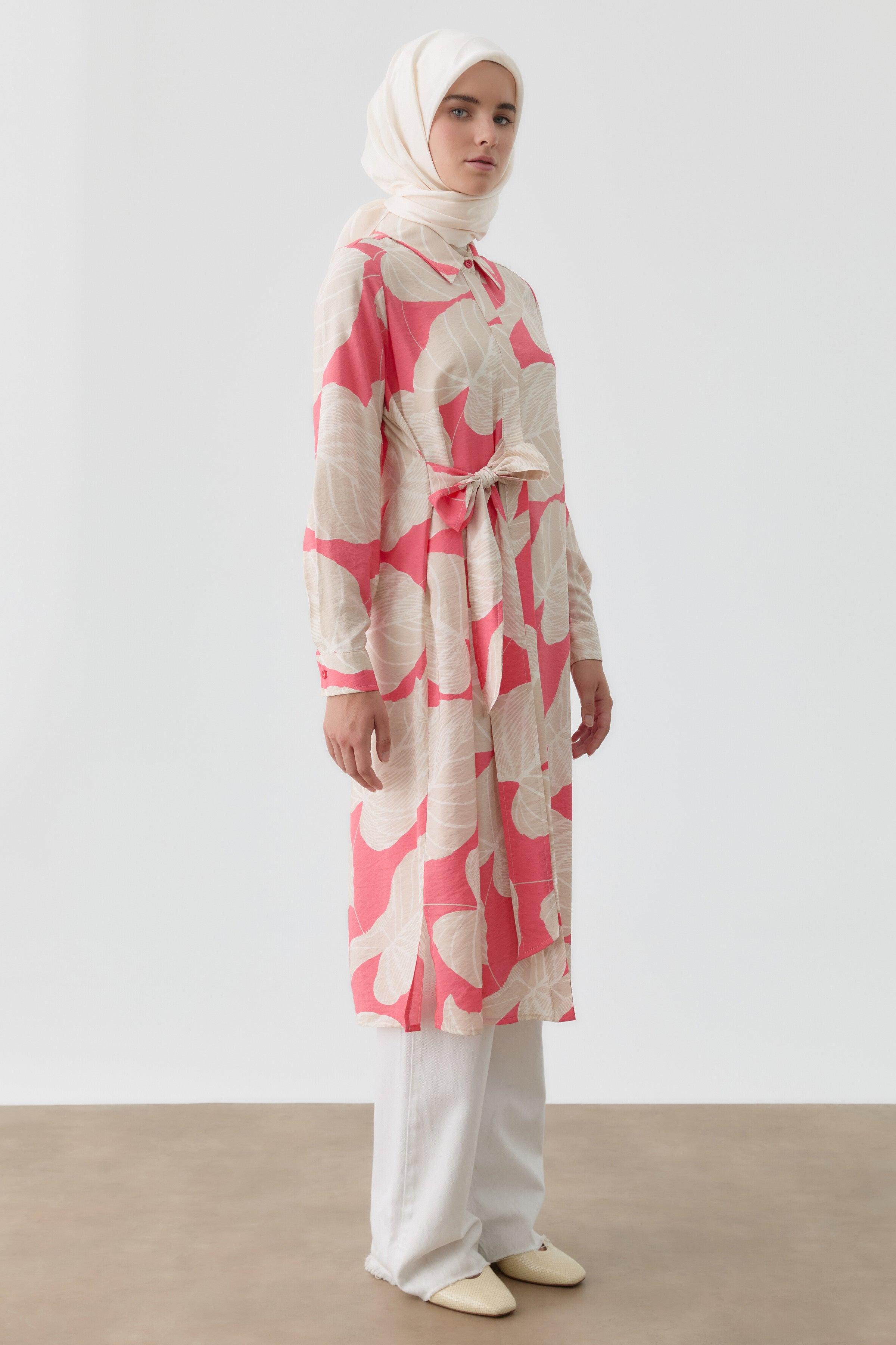 Esta túnica, con su cinturón, realza elegantemente tu cintura, y su estampado aporta dinamismo y vitalidad a tu estilo. Su tejido ligero y fluido garantiza comodidad durante todo el día, mientras que su silueta estilizada eleva tus conjuntos diarios.