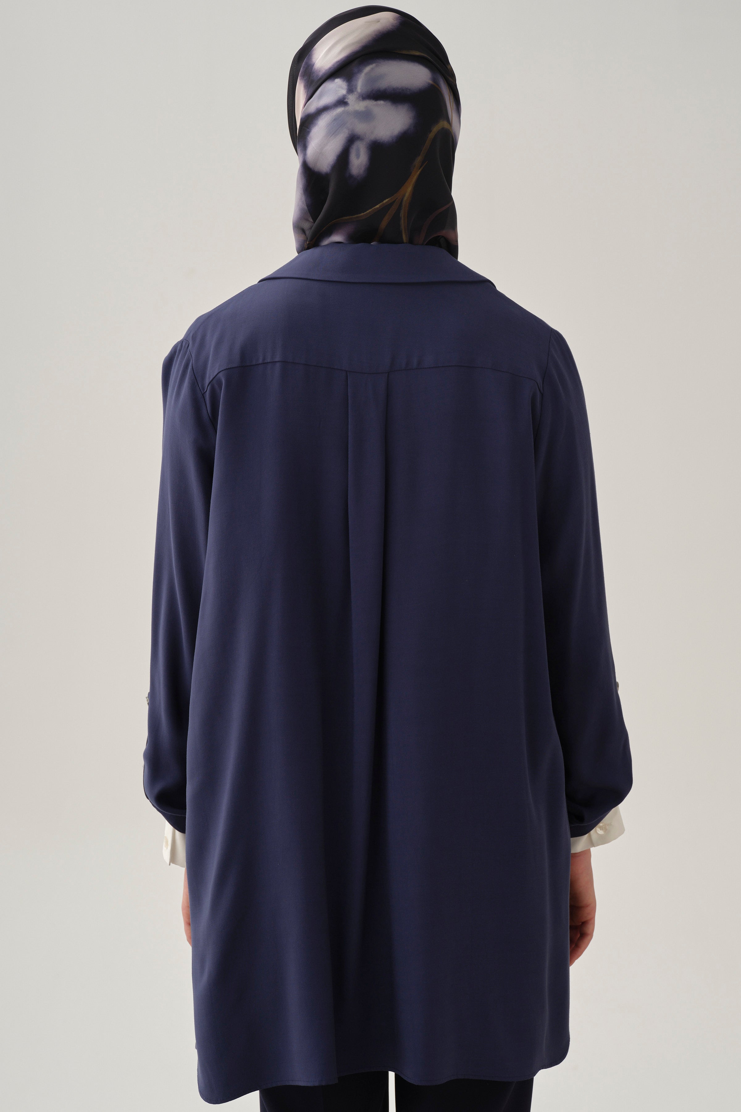Chaqueta con abertura y detalle de banda en la manga - Azul marino