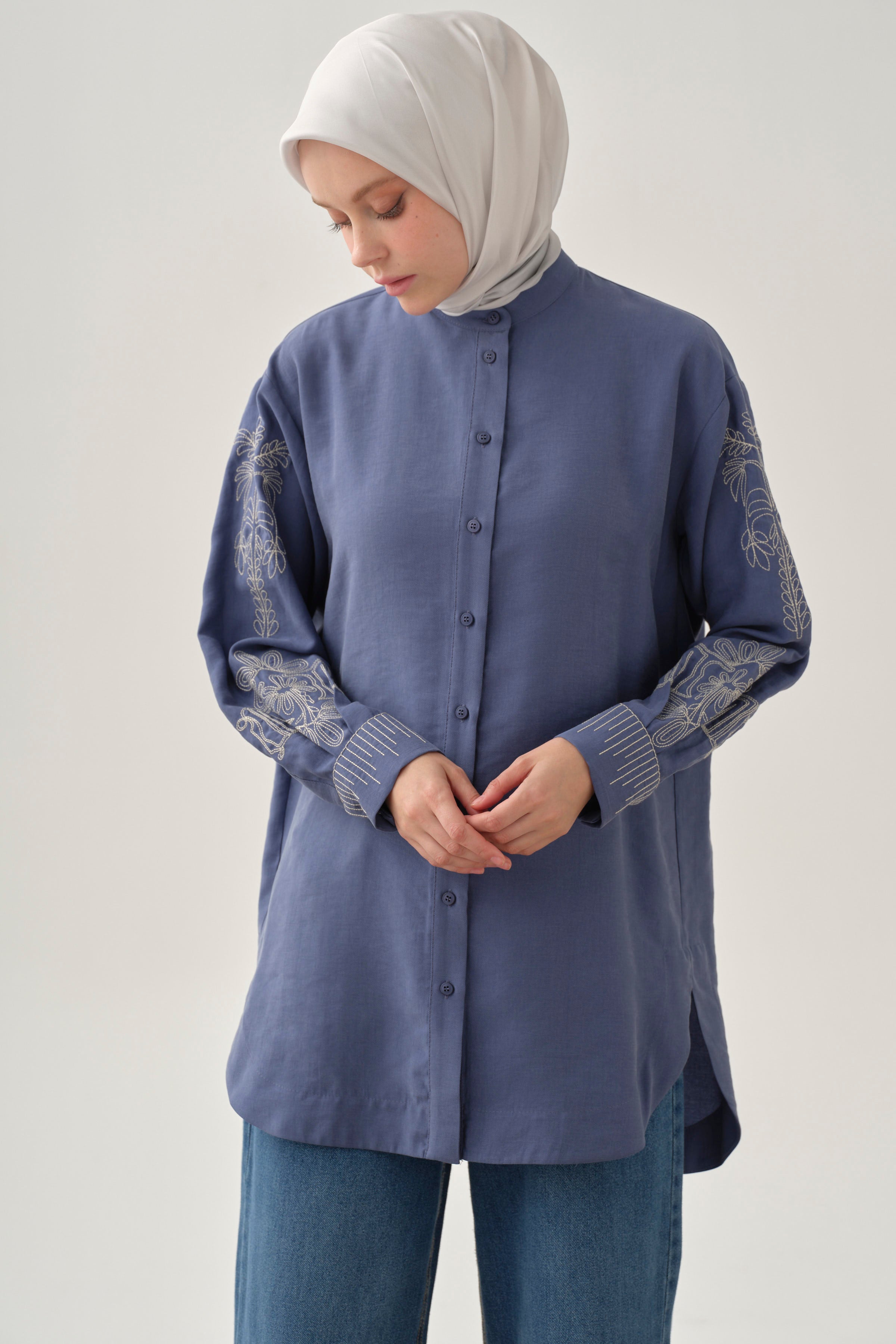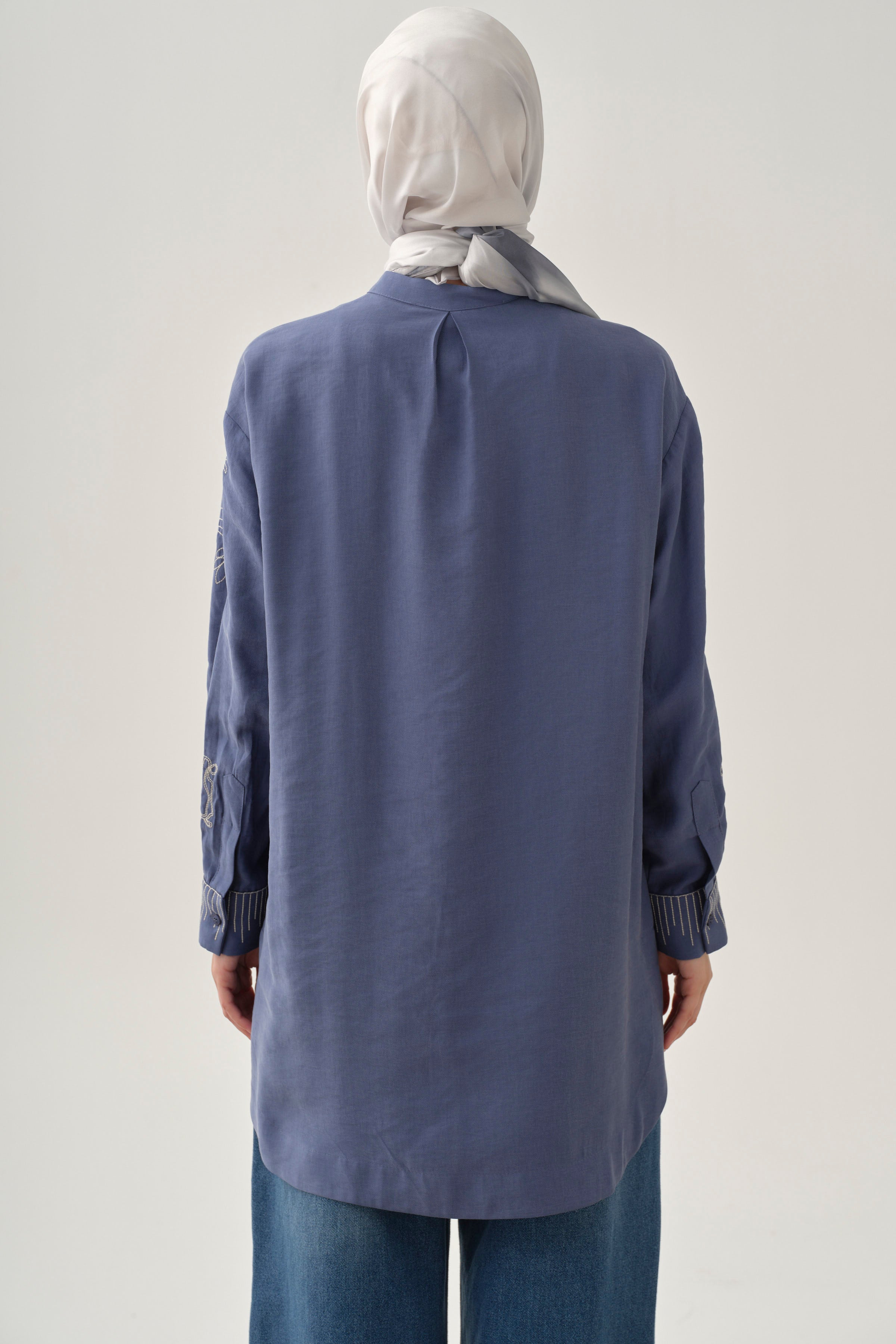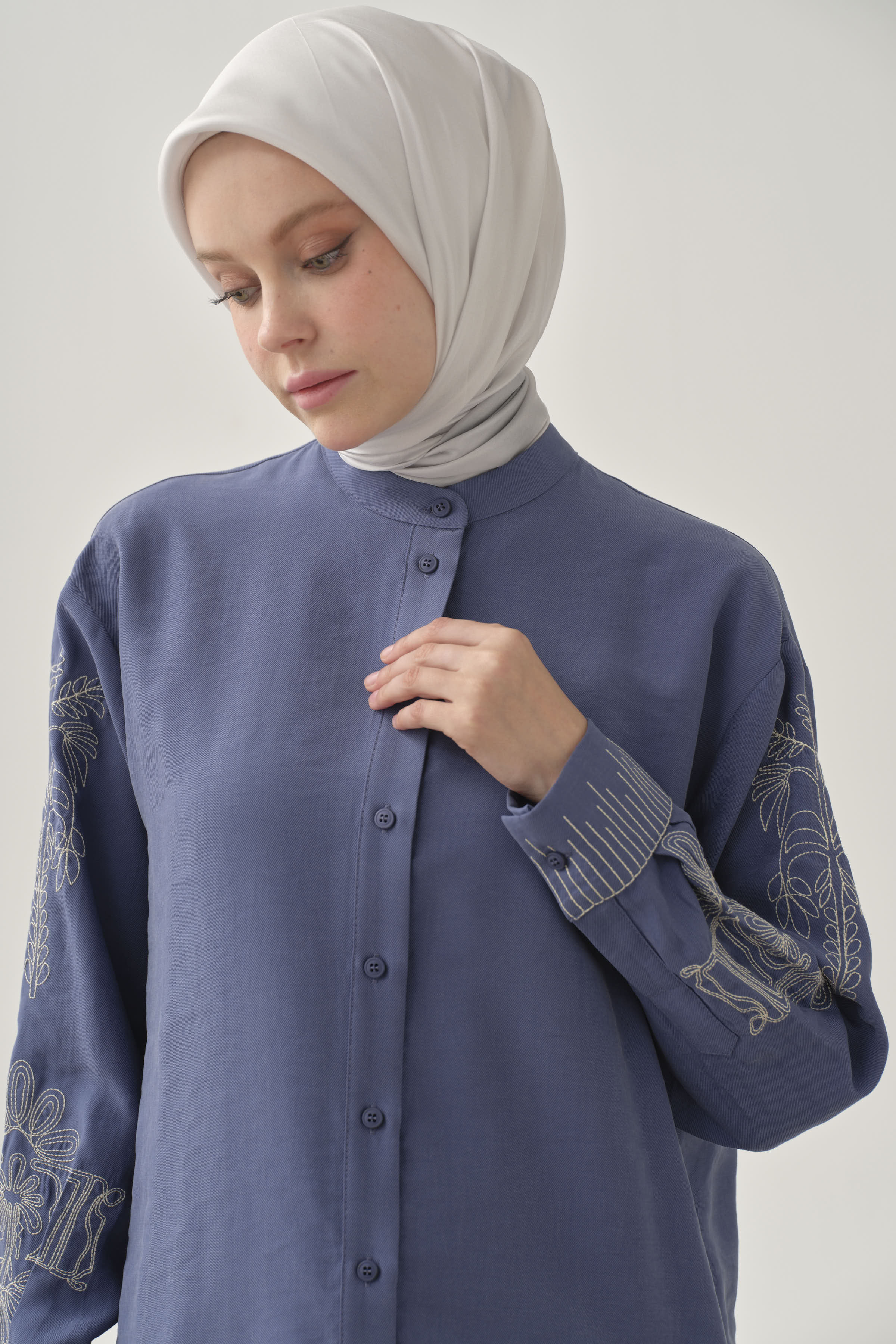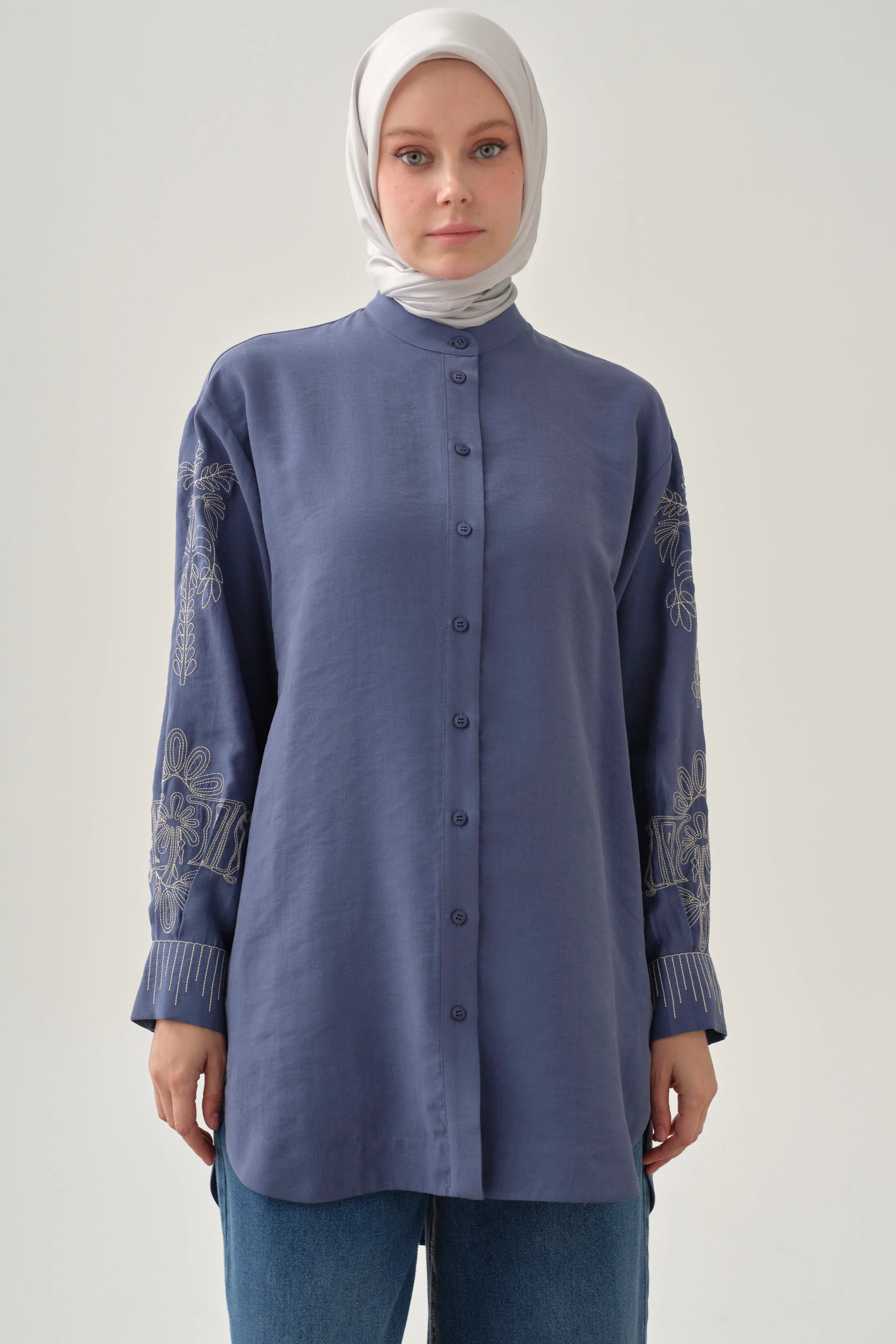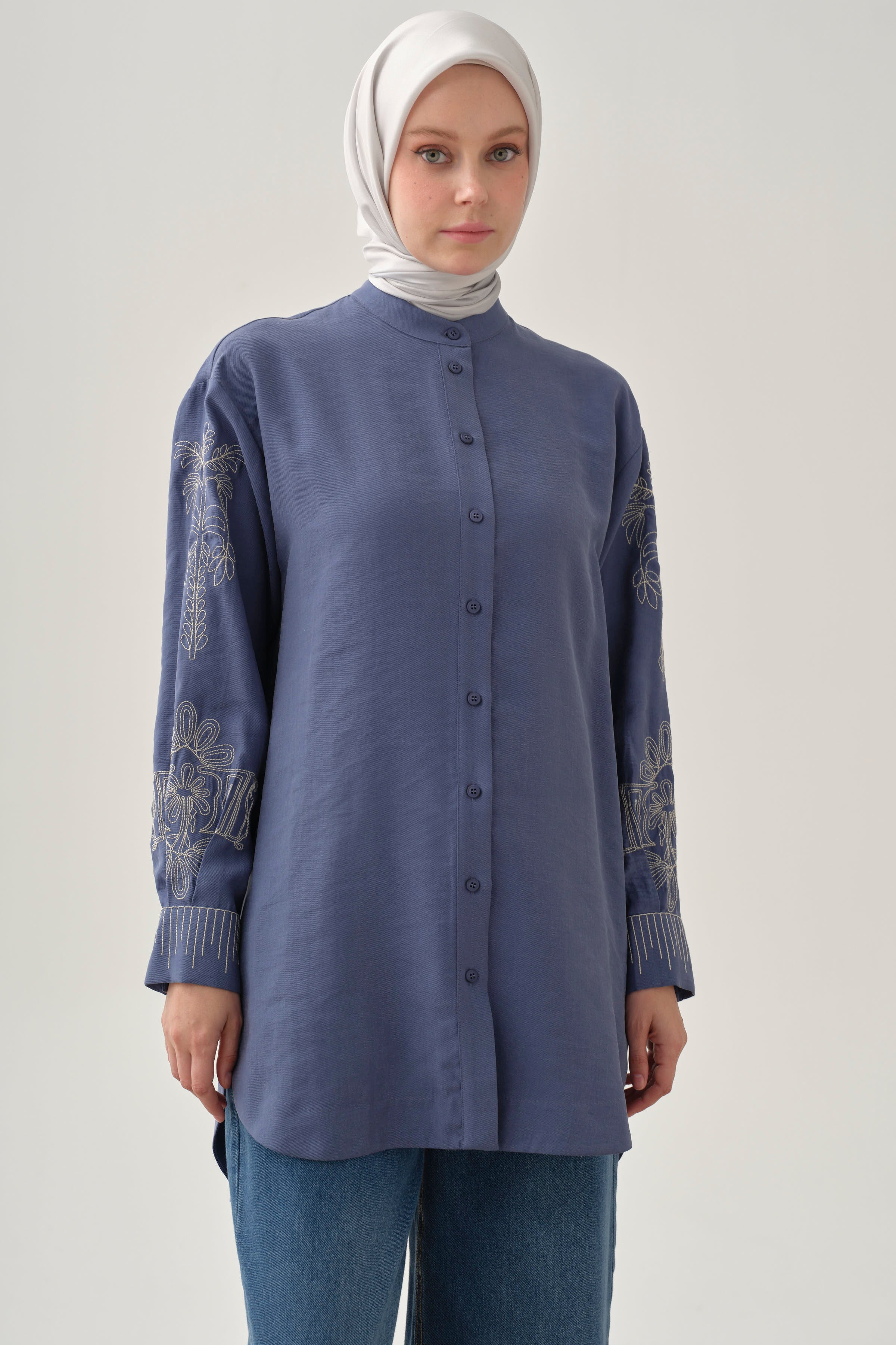 Una prenda especial donde la elegancia sencilla se une a los detalles finos: Túnica con mangas bordadas.