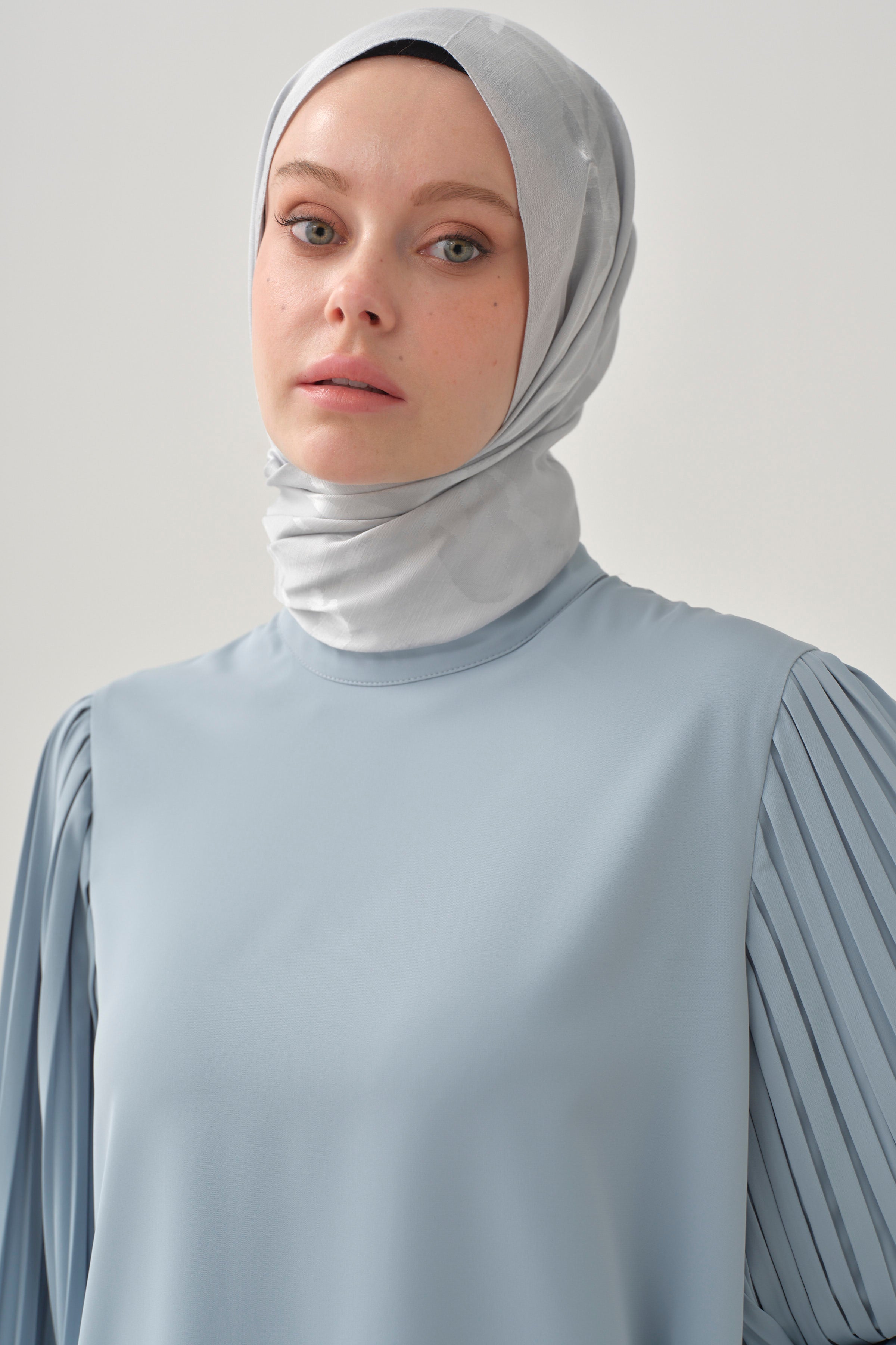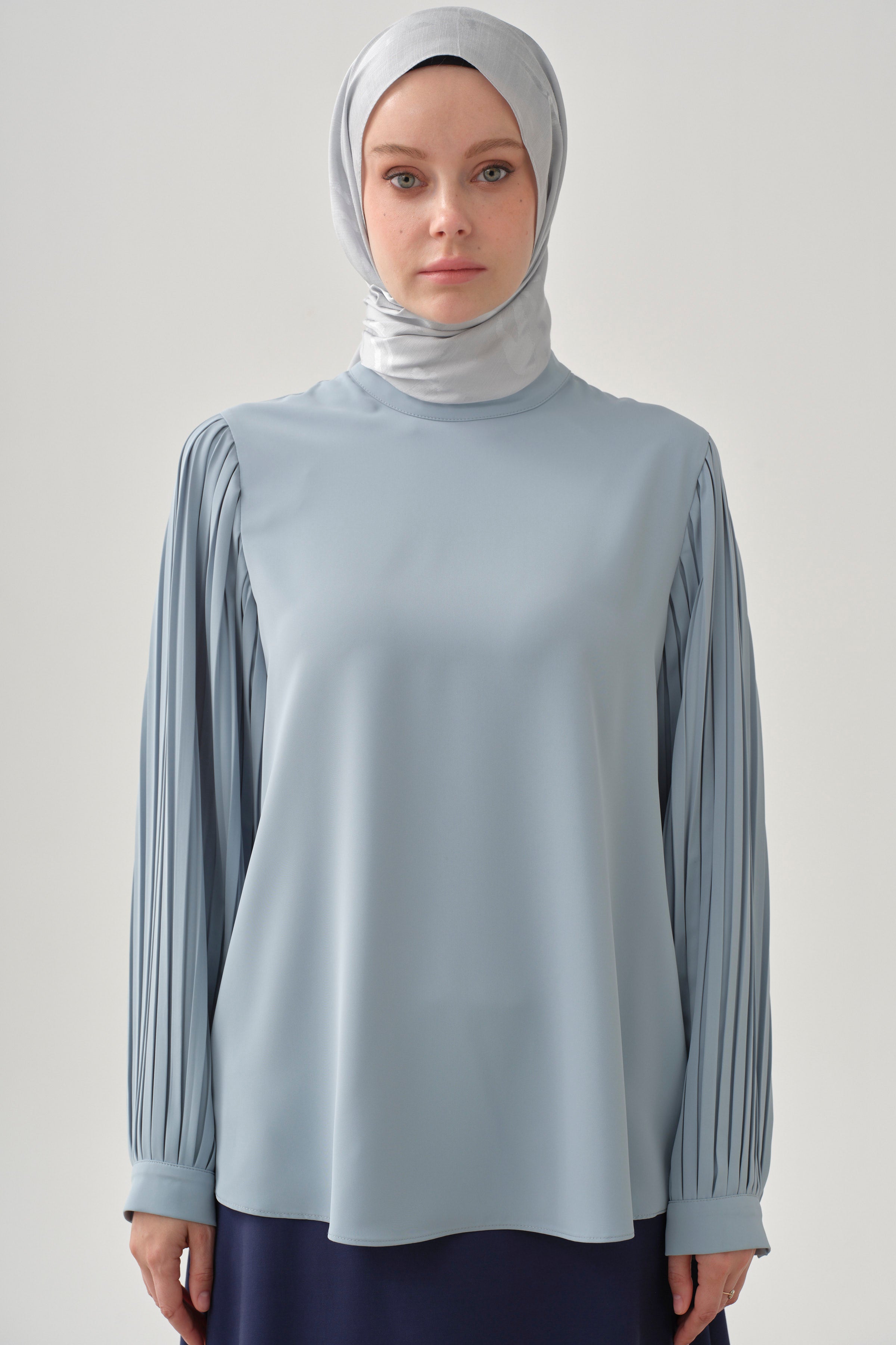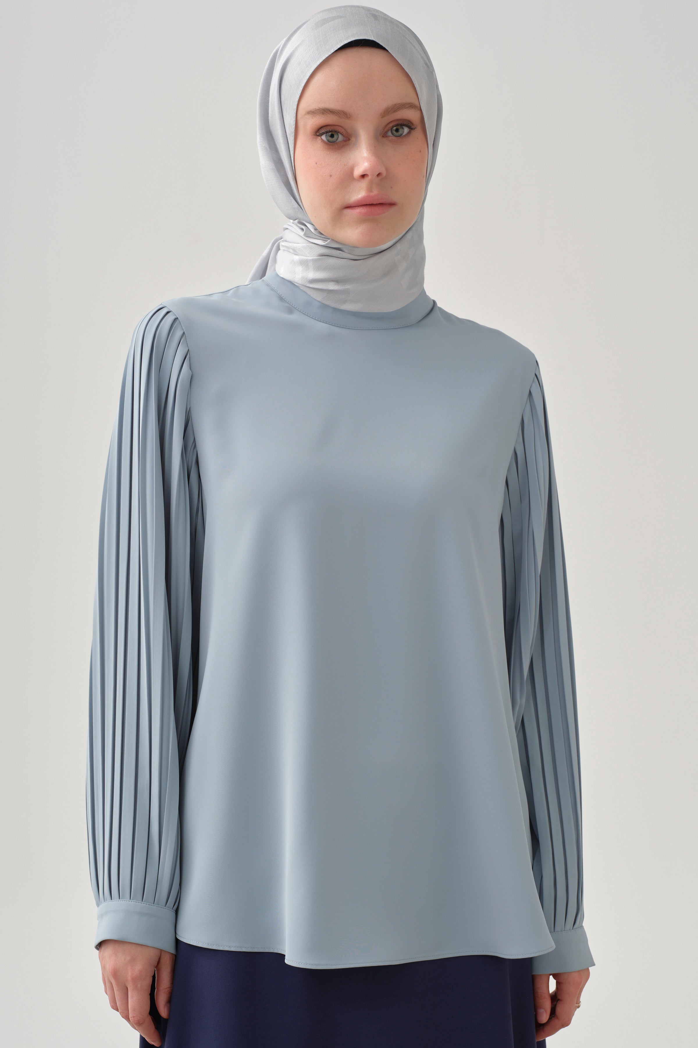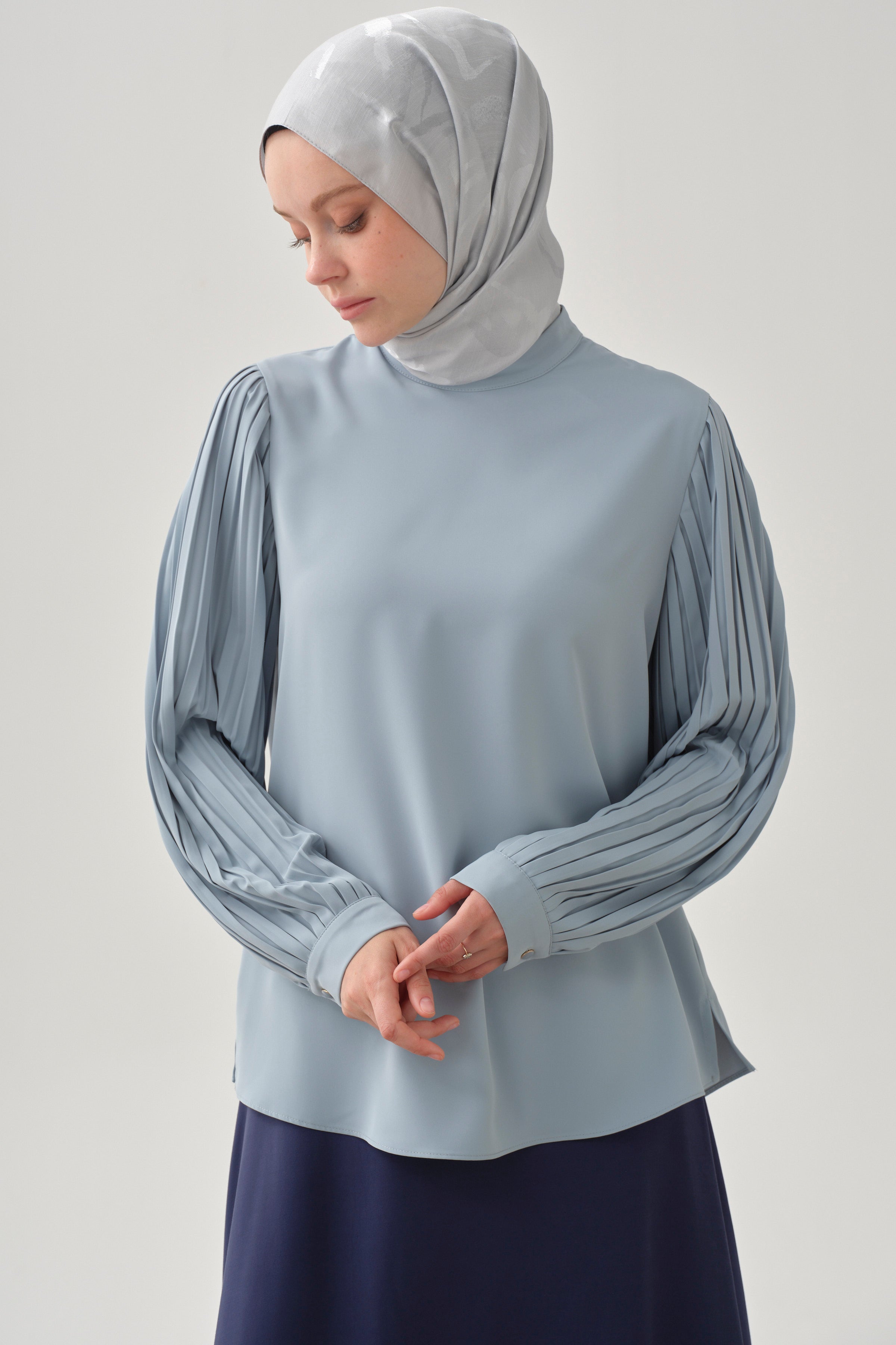 Blusa con mangas plisadas - Azul claro