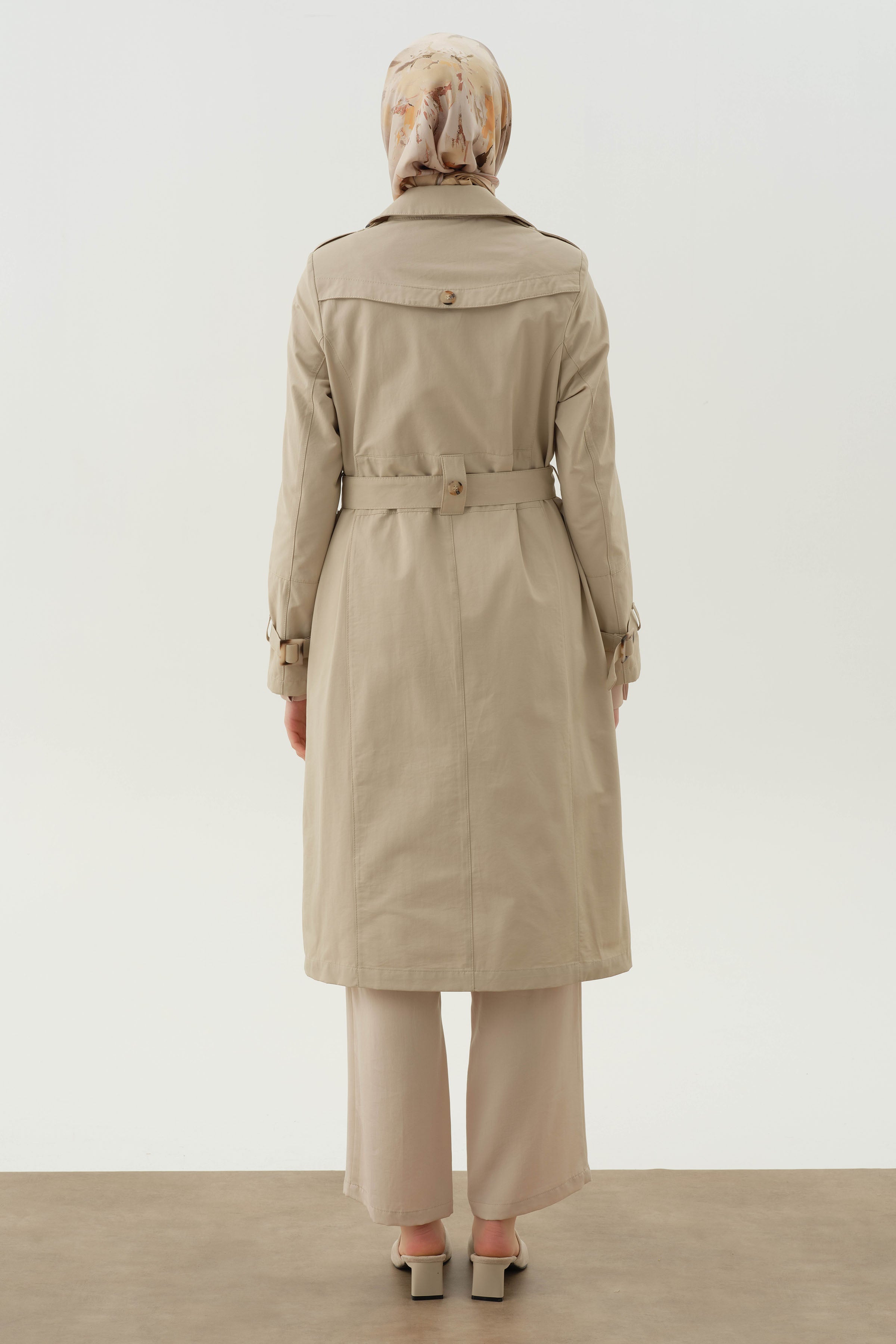 Gabardina clásica con cinturón y doble botonadura - Beige