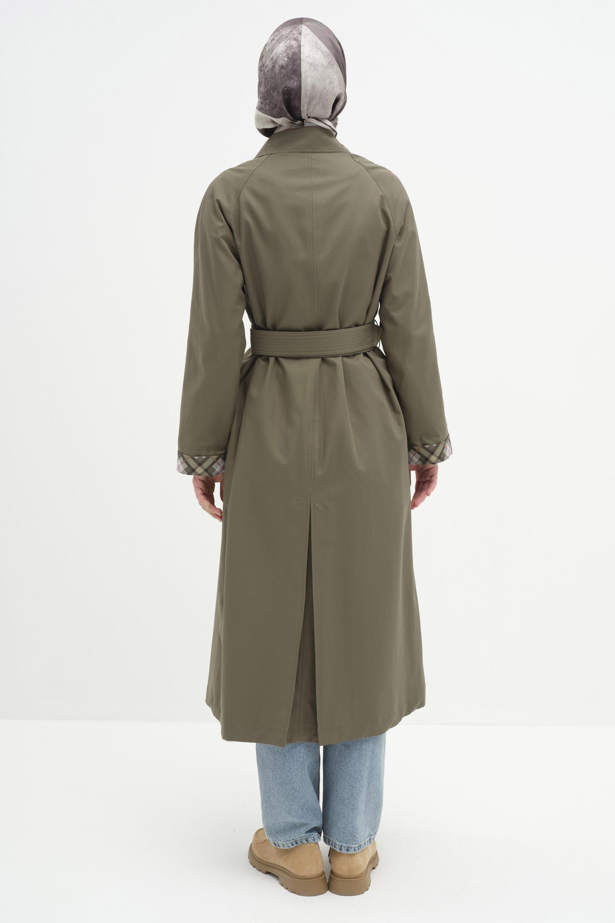 Gabardina con cinturón y mangas raglán dobles - Caqui
