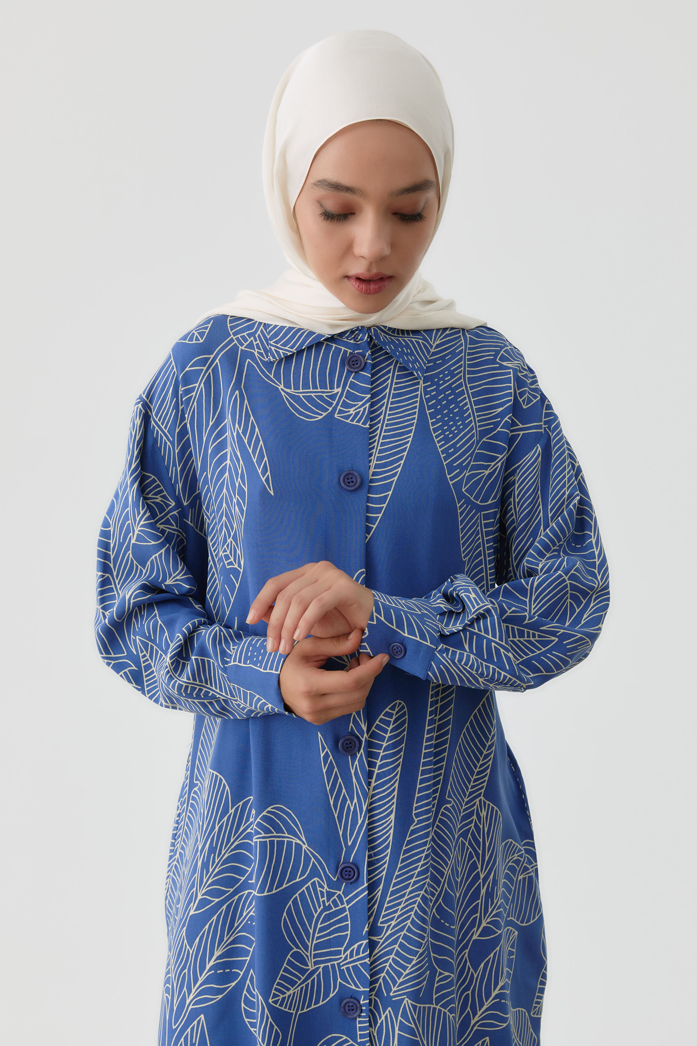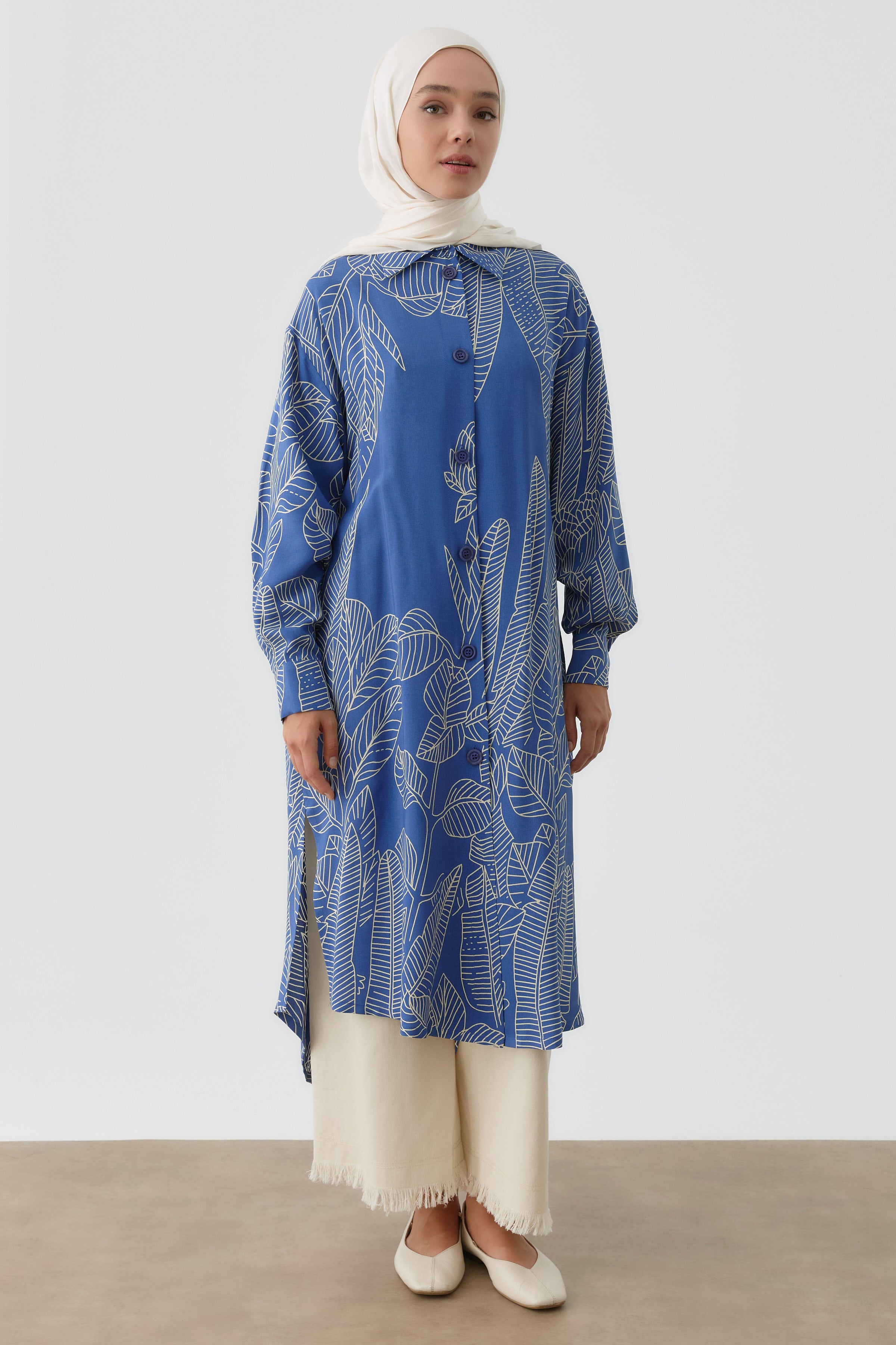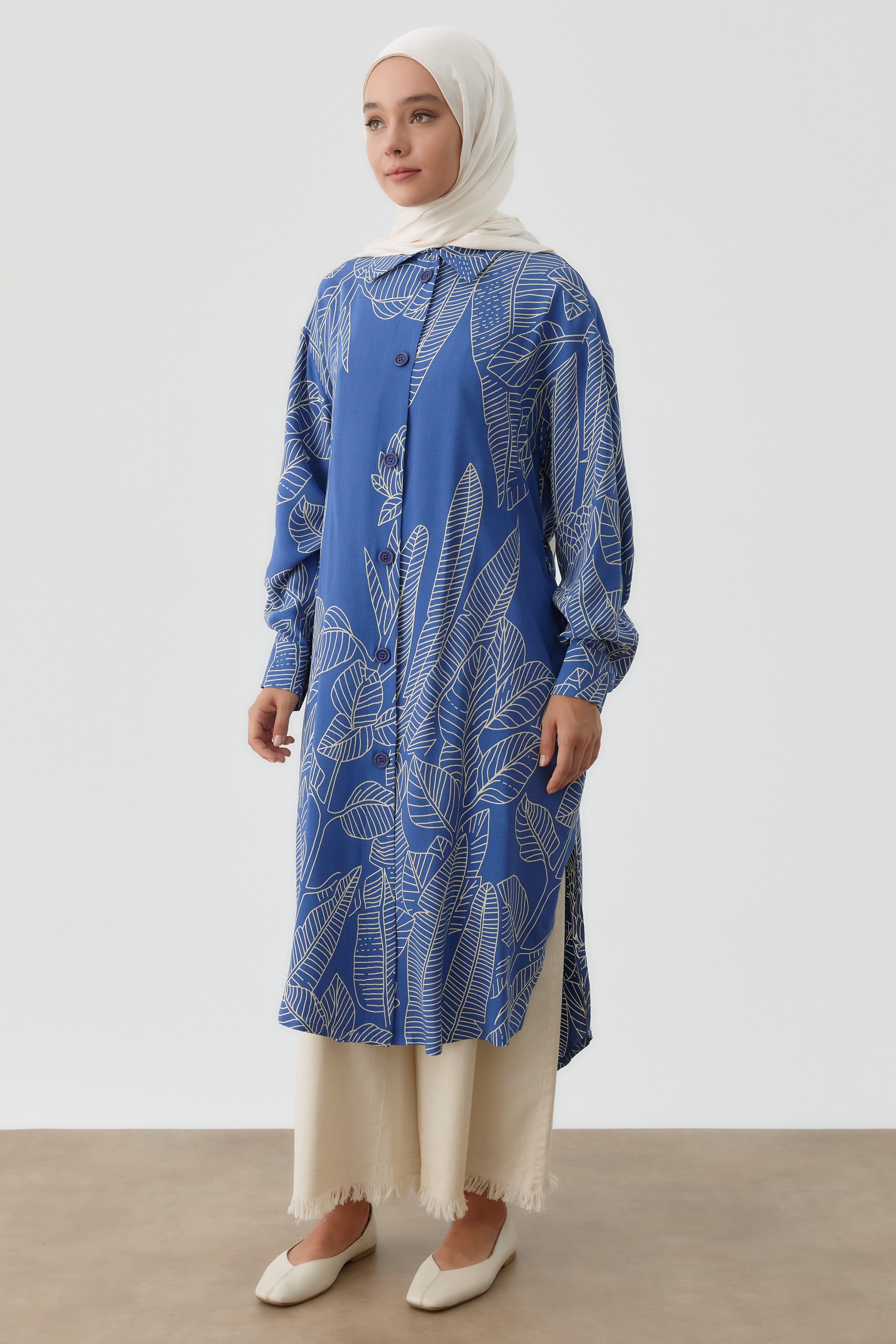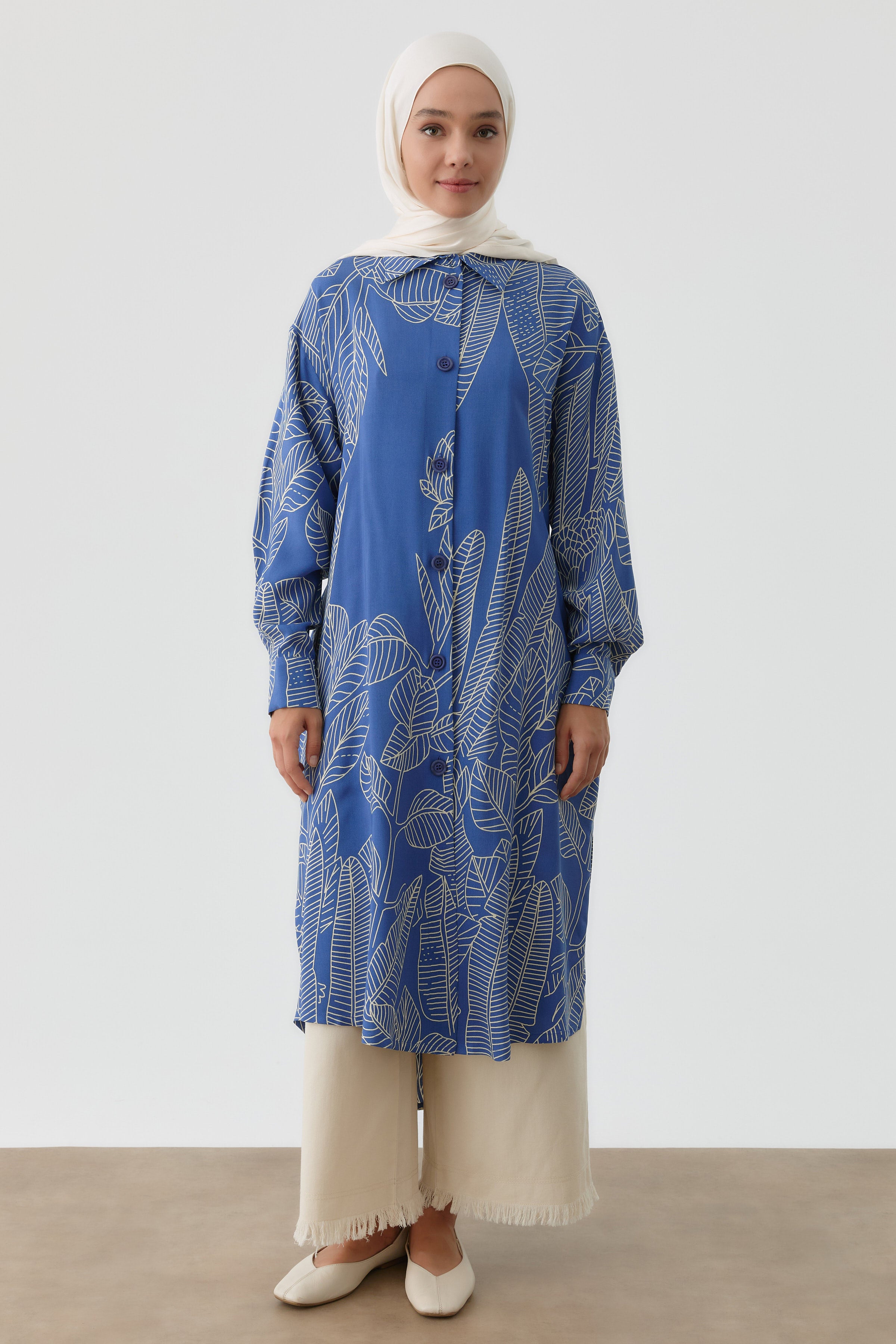 Con un estampado de hojas inspirado en la naturaleza, esta túnica ofrece un look femenino y elegante. Su tejido ligero y transpirable garantiza comodidad durante todo el día, mientras que su silueta fluida aporta movimiento y dinamismo a tu estilo.