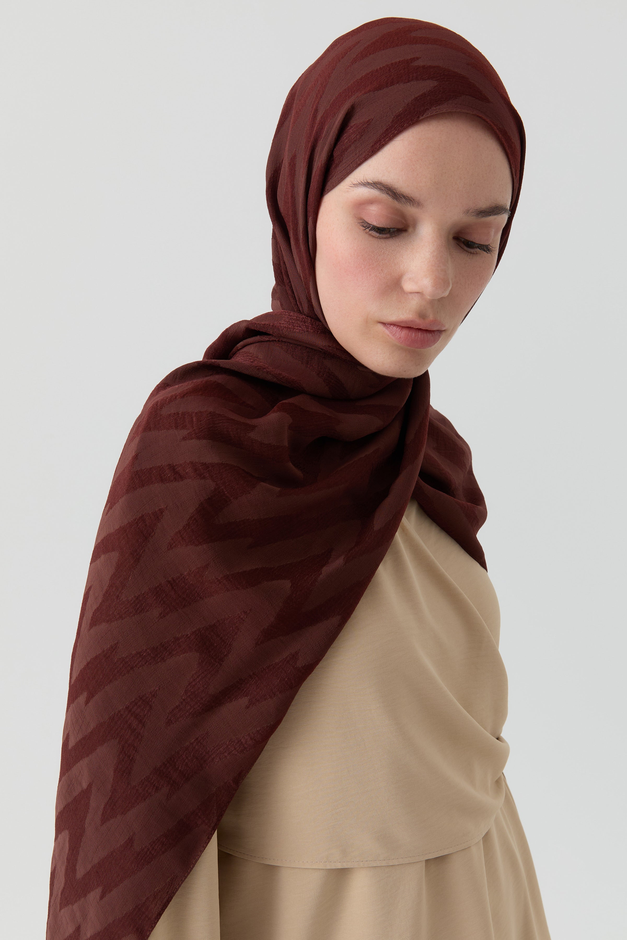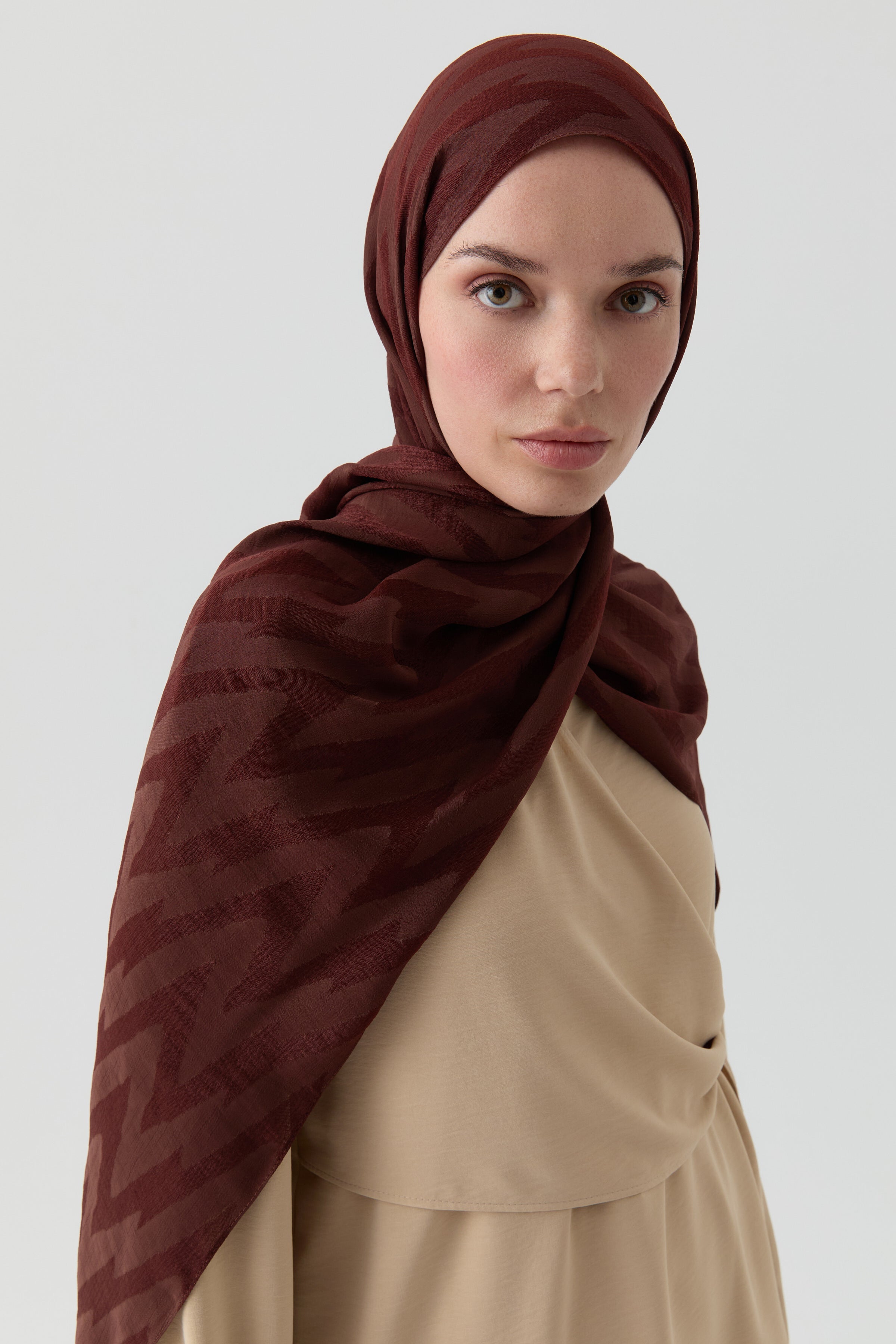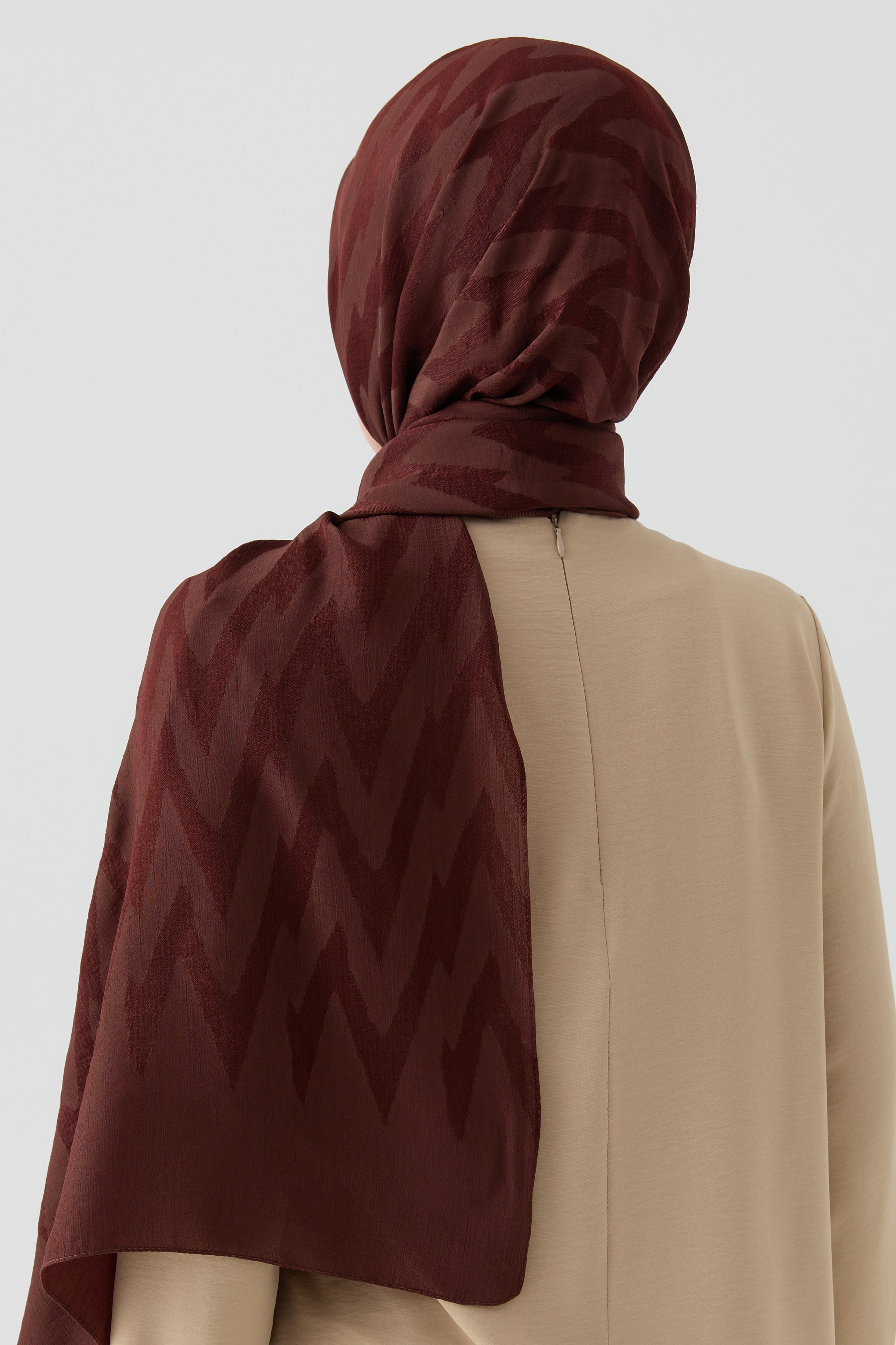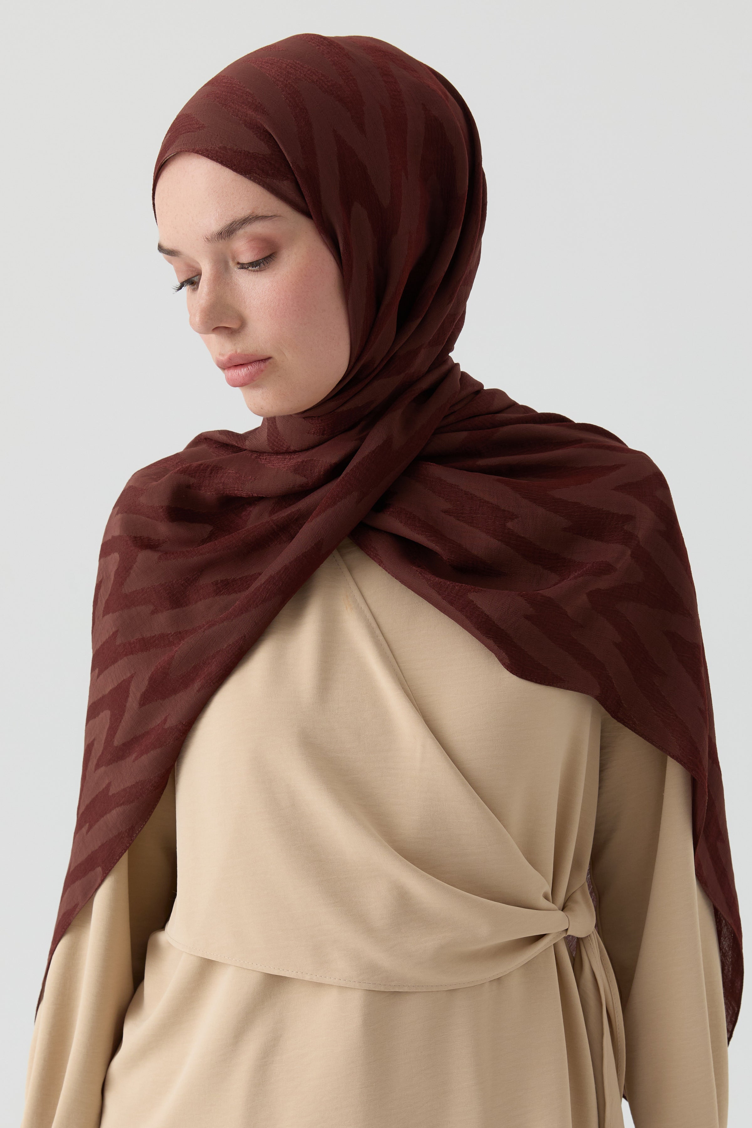 Chal jacquard con estampado en zigzag - Marrón