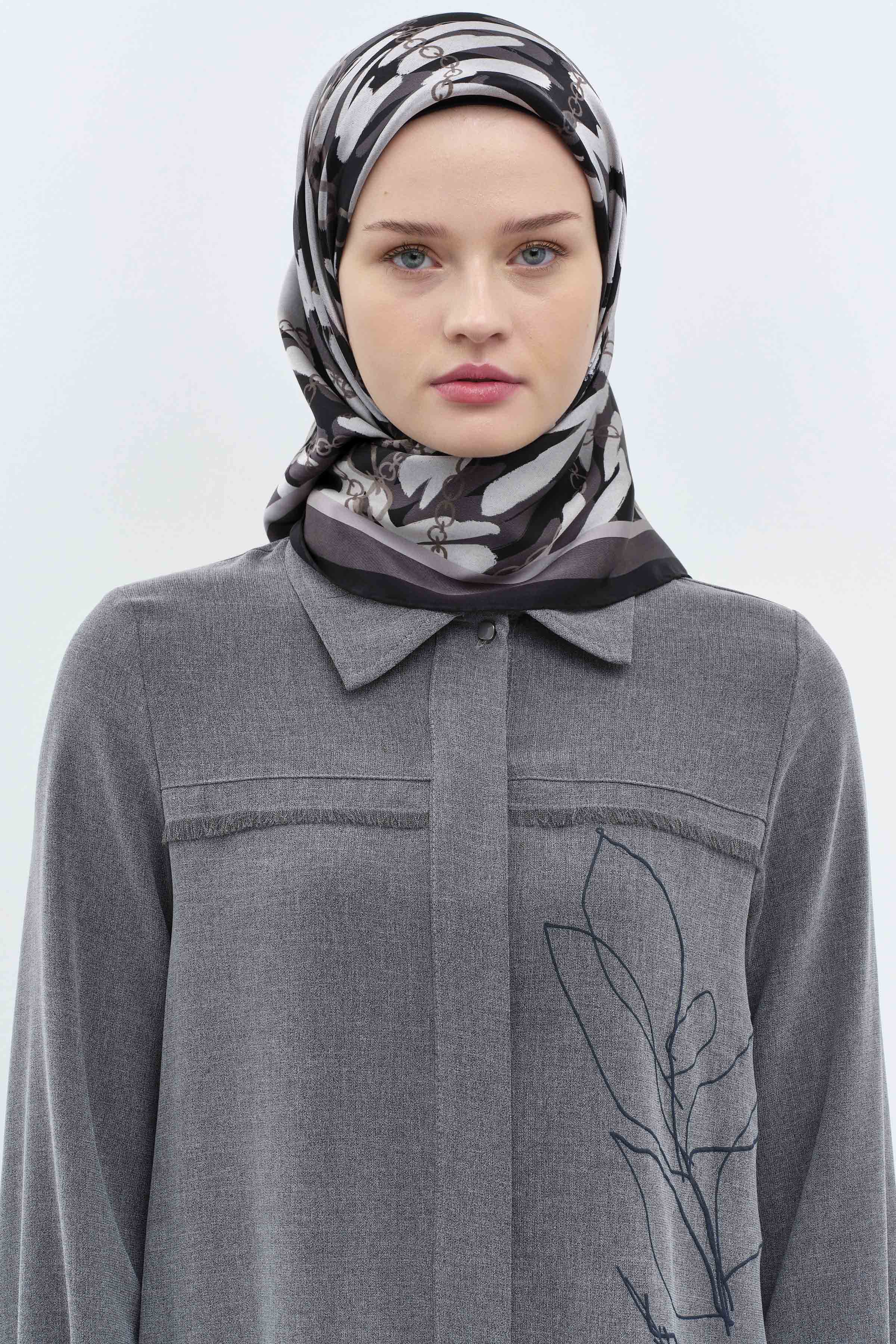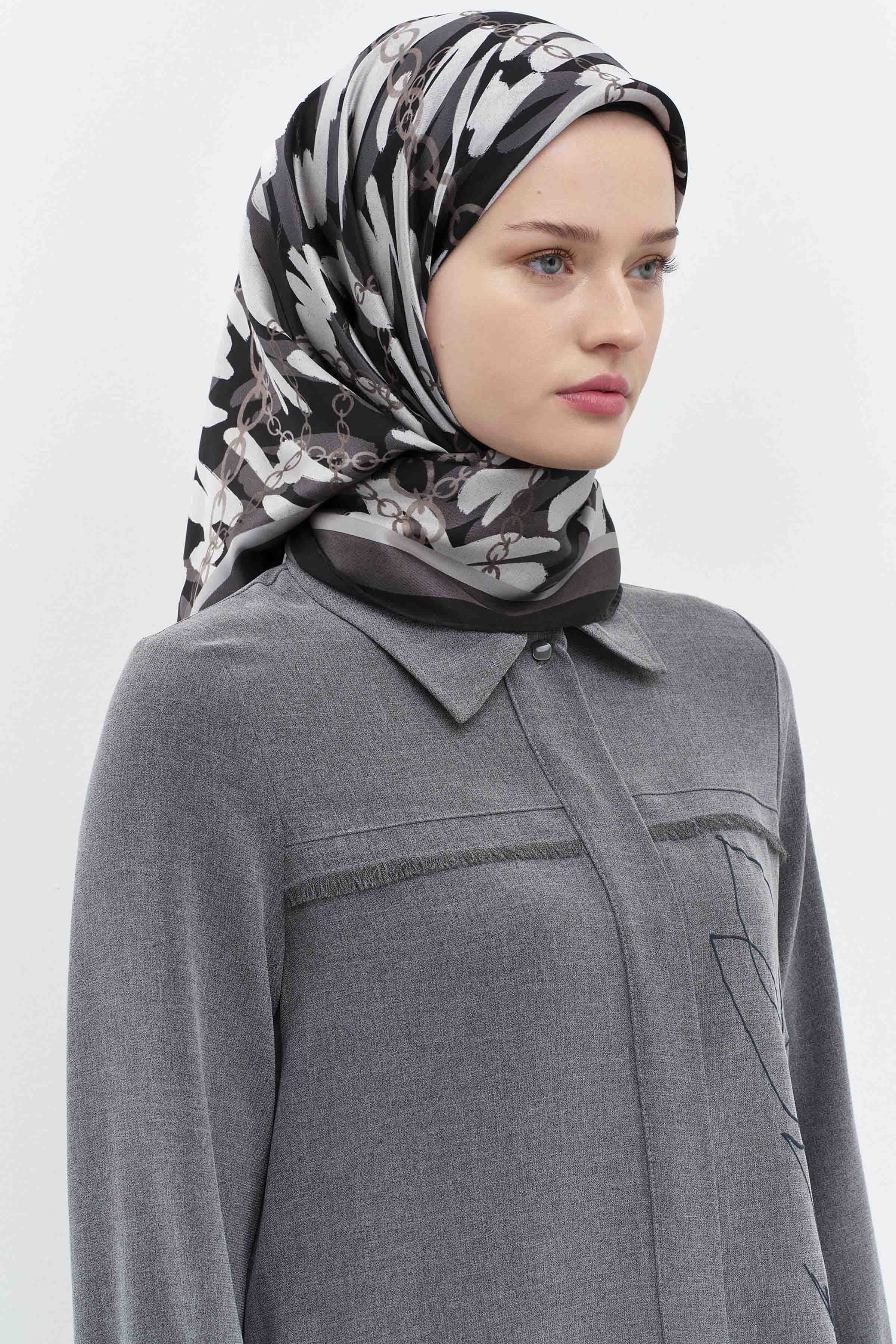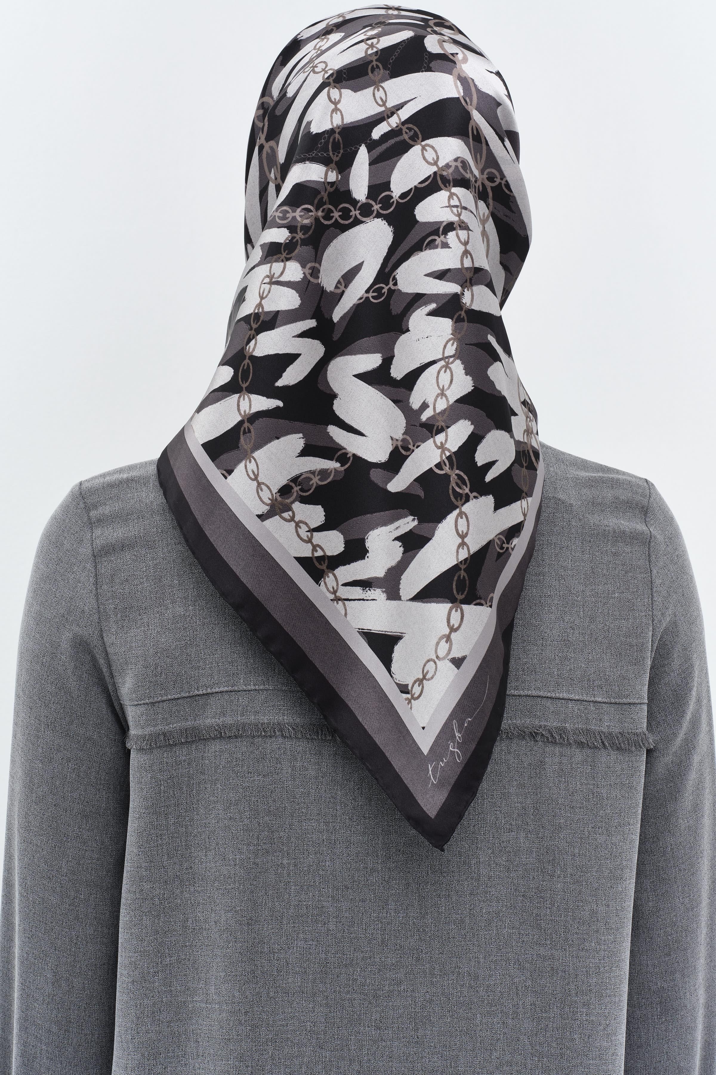 Pañuelo de seda Sura con estampado de cadenas - Antracita