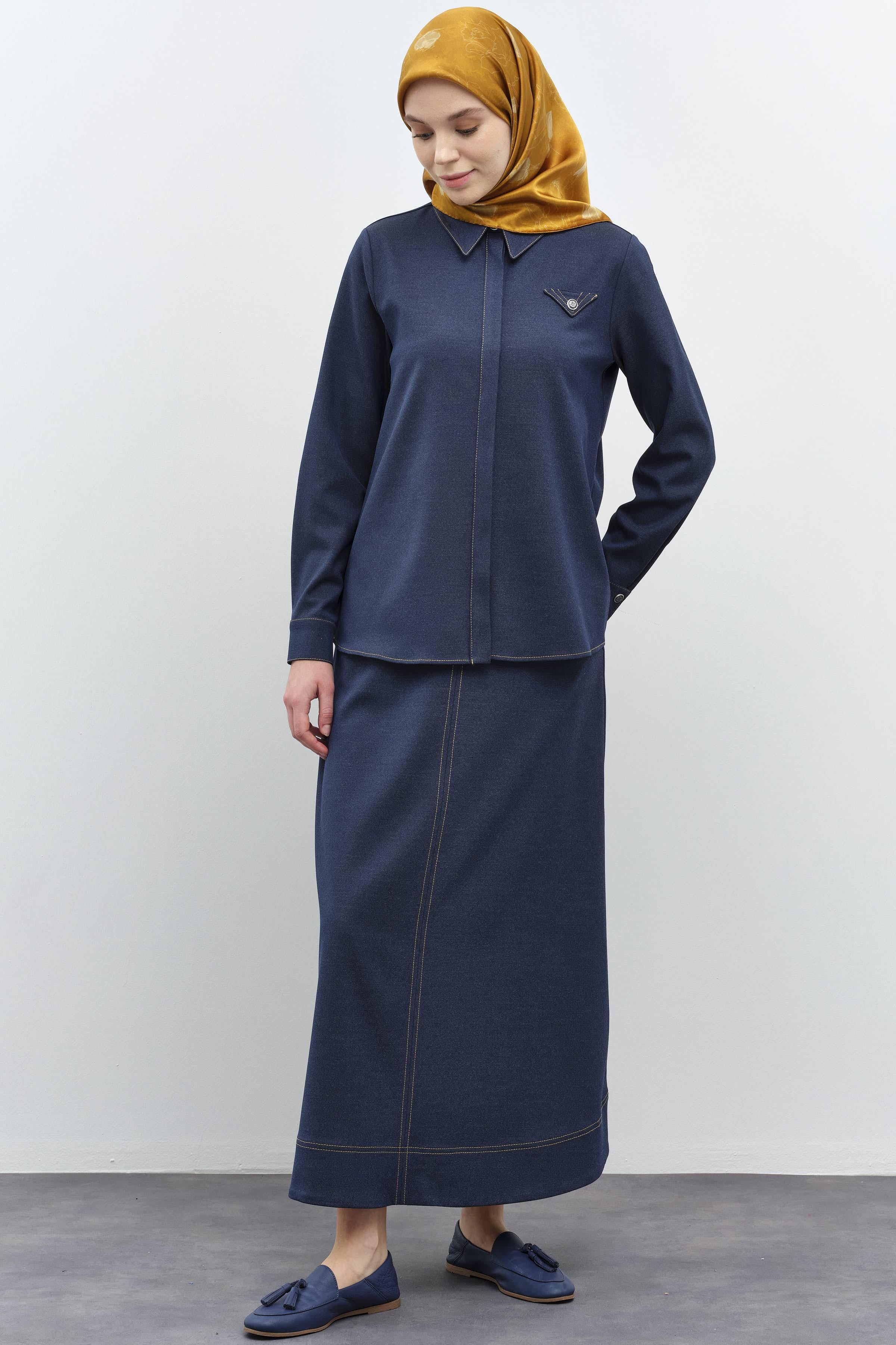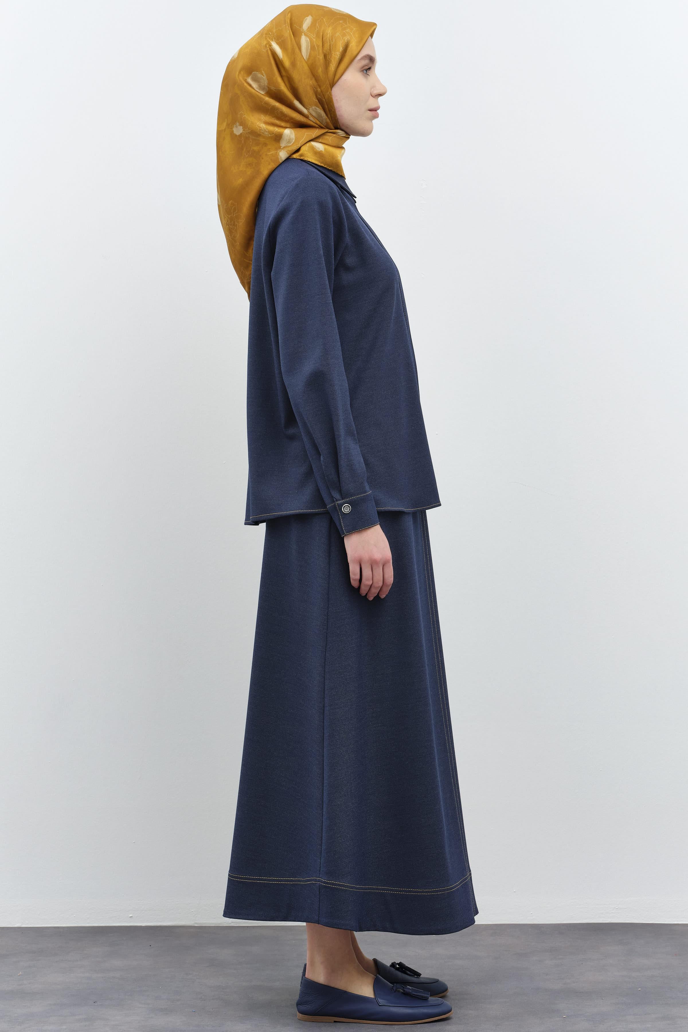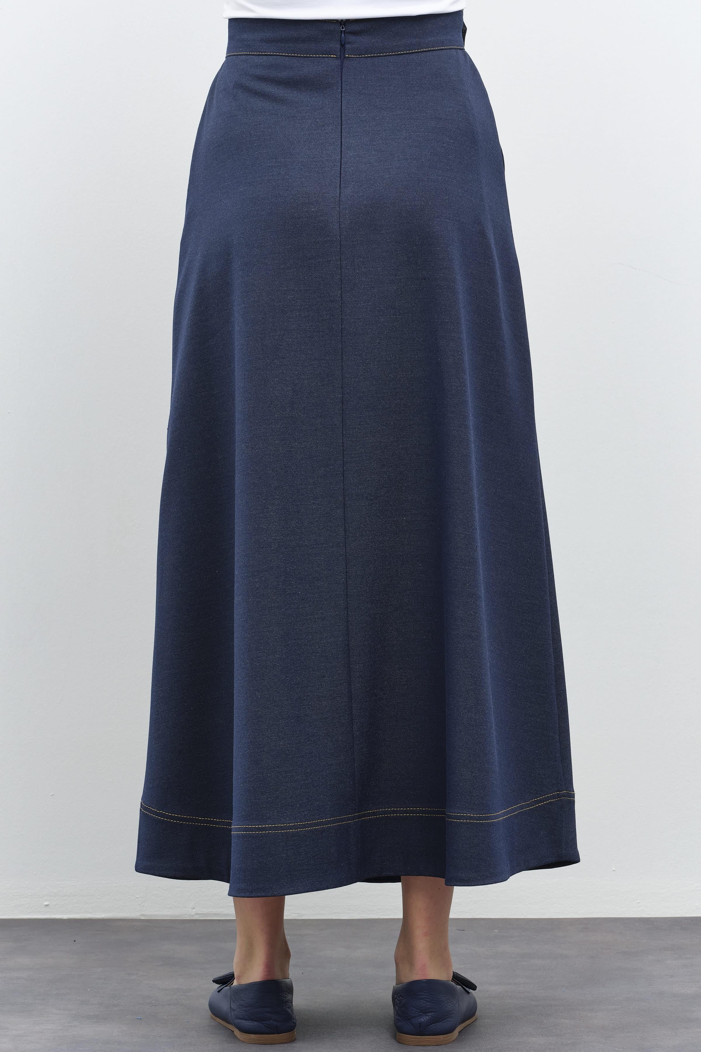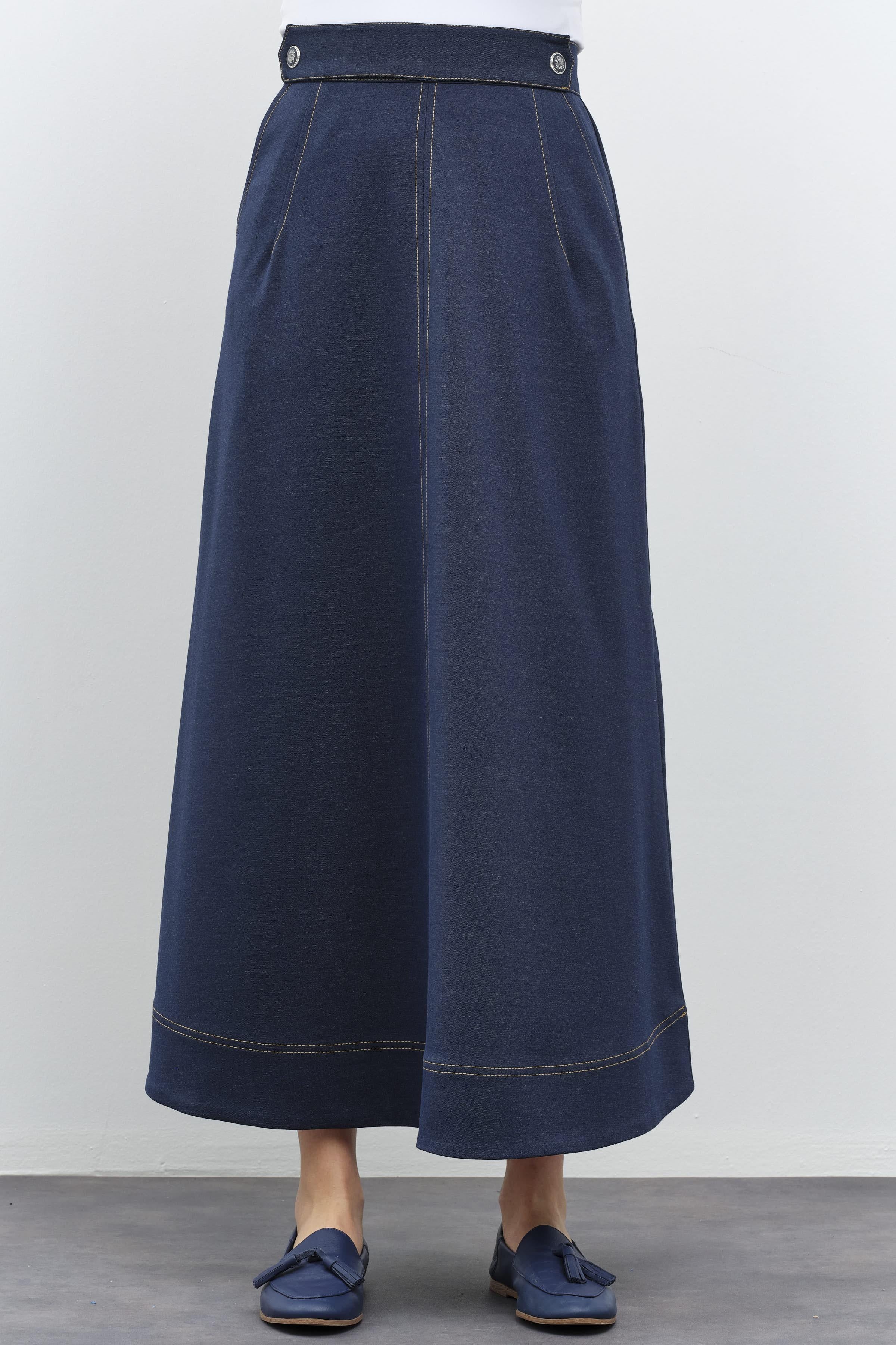 Arma Çıtçıtlı Cepli Etek - İndigo