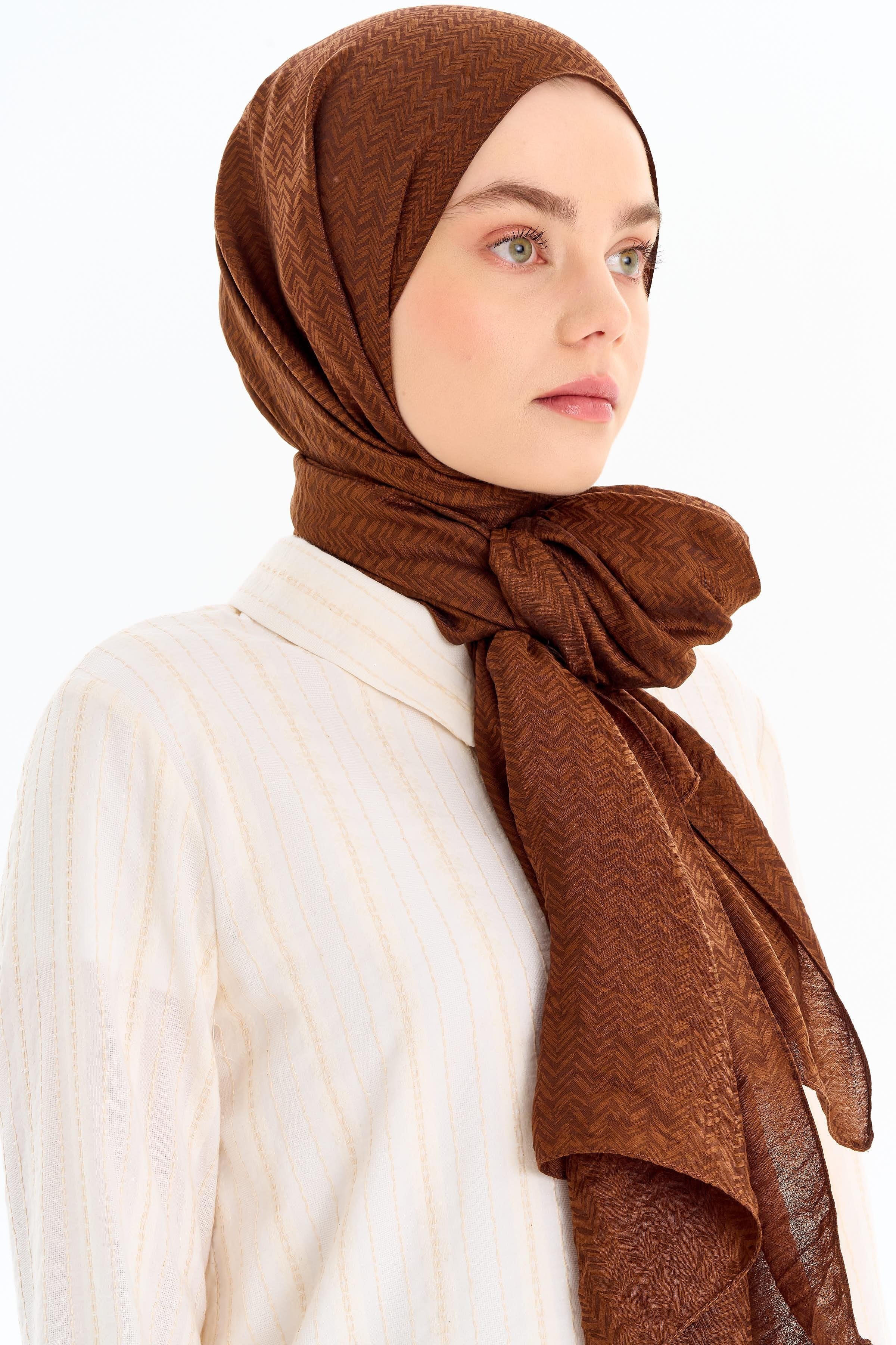 Balıksırtı Desen Viskon Şal - Açık Kahve