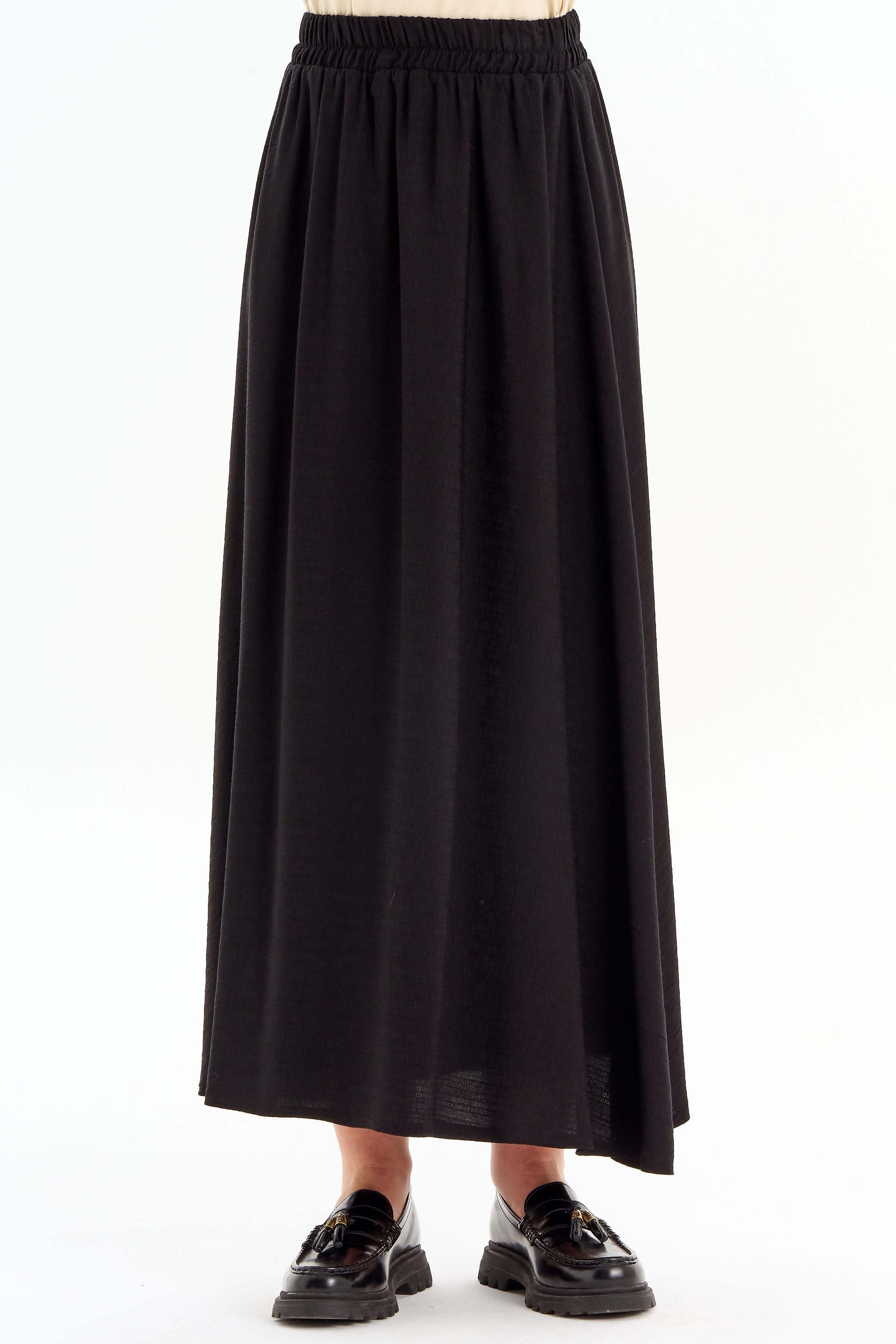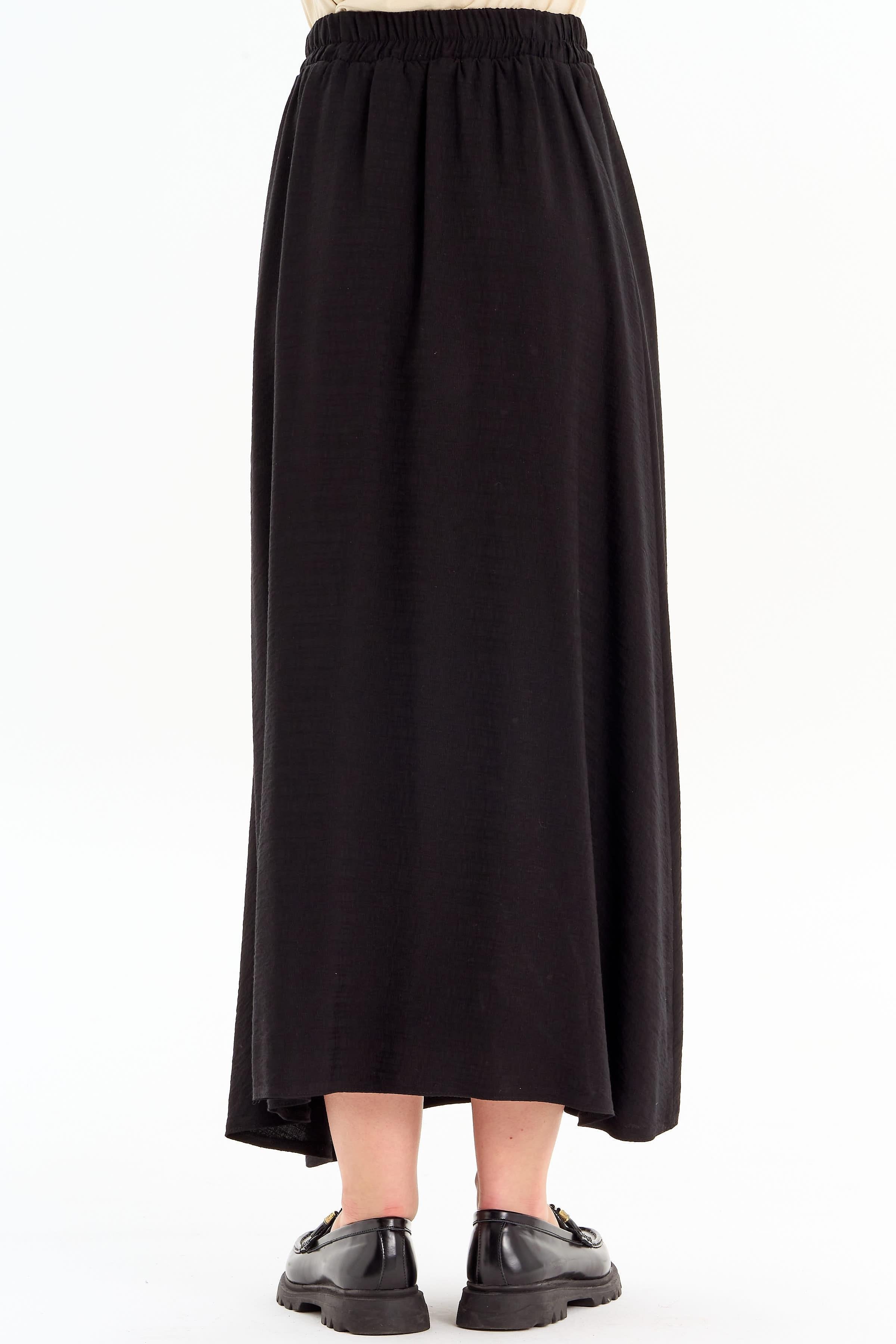 Günlük kullanım için ideal olan bel lastik büzgülü etek, konforlu yapısı ve şık görünümüyle öne çıkar. Esnek beli sayesinde rahatça giyilip çıkarılabilir ve gün boyu konfor sağlar.