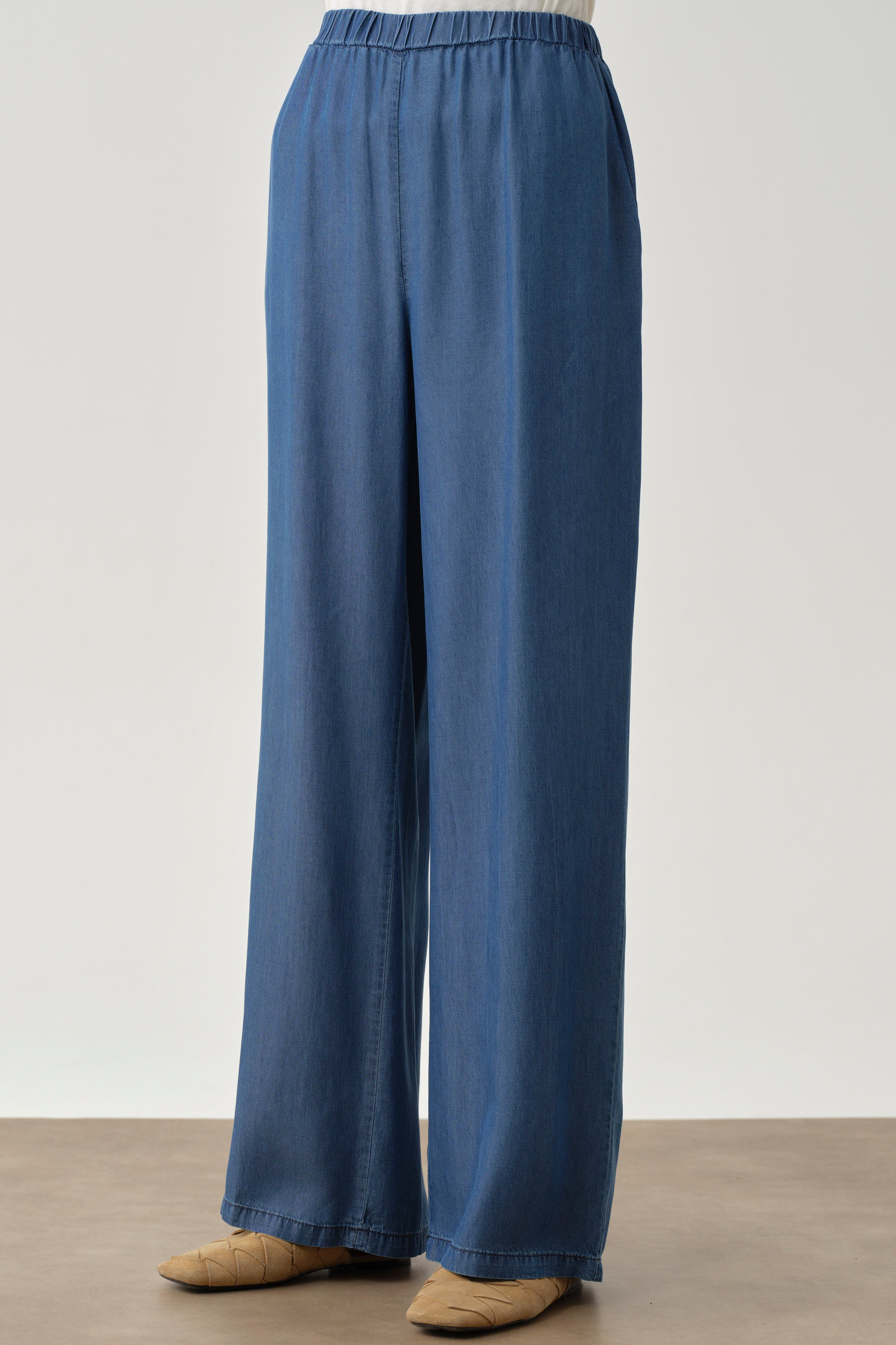 Bel Lastikli Bol Paça Pantolon - Lacivert