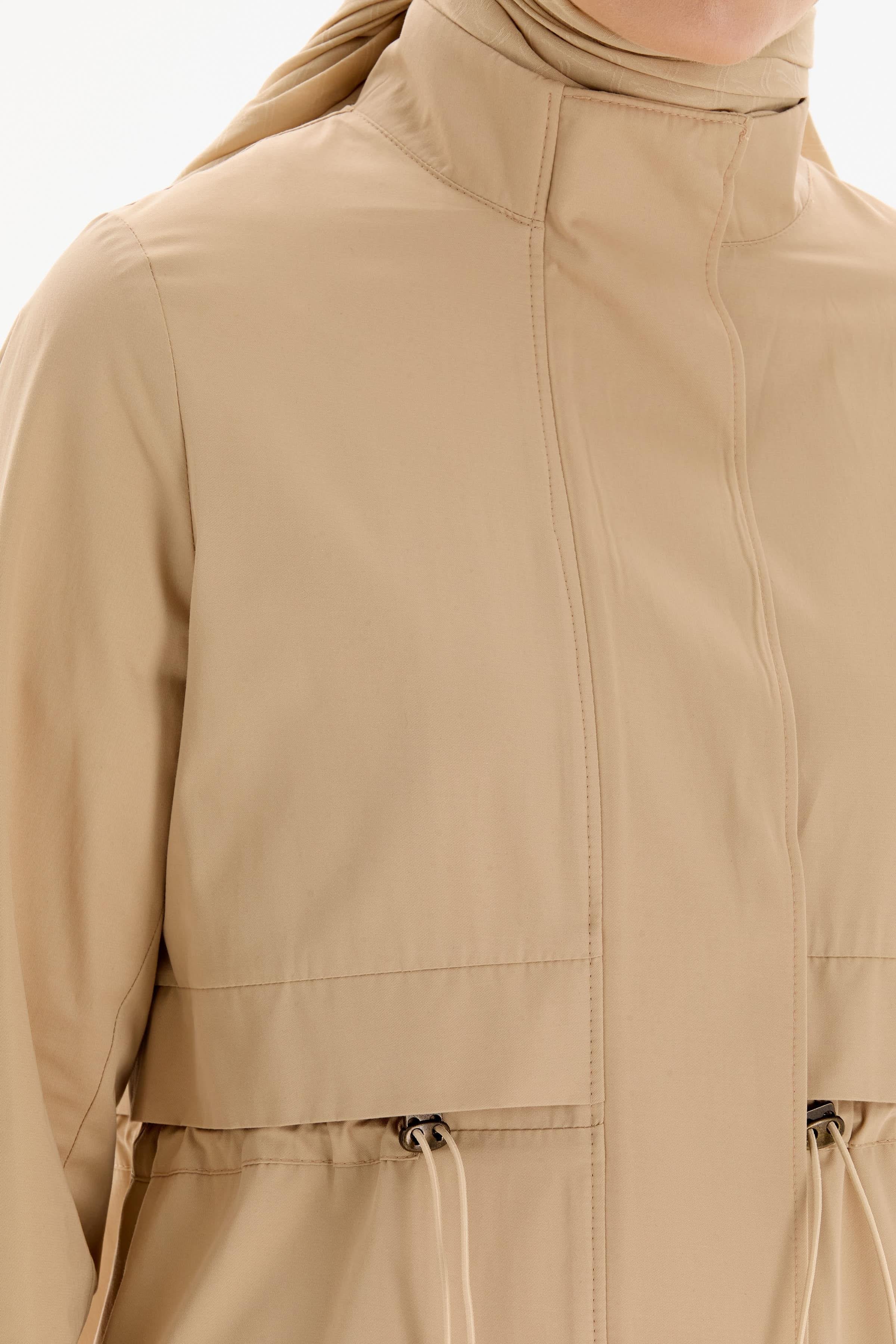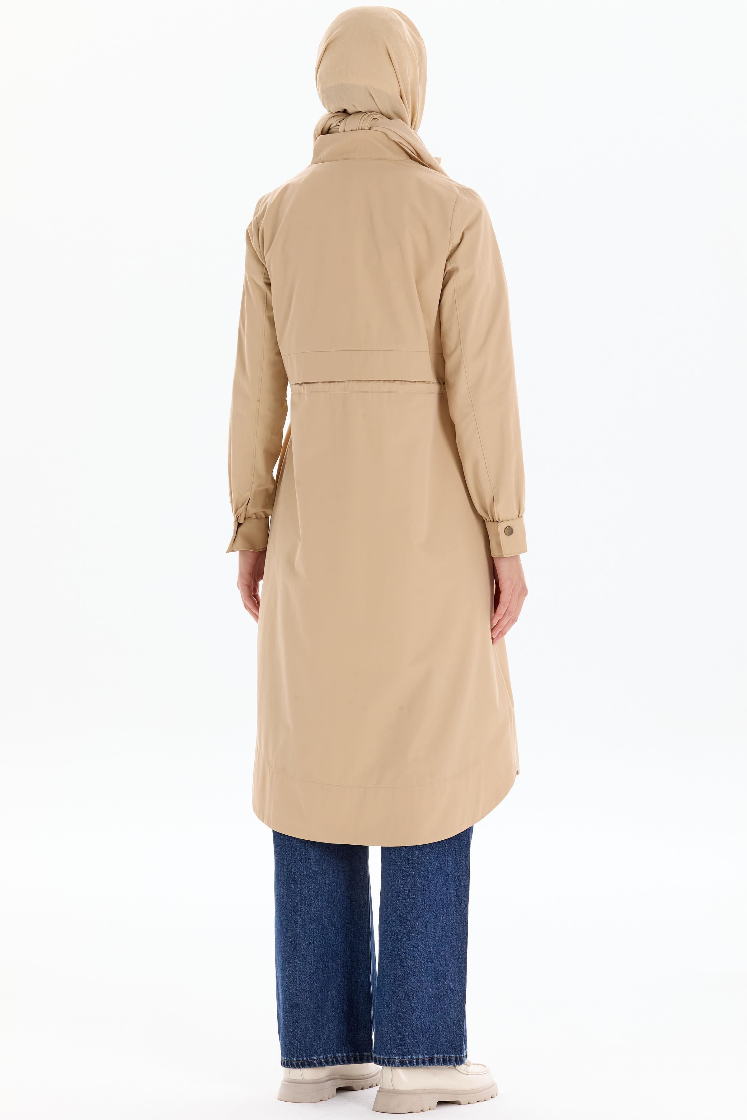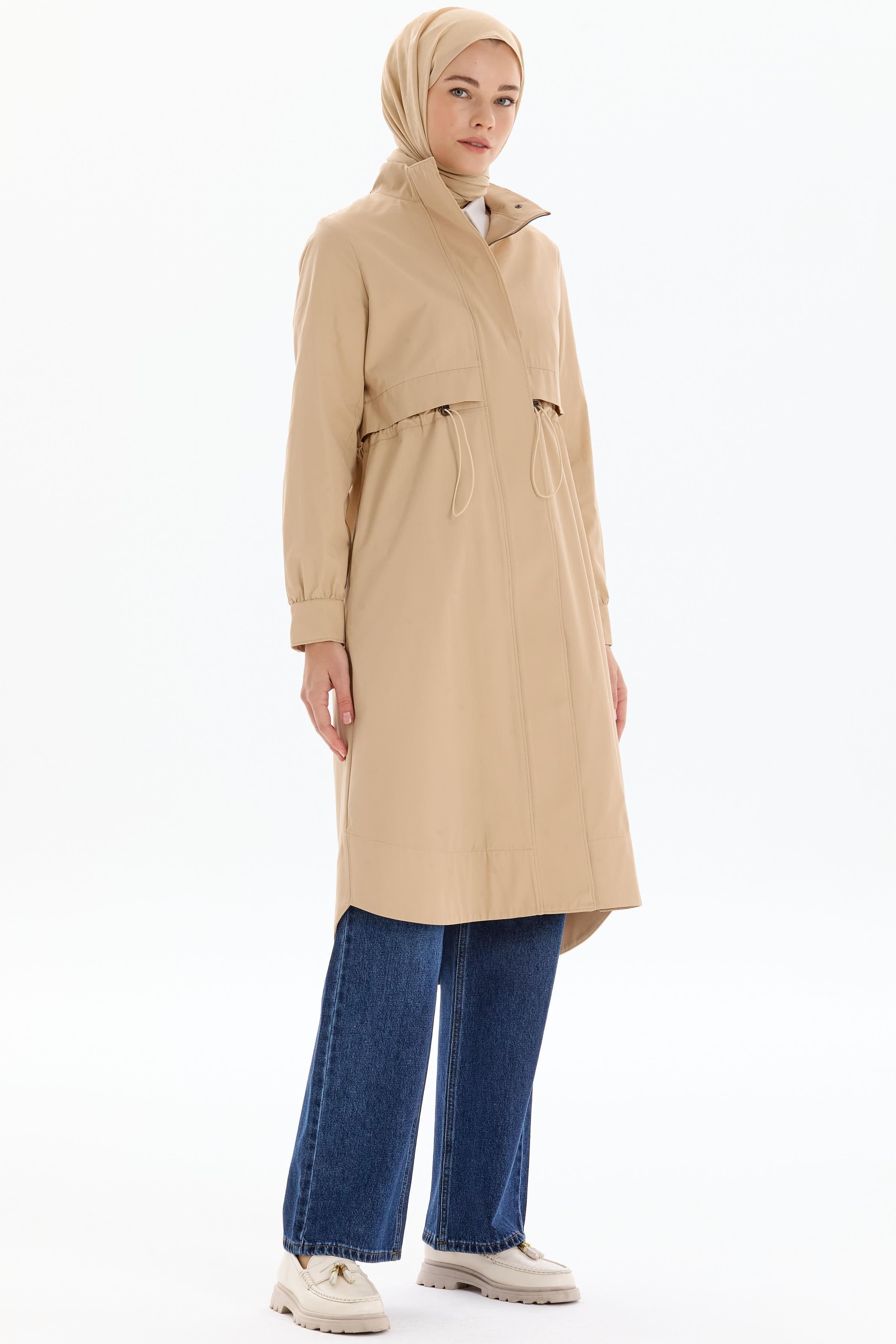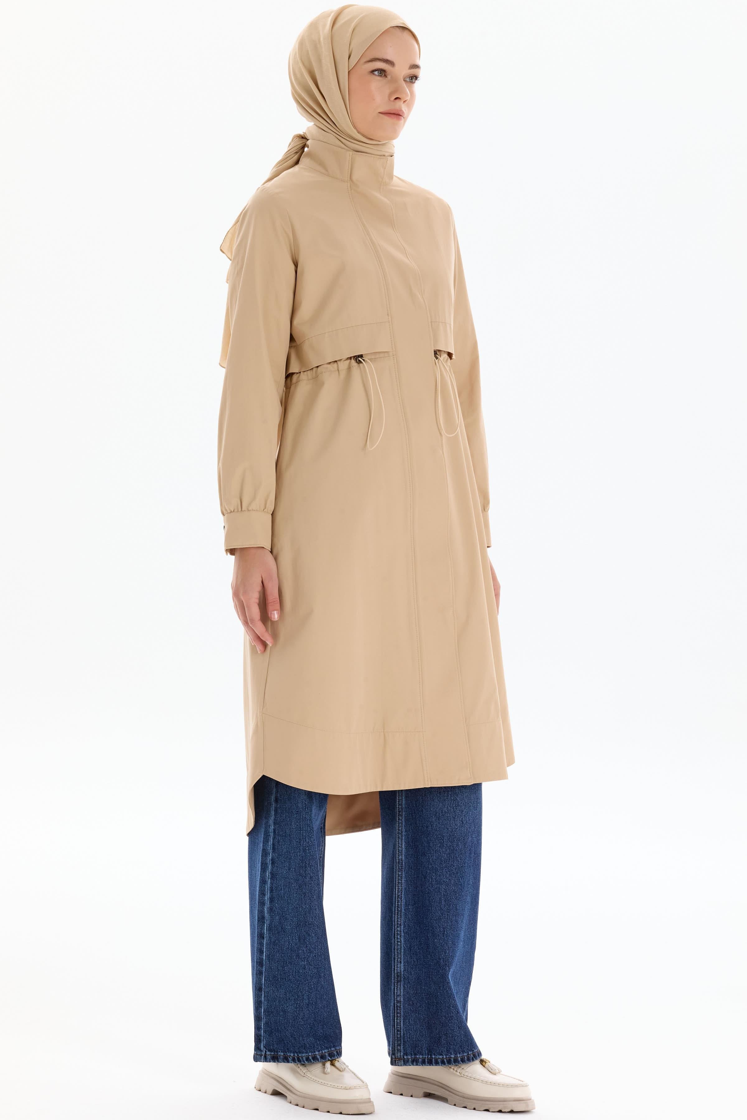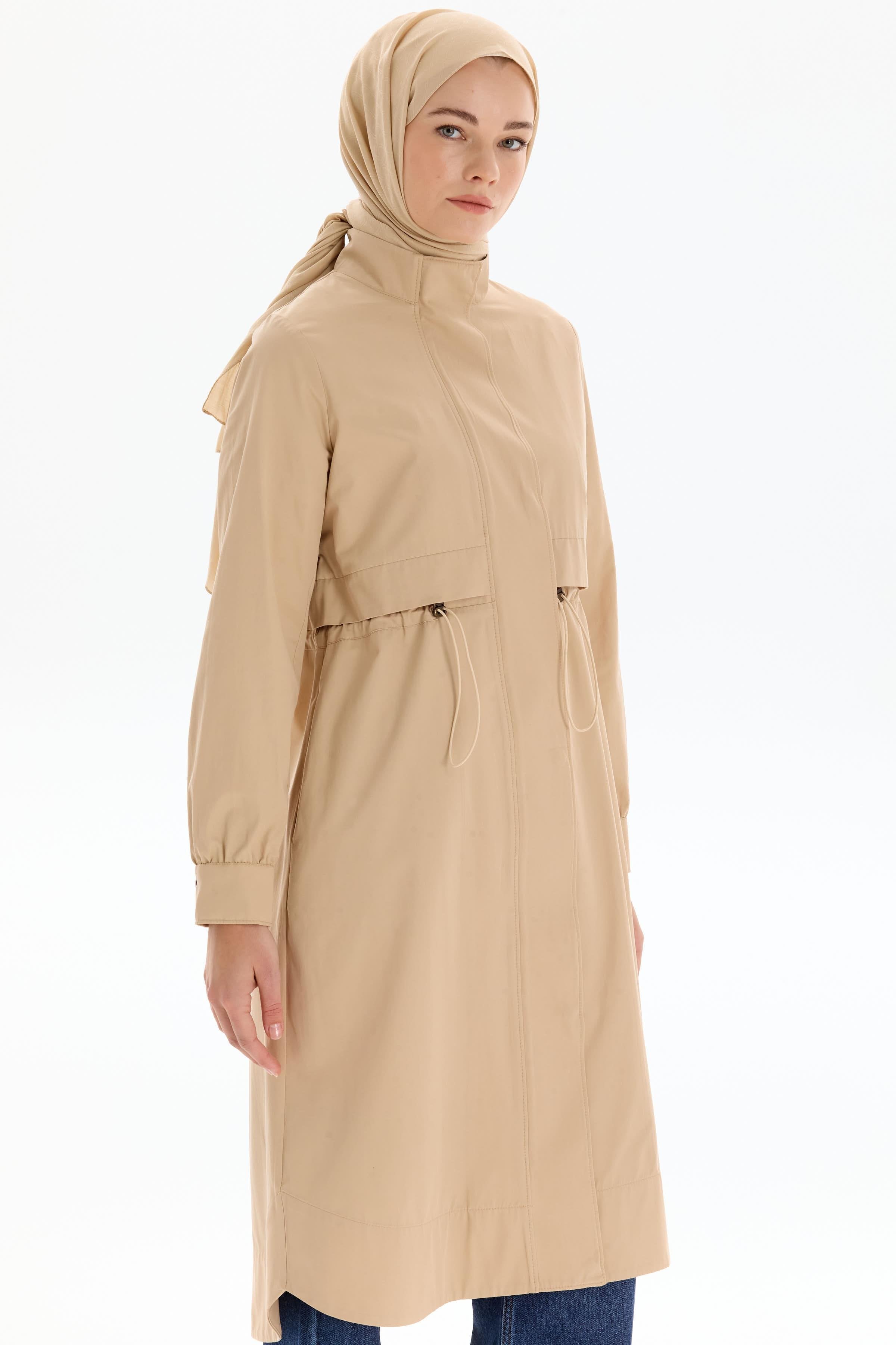 Bel Lastikli Fermuar Kapamalı Trençkot - Bej