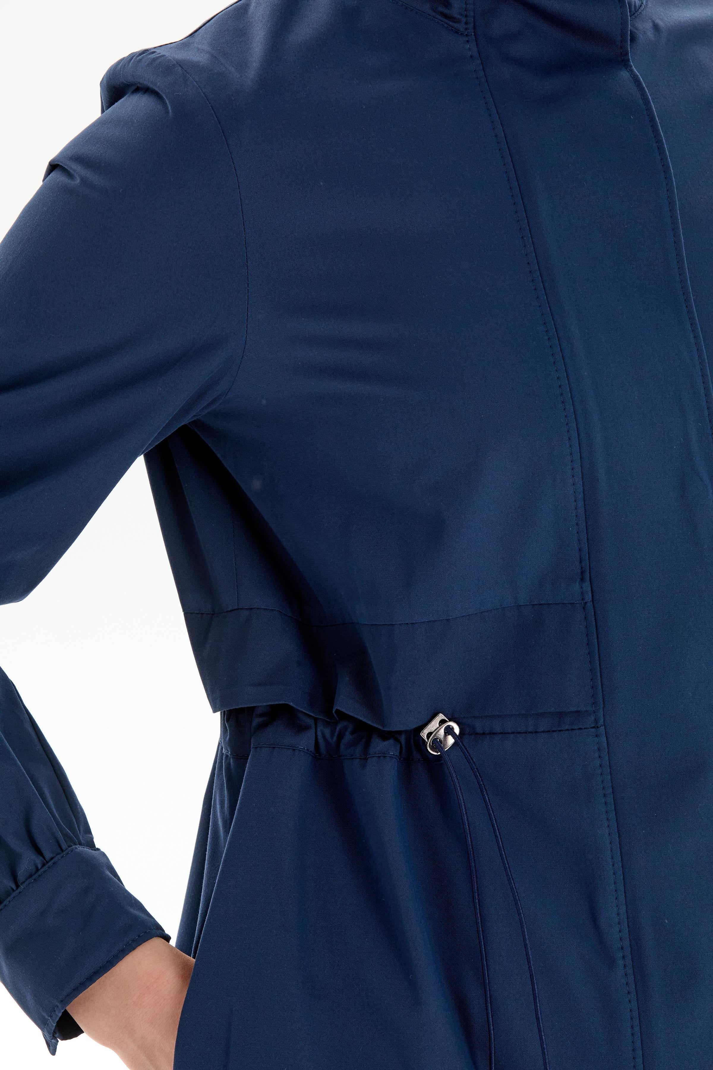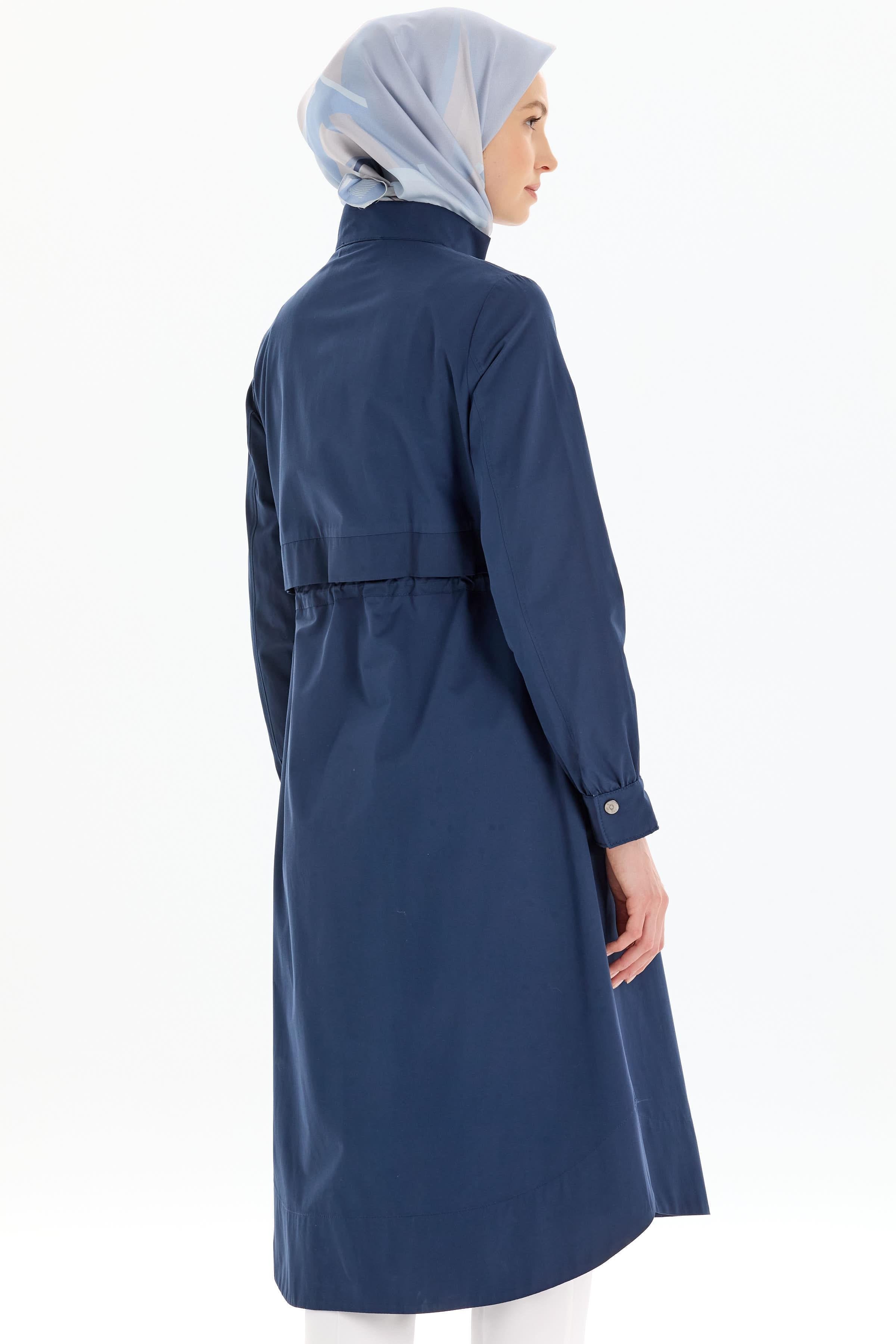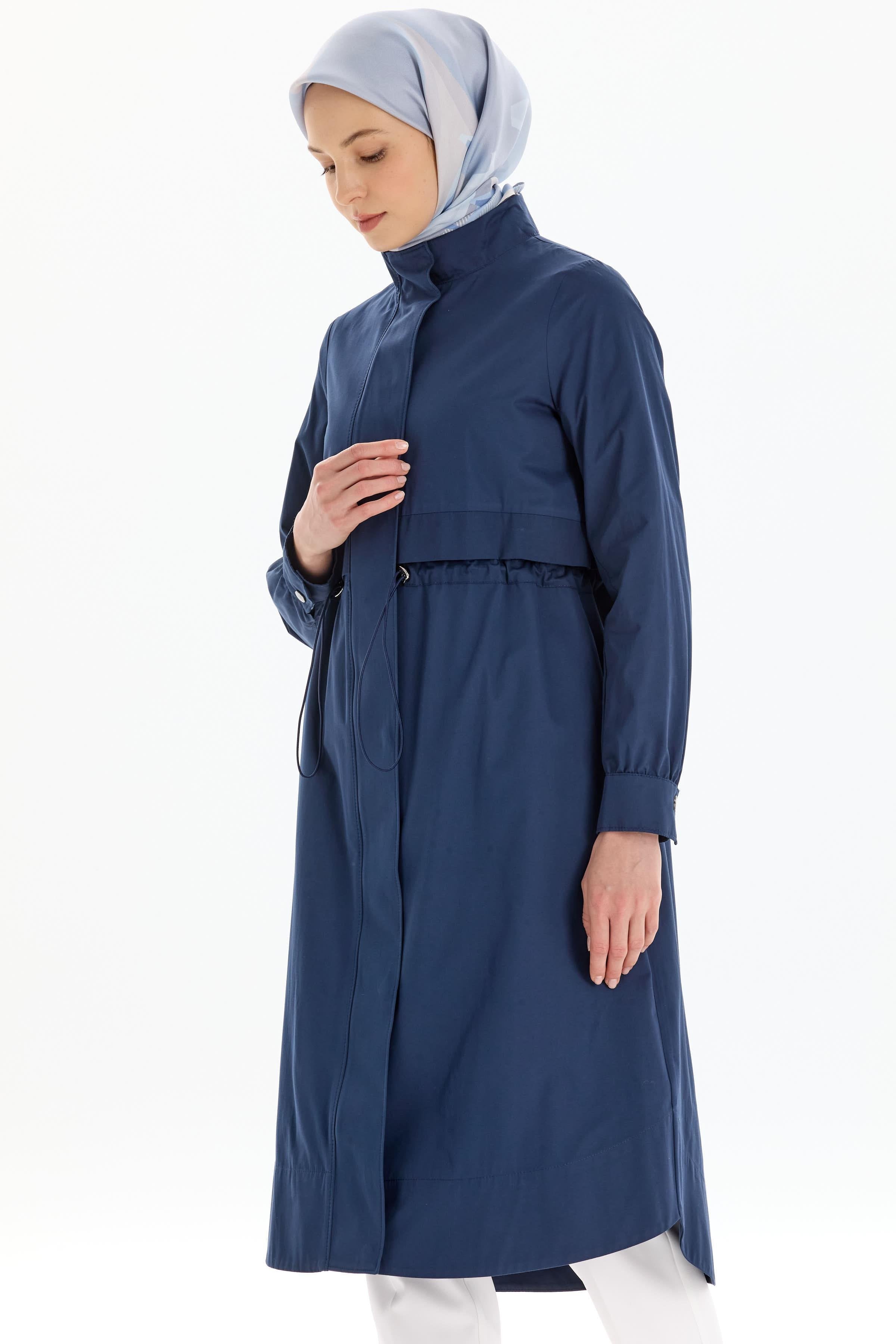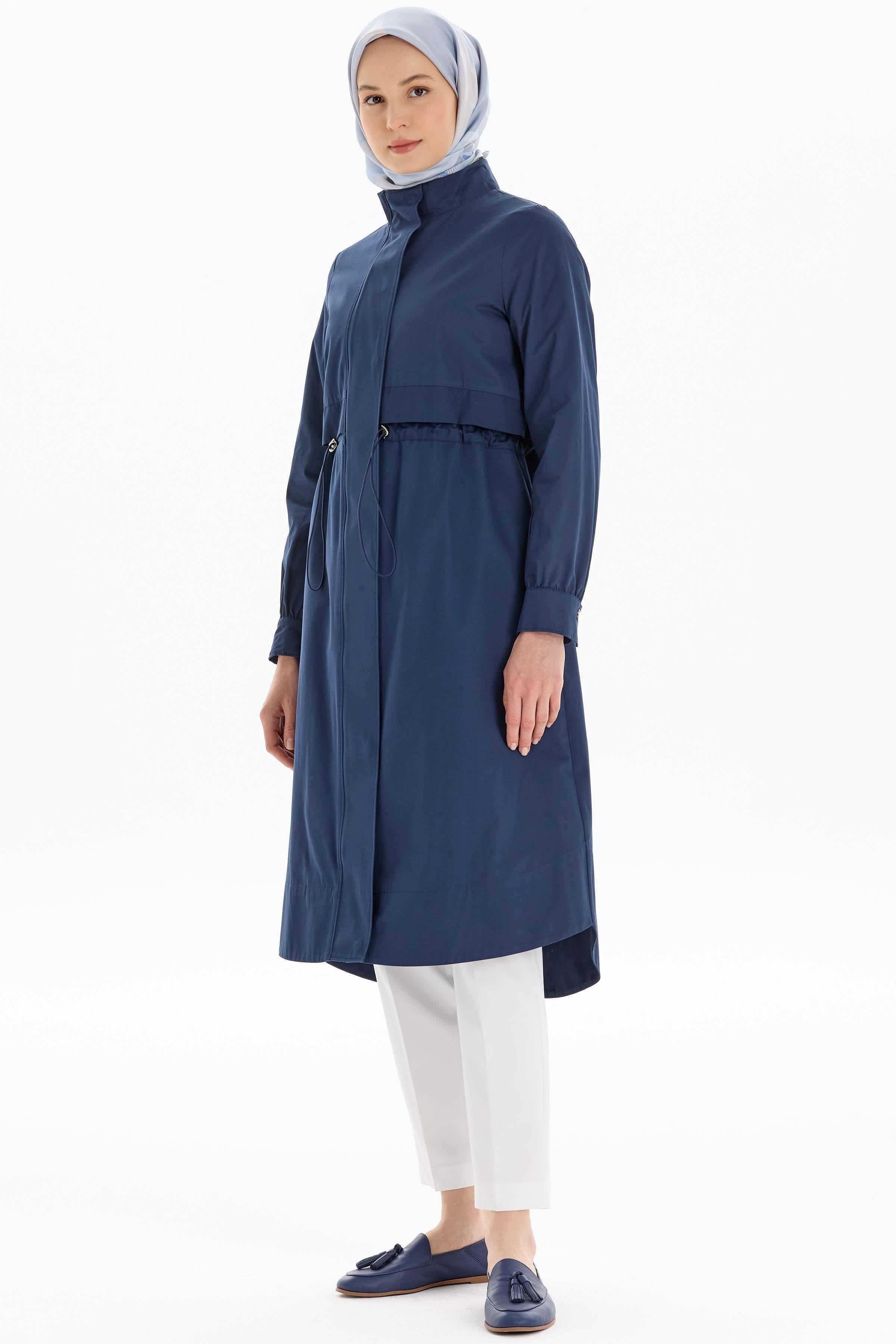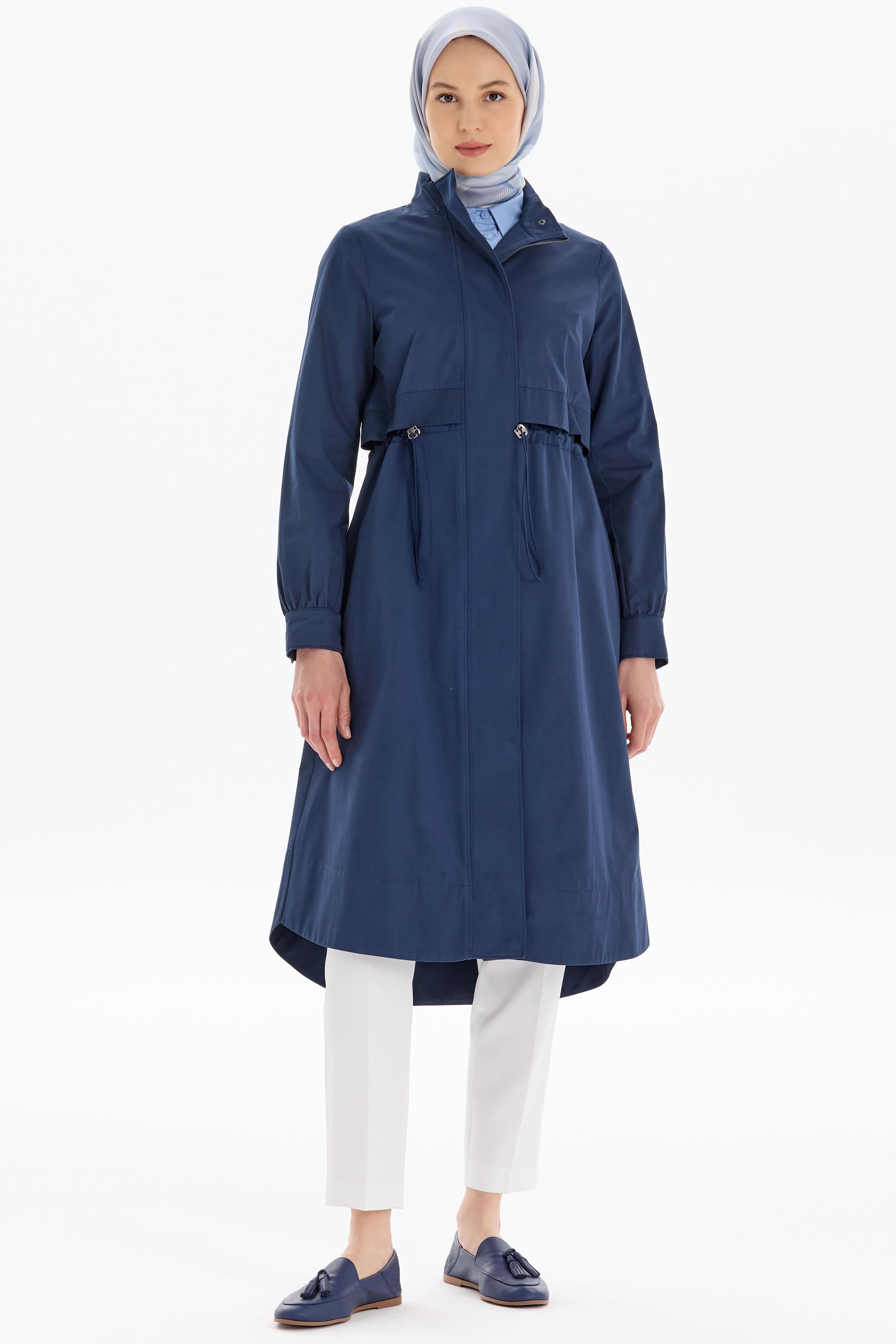 Bel Lastikli Fermuar Kapamalı Trençkot - Lacivert